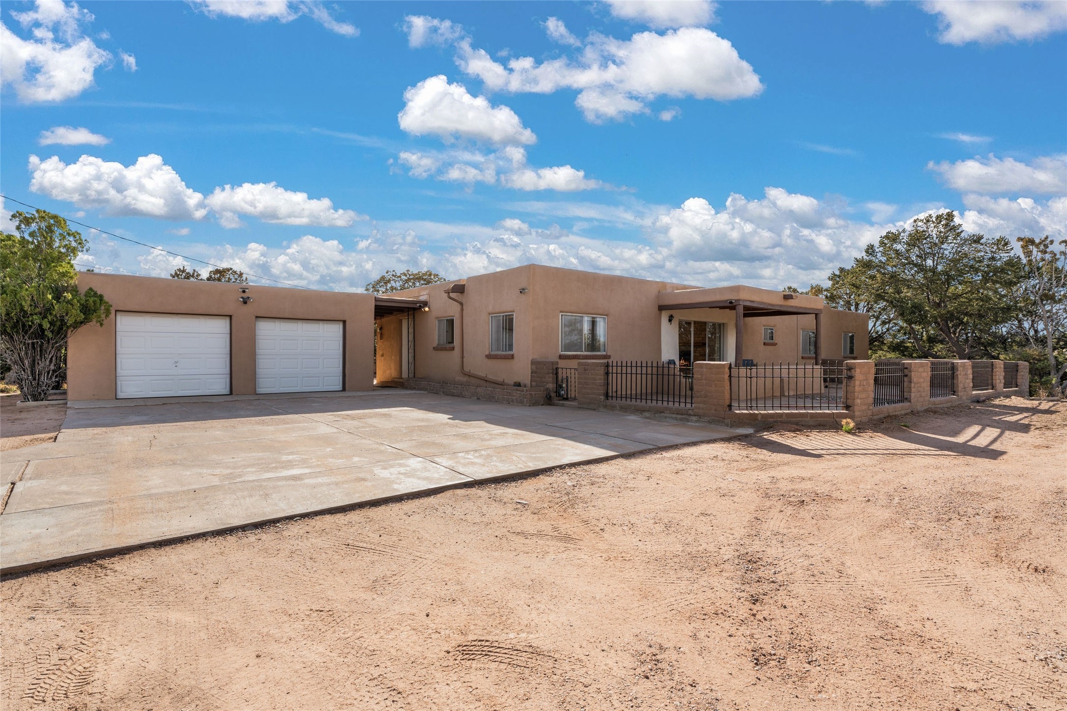 Location and Views! Close to downtown Santa Fe, within the city limits in the NE Hills and sited on 1.5 acres at the high point of Mansion Ridge Road, this 2,322 sq. ft. partly adobe, single-level treasure has commanding views of the Sangre de Cristo Mountains to the East and South to the Ortiz and Sandia Mountains. Built in 1958 and sited to capture the mountain views, this home has been beautifully maintained by the one-owner family. There are 3 bedrooms (one with a private office/sitting room); 1 bathrooms; a large living/dining room and spacious, light-filled kitchen with breakfast nook. The living room has a handsome fireplace and two large glass patio doors. A few steps from the house, under a covered walkway, there's a large, two-car garage with-ample workshop space. The two courtyards are fenced, and the rear courtyard has a fireplace. There is wonderful sense of tranquility and permanence to this special property