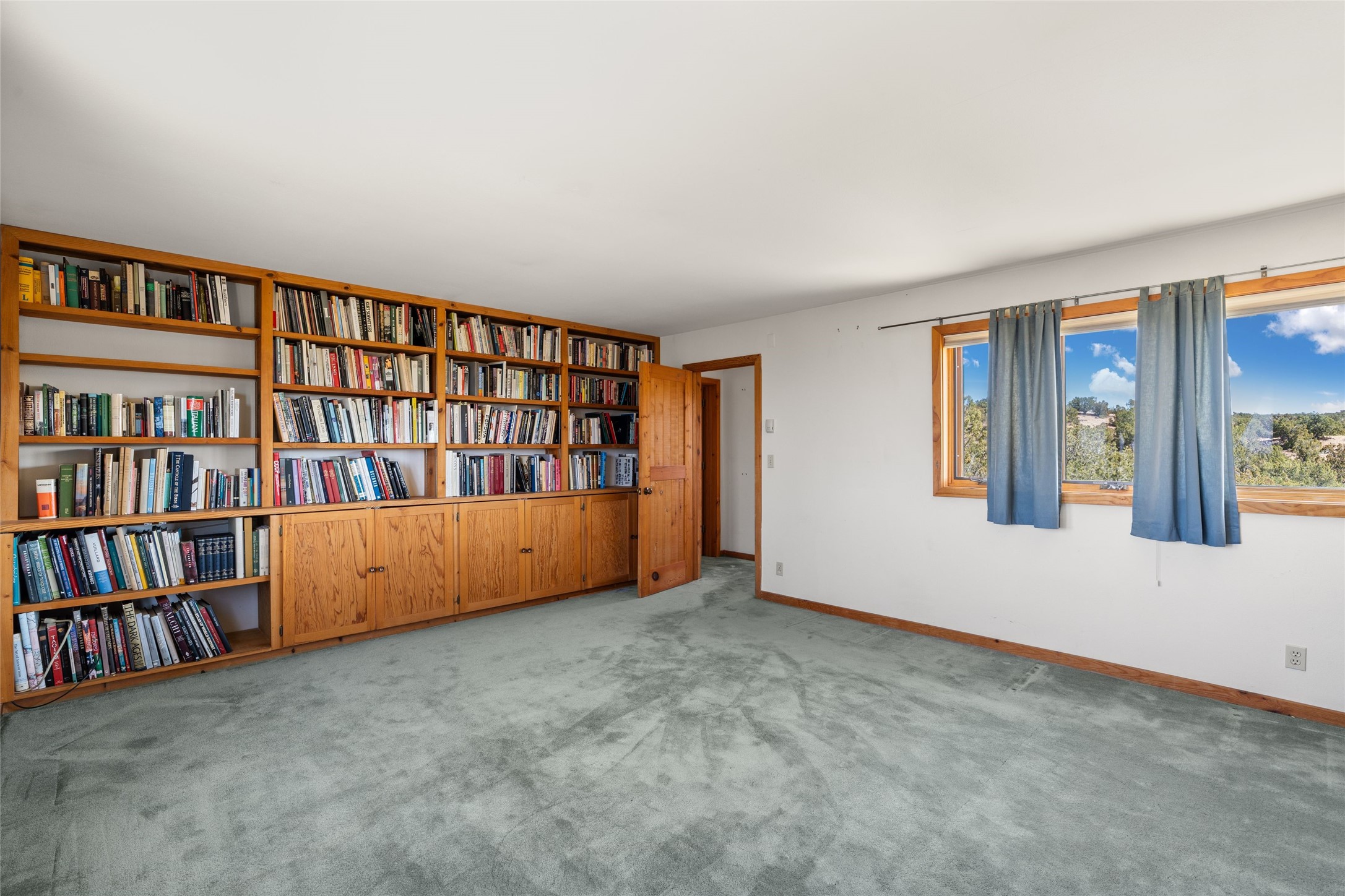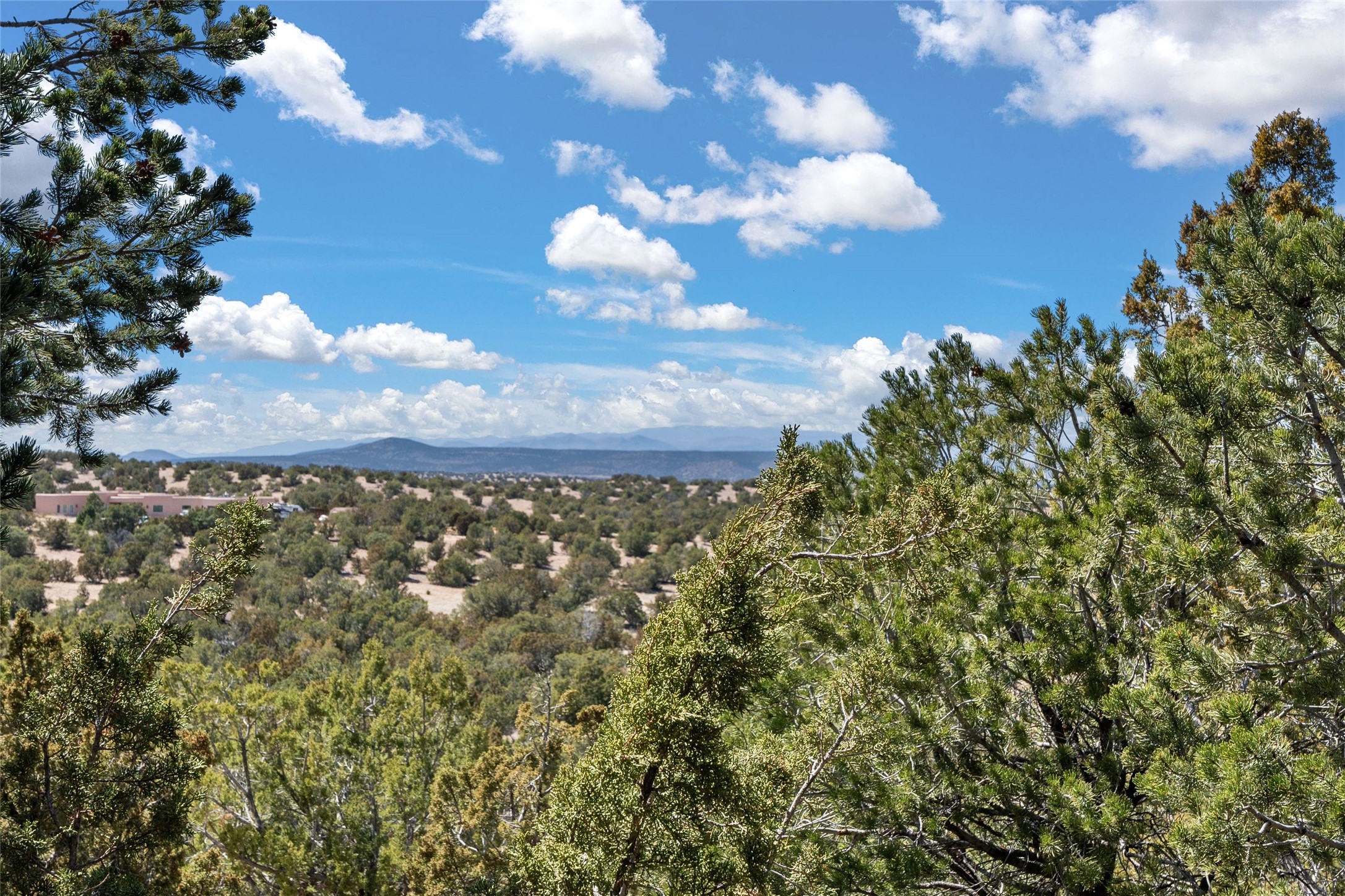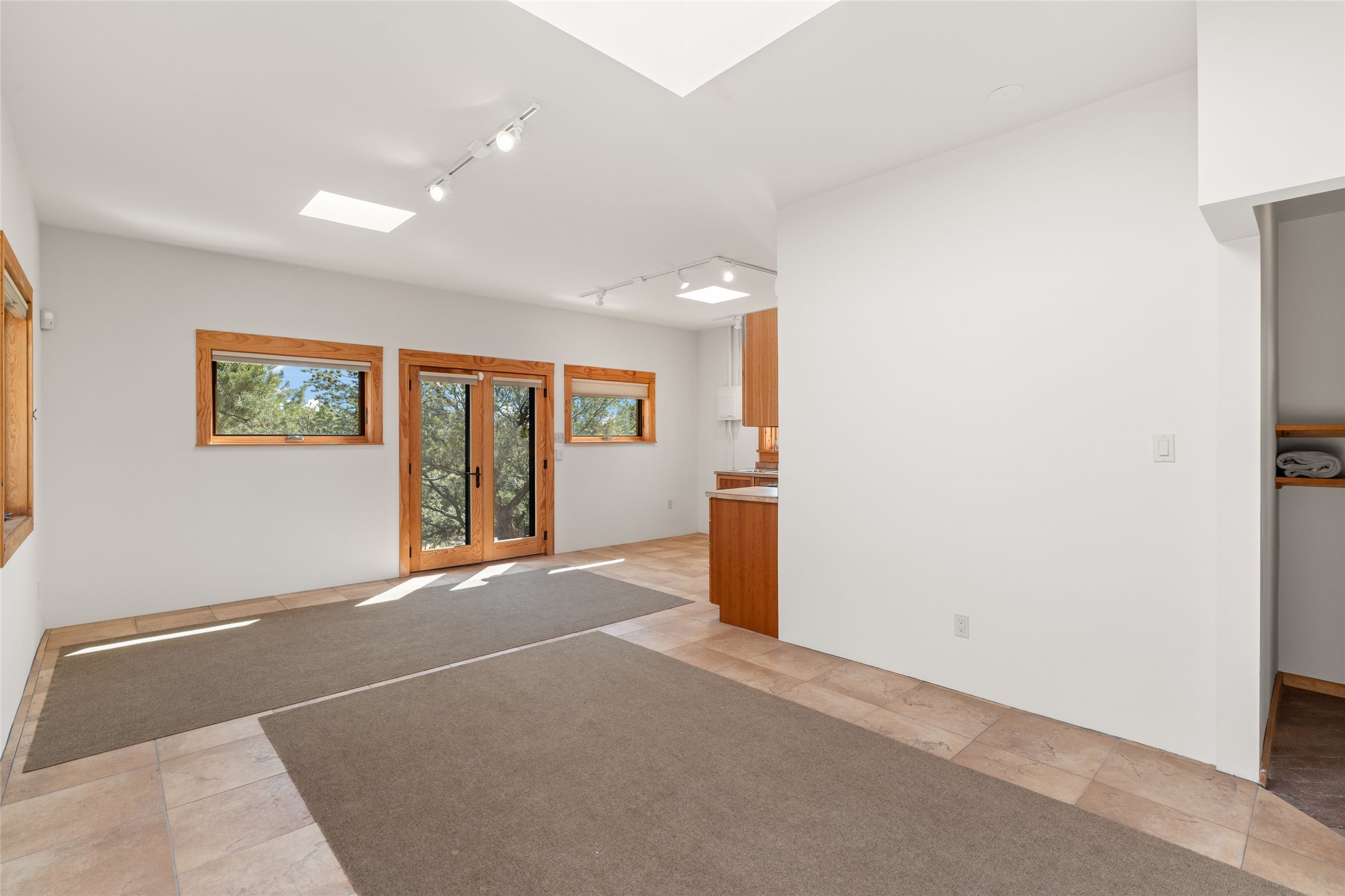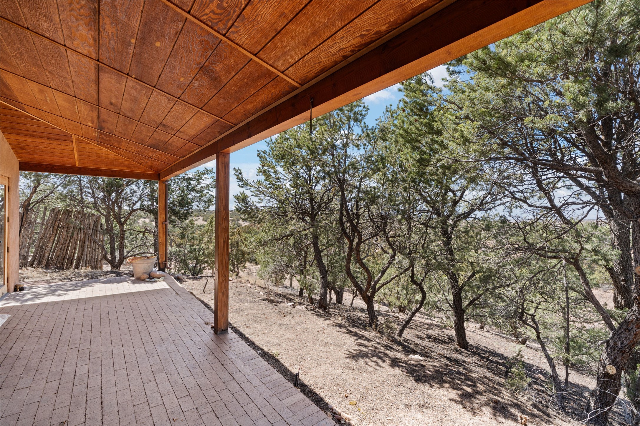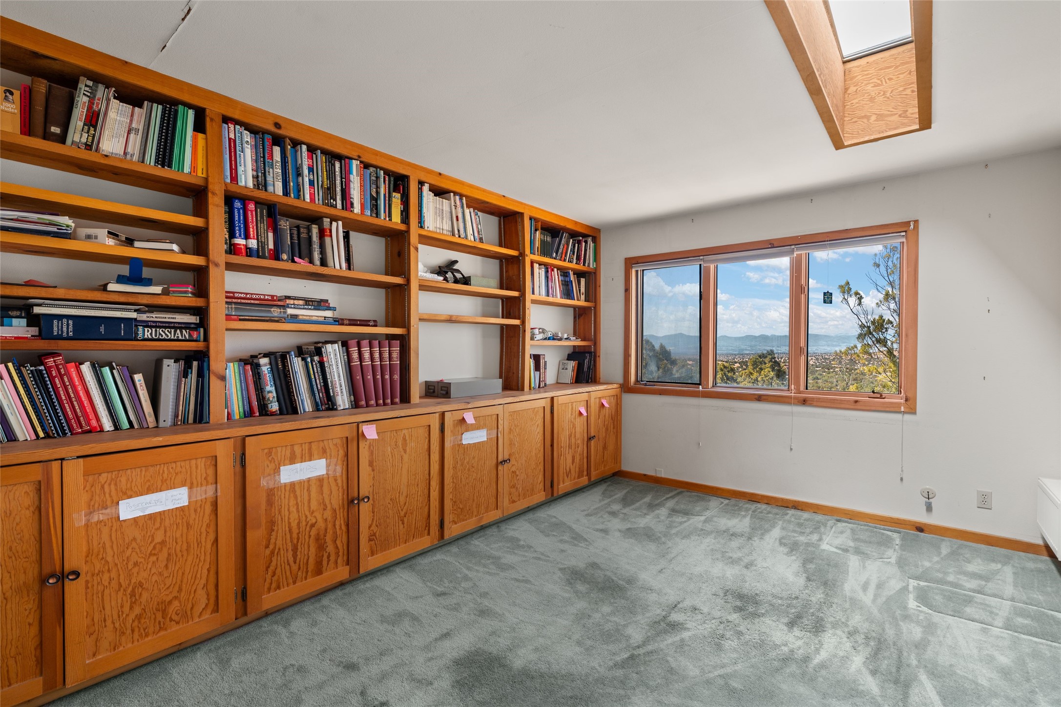 Views, privacy, acreage! Rural living close to town. This approx 2675 sq. ft. main house and approx 615 sq. ft. guest house are located on 10.86 acres in Las Dos, a subdivision of large lots in the NW Quadrant, 25 minutes from downtown Sant Fe. Only one owner - the internationally acclaimed poet, linguist and anthropologist - Nathaniel Tarn. This is a unique estate. The main house was built in 1984 to house a significant library which encompassed global interests in literature, history and anthropology. The principal residence is multi-level and the views to the Jemez and Sangre de Cristo Mountain Ranges are spectacular. The main level comprises open-plan kitchen, dining and living room with a soaring, two-story high ceiling. Also on the main level are two bedrooms, two bathrooms, art gallery spaces and a laundry room. Up a half flight of stairs there's a private office. Another half-flight of stairs accesses a huge ante-chamber which overlooks the living area and a second, large private office. Throughout the house there are built-in book-cases. The large, surprise bonus is the basement - configured as a library for Nathaniel Tarn's extensive book collection, but which can be adapted for many uses - a home exercise room, a media room or whatever activity the new owner pursues. Steps away from the main house there is a one-bedroom, one bathroom, detached guest house with living room and kitchenette. Built in approximately 1999 as part studio, it is a huge addition to the flexible uses of this amazing property. Throughout both residences there is ample light. A rear portal provide an intimate space for the enjoyment of outside living. Up to four horses are permitted. The property is the estate of the original owner. The new owner will likely wish to update the kitchen and bathrooms