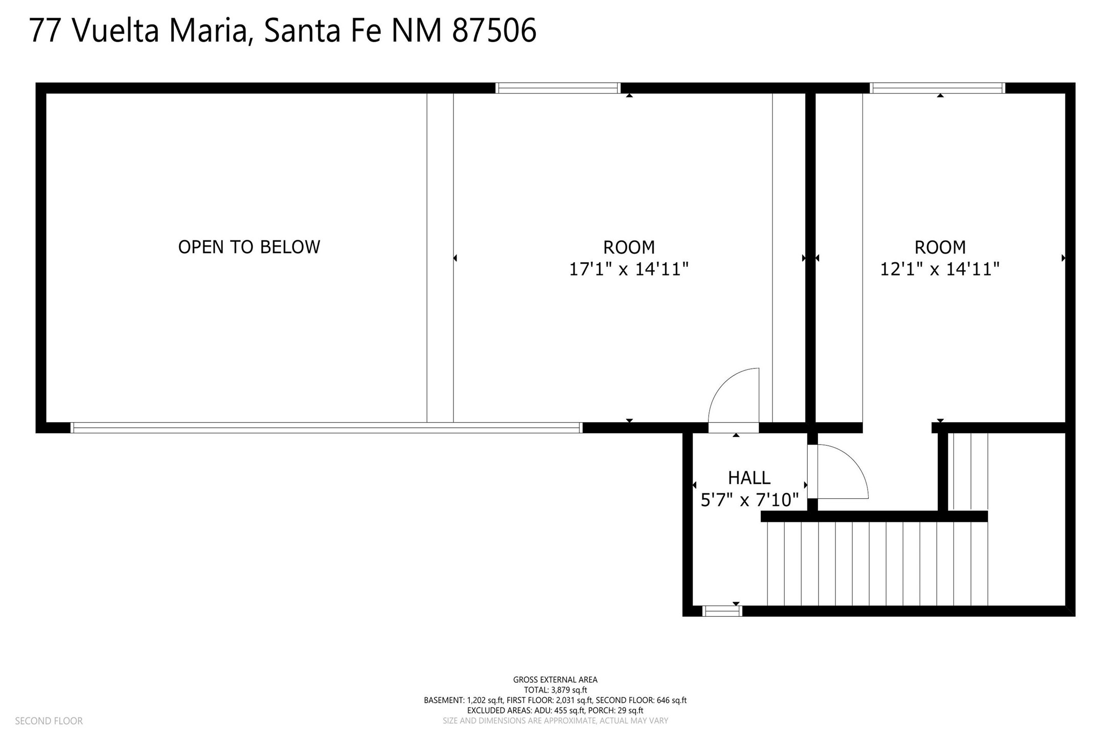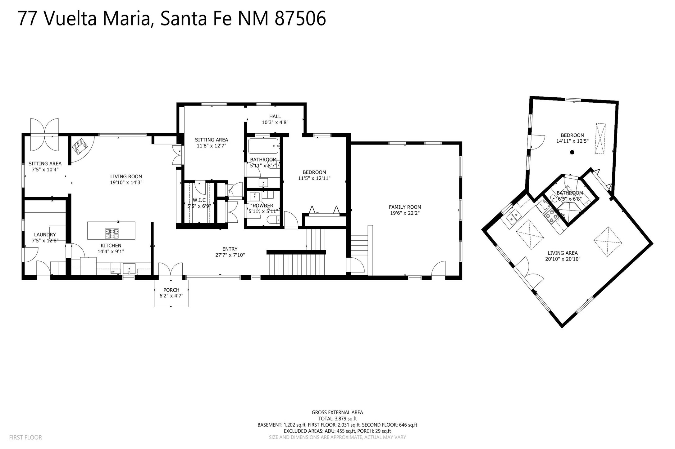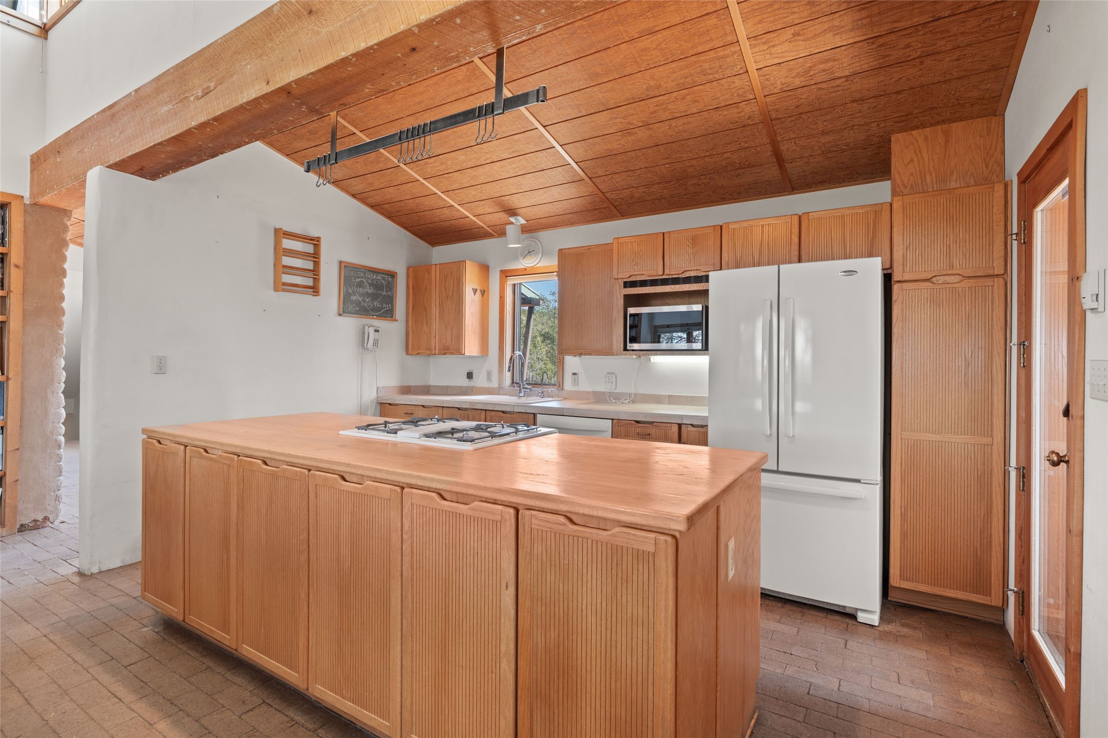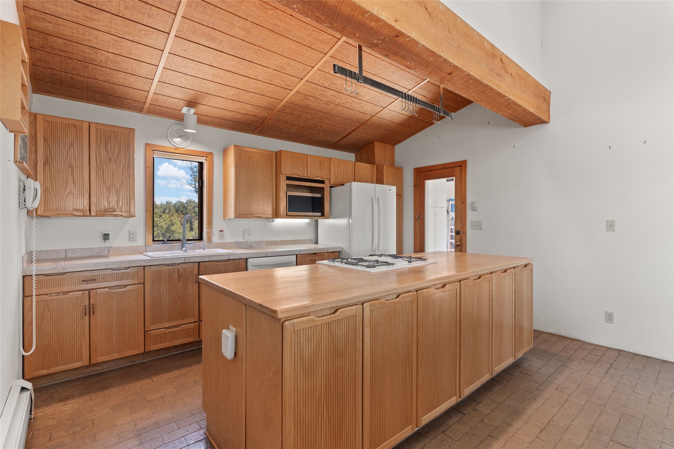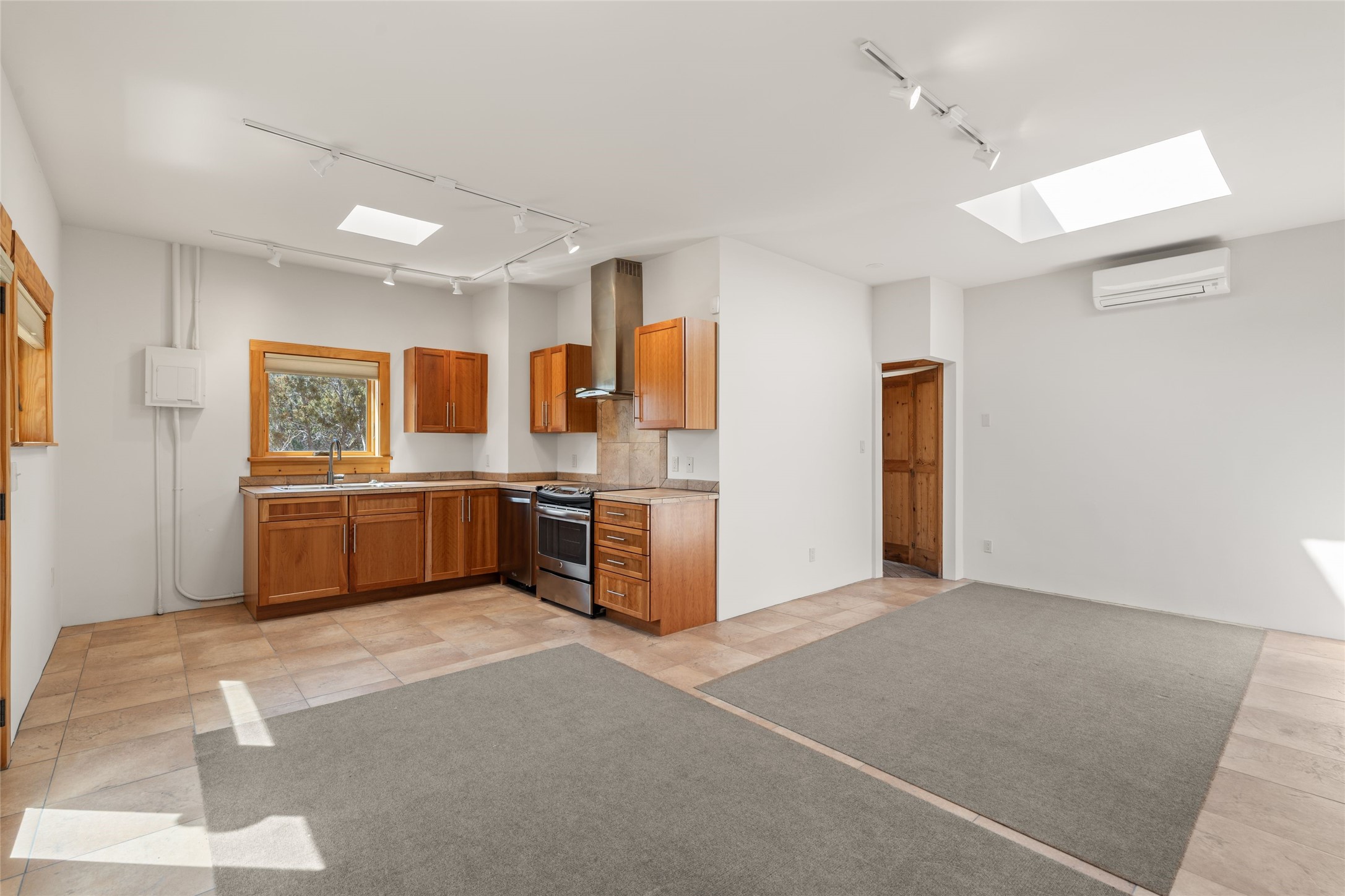 Views, privacy, acreage! Rural living close to town. This approx 2675 sq. ft. main house and approx 615 sq. ft. guest house are located on 10.86 acres in Las Dos, a subdivision of large lots in the NW Quadrant, 25 minutes from downtown Sant Fe. Only one owner - the internationally acclaimed poet, linguist and anthropologist - Nathaniel Tarn. This is a unique estate. The main house was built in 1984 to house a significant library which encompassed global interests in literature, history and anthropology. The principal residence is multi-level and the views to the Jemez and Sangre de Cristo Mountain Ranges are spectacular. The main level comprises open-plan kitchen, dining and living room with a soaring, two-story high ceiling. Also on the main level are two bedrooms, two bathrooms, art gallery spaces and a laundry room. Up a half flight of stairs there's a private office. Another half-flight of stairs accesses a huge ante-chamber which overlooks the living area and a second, large private office. Throughout the house there are built-in book-cases. The large, surprise bonus is the basement - configured as a library for Nathaniel Tarn's extensive book collection, but which can be adapted for many uses - a home exercise room, a media room or whatever activity the new owner pursues. Steps away from the main house there is a one-bedroom, one bathroom, detached guest house with living room and kitchenette. Built in approximately 1999 as part studio, it is a huge addition to the flexible uses of this amazing property. Throughout both residences there is ample light. A rear portal provide an intimate space for the enjoyment of outside living. Up to four horses are permitted. The property is the estate of the original owner. The new owner will likely wish to update the kitchen and bathrooms