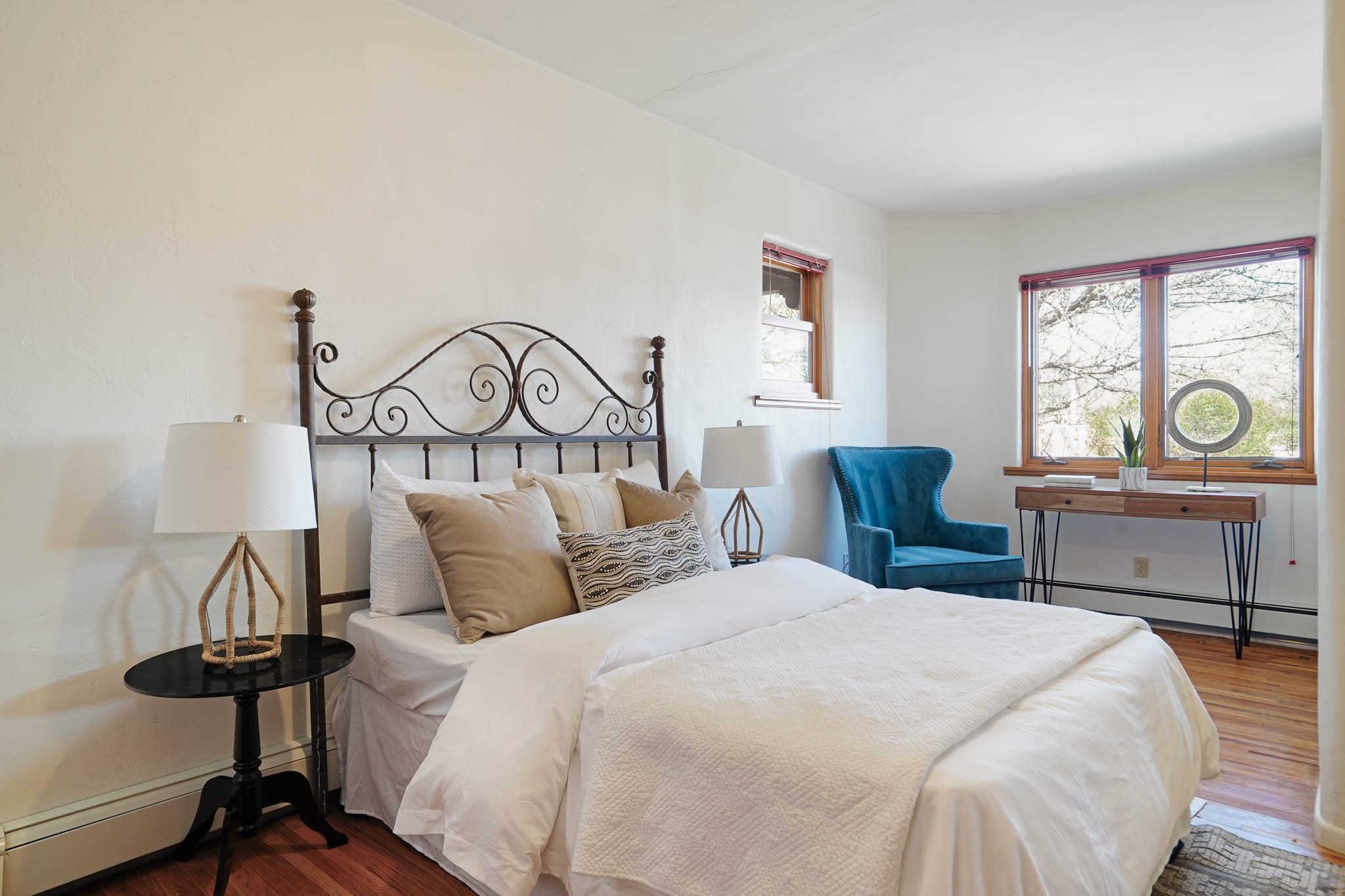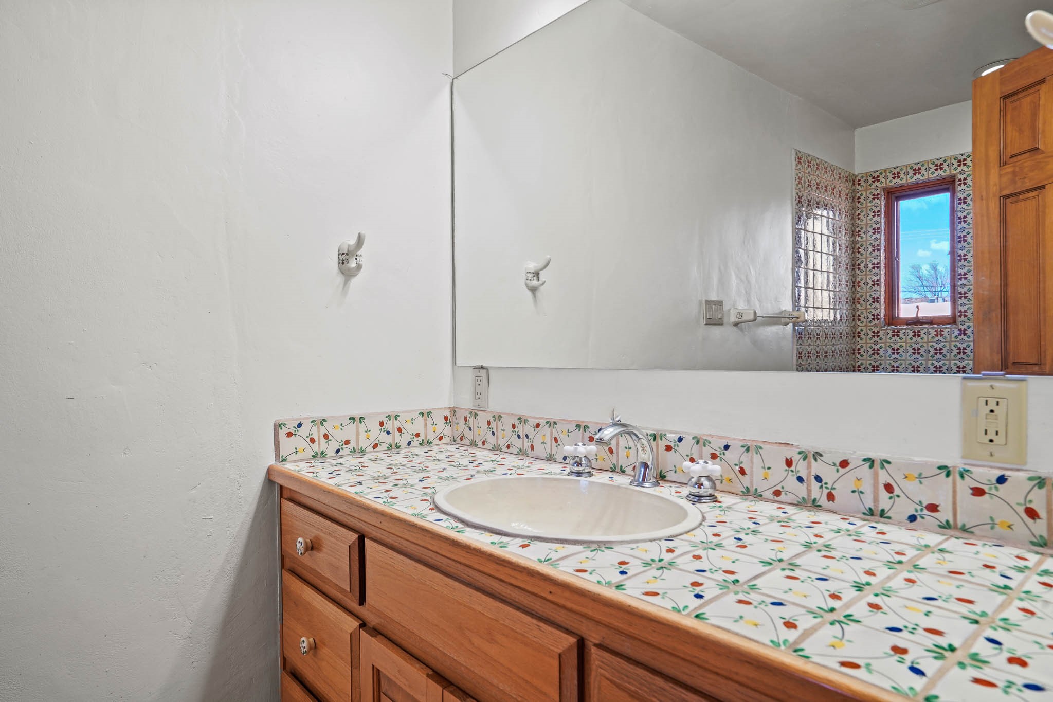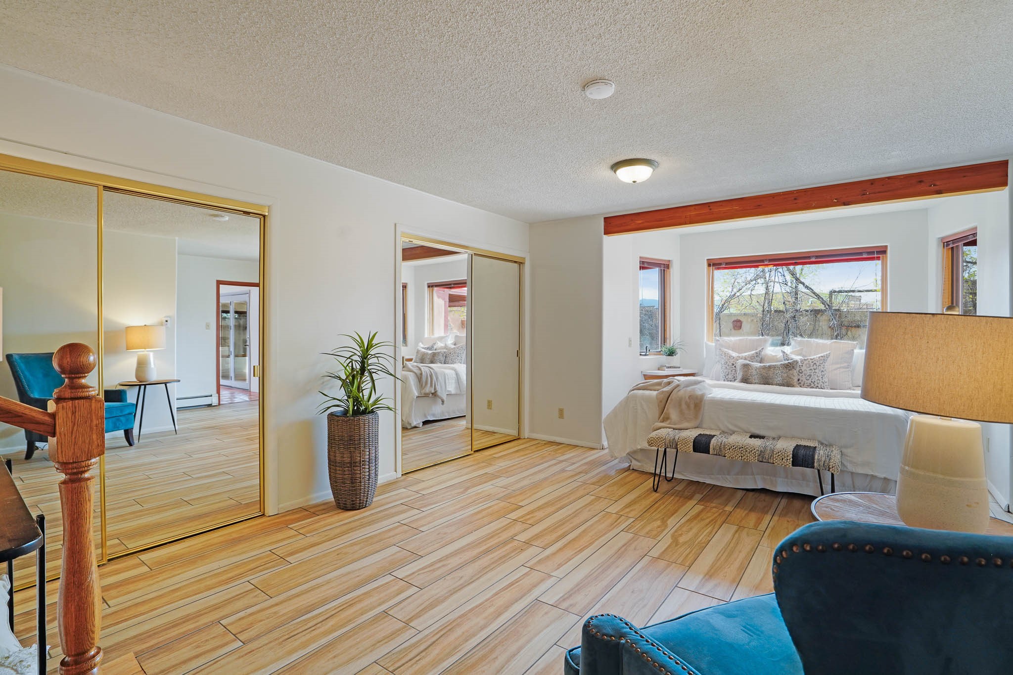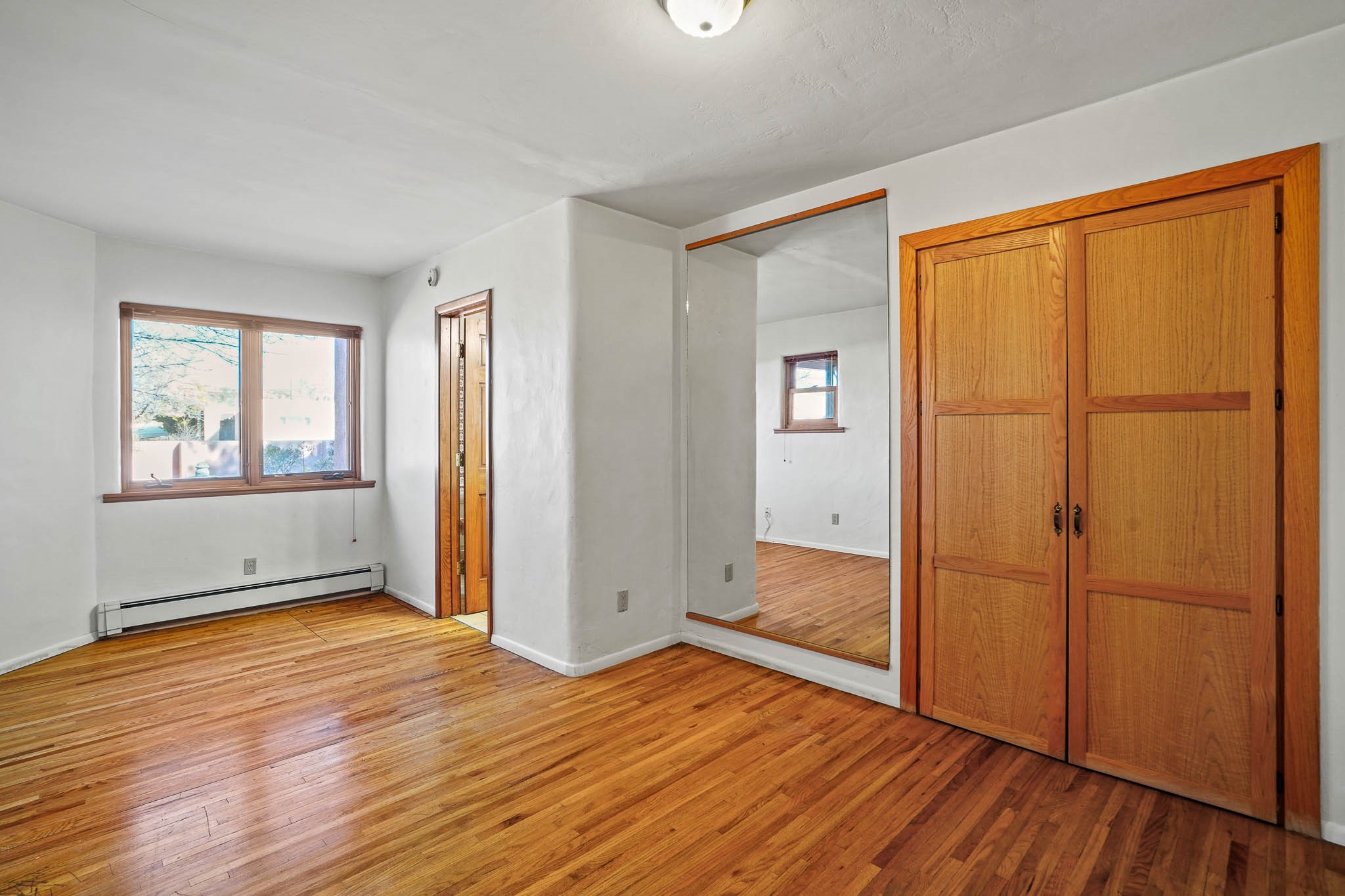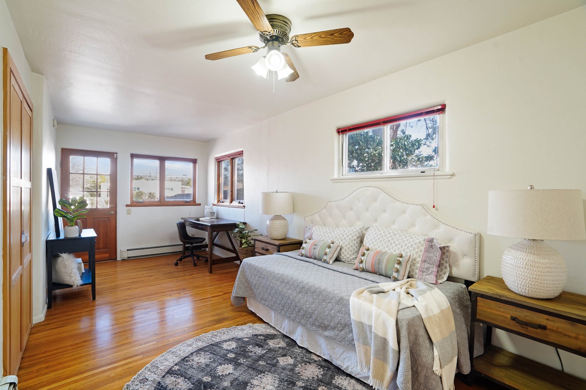 This residence is an exceptionally good value for the ever popular Casa Solana area. New roof 2025!! Additions over the years include a great room with fireplace insert, dining room, master bedroom and bath, additional bathroom and utility room. The back portal was enclosed and features coved ceilings, windows, heating and access to the back yard. This diverse space makes a wonderful summer room, kids space or additional space for guests. The original wood flooring is featured in the original part of the home and the front living area has the corner kiva fireplace these homes are known for. The front and back yards are walled for privacy and both have water features. Sunrises and good views of the Sangre de Cristo Mountains can be enjoyed from the back yard. Aside from the one car garage, the property features 3 distinct areas for storage, two being larger and perfect for sports and yard equipment and seasonal storage.