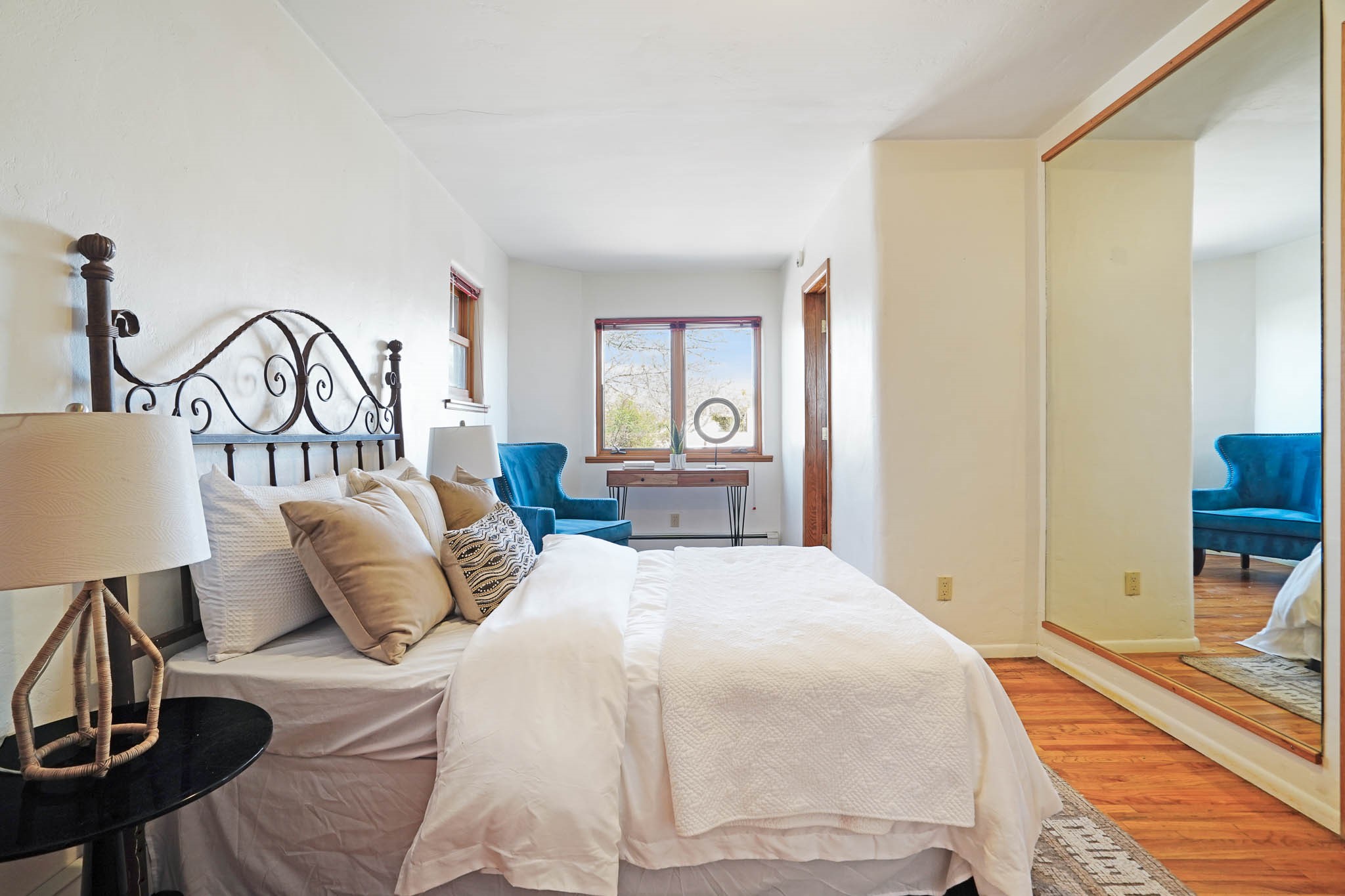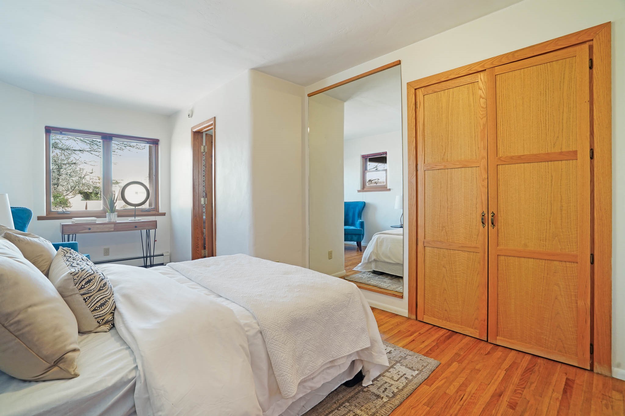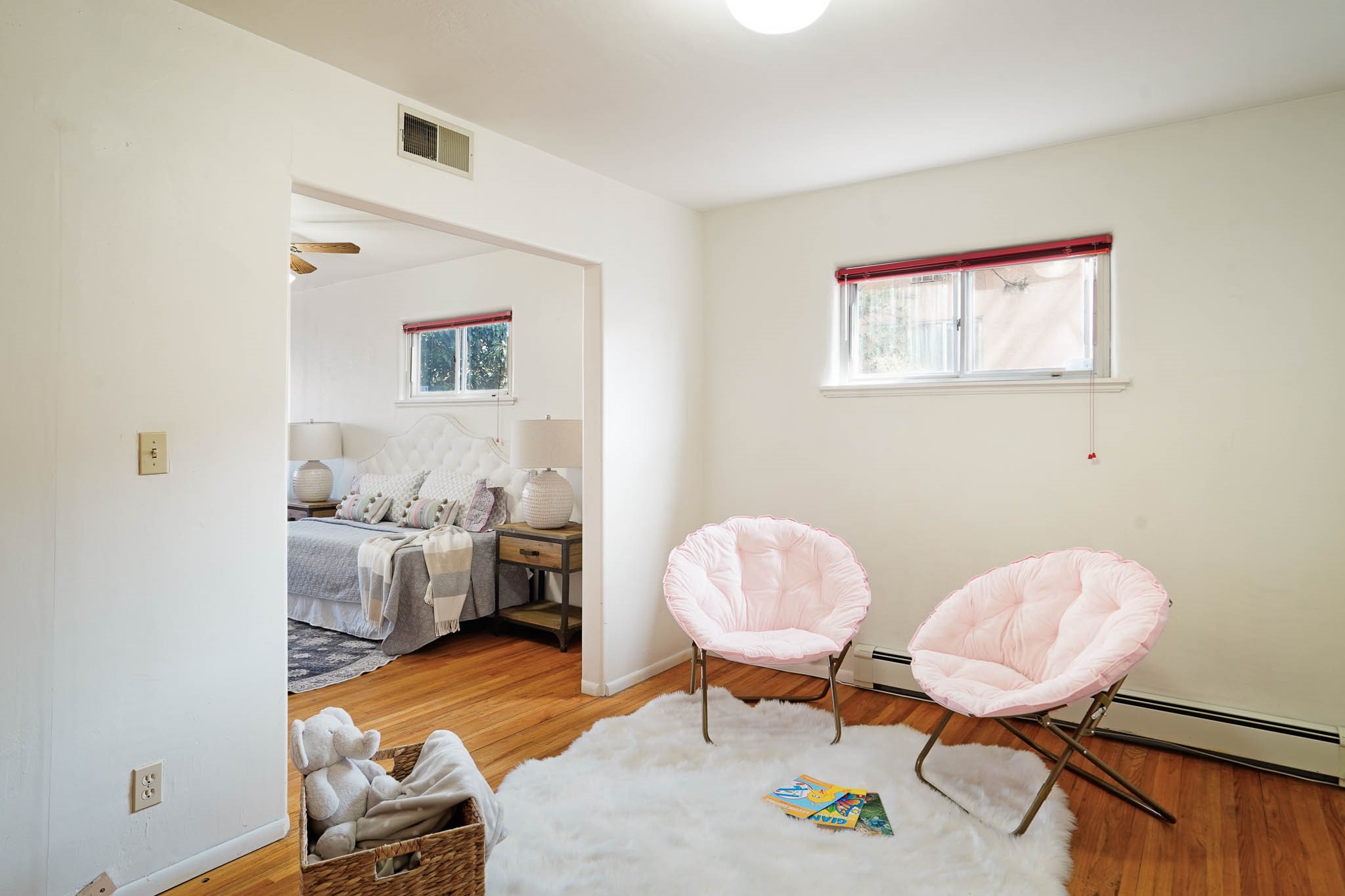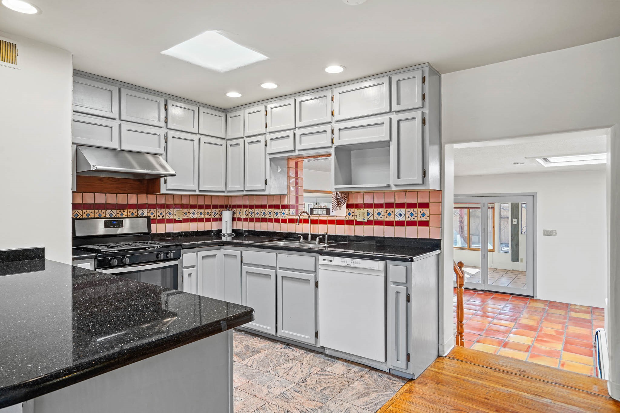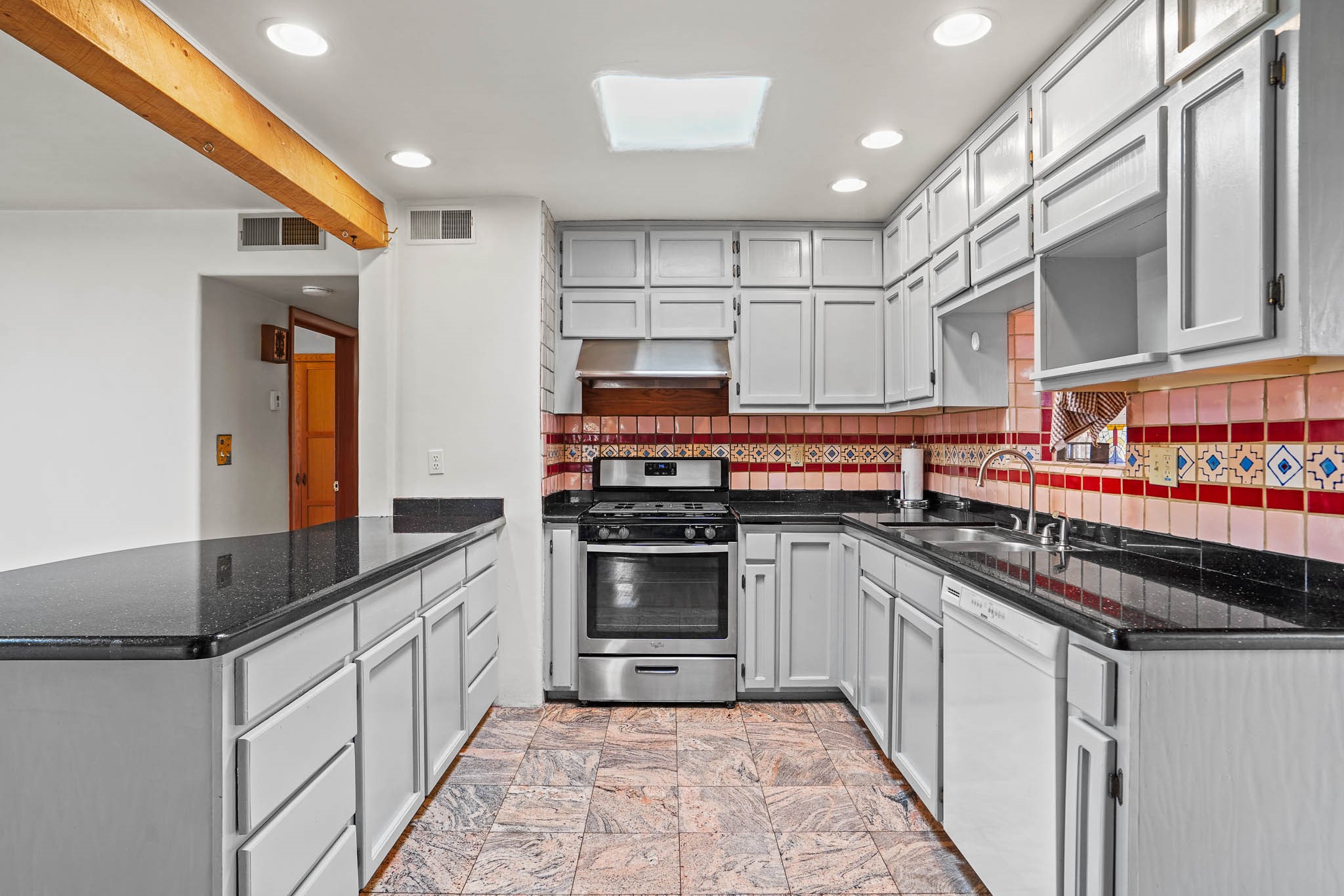 This residence is an exceptionally good value for the ever popular Casa Solana area. New roof 2025!! Additions over the years include a great room with fireplace insert, dining room, master bedroom and bath, additional bathroom and utility room. The back portal was enclosed and features coved ceilings, windows, heating and access to the back yard. This diverse space makes a wonderful summer room, kids space or additional space for guests. The original wood flooring is featured in the original part of the home and the front living area has the corner kiva fireplace these homes are known for. The front and back yards are walled for privacy and both have water features. Sunrises and good views of the Sangre de Cristo Mountains can be enjoyed from the back yard. Aside from the one car garage, the property features 3 distinct areas for storage, two being larger and perfect for sports and yard equipment and seasonal storage.
