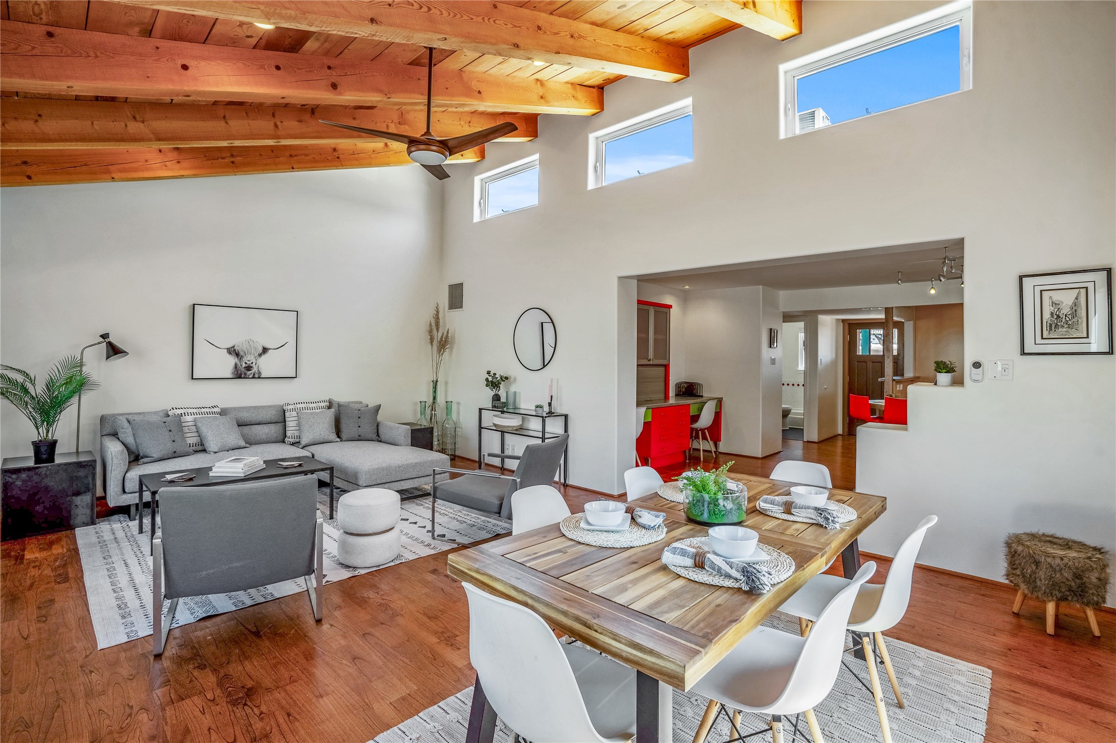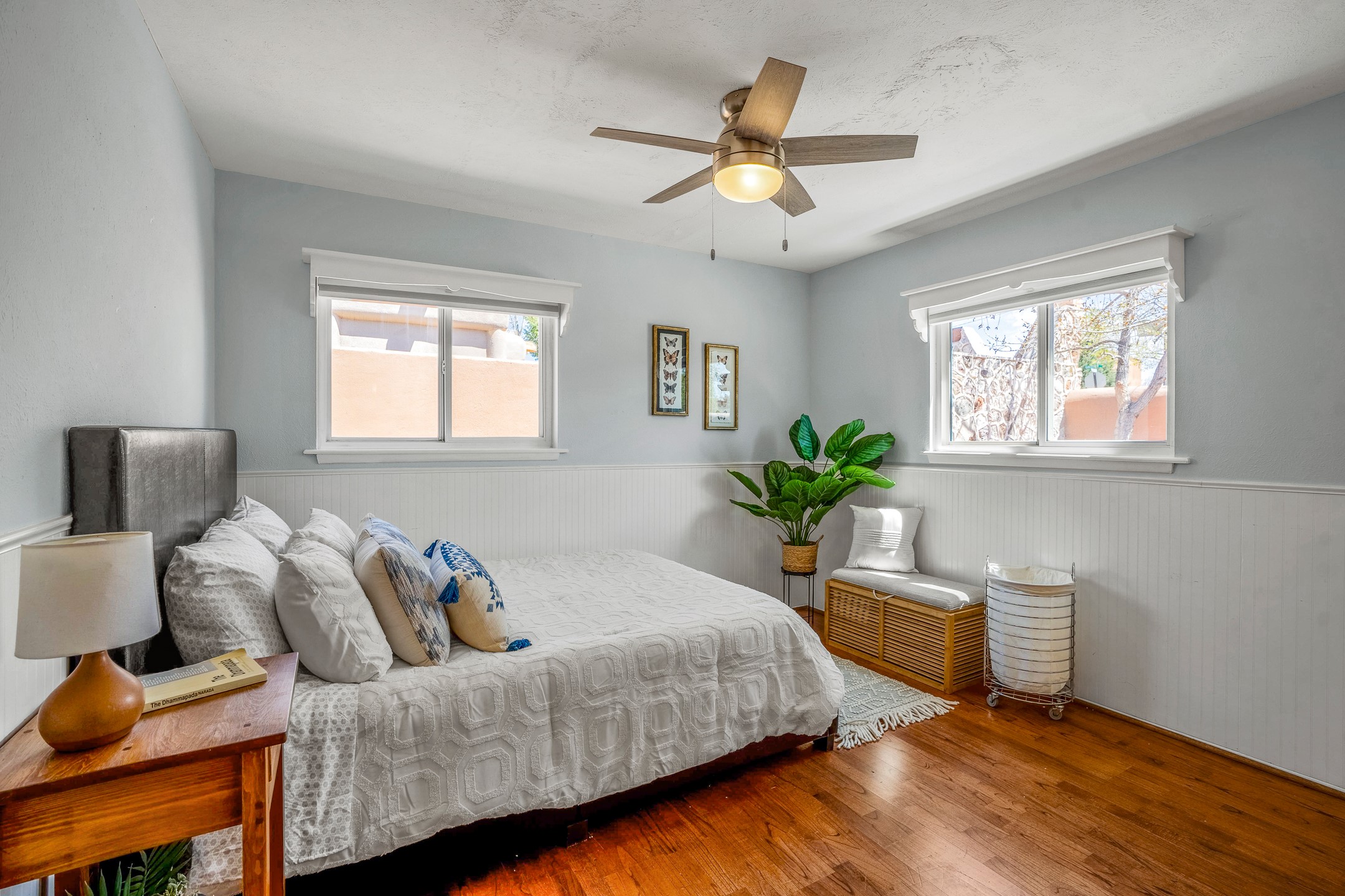 Nestled in the highly desirable South Capitol neighborhood and located within the sought-after Wood Gormley Elementary School District, 1204 Galisteo Street offers the perfect blend of location, versatility, and charm. This spacious 4-bedroom, 4-bathroom home spans approximately 2,300 square feet and is ideally situated within walking distance to both the Plaza and the Railyard. Enter through a lovely East-facing front courtyard featuring a gazebo--an ideal setting for morning coffee or al fresco dining. Inside, the colorful and welcoming kitchen boasts a large island perfect for casual meals and entertaining. The great room, with its cathedral ceiling, fills with natural light and frames expansive views of the stunning Santa Fe sky. The main level also includes two bedrooms and two bathrooms, one with an ensuite bath for added privacy. Downstairs, an interior staircase leads to two generous bedrooms, each with large walk-in closets and private ensuite bathrooms. The south bedroom opens to a screened patio with storage, currently used as a gym--an adaptable space that could serve as a studio, office, or peaceful retreat. The true surprise of this South Capitol gem is the expansive and private backyard--ideal for play, gardening, or simply unwinding. Whether you envision a greenhouse, a lush garden, or a safe space for kids to roam, this backyard offers endless potential. 1204 Galisteo represents incredible value in a prime downtown location--don't miss this opportunity to live in one of Santa Fe's most coveted neighborhoods.