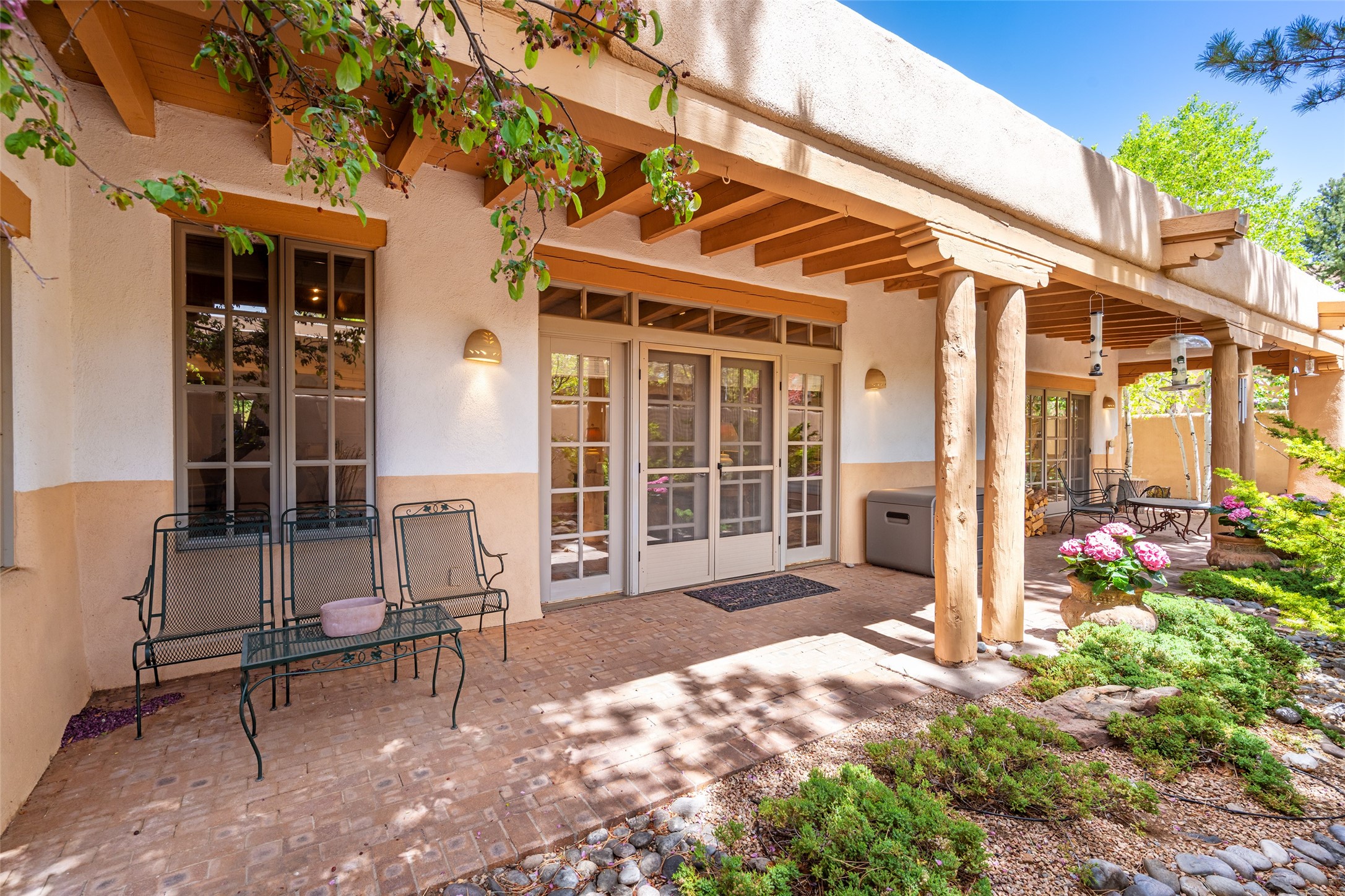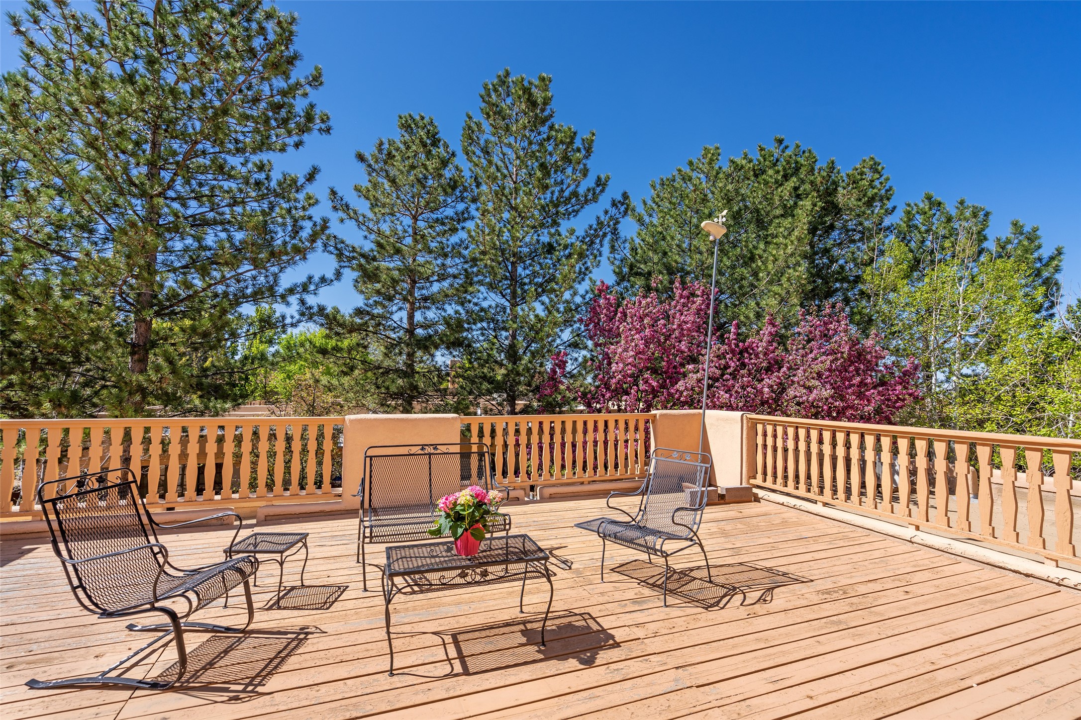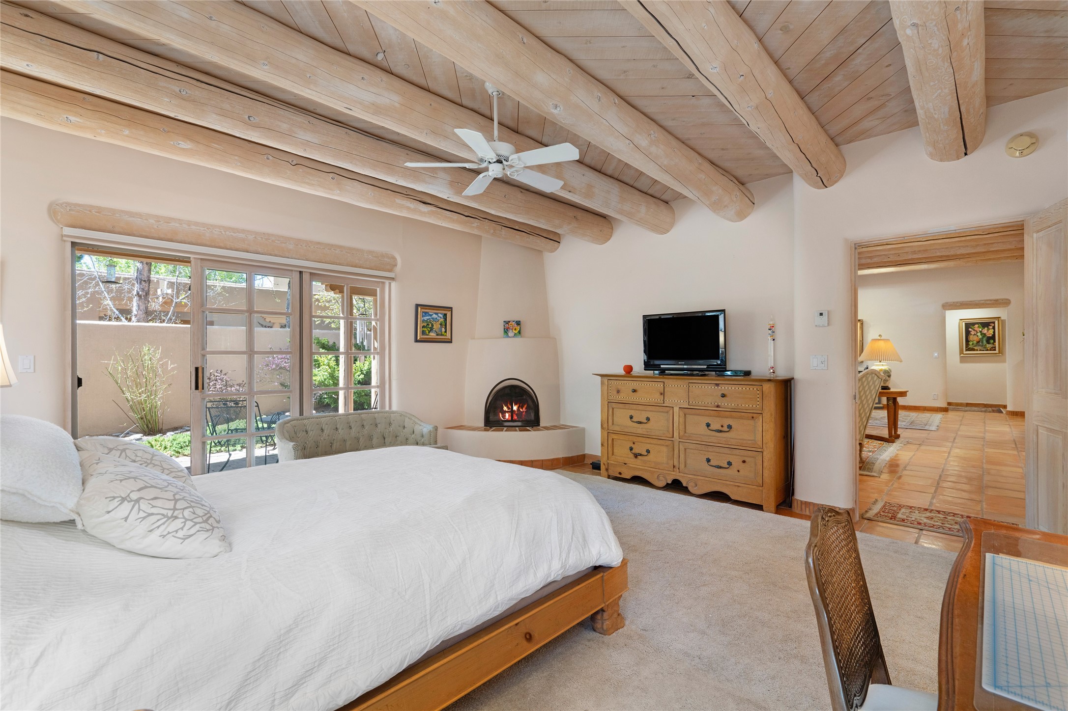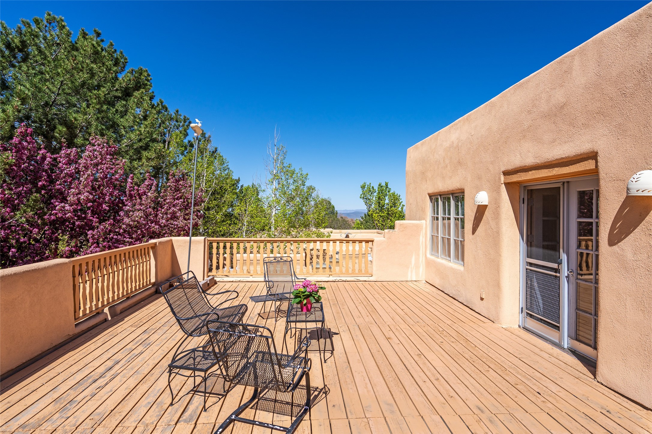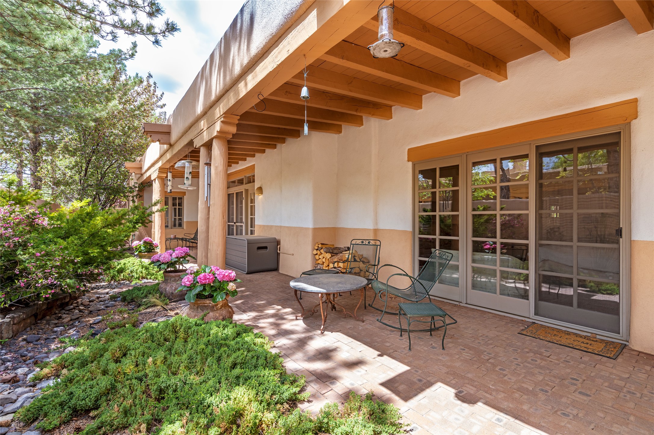ESTATE SALE!Experience the perfect blend of Southwestern charm and modern luxury in this exceptional 4-bedroom, 4-bathroom home located within Santa Fe's prestigious Quail Run gated community.The main level boasts dual primary suites, one featuring a cozy kiva fireplace and sliding French doors that open to a serene, landscaped courtyard. An additional spacious bedroom with an en-suite bathroom provides comfort for family or guests.Upstairs, a versatile multi-use room with its own bathroom offers flexibility as a bedroom, office, or game room, and opens onto a large terrace with breathtaking mountain views.The chef's kitchen is equipped with a gas stove, double oven, Sub-Zero refrigerator, and a generous island with banquet seating, catering to culinary enthusiasts. The living area features high viga ceilings, Saltillo tile flooring, and a traditional kiva fireplace, creating an inviting ambiance.Additional highlights include a two-car garage fitted with a ChargePoint® Home Flex Level 2 electric vehicle charger.As a resident of Quail Run, enjoy access to a 9-hole PGA-rated golf course, tennis and pickleball courts, a full-service fitness center with classes, heated indoor lap pool, hydrotherapy pool, and a clubhouse with a restaurant.Situated just minutes from Santa Fe's historic downtown, this home offers the perfect balance of peaceful living and convenient access to the city's vibrant cultural scene.