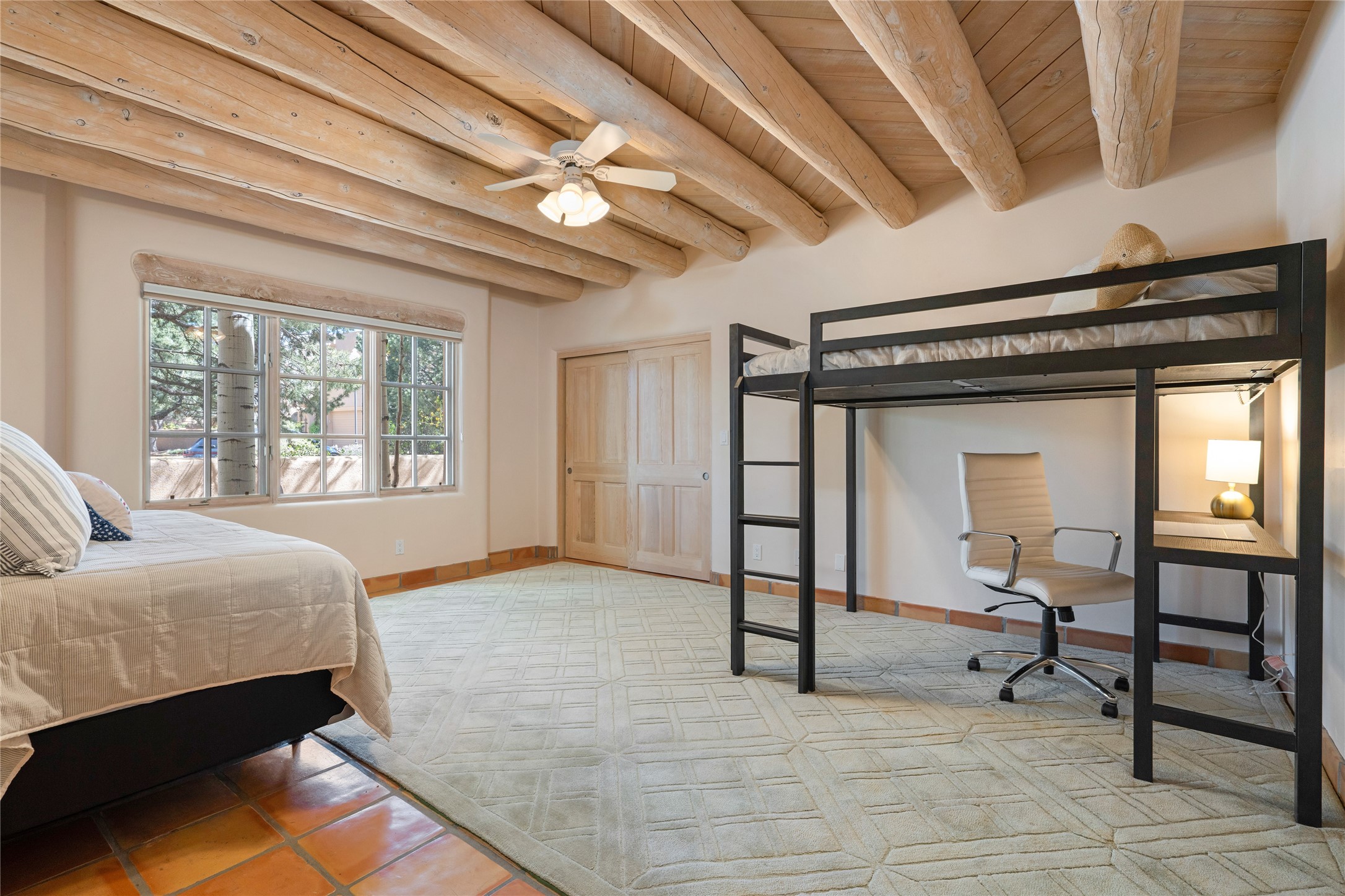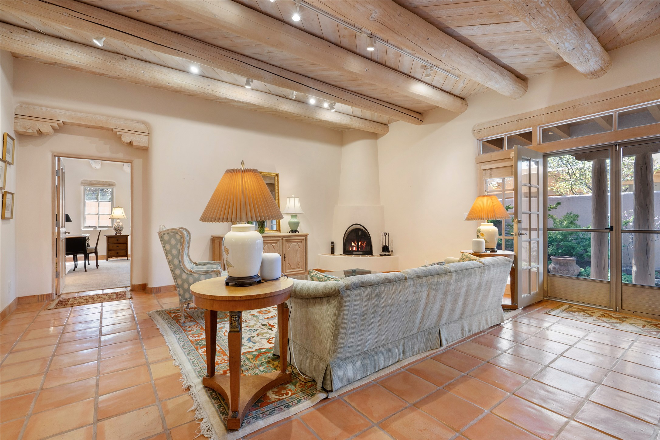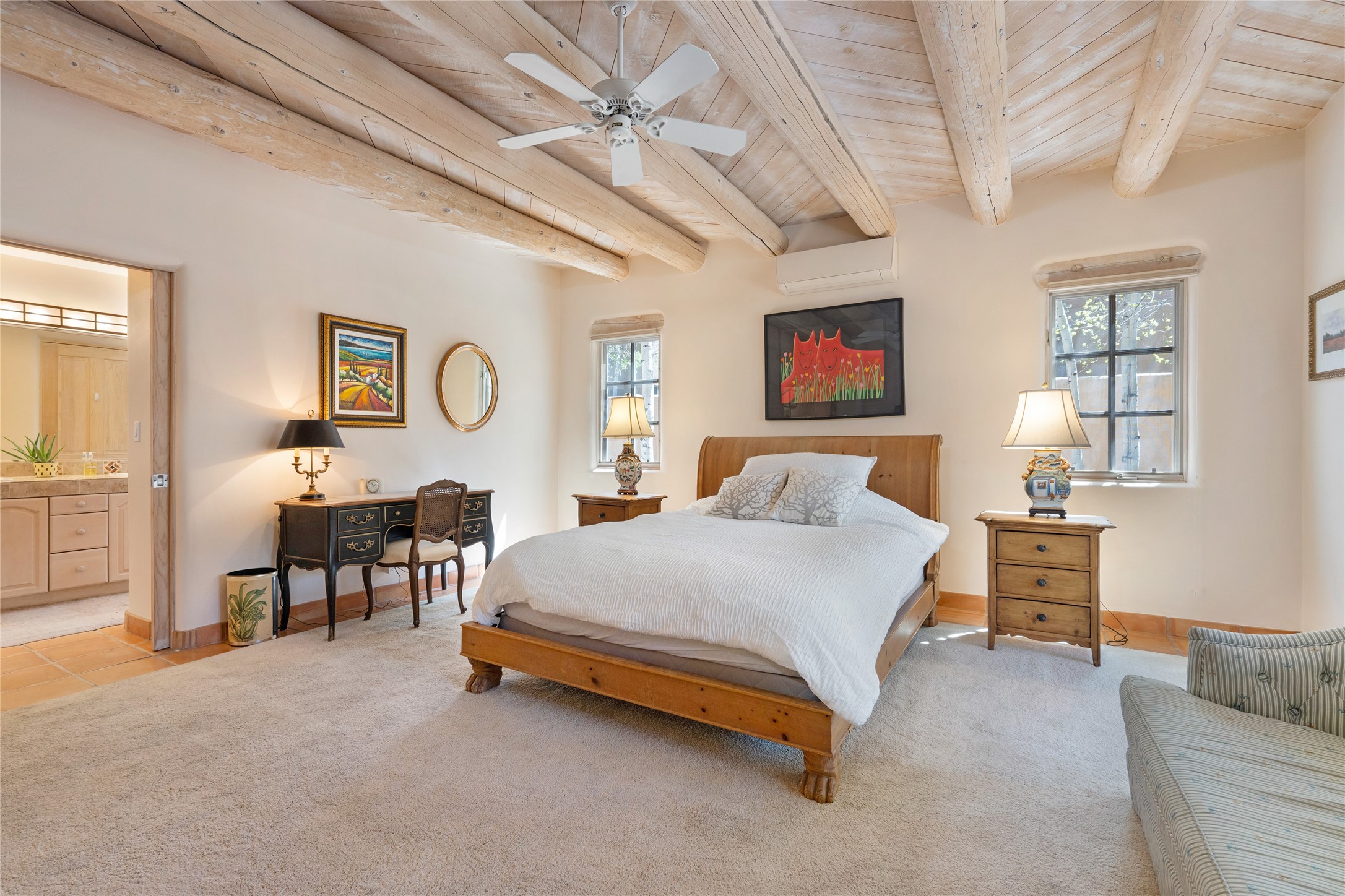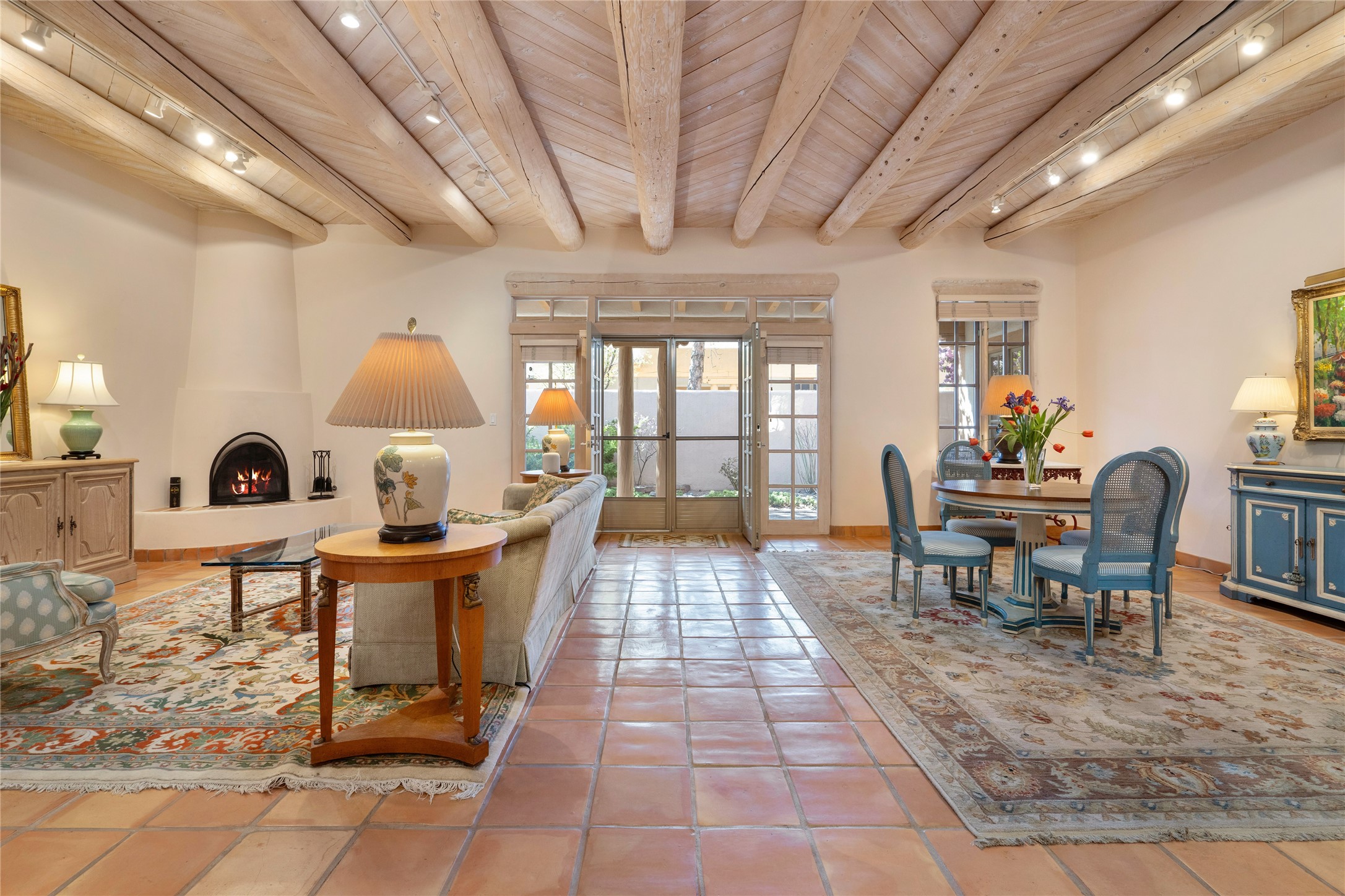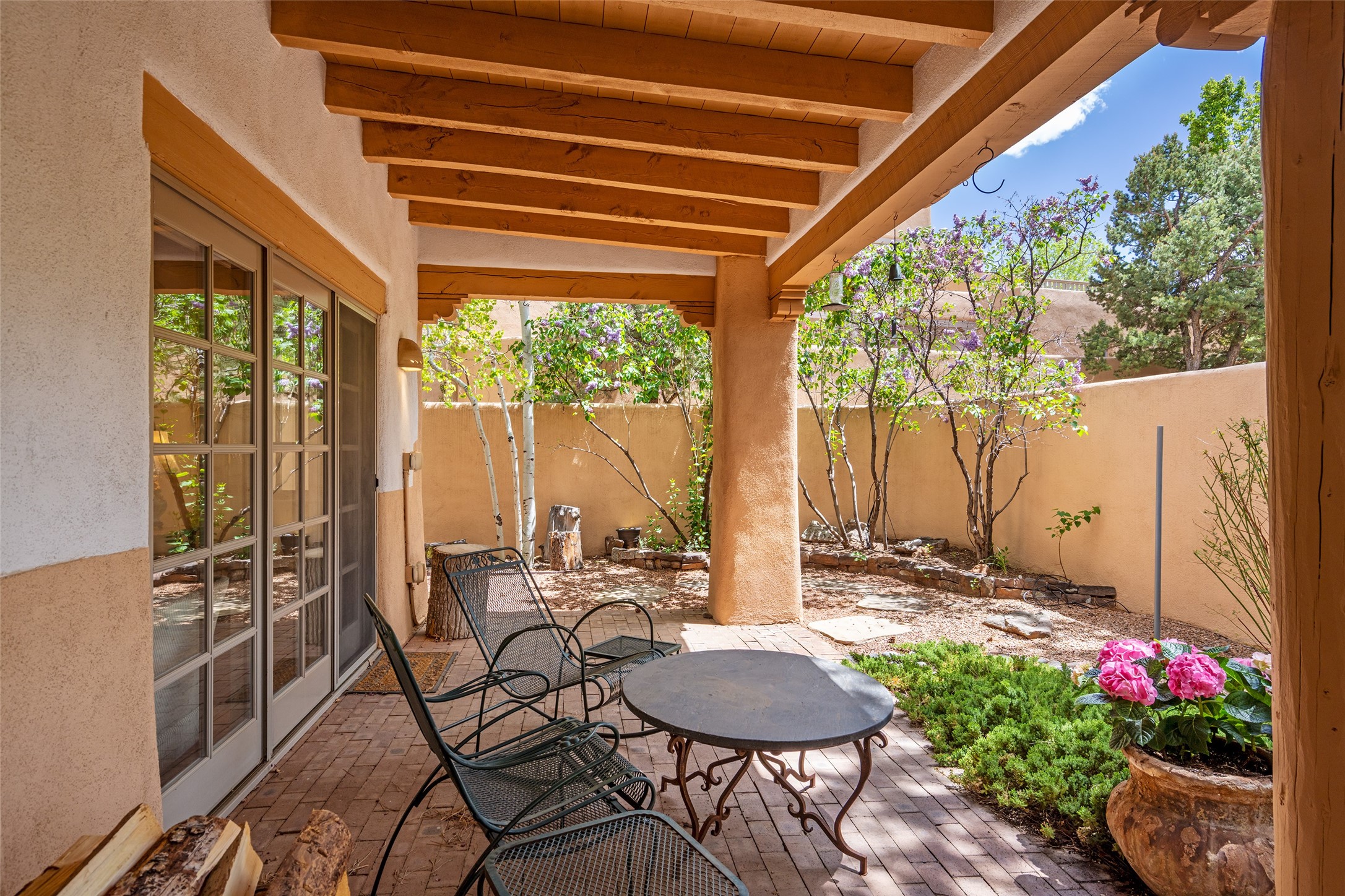 ESTATE SALE!Experience the perfect blend of Southwestern charm and modern luxury in this exceptional 4-bedroom, 4-bathroom home located within Santa Fe's prestigious Quail Run gated community.The main level boasts dual primary suites, one featuring a cozy kiva fireplace and sliding French doors that open to a serene, landscaped courtyard. An additional spacious bedroom with an en-suite bathroom provides comfort for family or guests.Upstairs, a versatile multi-use room with its own bathroom offers flexibility as a bedroom, office, or game room, and opens onto a large terrace with breathtaking mountain views.The chef's kitchen is equipped with a gas stove, double oven, Sub-Zero refrigerator, and a generous island with banquet seating, catering to culinary enthusiasts. The living area features high viga ceilings, Saltillo tile flooring, and a traditional kiva fireplace, creating an inviting ambiance.Additional highlights include a two-car garage fitted with a ChargePoint® Home Flex Level 2 electric vehicle charger.As a resident of Quail Run, enjoy access to a 9-hole PGA-rated golf course, tennis and pickleball courts, a full-service fitness center with classes, heated indoor lap pool, hydrotherapy pool, and a clubhouse with a restaurant.Situated just minutes from Santa Fe's historic downtown, this home offers the perfect balance of peaceful living and convenient access to the city's vibrant cultural scene.