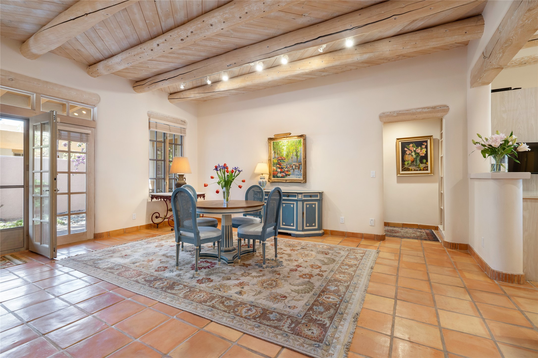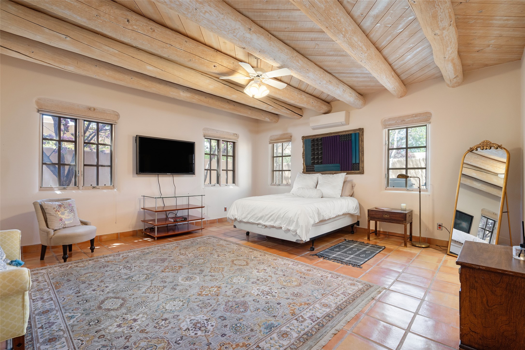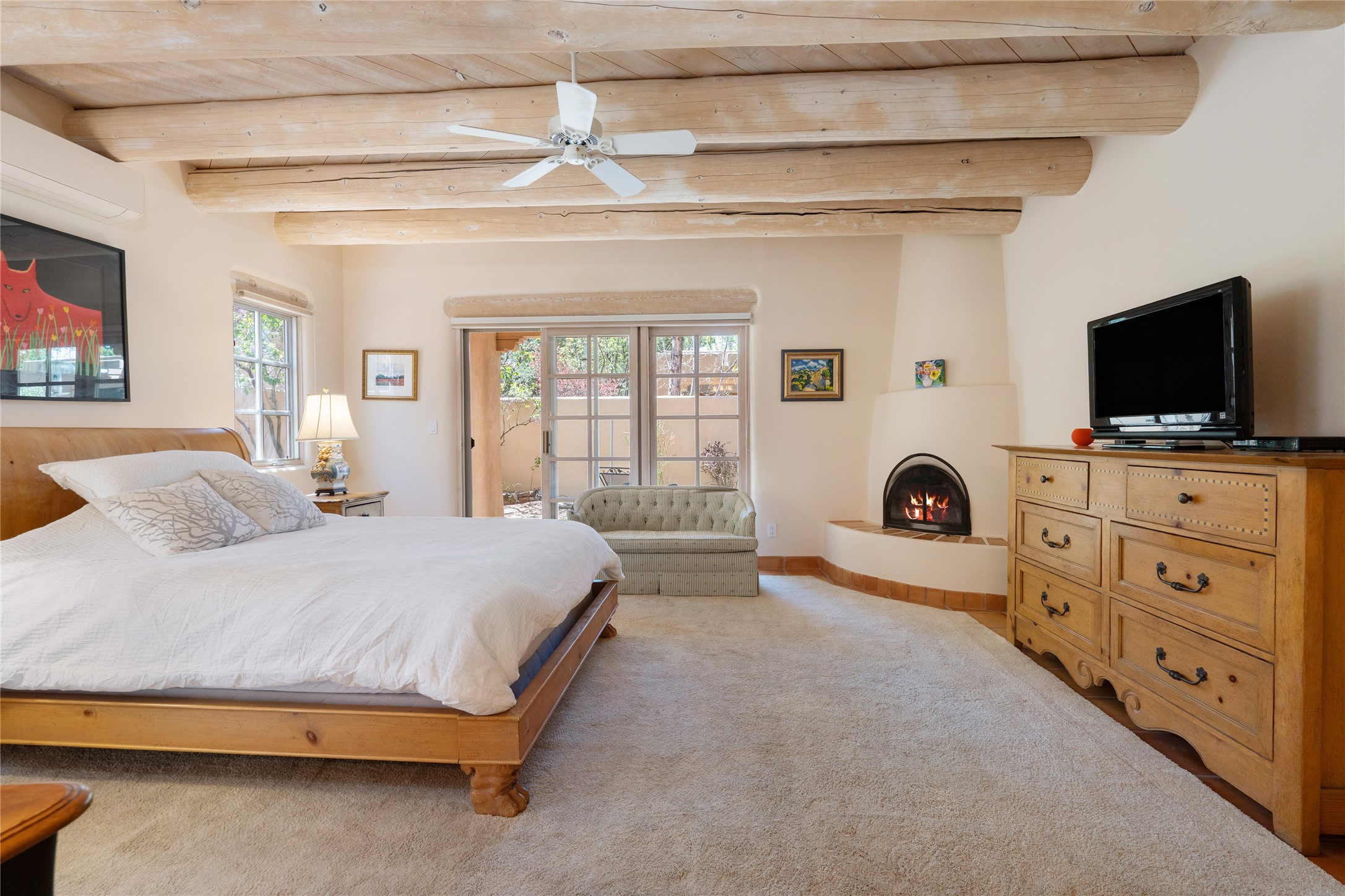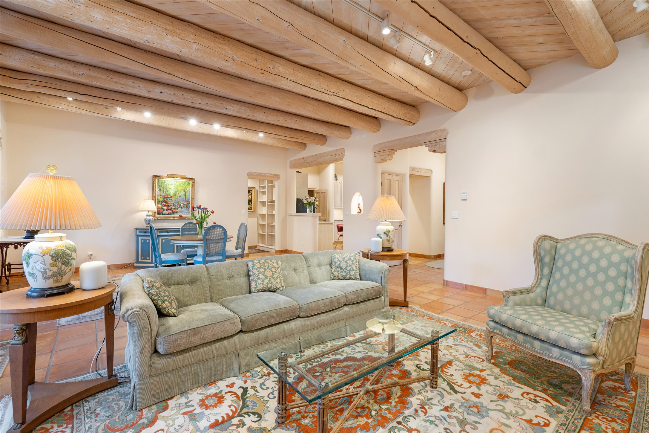ESTATE SALE!Experience the perfect blend of Southwestern charm and modern luxury in this exceptional 4-bedroom, 4-bathroom home located within Santa Fe's prestigious Quail Run gated community.The main level boasts dual primary suites, one featuring a cozy kiva fireplace and sliding French doors that open to a serene, landscaped courtyard. An additional spacious bedroom with an en-suite bathroom provides comfort for family or guests.Upstairs, a versatile multi-use room with its own bathroom offers flexibility as a bedroom, office, or game room, and opens onto a large terrace with breathtaking mountain views.The chef's kitchen is equipped with a gas stove, double oven, Sub-Zero refrigerator, and a generous island with banquet seating, catering to culinary enthusiasts. The living area features high viga ceilings, Saltillo tile flooring, and a traditional kiva fireplace, creating an inviting ambiance.Additional highlights include a two-car garage fitted with a ChargePoint® Home Flex Level 2 electric vehicle charger.As a resident of Quail Run, enjoy access to a 9-hole PGA-rated golf course, tennis and pickleball courts, a full-service fitness center with classes, heated indoor lap pool, hydrotherapy pool, and a clubhouse with a restaurant.Situated just minutes from Santa Fe's historic downtown, this home offers the perfect balance of peaceful living and convenient access to the city's vibrant cultural scene.