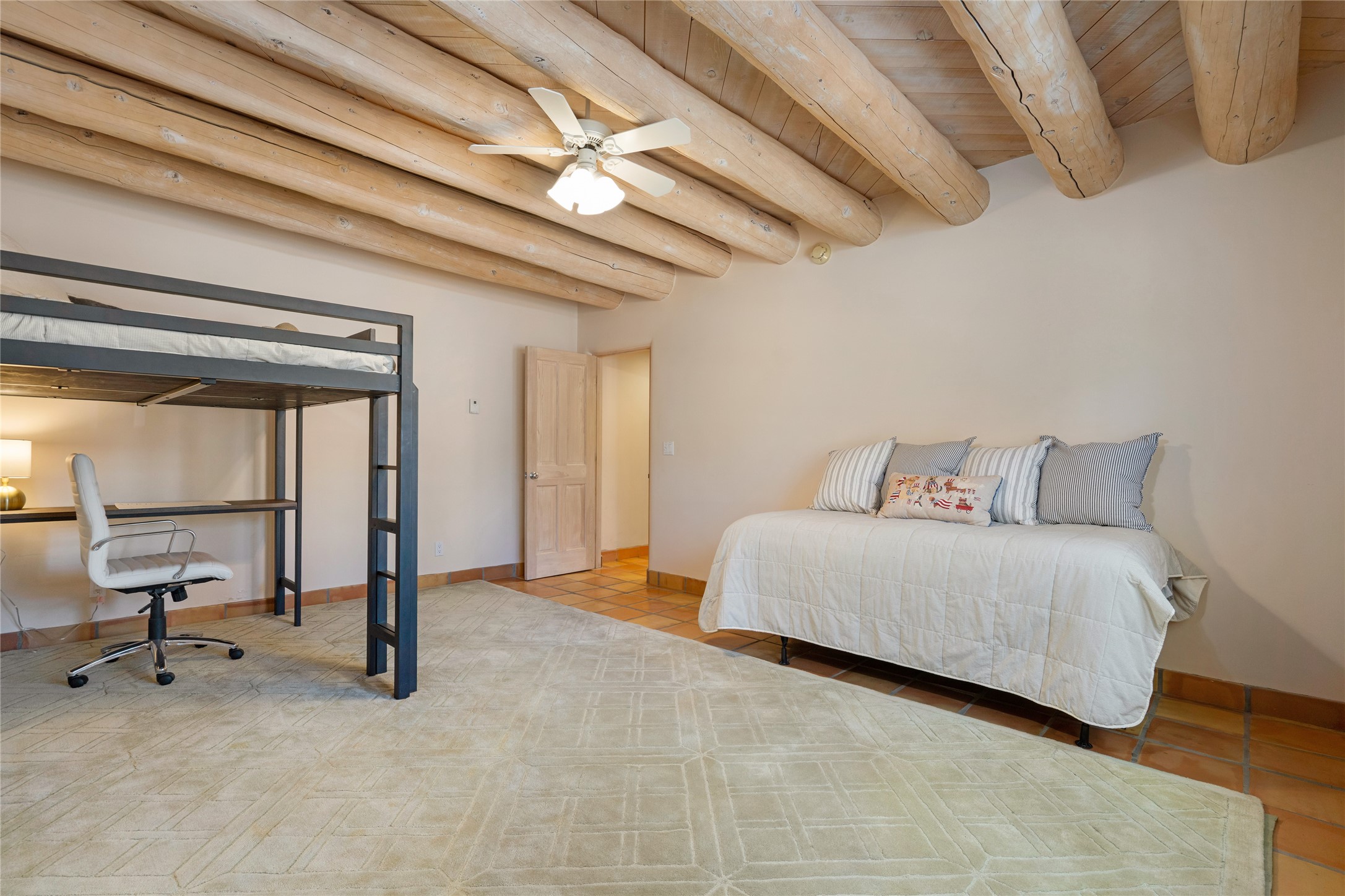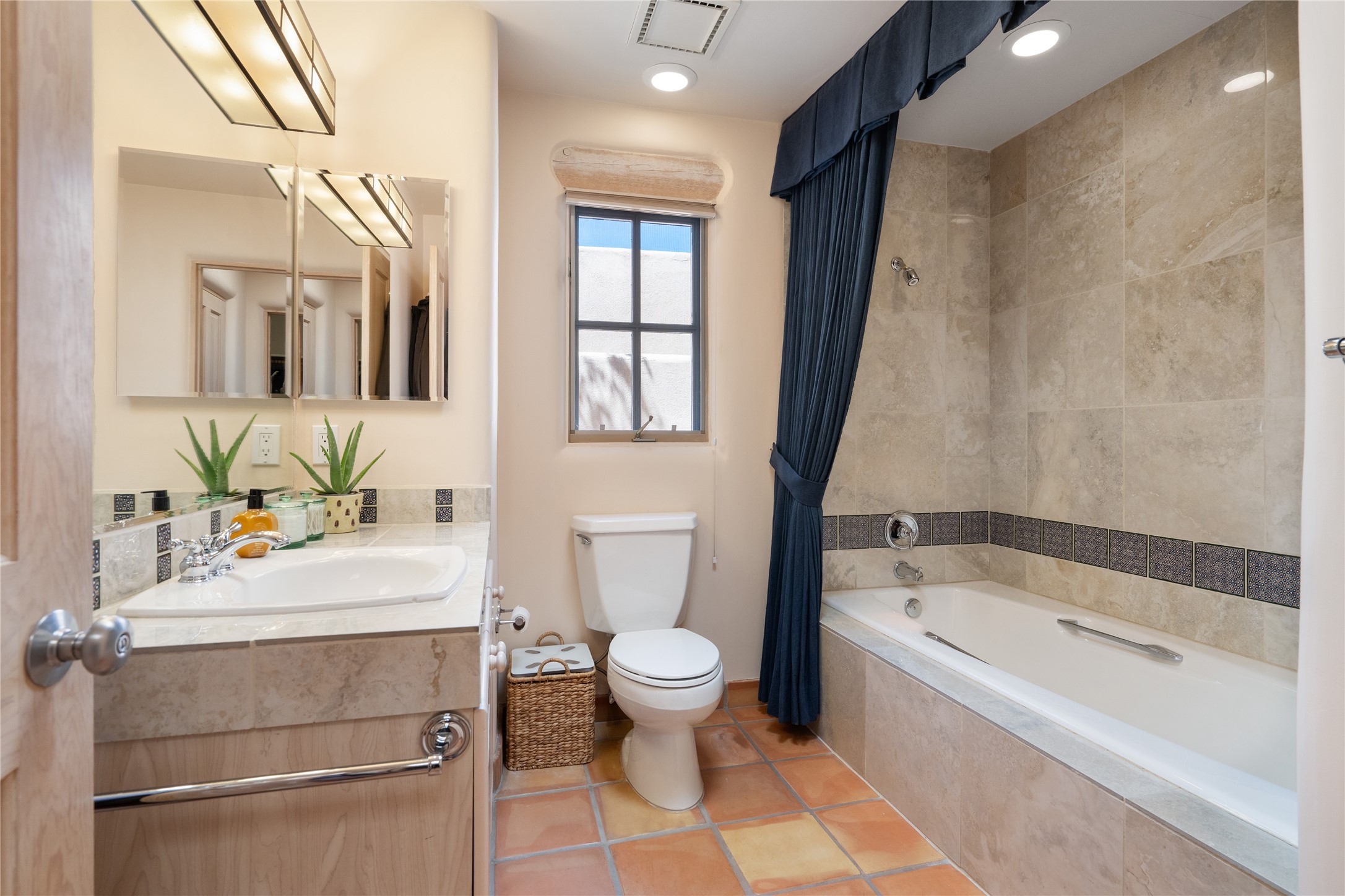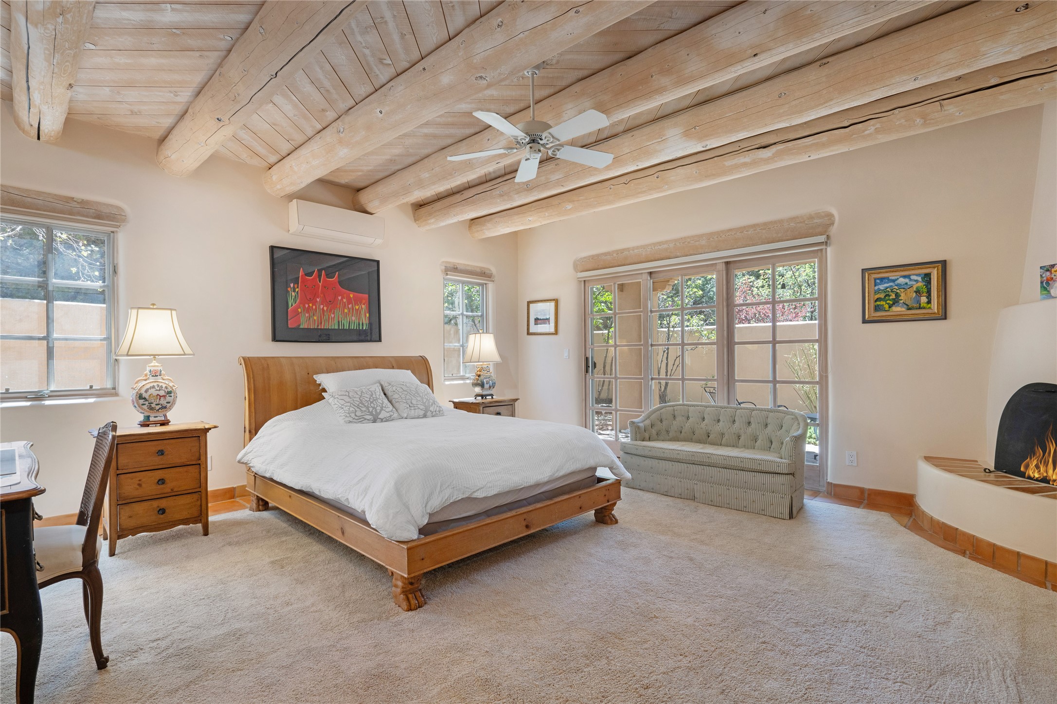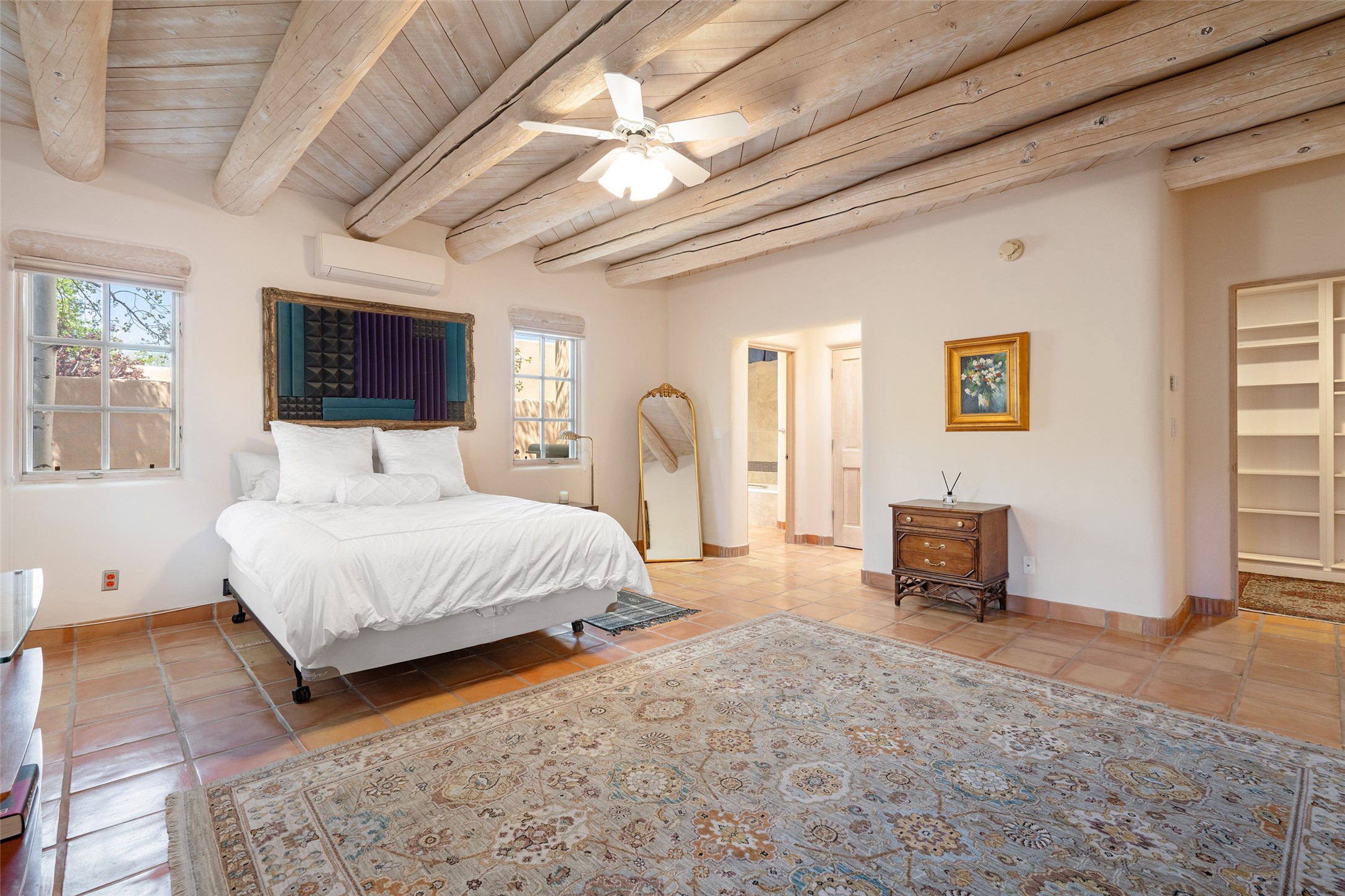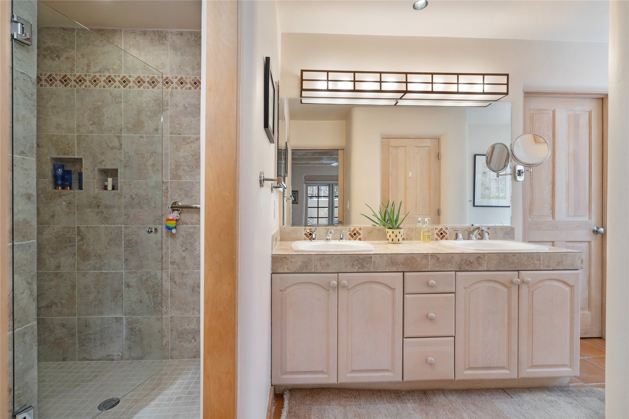 ESTATE SALE!Experience the perfect blend of Southwestern charm and modern luxury in this exceptional 4-bedroom, 4-bathroom home located within Santa Fe's prestigious Quail Run gated community.The main level boasts dual primary suites, one featuring a cozy kiva fireplace and sliding French doors that open to a serene, landscaped courtyard. An additional spacious bedroom with an en-suite bathroom provides comfort for family or guests.Upstairs, a versatile multi-use room with its own bathroom offers flexibility as a bedroom, office, or game room, and opens onto a large terrace with breathtaking mountain views.The chef's kitchen is equipped with a gas stove, double oven, Sub-Zero refrigerator, and a generous island with banquet seating, catering to culinary enthusiasts. The living area features high viga ceilings, Saltillo tile flooring, and a traditional kiva fireplace, creating an inviting ambiance.Additional highlights include a two-car garage fitted with a ChargePoint® Home Flex Level 2 electric vehicle charger.As a resident of Quail Run, enjoy access to a 9-hole PGA-rated golf course, tennis and pickleball courts, a full-service fitness center with classes, heated indoor lap pool, hydrotherapy pool, and a clubhouse with a restaurant.Situated just minutes from Santa Fe's historic downtown, this home offers the perfect balance of peaceful living and convenient access to the city's vibrant cultural scene.