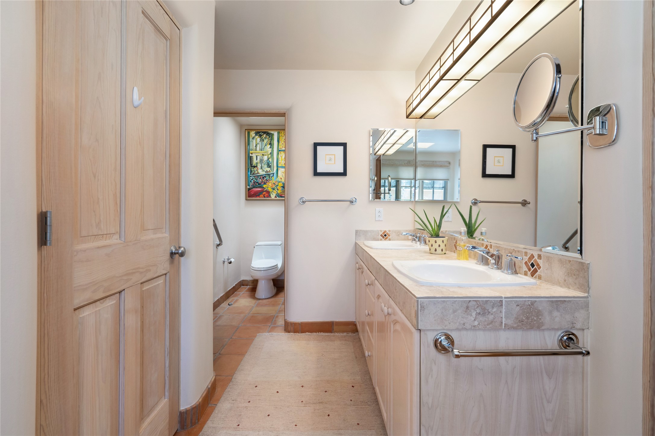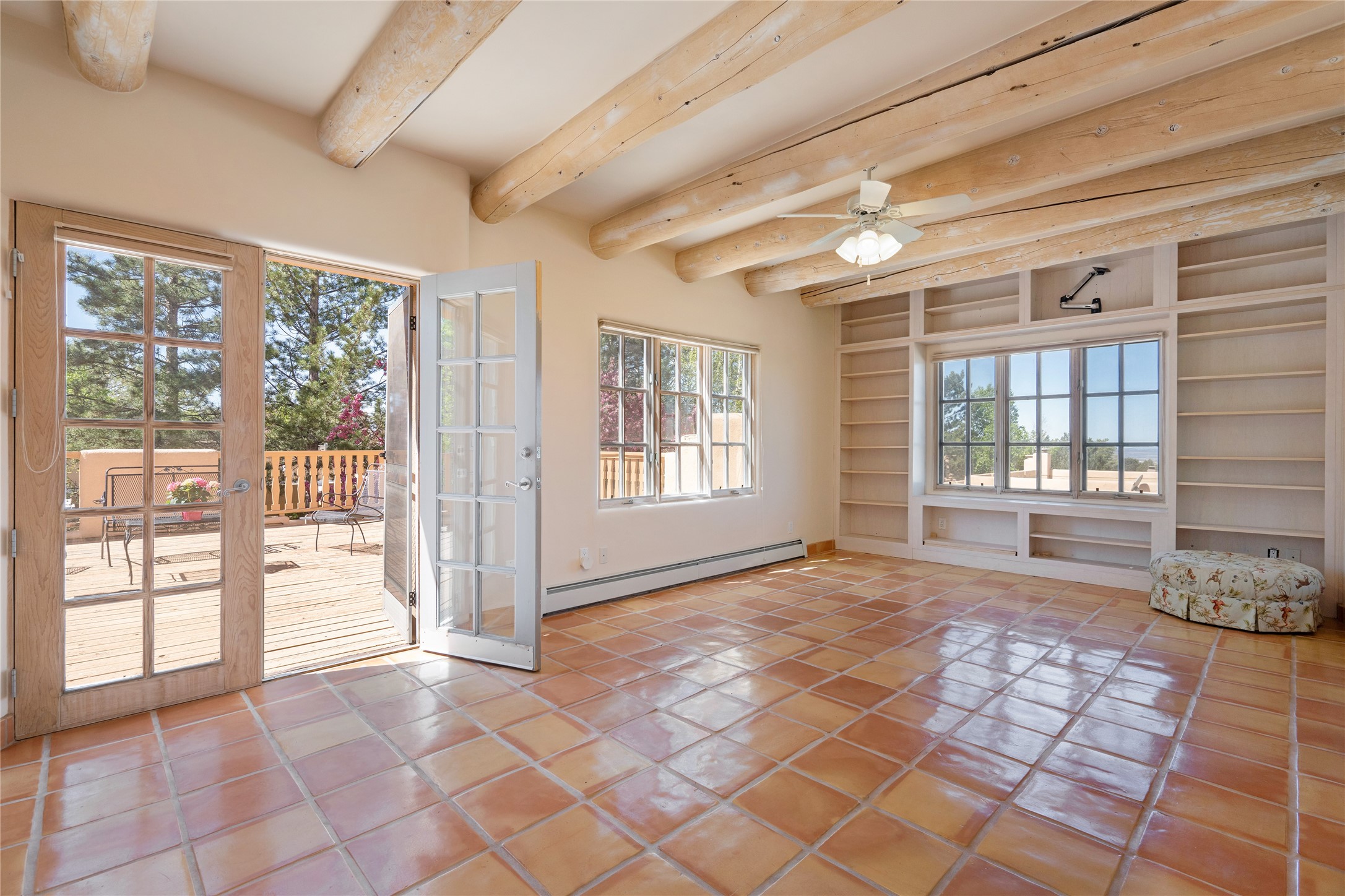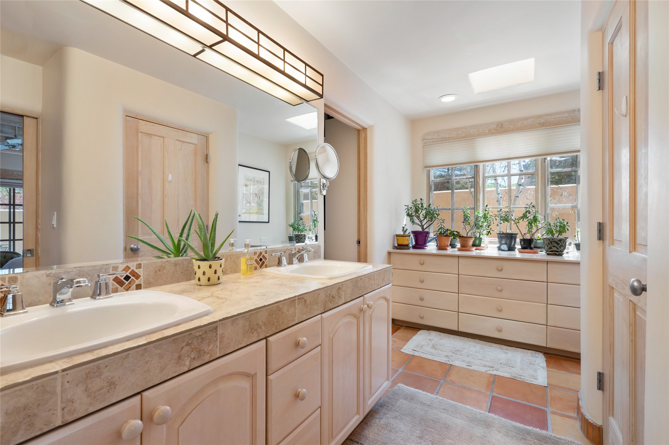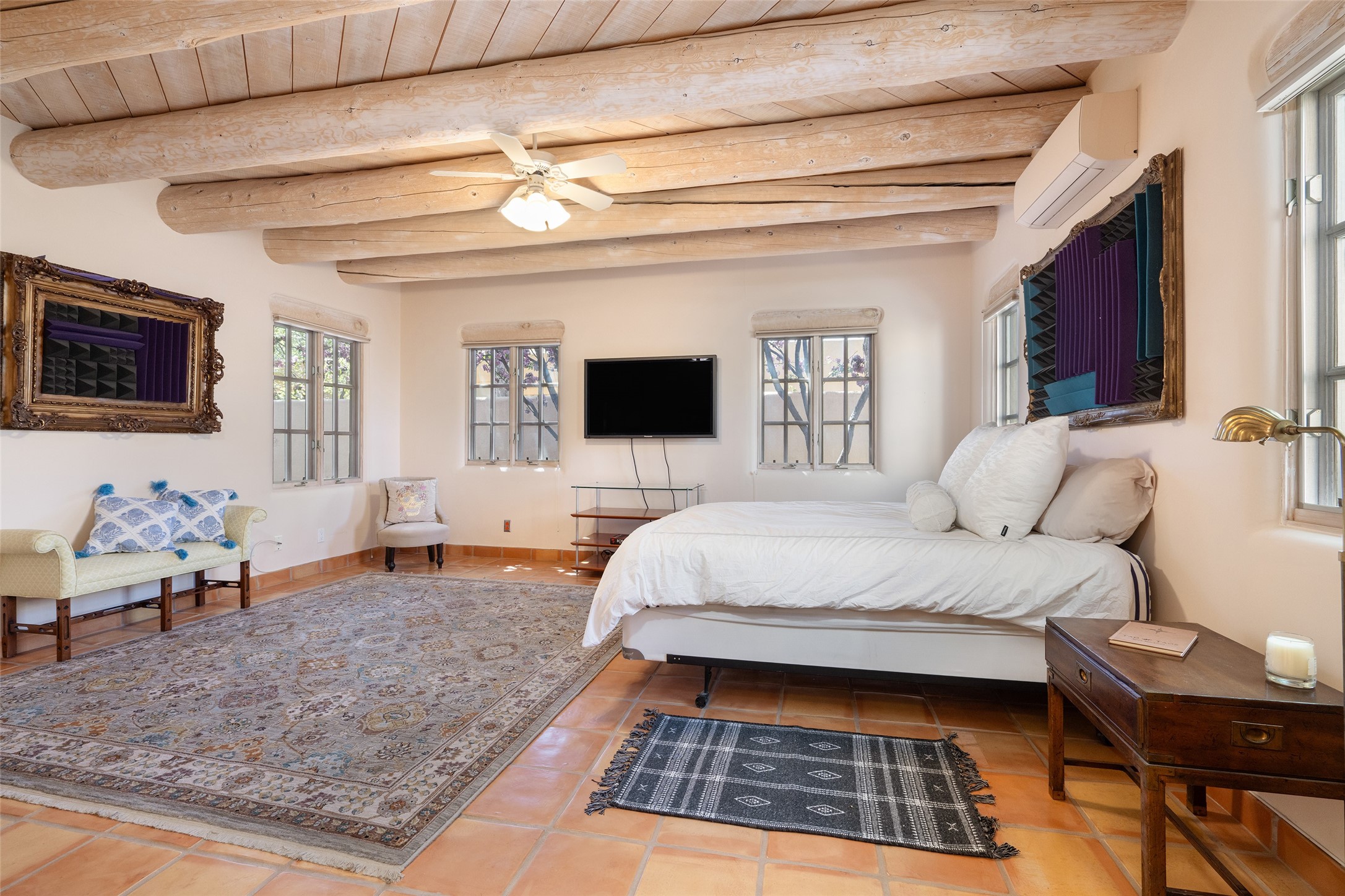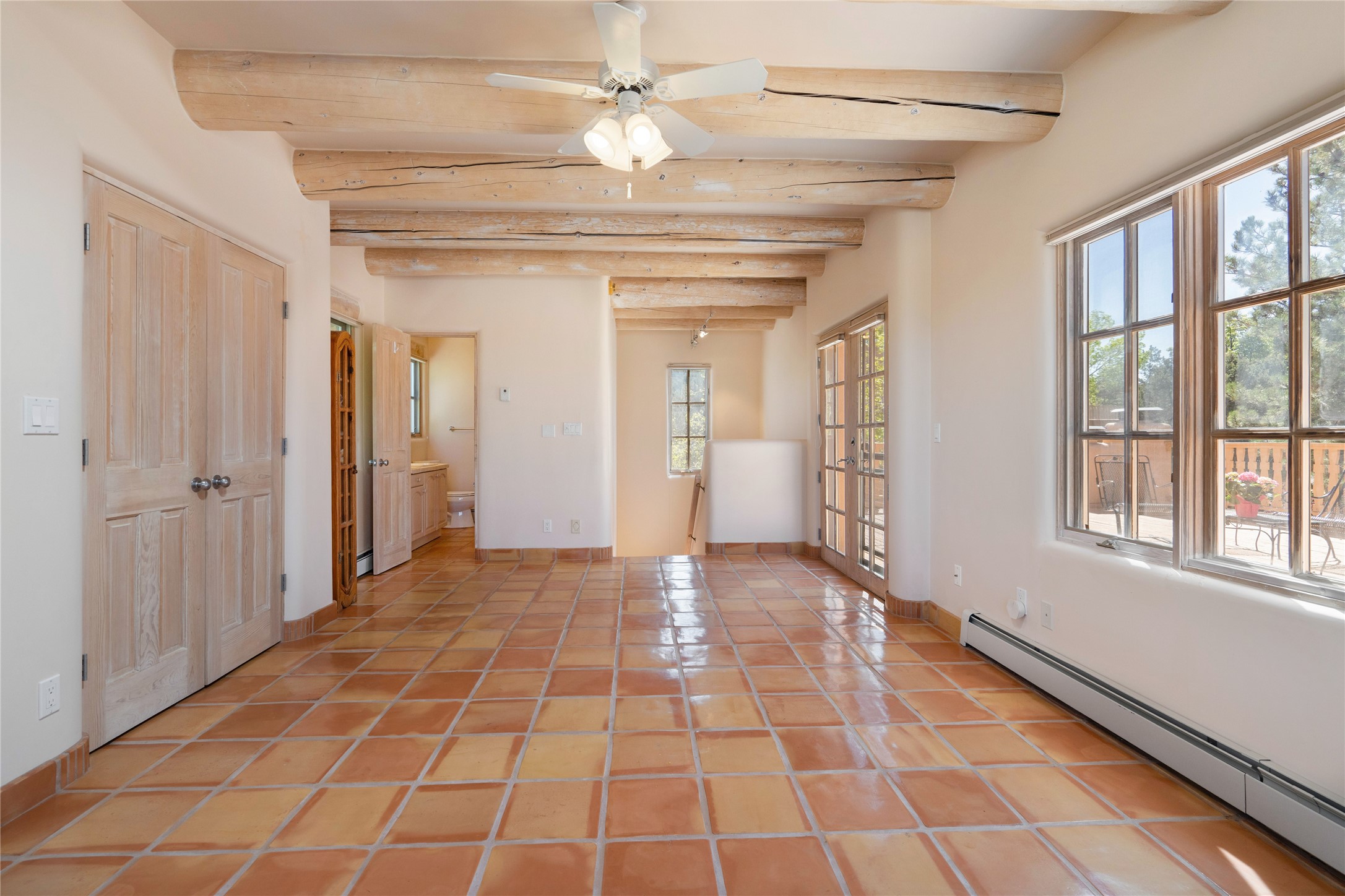 ESTATE SALE!Experience the perfect blend of Southwestern charm and modern luxury in this exceptional 4-bedroom, 4-bathroom home located within Santa Fe's prestigious Quail Run gated community.The main level boasts dual primary suites, one featuring a cozy kiva fireplace and sliding French doors that open to a serene, landscaped courtyard. An additional spacious bedroom with an en-suite bathroom provides comfort for family or guests.Upstairs, a versatile multi-use room with its own bathroom offers flexibility as a bedroom, office, or game room, and opens onto a large terrace with breathtaking mountain views.The chef's kitchen is equipped with a gas stove, double oven, Sub-Zero refrigerator, and a generous island with banquet seating, catering to culinary enthusiasts. The living area features high viga ceilings, Saltillo tile flooring, and a traditional kiva fireplace, creating an inviting ambiance.Additional highlights include a two-car garage fitted with a ChargePoint® Home Flex Level 2 electric vehicle charger.As a resident of Quail Run, enjoy access to a 9-hole PGA-rated golf course, tennis and pickleball courts, a full-service fitness center with classes, heated indoor lap pool, hydrotherapy pool, and a clubhouse with a restaurant.Situated just minutes from Santa Fe's historic downtown, this home offers the perfect balance of peaceful living and convenient access to the city's vibrant cultural scene.