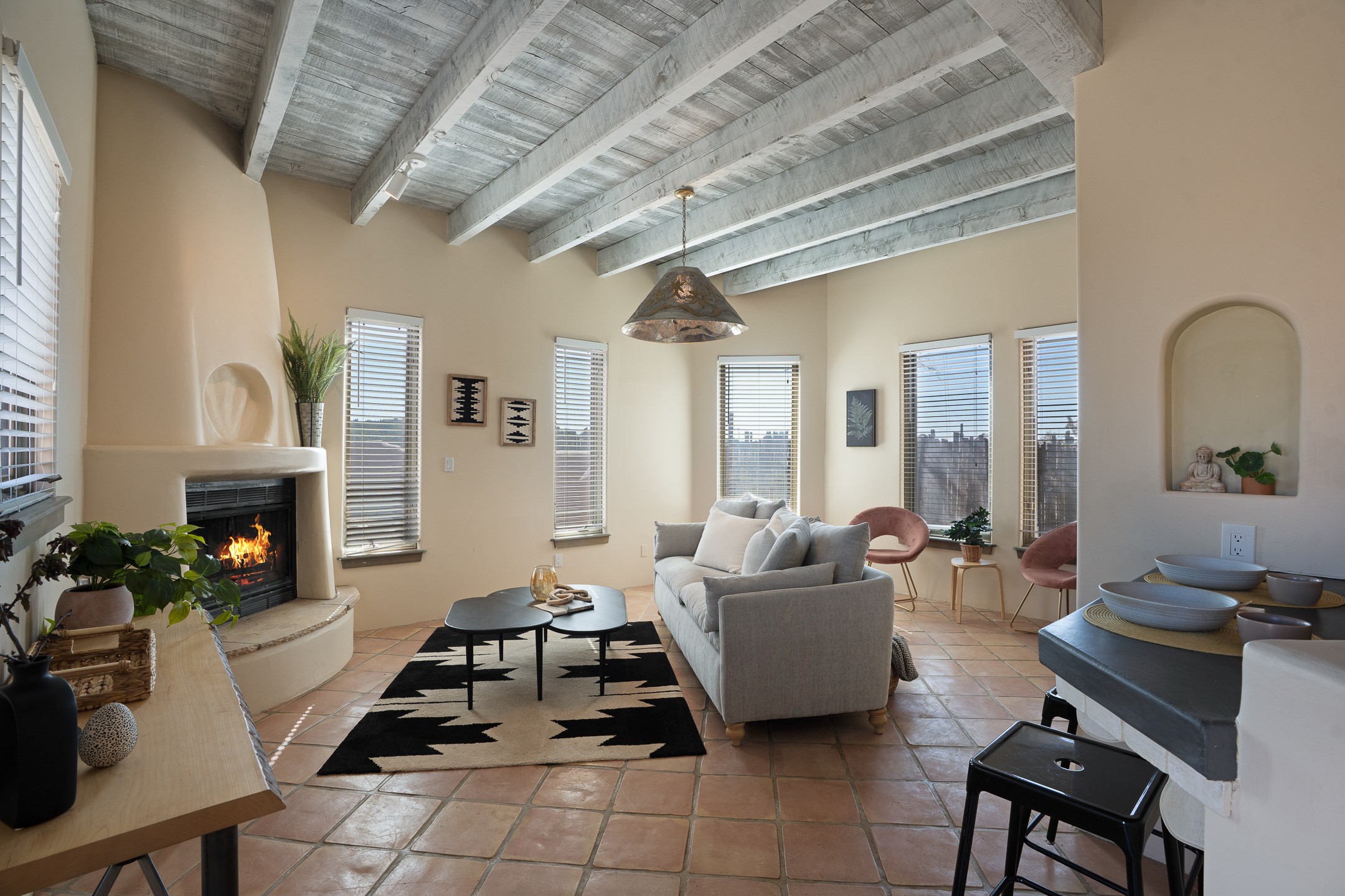 Located at the end of a quiet cul-de-sac in Eldorado, just a short walk from Eldorado Elementary and minutes from The Agora shopping center, this wonderful 4-bedroom, 3-bath home offers 3,294 square feet of comfortable living space on 2.3 acres. Nestled alongside a greenbelt, the property offers both privacy and versatility. The main level features two distinct living areas--one open to the newly renovated kitchen--along with a formal dining space and a guest bedroom currently serving as an office. The kitchen is a standout, showcasing concrete countertops with bar seating, custom tin-inlaid cabinetry, etched glass and tin lighting fixtures, and stainless steel appliances. From here, step outside to a fully fenced backyard complete with an outdoor kiva fireplace and generous space for entertaining or relaxing under the New Mexico sky.Upstairs, the expansive primary suite offers both East- and West-facing balconies, a cozy double-sided gas fireplace, deep soaking tub, glass-enclosed walk-in shower, and dual walk-in closets. Two additional guest bedrooms--each with their own private balcony--and a full guest bath complete the upper level. Recent upgrades include an 18-panel solar array, a new TPO roof with a transferable warranty, a tankless water heater, and a dedicated 30-amp service for RV power. Seamlessly blending modern updates with Southwestern charm, this home offers spacious, serene living in one of Santa Fe's most desirable communities.