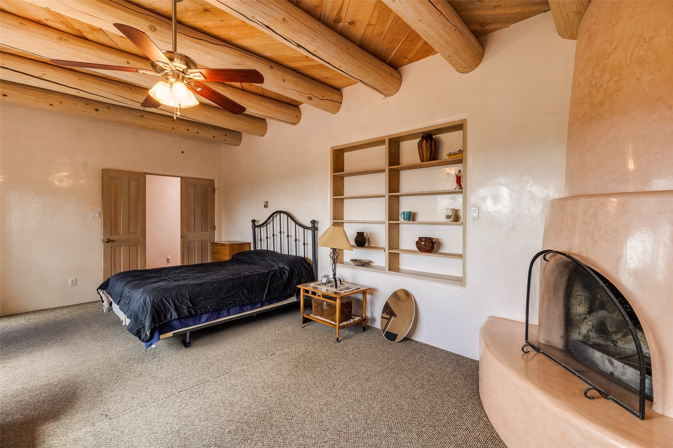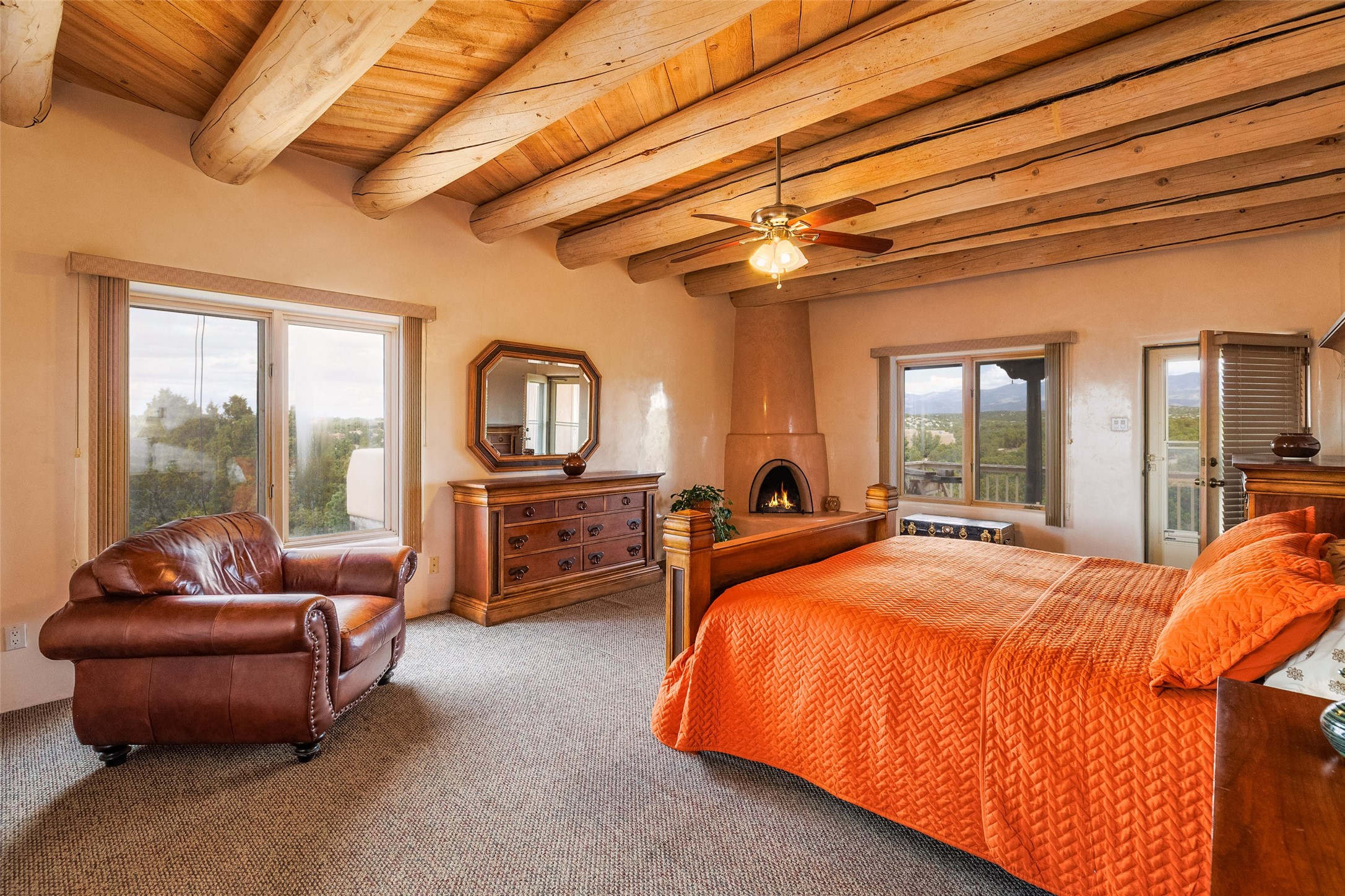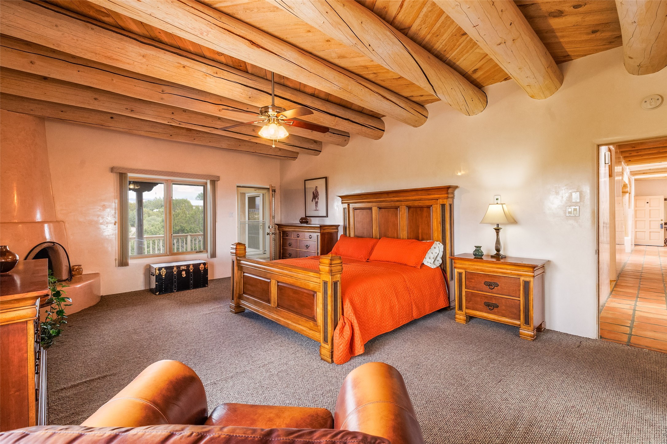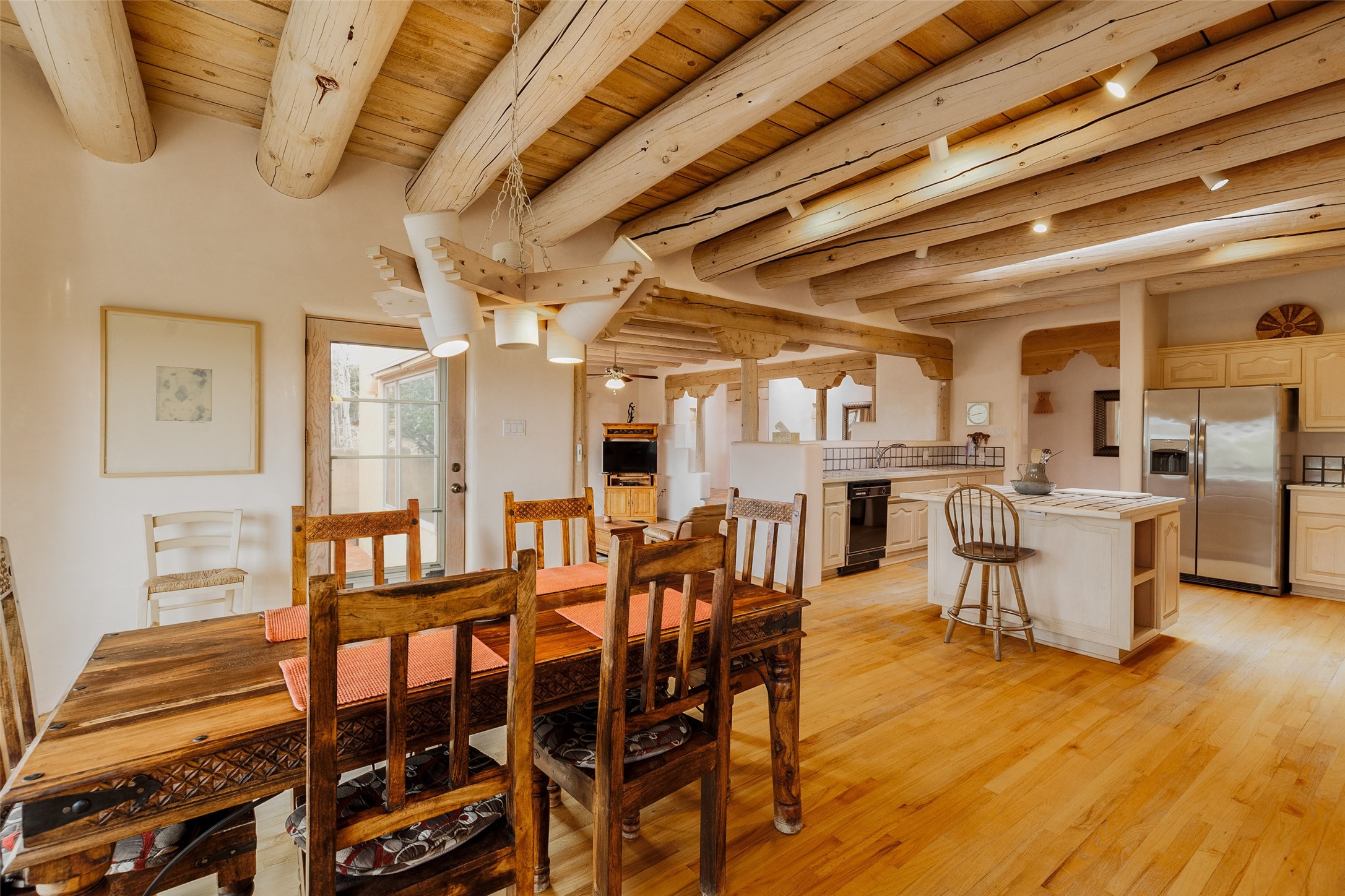 Prime investment opportunity just minutes from the Santa Fe Plaza! This property offers two fully independent living spaces: a 2,908 sq.ft. custom main home and a BONUS 1,405 sq.ft. 2BD/1BA unit with separate address, entrance, electric, and parking--ideal for rental income, Airbnb, or long-term tenants. Situated on 1.64 acres near Las Campanas with no HOA, the main home features skylights, diamond plaster walls, vigas, 3 interior kiva fireplaces, and an exterior kiva off the ensuite deck. Ample parking, oversized 2-car garage, and private road access enhance functionality and appeal.