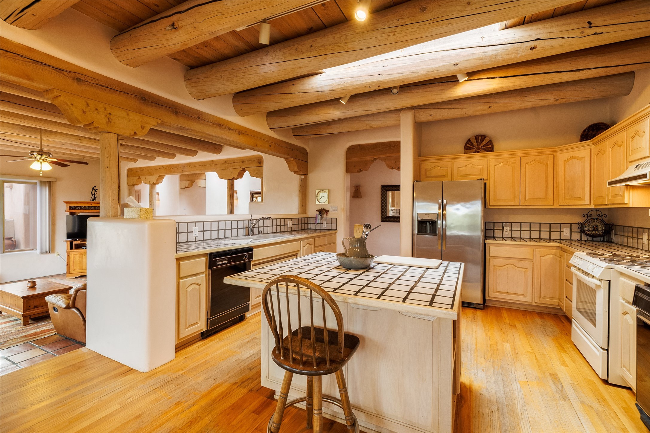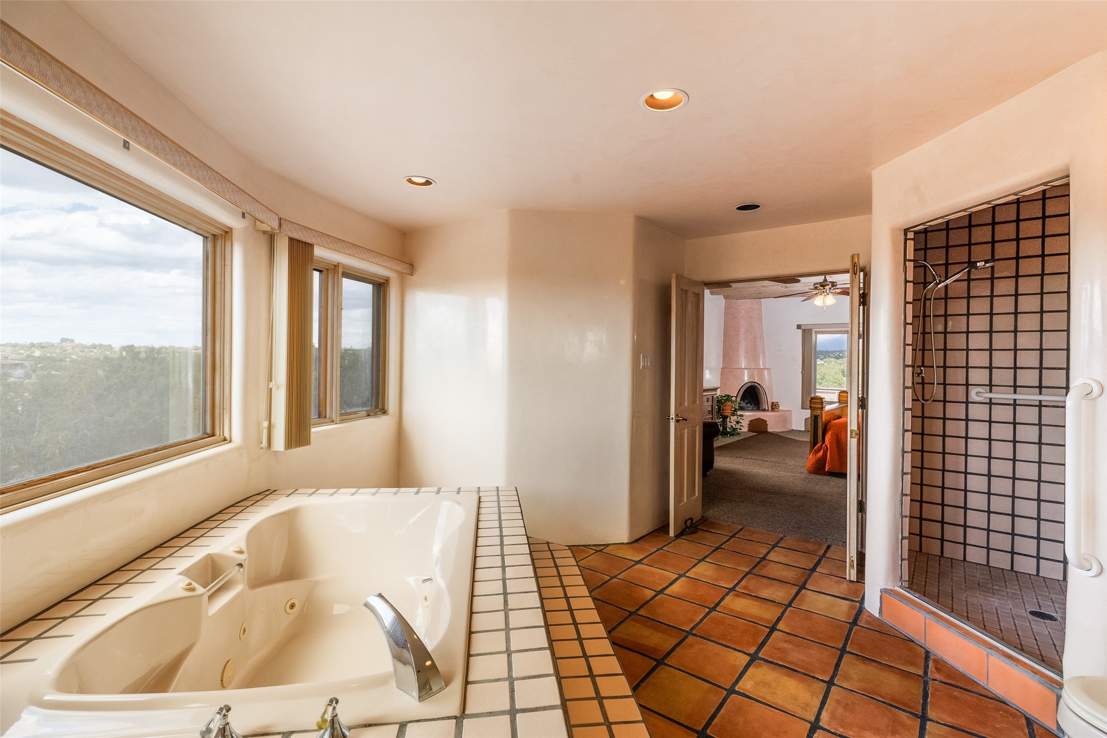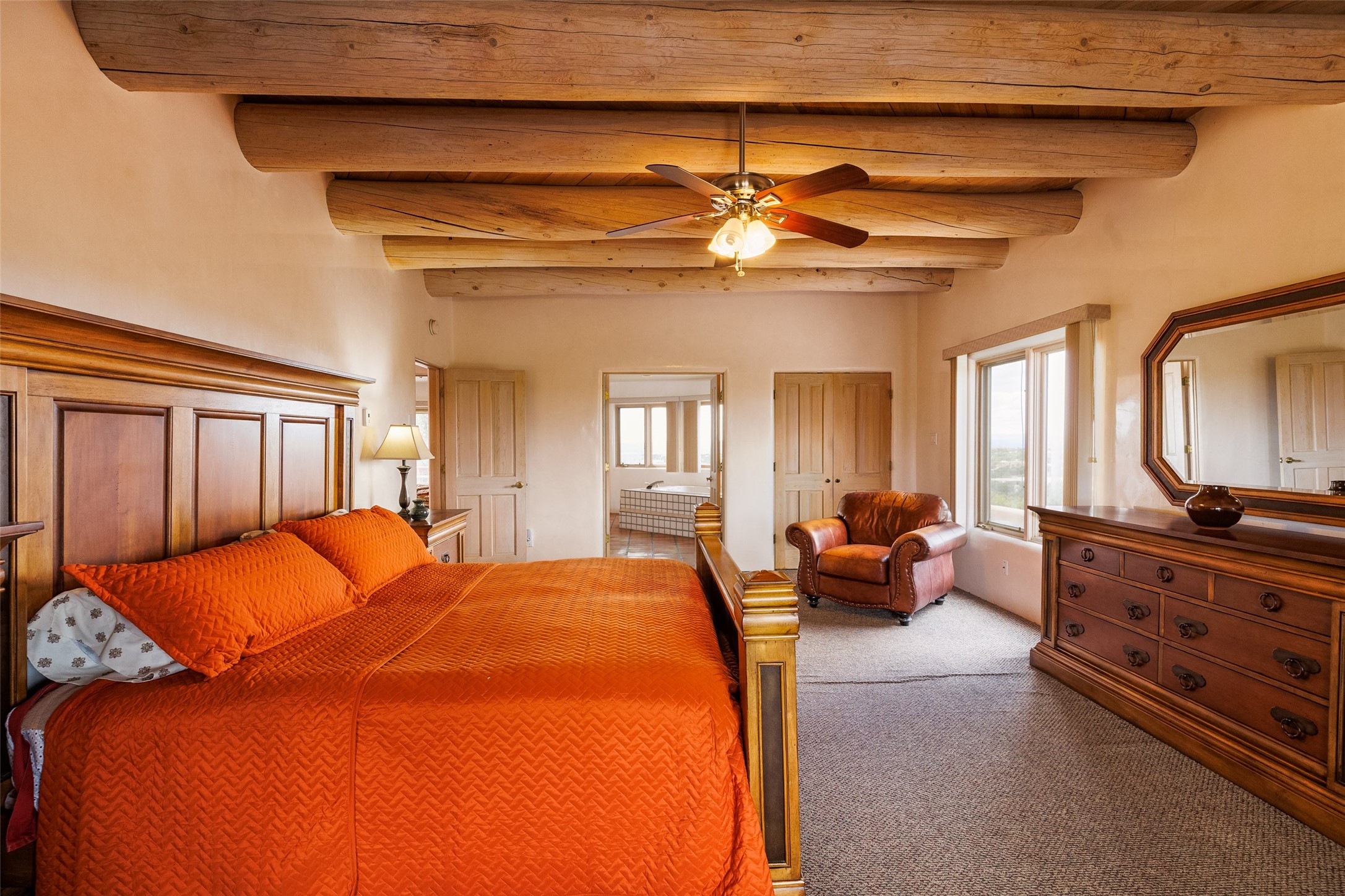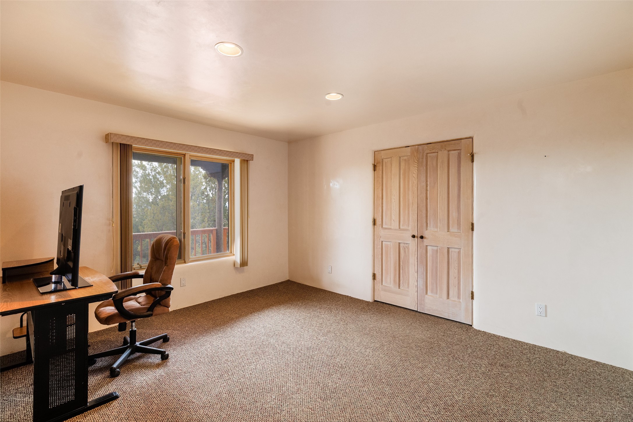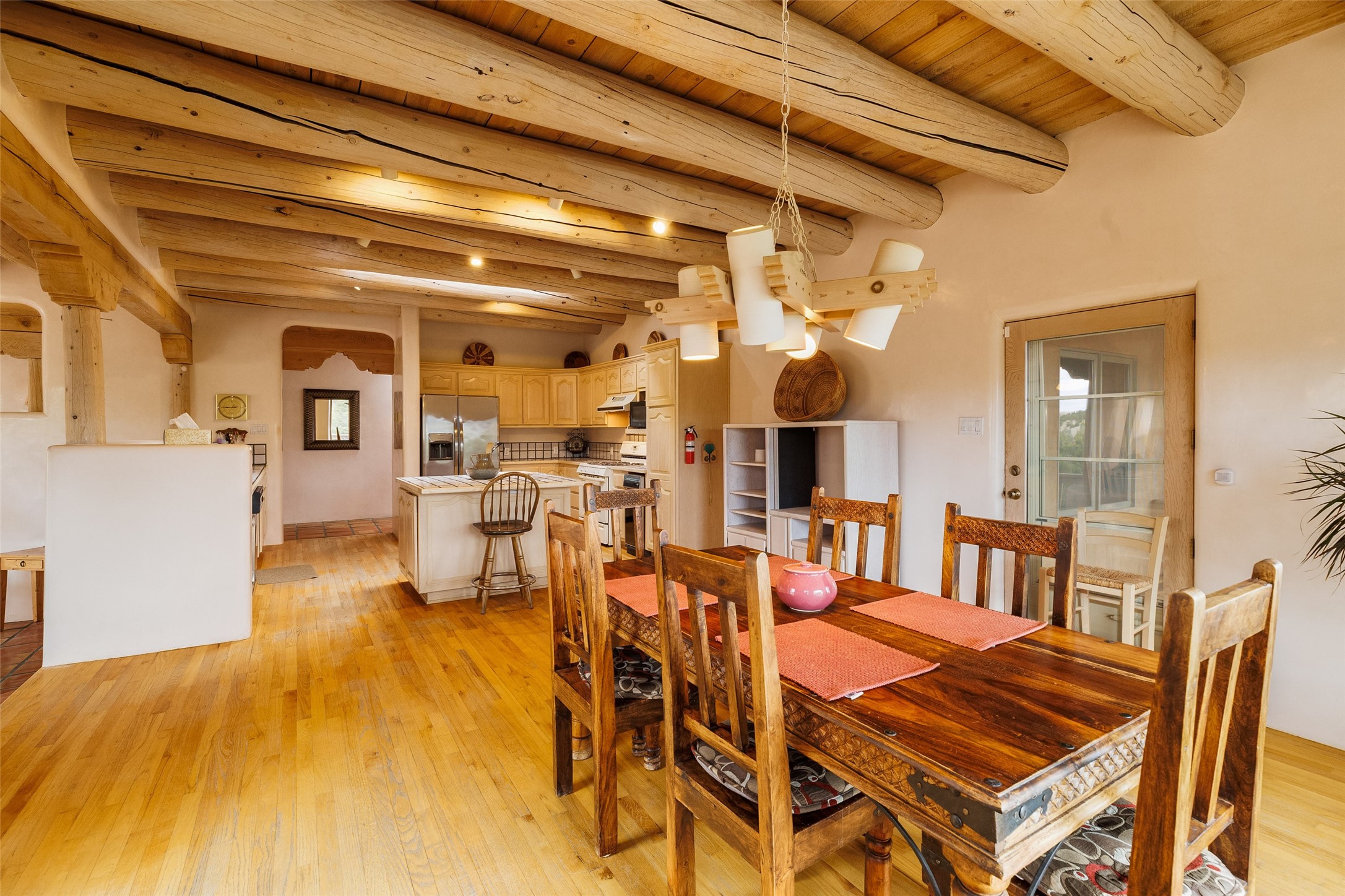 Prime investment opportunity just minutes from the Santa Fe Plaza! This property offers two fully independent living spaces: a 2,908 sq.ft. custom main home and a BONUS 1,405 sq.ft. 2BD/1BA unit with separate address, entrance, electric, and parking--ideal for rental income, Airbnb, or long-term tenants. Situated on 1.64 acres near Las Campanas with no HOA, the main home features skylights, diamond plaster walls, vigas, 3 interior kiva fireplaces, and an exterior kiva off the ensuite deck. Ample parking, oversized 2-car garage, and private road access enhance functionality and appeal.