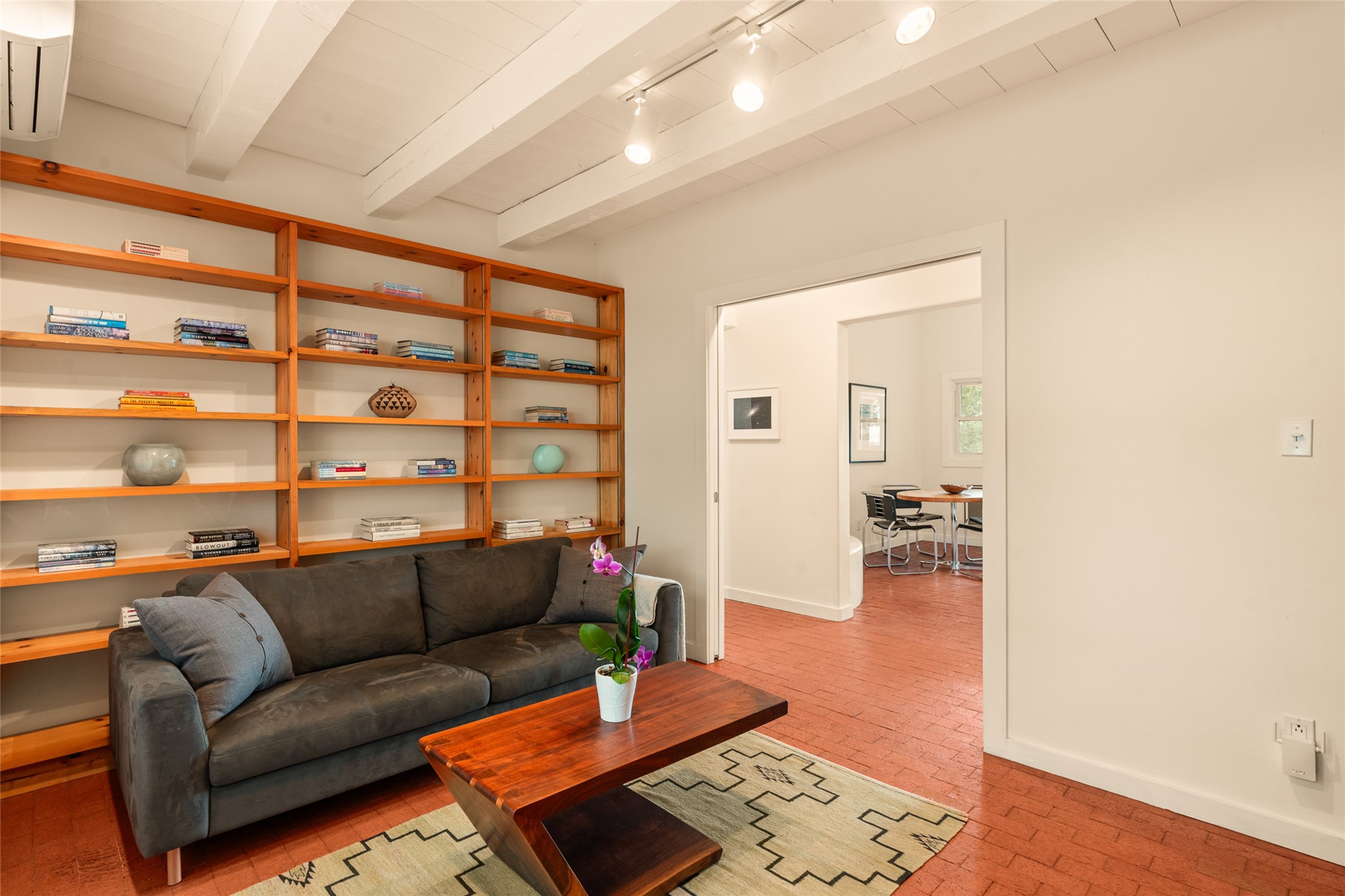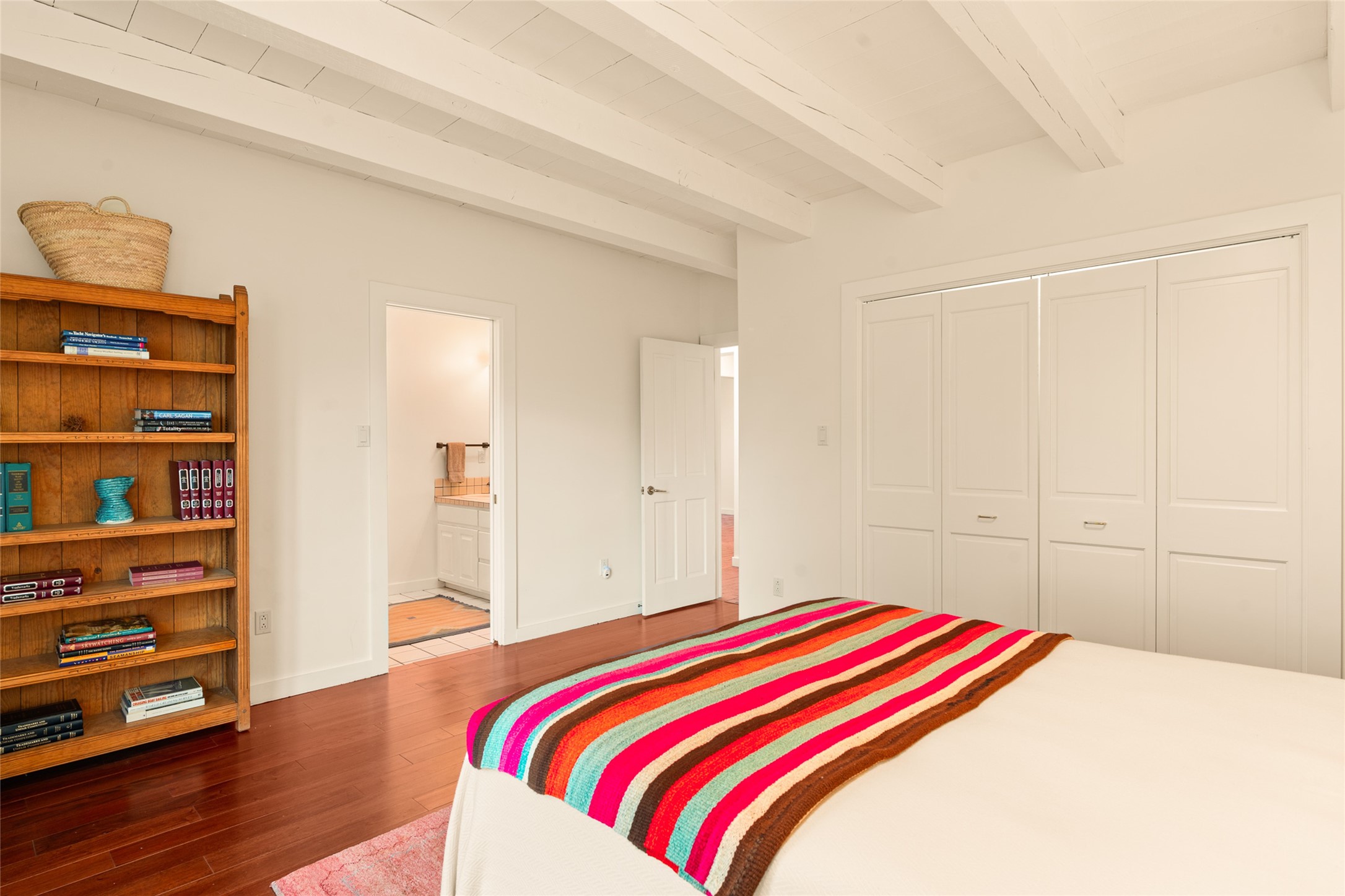 This timeless and sophisticated property is situated in a quiet and horse-friendly Santa Fe location just a short distance from the Arroyo Hondo Open Space trails and the famed Harry's Roadhouse restaurant. This 2,956 sq.ft. single-story constructed home has recently been completely updated and exudes a classic Santa Fe style surrounded by 6.041 acres of fenced, gated and usable land with wraparound views of the Sangre, Ortiz and Jemez mountains. Private sitting and entertaining spaces surround the home with lush, seasonal and mature landscaping, including fruit trees in the orchard. The home consists of a primary ensuite, two secondary bedrooms, 2.5 baths, and a separate office or flex room, all with classic bricked floors and whitewashed vigas throughout. The formal living/dining area's focal point is a gas burning fireplace. The updated kitchen features a large island, quartz countertops, walk-in pantry storage, and a sweet kiva fireplace with access to the covered patio. Functional amenities include radiant floor heat, on-demand hot water and mini-split AC/heating in the owners suite and office. A studio/workshop/3rd bay garage is adjacent to the deep 2-car attached garage. A nearby concrete pad has electricity stubbed-in, ideal for a future barn or casita. Completely updated (including roof, stucco, windows, mechanicals, and a new gas stove in the island) and perfectly maintained, this is a property not to be missed in an idyllic Santa Fe location.