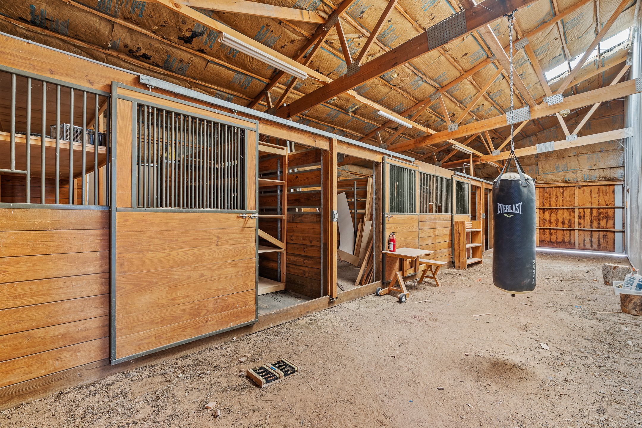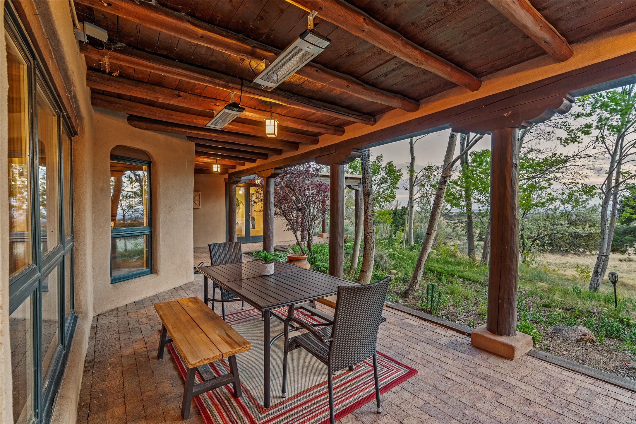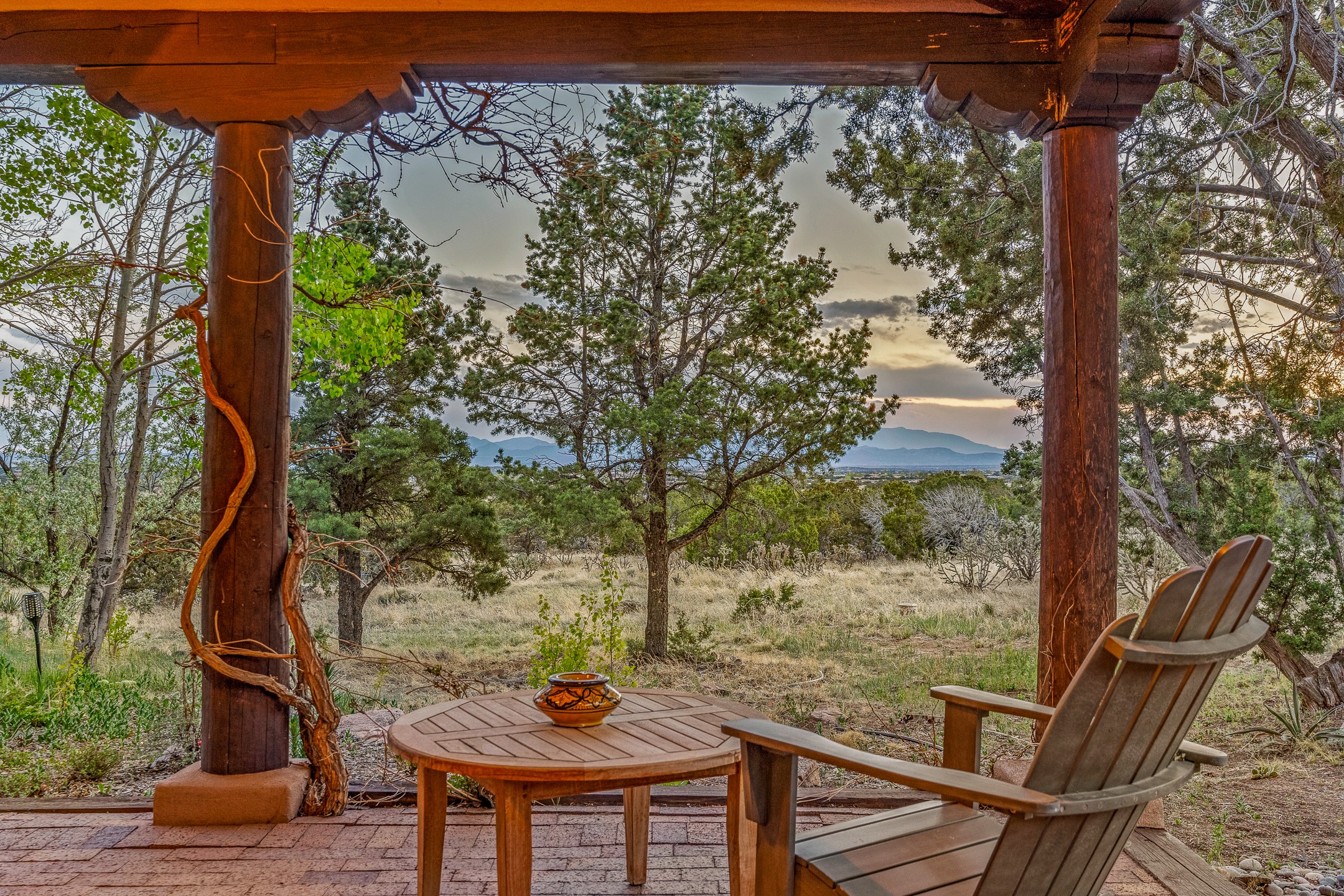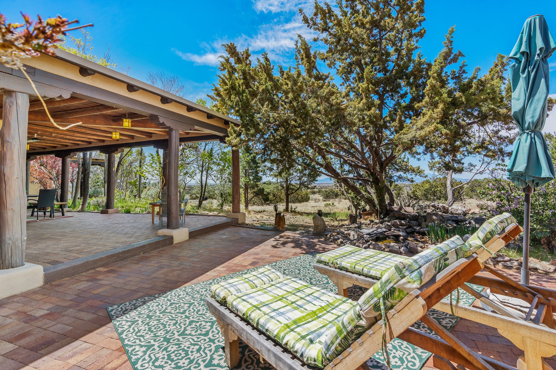 Incredible, rare, and versatile live/work opportunity off HWY 285.Situated on 11.07 acres, this unique property blends Santa Fe's old-world charm with modern style, offering a 5,481 sq. ft. main house and a 3539 sq. ft. guest house/studio. There are 4 large bedrooms, 2 full bathrooms, 3 3/4 bathrooms and 4 half-baths on the property. A large 2-car garage boosts additional space for storage and a small workshop area. Bordering the 4,000-acre Eldorado Preserve, there is also a 2,400 sq. ft. Morton barn with four oversized stalls. The remodeled main house features a European-inspired design with a gourmet kitchen, designer fixtures, and multiple Kiva fireplaces. The guest house/studio area, accessible via several entrances, includes a bright gallery space, a loft, 2 offices, and a reception space with 16-foot ceiling heights. Outdoor living areas boast covered portals, patios, and a moss rock pond, creating a serene private retreat close to shopping and amenities.