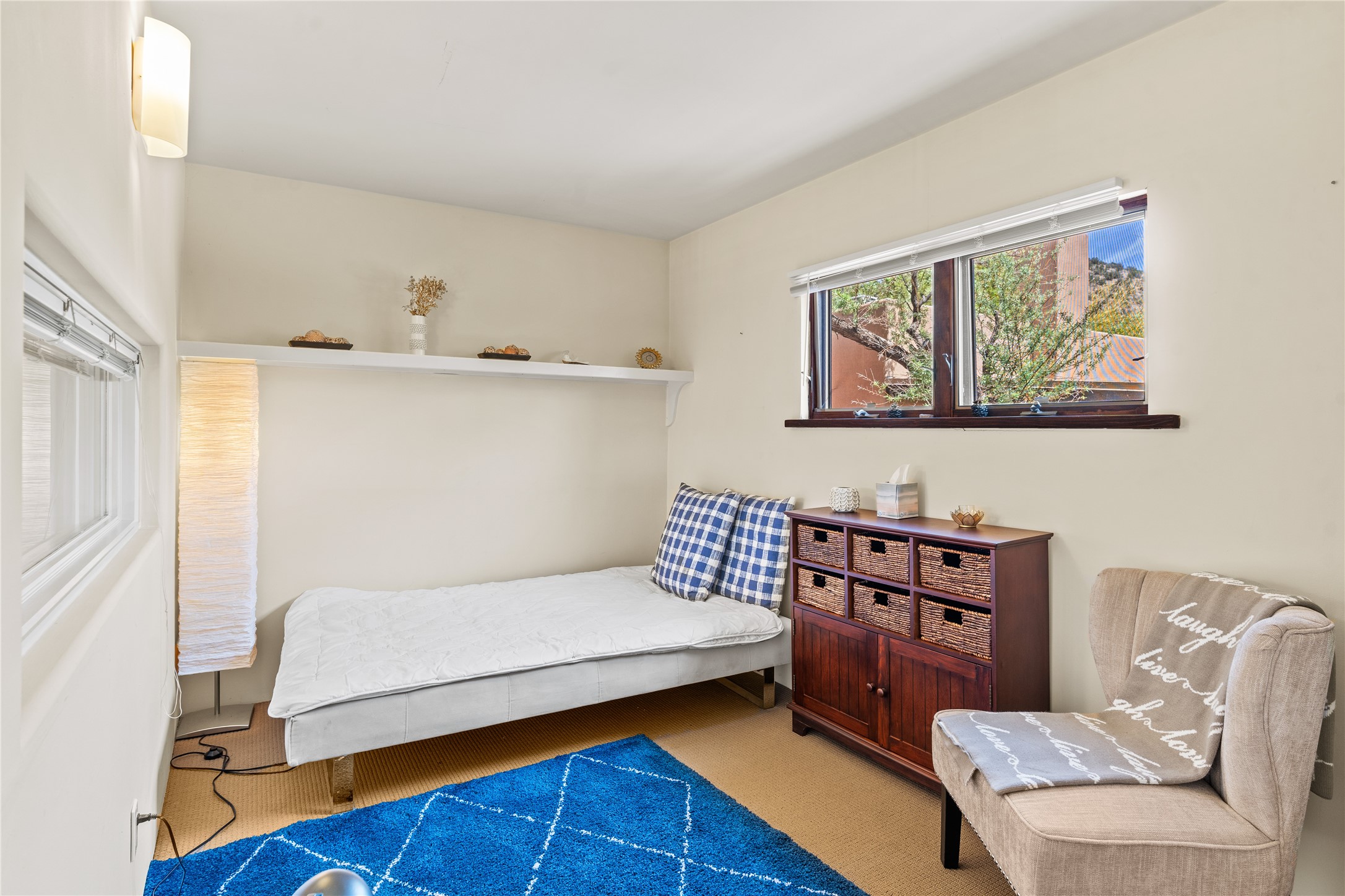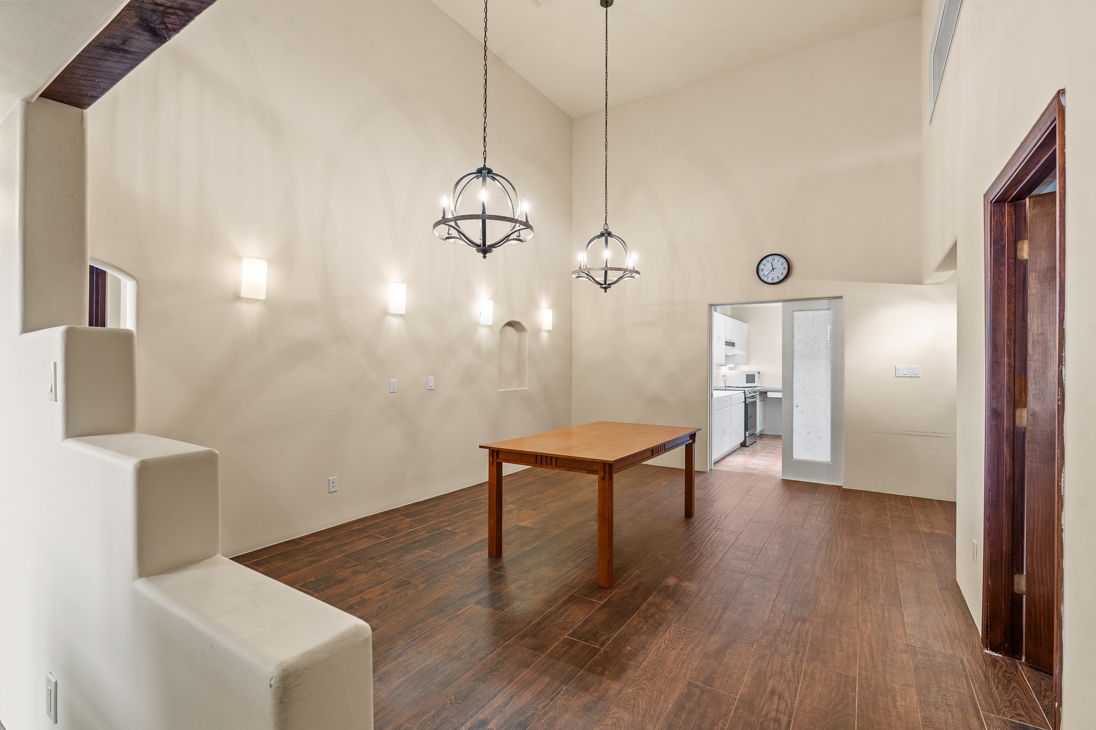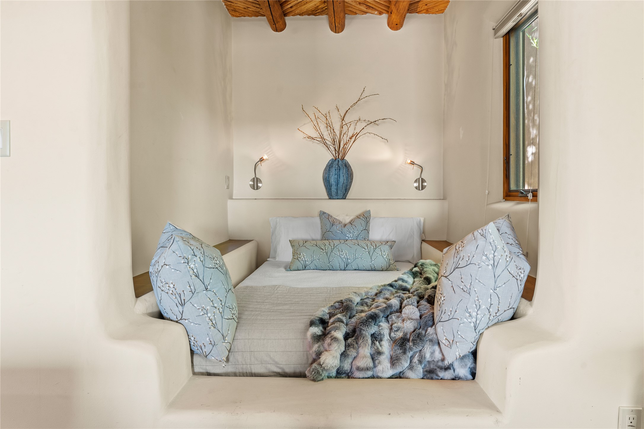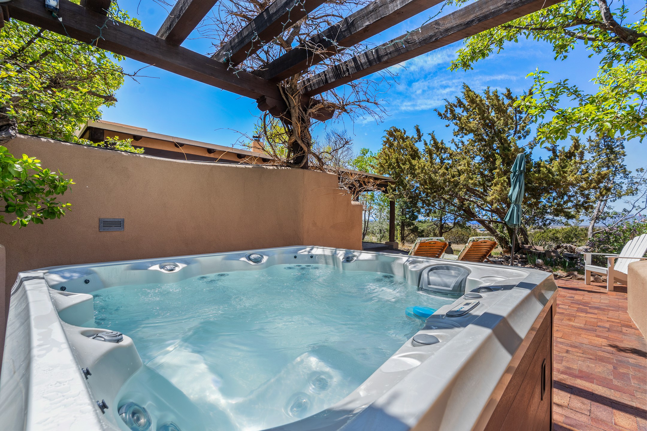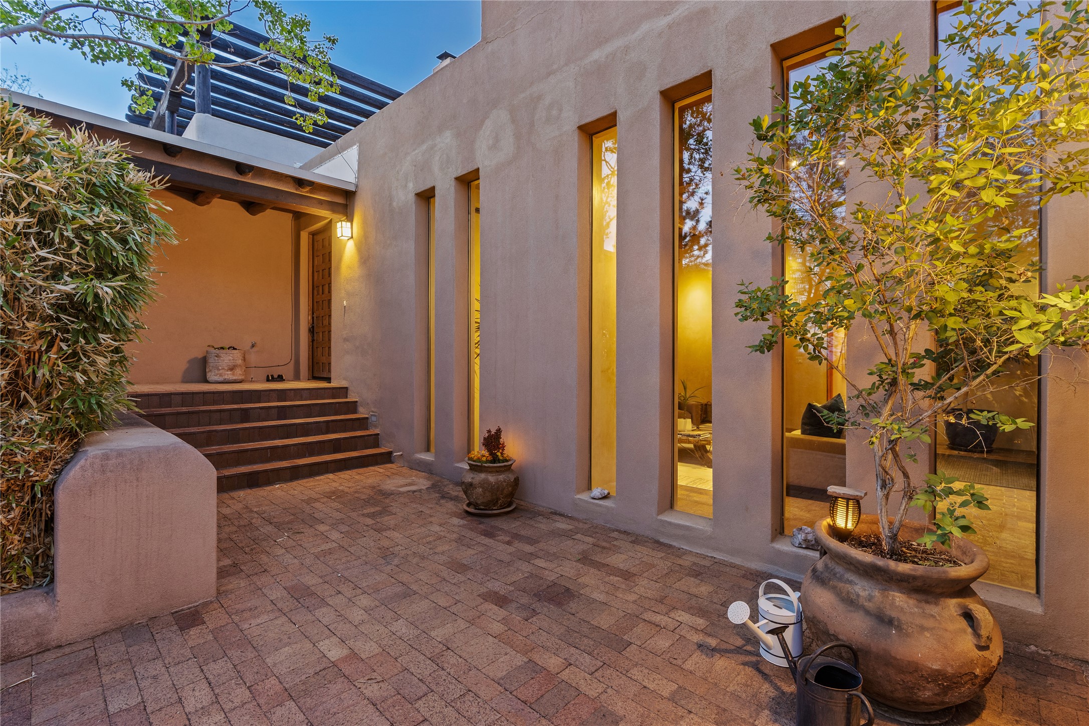 Incredible, rare, and versatile live/work opportunity off HWY 285.Situated on 11.07 acres, this unique property blends Santa Fe's old-world charm with modern style, offering a 5,481 sq. ft. main house and a 3539 sq. ft. guest house/studio. There are 4 large bedrooms, 2 full bathrooms, 3 3/4 bathrooms and 4 half-baths on the property. A large 2-car garage boosts additional space for storage and a small workshop area. Bordering the 4,000-acre Eldorado Preserve, there is also a 2,400 sq. ft. Morton barn with four oversized stalls. The remodeled main house features a European-inspired design with a gourmet kitchen, designer fixtures, and multiple Kiva fireplaces. The guest house/studio area, accessible via several entrances, includes a bright gallery space, a loft, 2 offices, and a reception space with 16-foot ceiling heights. Outdoor living areas boast covered portals, patios, and a moss rock pond, creating a serene private retreat close to shopping and amenities.