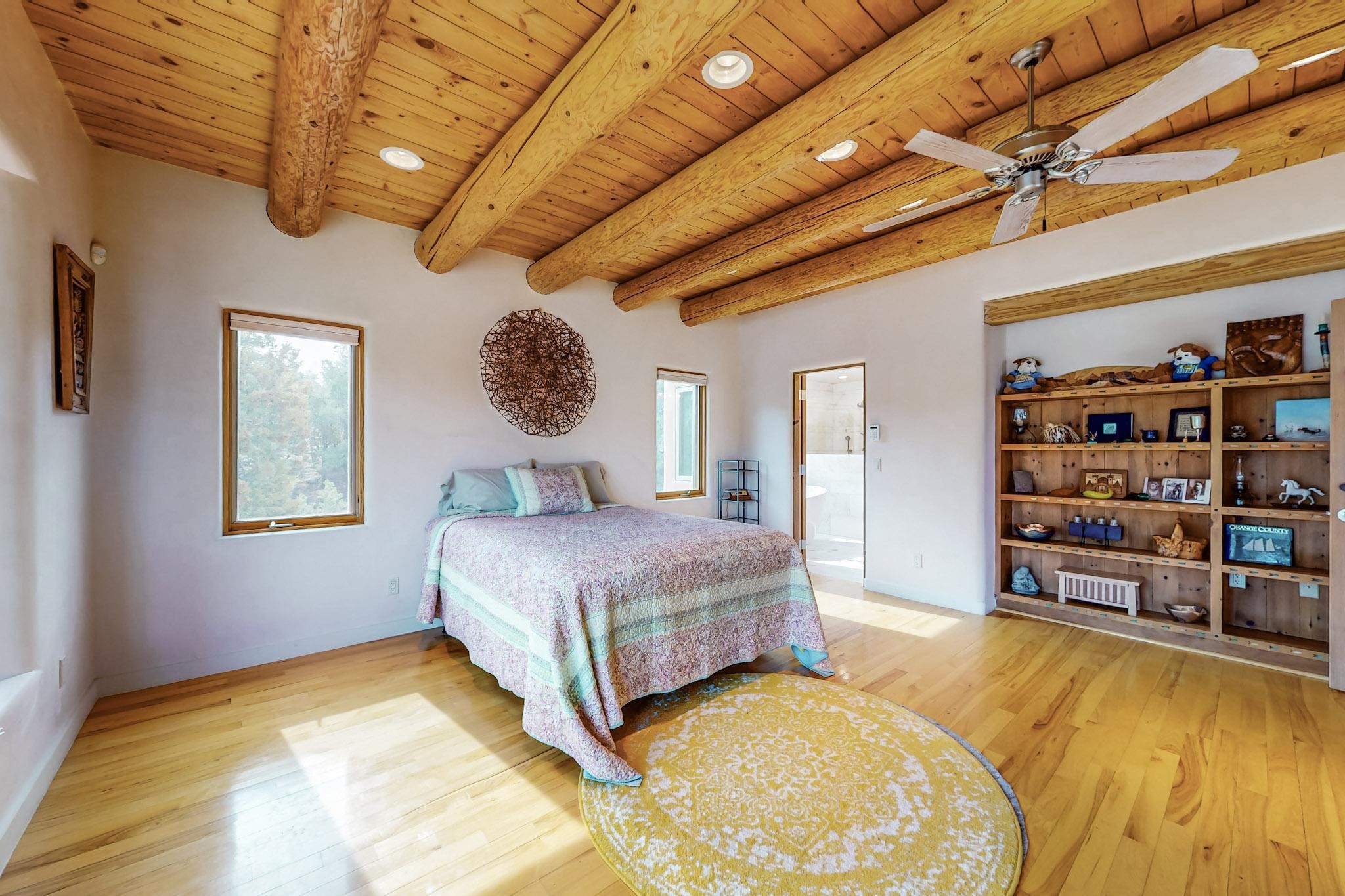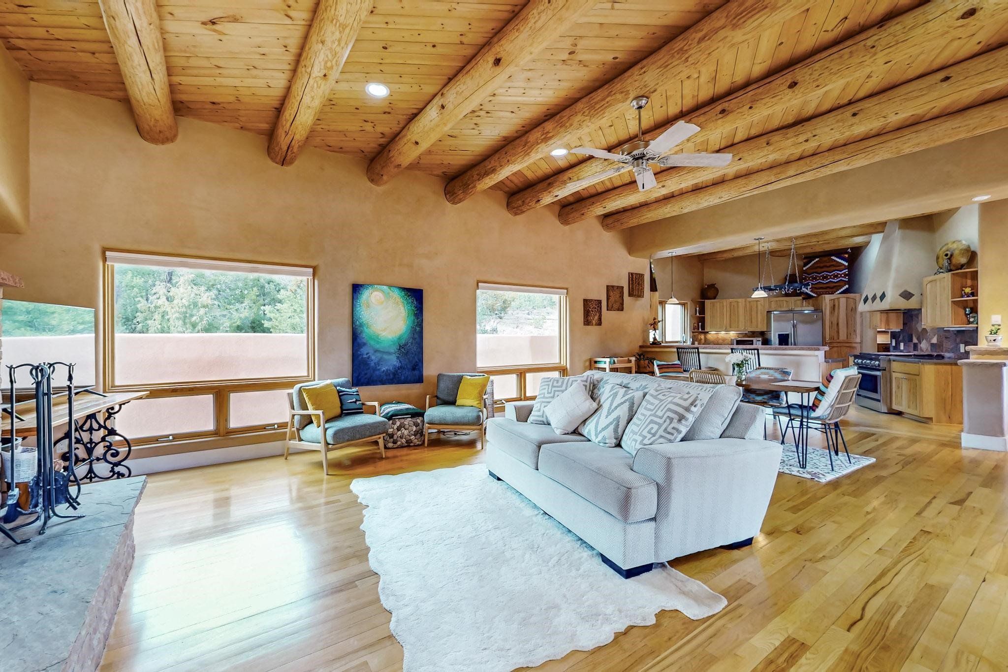 HUGE PRICE IMPROVEMENT! Welcome to 25 Old Santa Fe Way! This immaculately maintained home is nestled in the foothills of the Sangre de Cristo mountains but is less than 20 minutes away from the Santa Fe Plaza. This beautiful 3 bed, 3 bath home is found in the most serene setting. The spacious and cozy open concept living area is filled with light due to the generous windows! Prepare to be absolutely stunned by the view of the foothills from both inside and outside the home, and at nighttime, you will be delighted as the mountains are nothing short of magical! This lovely home has had many updates, such as NEW garage doors (2025), NEW stucco (2024), NEW roof (2024), NEW blinds (2024), and the primary bath was completely remodeled (2024). This home is move in ready and waiting for it's next family to call it home!