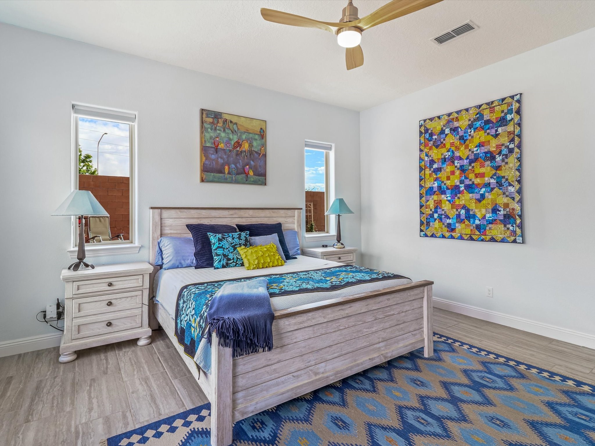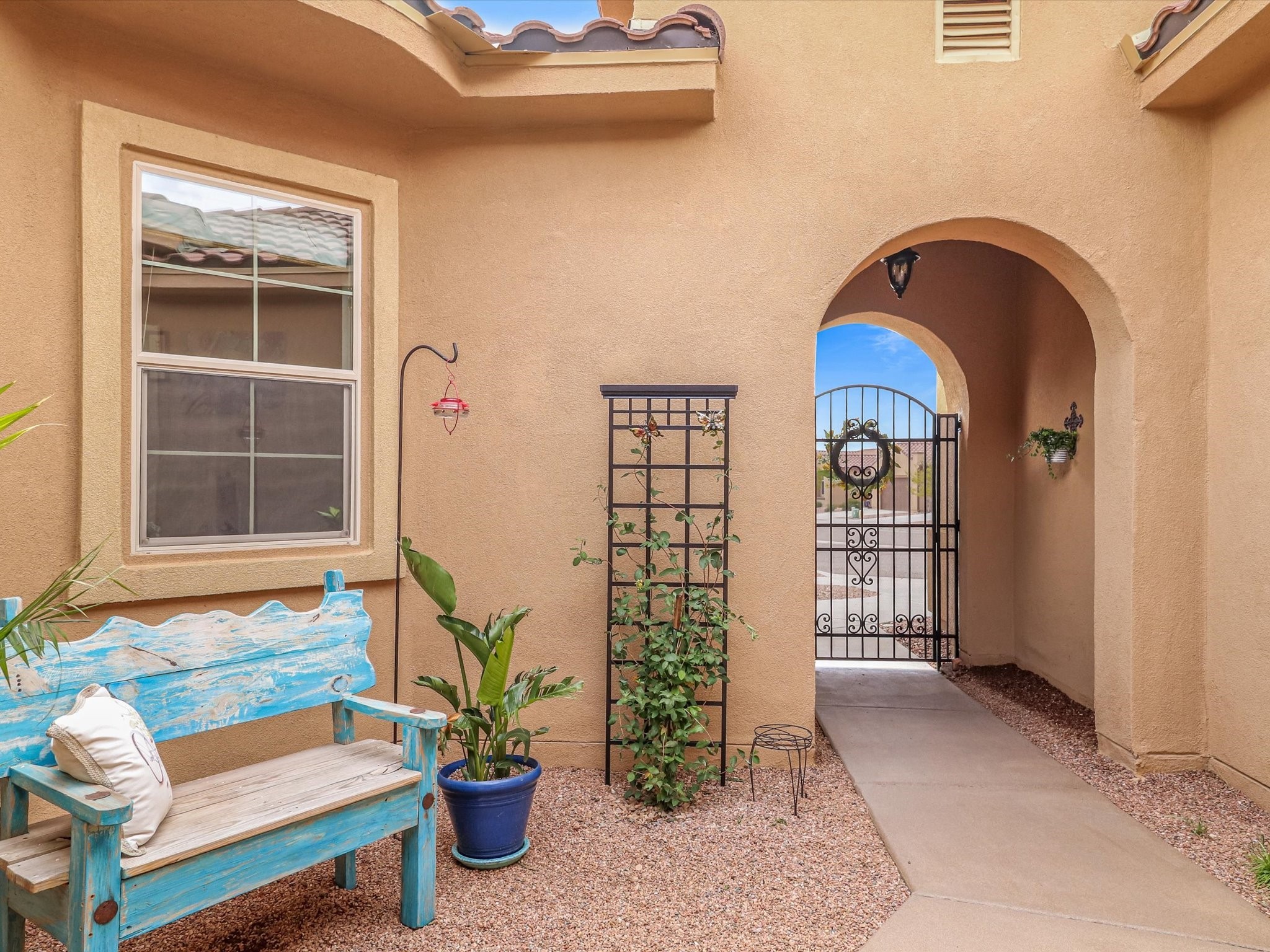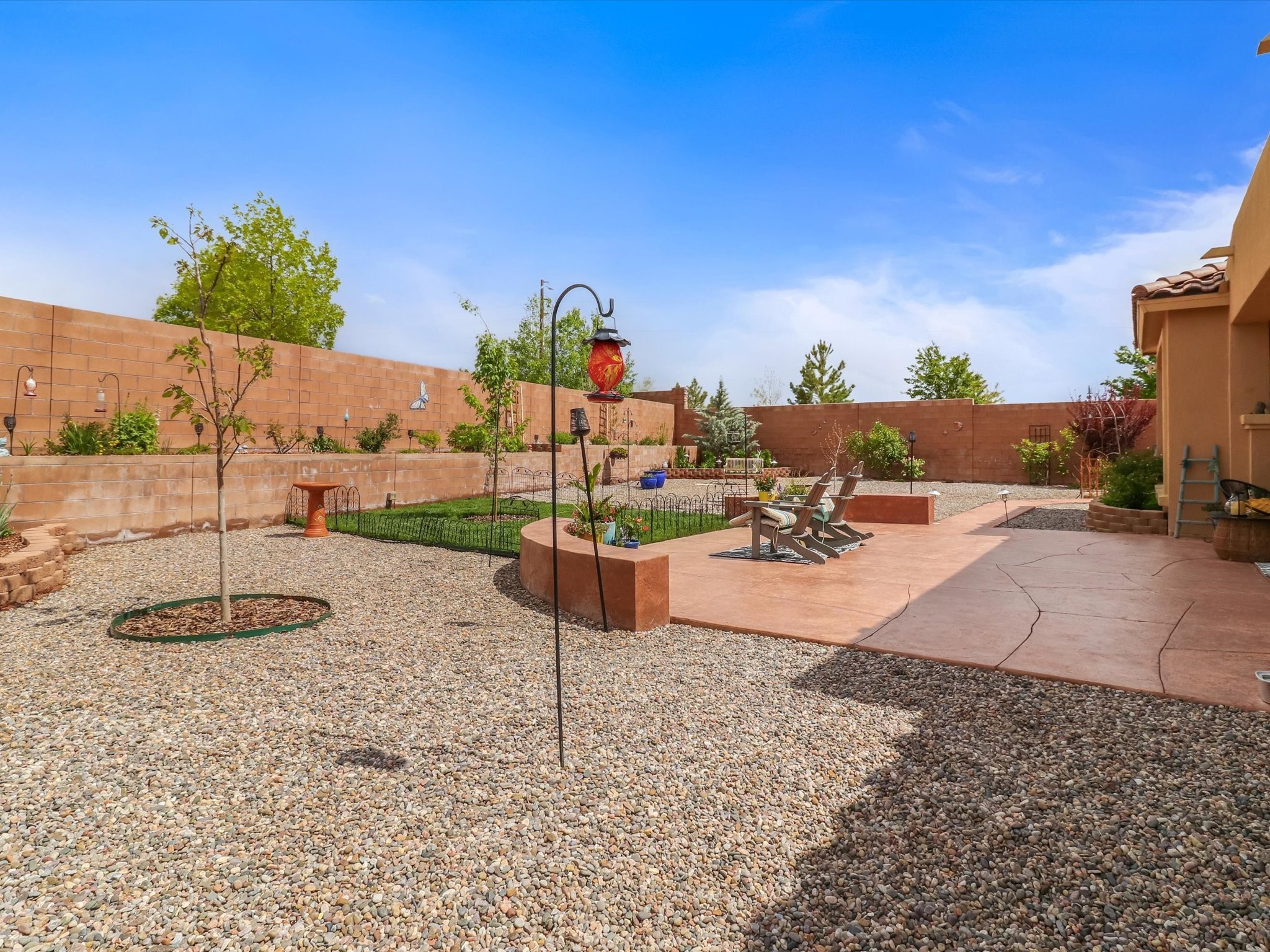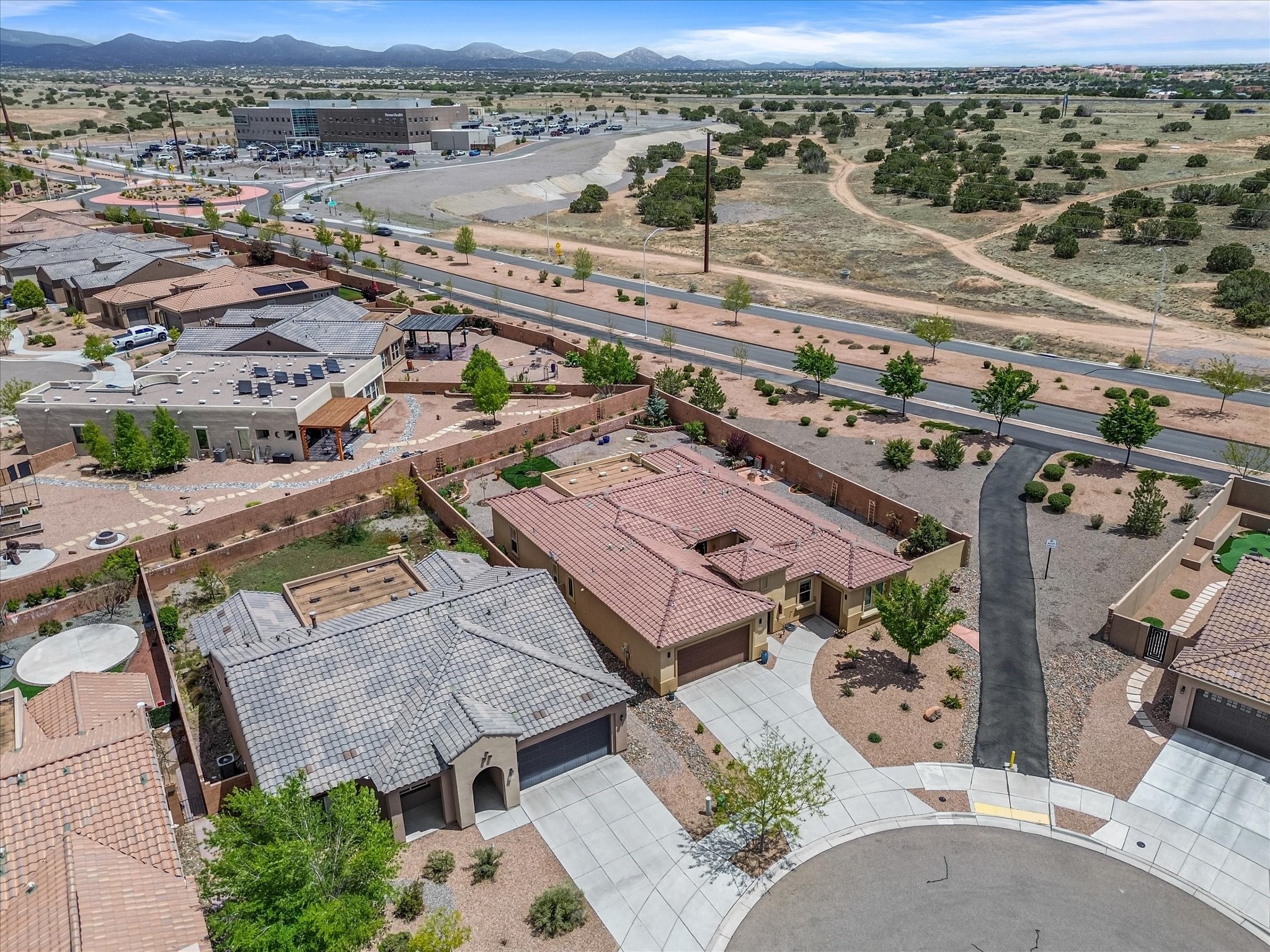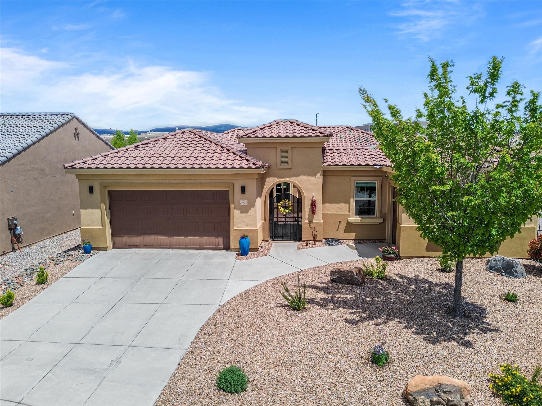 Discover refined living in this beautifully upgraded 3-bedroom, 2.5-bath, 2,543 sq ft home nestled on a premium corner lot in Santa Fe's desirable Las Soleras neighborhood. Set on an expansive .27-acre lot, this home offers the perfect blend of elegance, comfort, and location--just minutes from shopping, parks, and scenic walking trails.Step inside and fall in love with the a welcoming open layout filled with natural light, a fully renovated powder room, freshly painted living spaces (walls, ceilings, baseboards, and trim),10 ft ceilings, 8 foot doors, and updated ceramic tile surrounding the cozy fireplace. The Chef's kitchen is a showstopper, featuring new quartz countertops, soft-close cabinetry with custom pull-outs, added storage on the back of the island, sizable pantry, and top-tier appliances including an upgraded KitchenAid wall oven/microwave combo, Bosch dishwasher, LG electric cooktop with touch controls (gas hookup available to allow for easy cooktop switch out if preferred), and LG refrigerator. Retreat to the luxurious primary suite where the bathroom has been transformed with quartz countertops, soft-close, pull-out cabinetry, upgraded light fixtures, new sinks, mirrors, and tile backsplash.Outside, enjoy newly updated landscaping and a spacious backyard oasis with endless potential. Even the storage garage has been upgraded with a new automatic door opener and security locks--ideal for peace of mind and convenience.From top-to-bottom upgrades to an unbeatable location, this Estancias de Las Soleras gem is a rare find. Schedule your private showing today and experience elevated Santa Fe living!