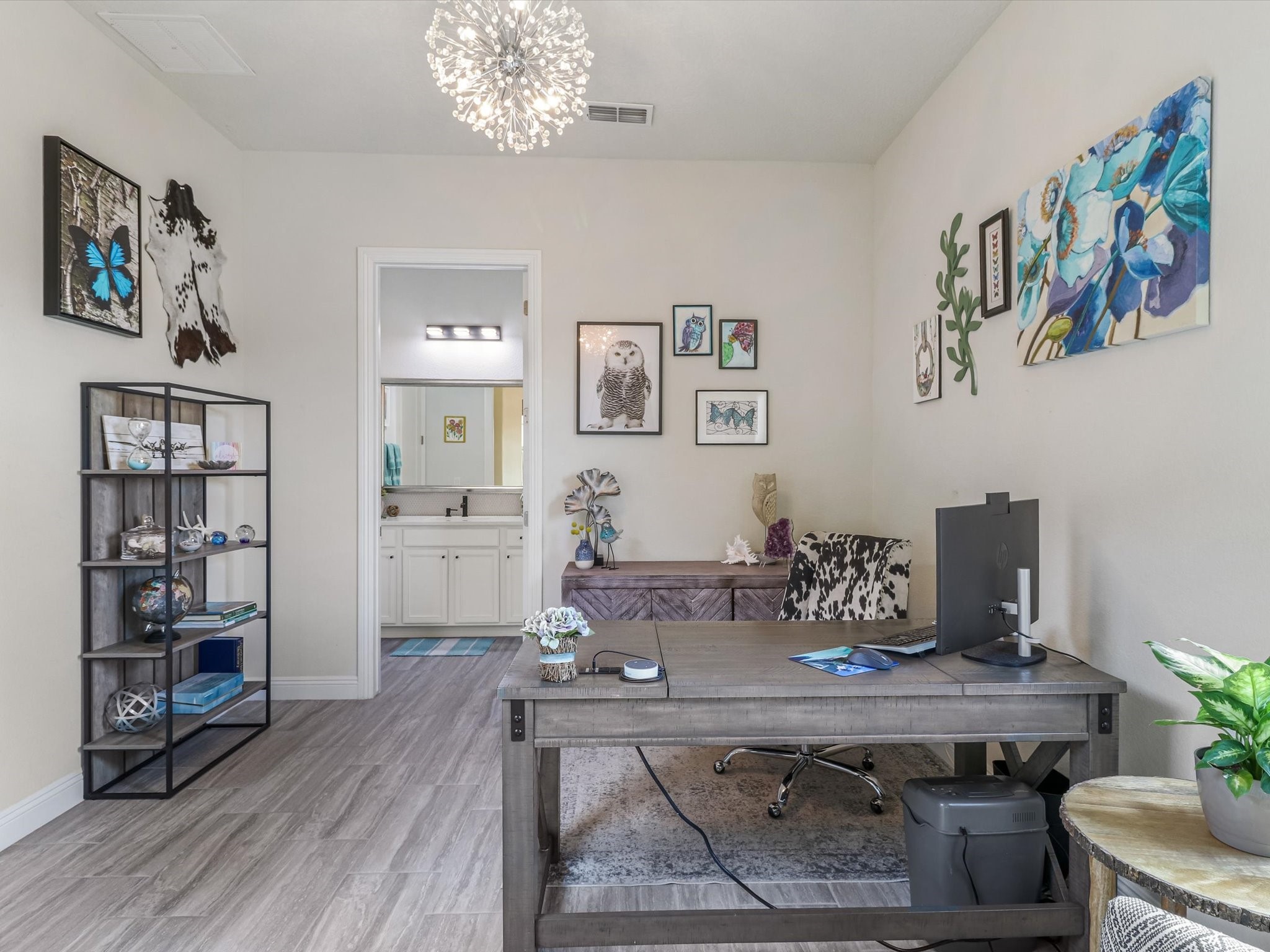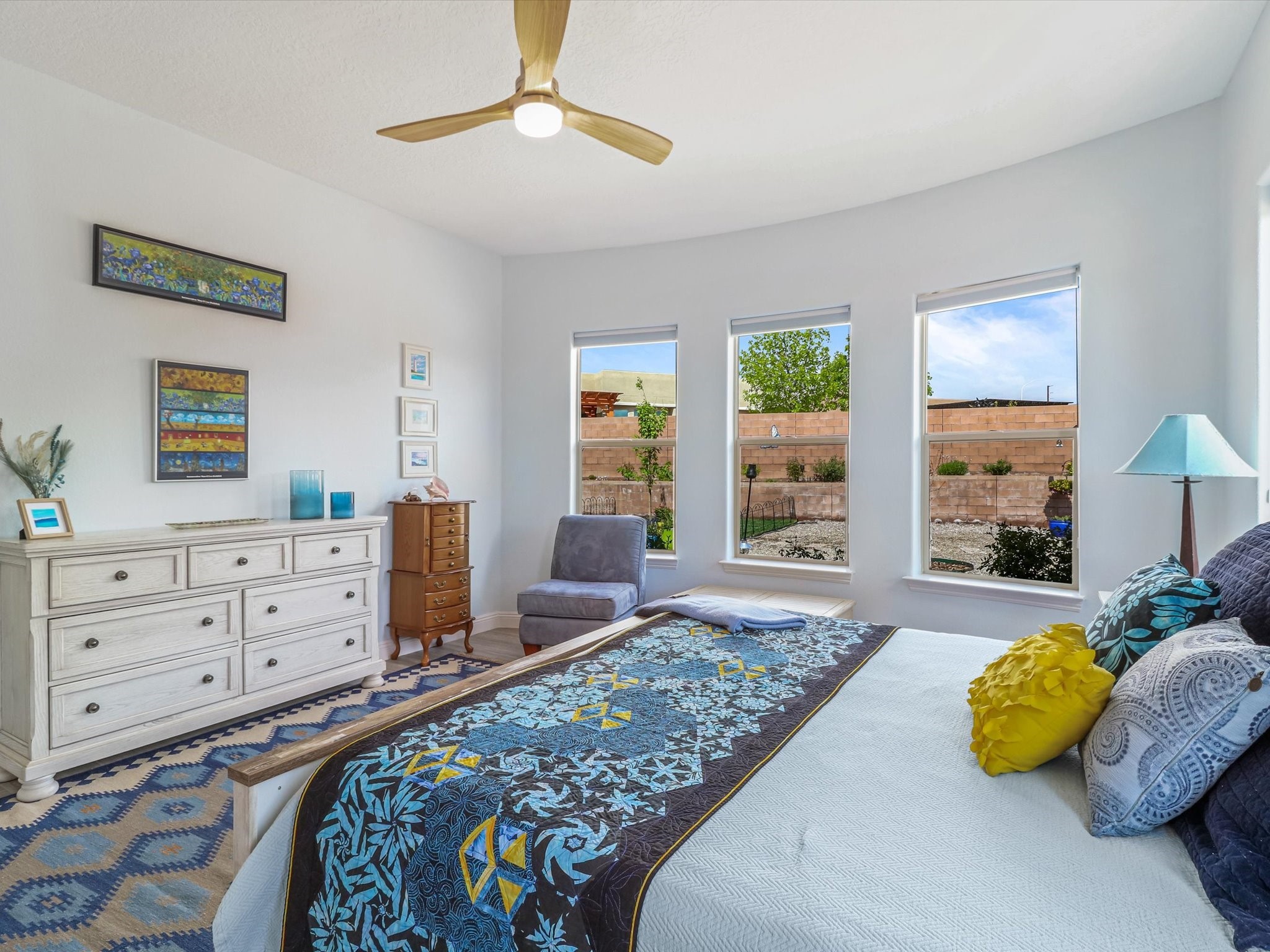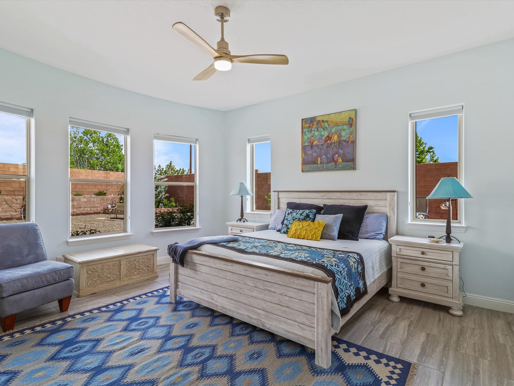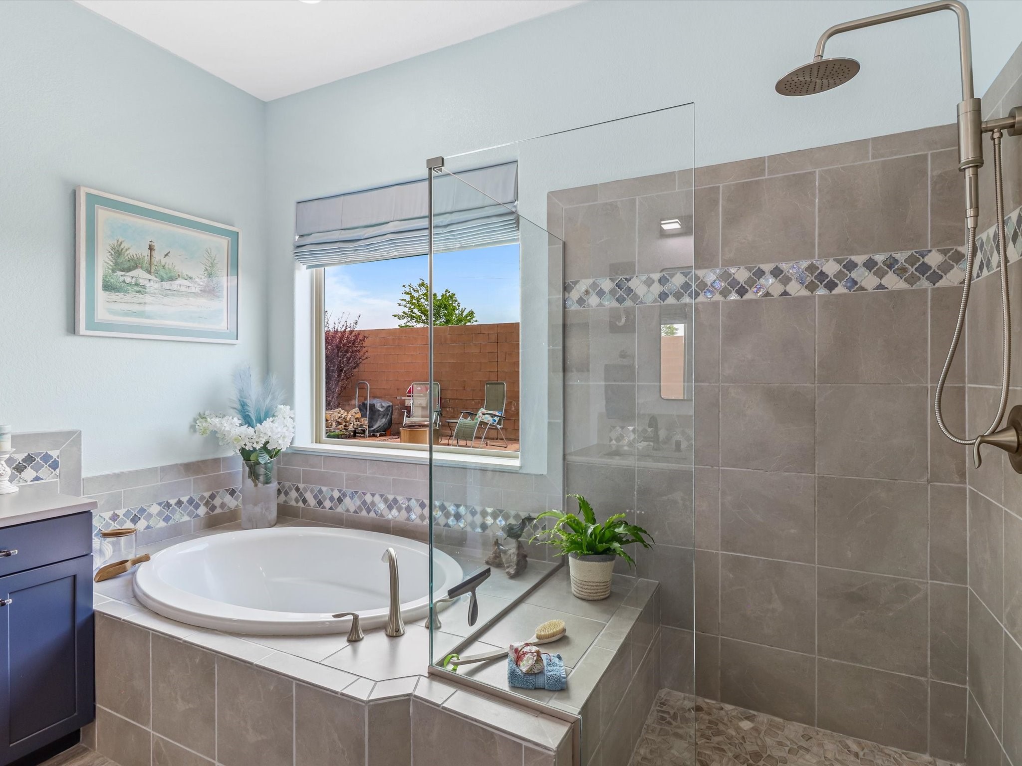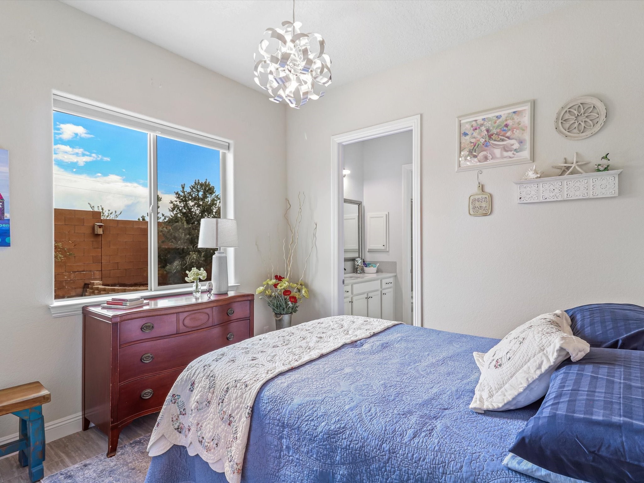 Discover refined living in this beautifully upgraded 3-bedroom, 2.5-bath, 2,543 sq ft home nestled on a premium corner lot in Santa Fe's desirable Las Soleras neighborhood. Set on an expansive .27-acre lot, this home offers the perfect blend of elegance, comfort, and location--just minutes from shopping, parks, and scenic walking trails.Step inside and fall in love with the a welcoming open layout filled with natural light, a fully renovated powder room, freshly painted living spaces (walls, ceilings, baseboards, and trim),10 ft ceilings, 8 foot doors, and updated ceramic tile surrounding the cozy fireplace. The Chef's kitchen is a showstopper, featuring new quartz countertops, soft-close cabinetry with custom pull-outs, added storage on the back of the island, sizable pantry, and top-tier appliances including an upgraded KitchenAid wall oven/microwave combo, Bosch dishwasher, LG electric cooktop with touch controls (gas hookup available to allow for easy cooktop switch out if preferred), and LG refrigerator. Retreat to the luxurious primary suite where the bathroom has been transformed with quartz countertops, soft-close, pull-out cabinetry, upgraded light fixtures, new sinks, mirrors, and tile backsplash.Outside, enjoy newly updated landscaping and a spacious backyard oasis with endless potential. Even the storage garage has been upgraded with a new automatic door opener and security locks--ideal for peace of mind and convenience.From top-to-bottom upgrades to an unbeatable location, this Estancias de Las Soleras gem is a rare find. Schedule your private showing today and experience elevated Santa Fe living!