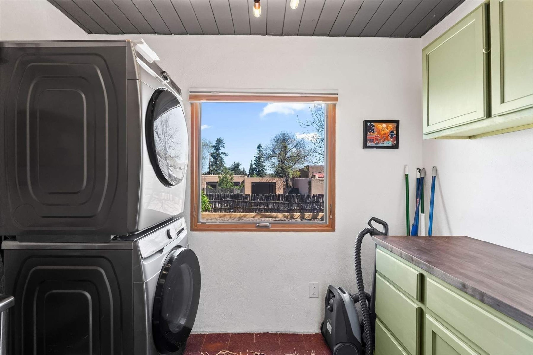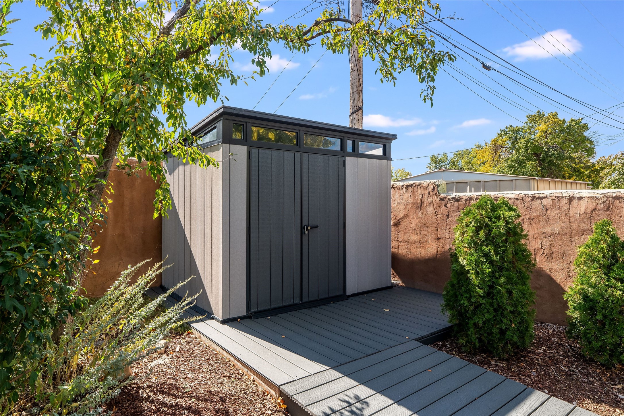 In the charming and centrally located Don Diego neighborhood, 622 Calle Grillo is a rare property with great character and flexibility. A two-bedroom main house and a detached one-bedroom casita sit opposite each other on a 0.15-acre lot, each with their own private and ample outdoor spaces. In an age of uniform whitebox houses, this classic build and styled home is refreshing for its connection to Santa Fe's puebloan architectural roots. Lovingly owned and updated, the property has modern comforts and details wrapped in the warm colors and touches complimentary of its adobe and block construction. Exposed adobe and faux painted walls are the backdrop for an open living, kitchen and dining area that flows to the large backyard. Despite being in the heart of town, the mature landscaping, which includes 70-year-old rose bushes, a large Mountain Ash and gorgeous lilacs and fruit trees, create a treasured sense of privacy. The casita provides opportunities for a future owner, either as spacious guest accommodations or as an income generating asset for short or long term rentals. A short walk to the Railyard, the Cordova shopping center, and the Plaza make this one of the few homes that provide such great value within the epicenter of Santa Fe life.