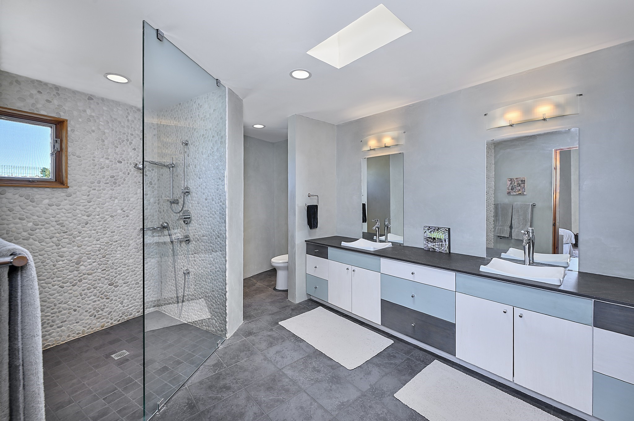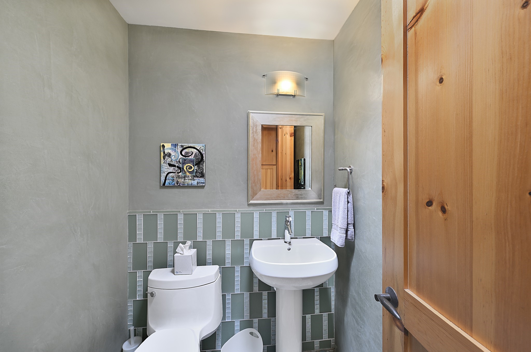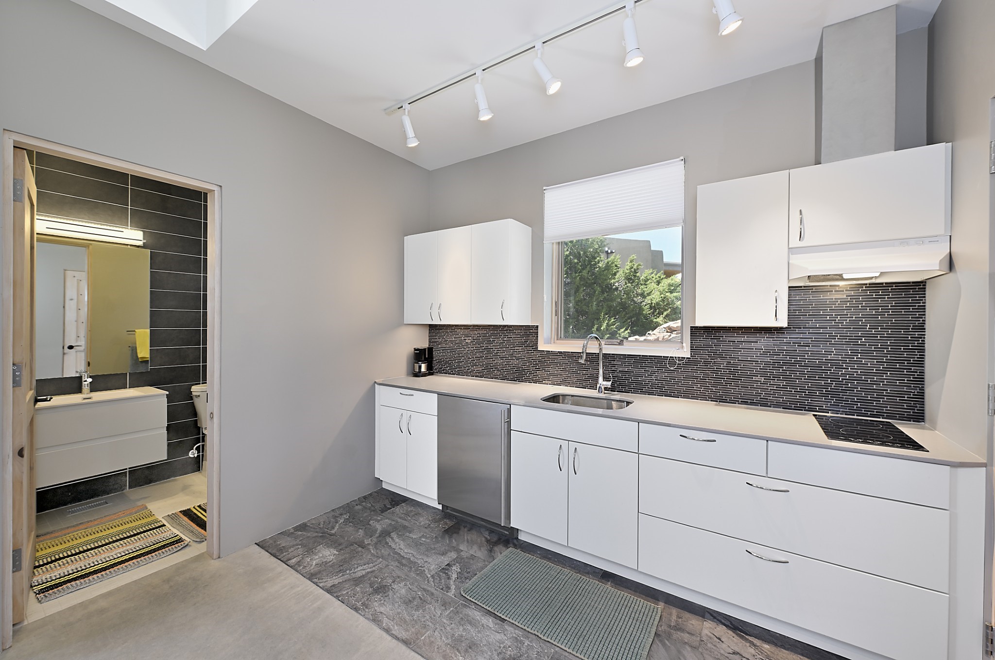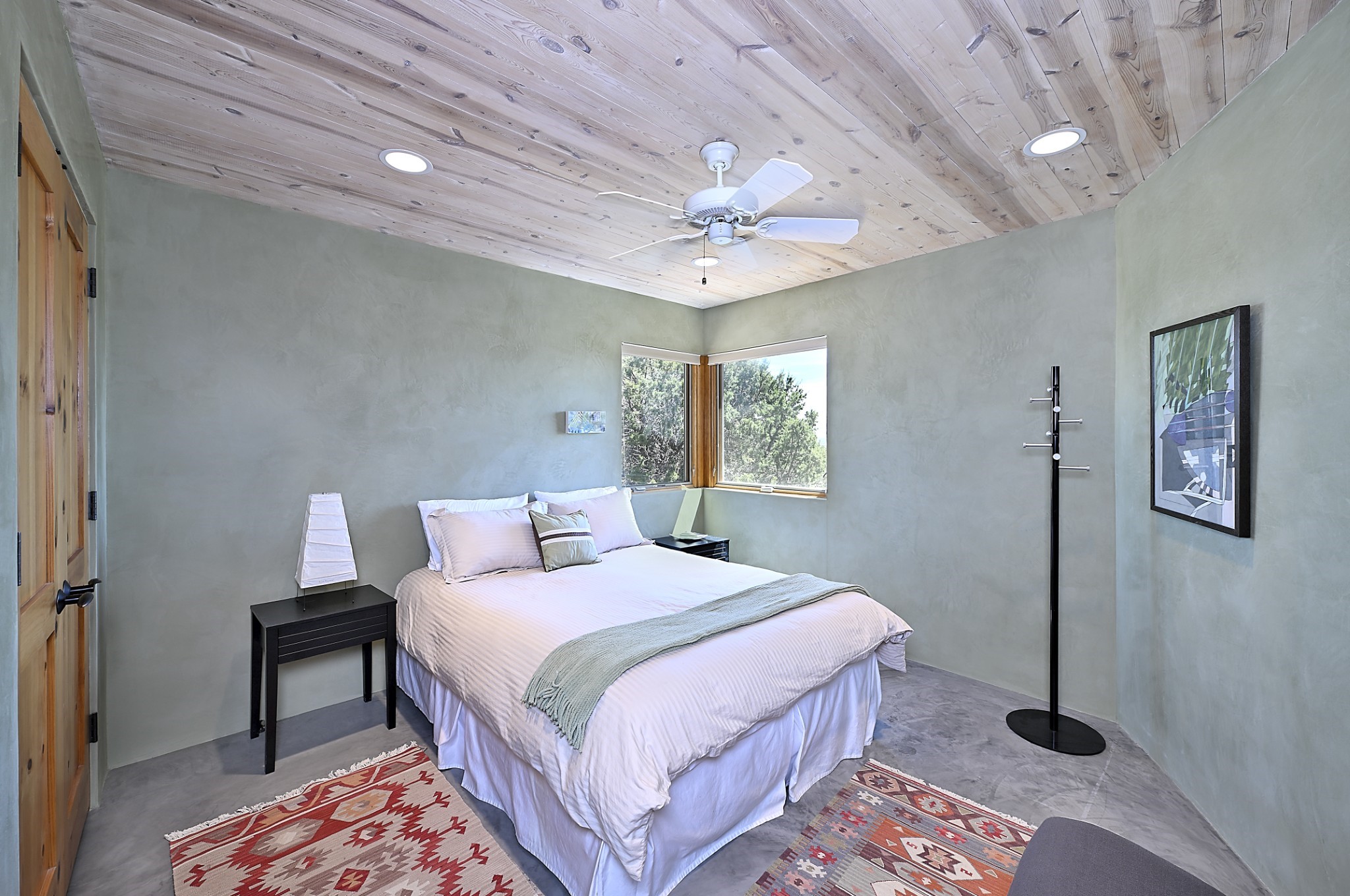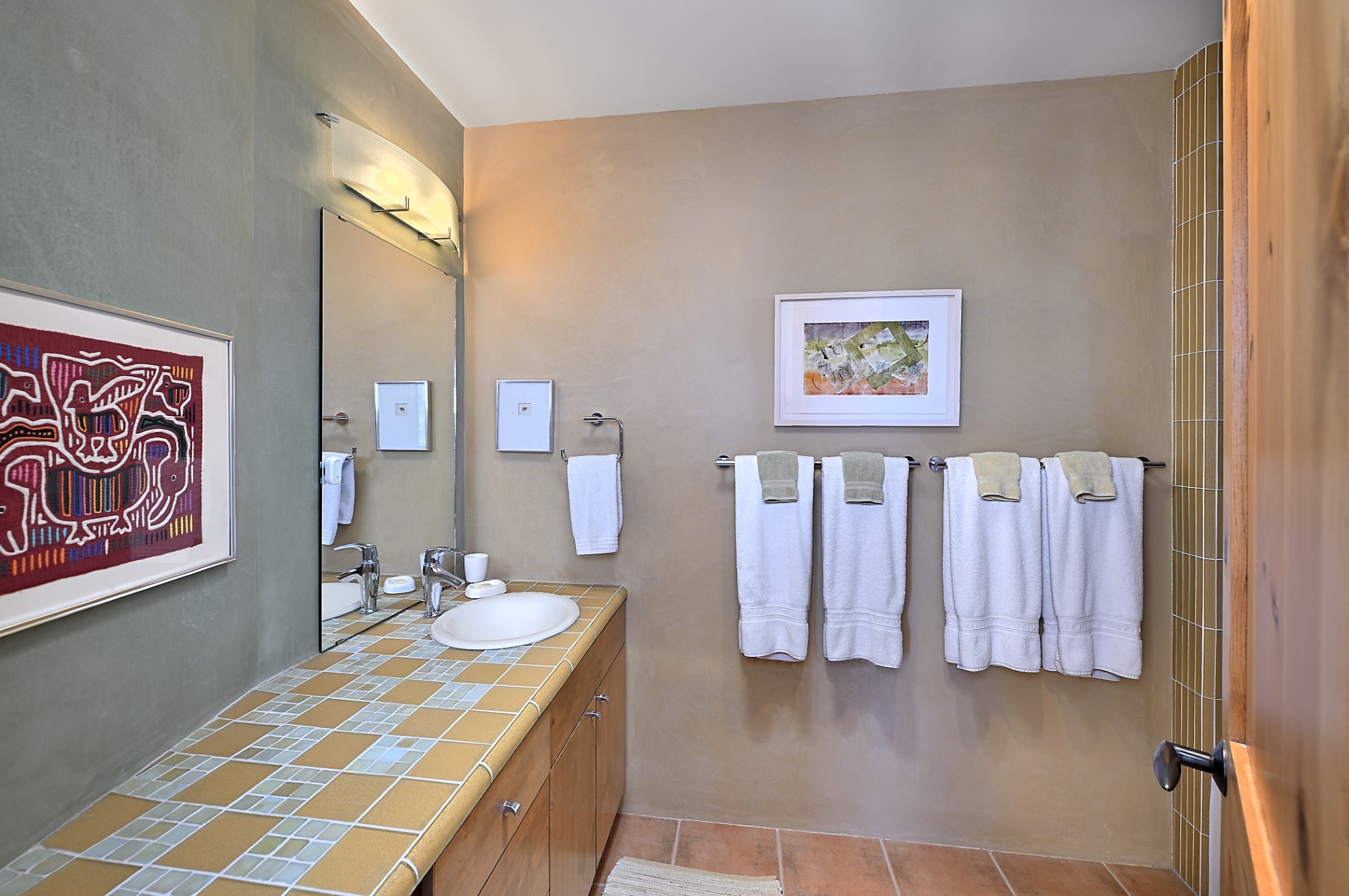 Perched atop a grassy mesa on over 40 acres covering 3 tracts, this 2009 adobe home designed by Ted Turner offers panoramic views of the Sangre de Cristo, Sandia, Jemez, Ortiz Mountain ranges& Mount Taylor. Exuding Santa Fe elegance, with soft contemporary design, featuring concrete floors, diamond-finish clay plaster walls, expansive banks of windows, exposed beams. The chef's kitchen is open and bright, with quartz countertops, a 4-burner range, convection microwave, custom soft-close cabinetry, and pantry. The open-concept layout flows into a curved gallery hallway with indoor-outdoor living and large portals to experience Santa Fe's breathtaking sunsets. Views from every room & excellent separation of bedrooms for privacy and comfort, enjoy radiant in-floor heating, a high-efficiency boiler, a 6,500-gallon rainwater collection system, 12-panel solar array, solar-powered well, and whole-house water filtration as well as a commercial grade roof. The 750-square-foot studio/guest house--built to passive house standard- can be used as an art studio, office, or guest quarters, with south-facing light, concrete floors, a kitchenette, and half-bath. Enjoy a three-car garage with a tall roll-up door, workshop space, and rodent-resistant construction. This an extraordinary retreat just minutes from the heart of Santa Fe--yet worlds away in tranquility and privacy.