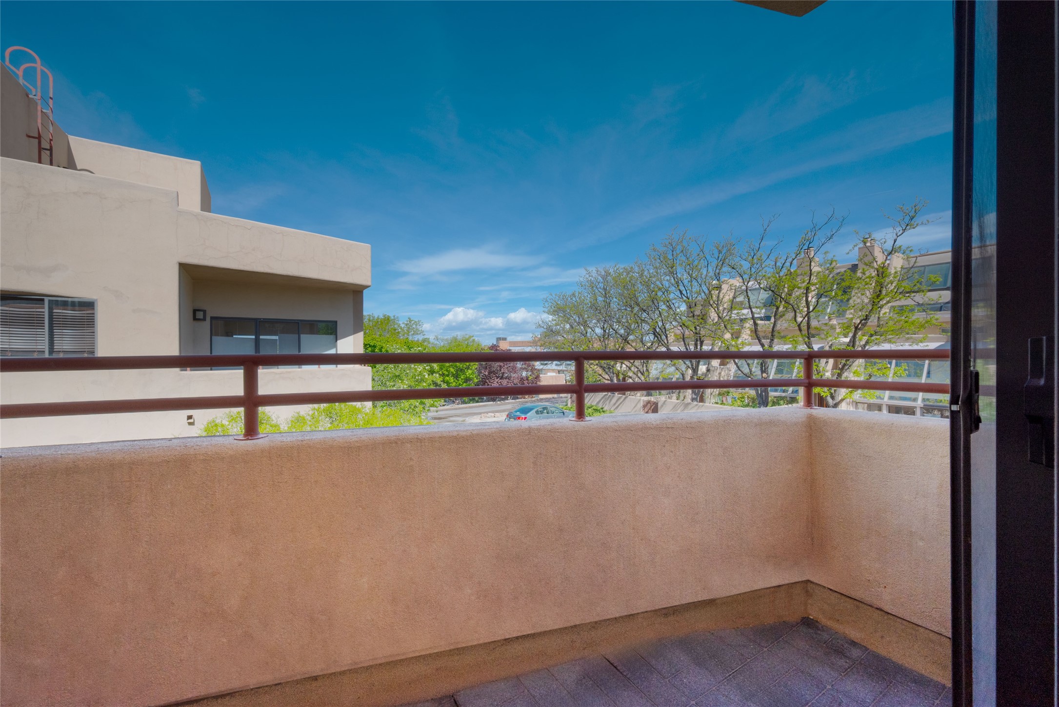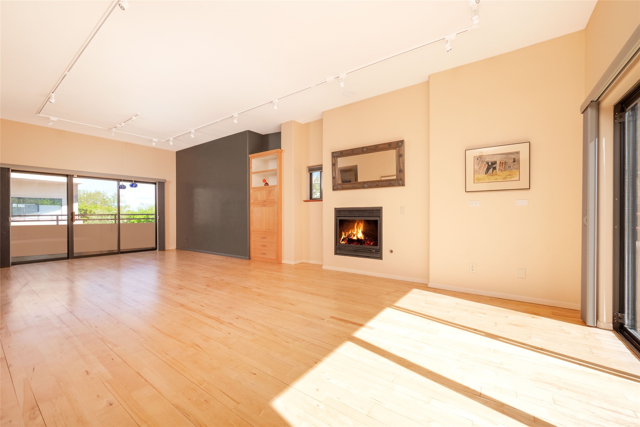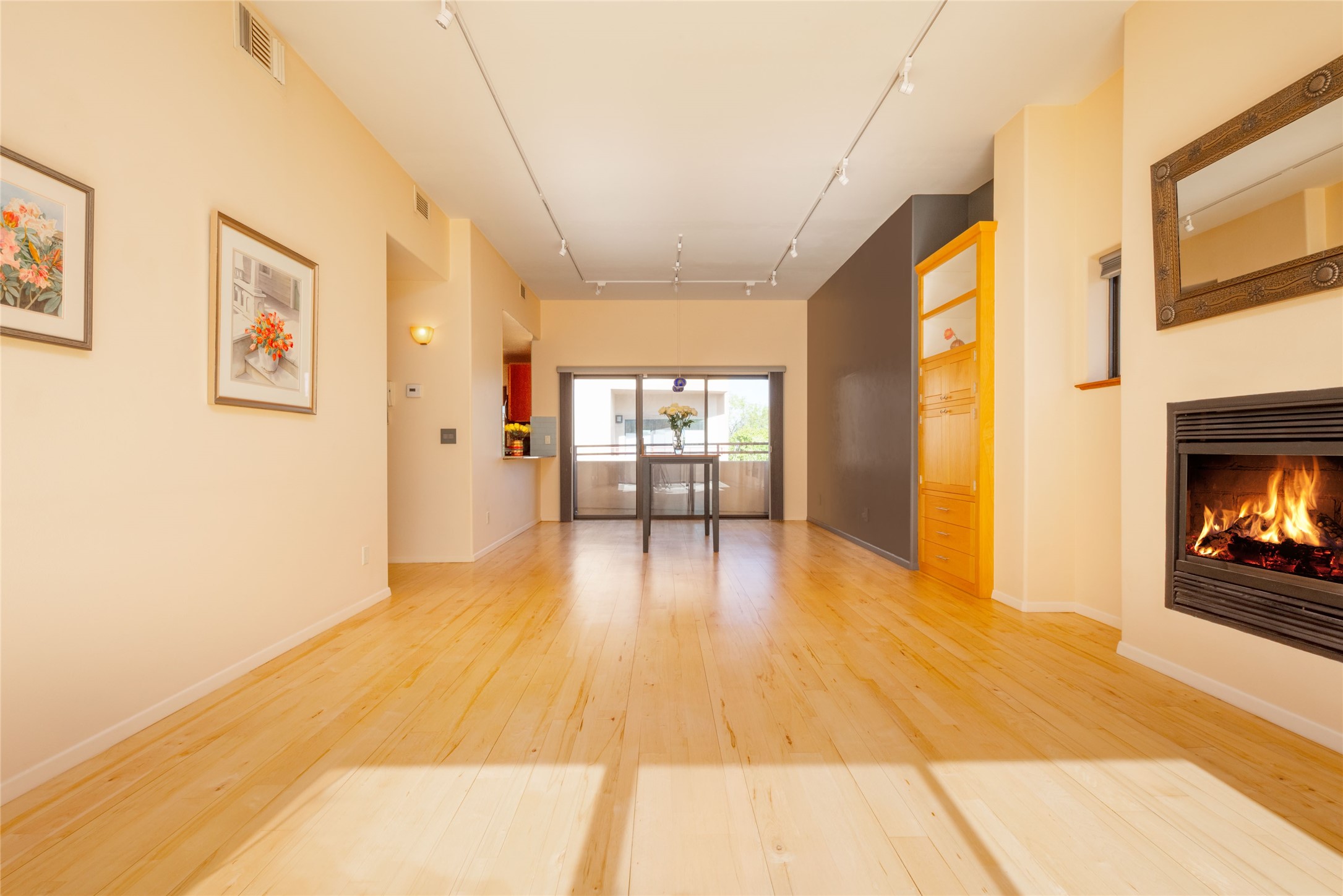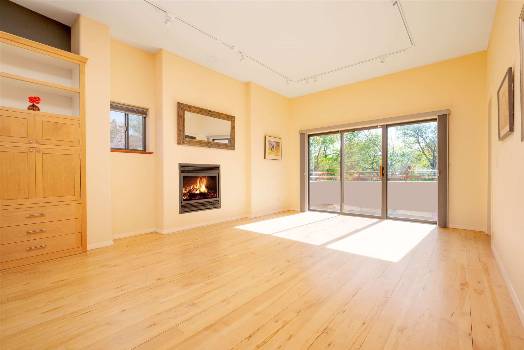 311 La Remuda is a sophisticated, contemporary home close to everything you love about Santa Fe. Two balconies, one for sunrise and one for sunset views, provide beautiful light throughout the day. The open plan kitchen and living area feature maple floors, built-in custom storage, stone countertops, a sleek gas fireplace, and a dramatic accent wall for your favorite piece of art. This second-floor unit is also the penthouse - no one will live above you. A stack washer/dryer in the unit, covered parking, a large storage unit, and a convenient in-town location make 311 La Remuda a wonderful and practical home or vacation get-away.