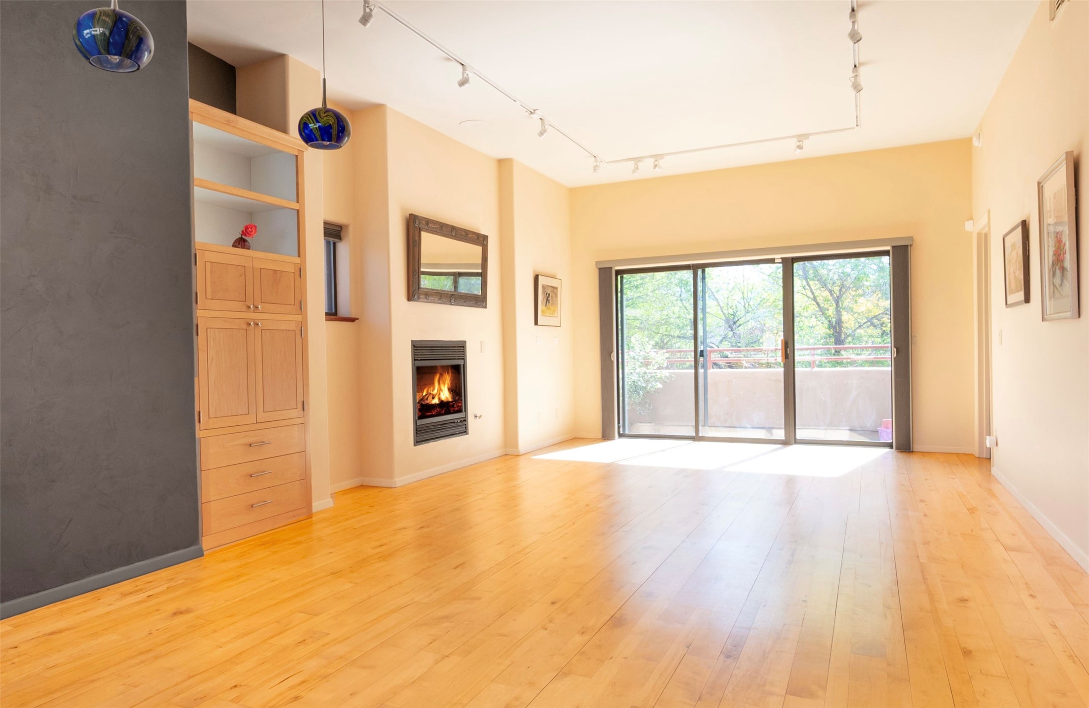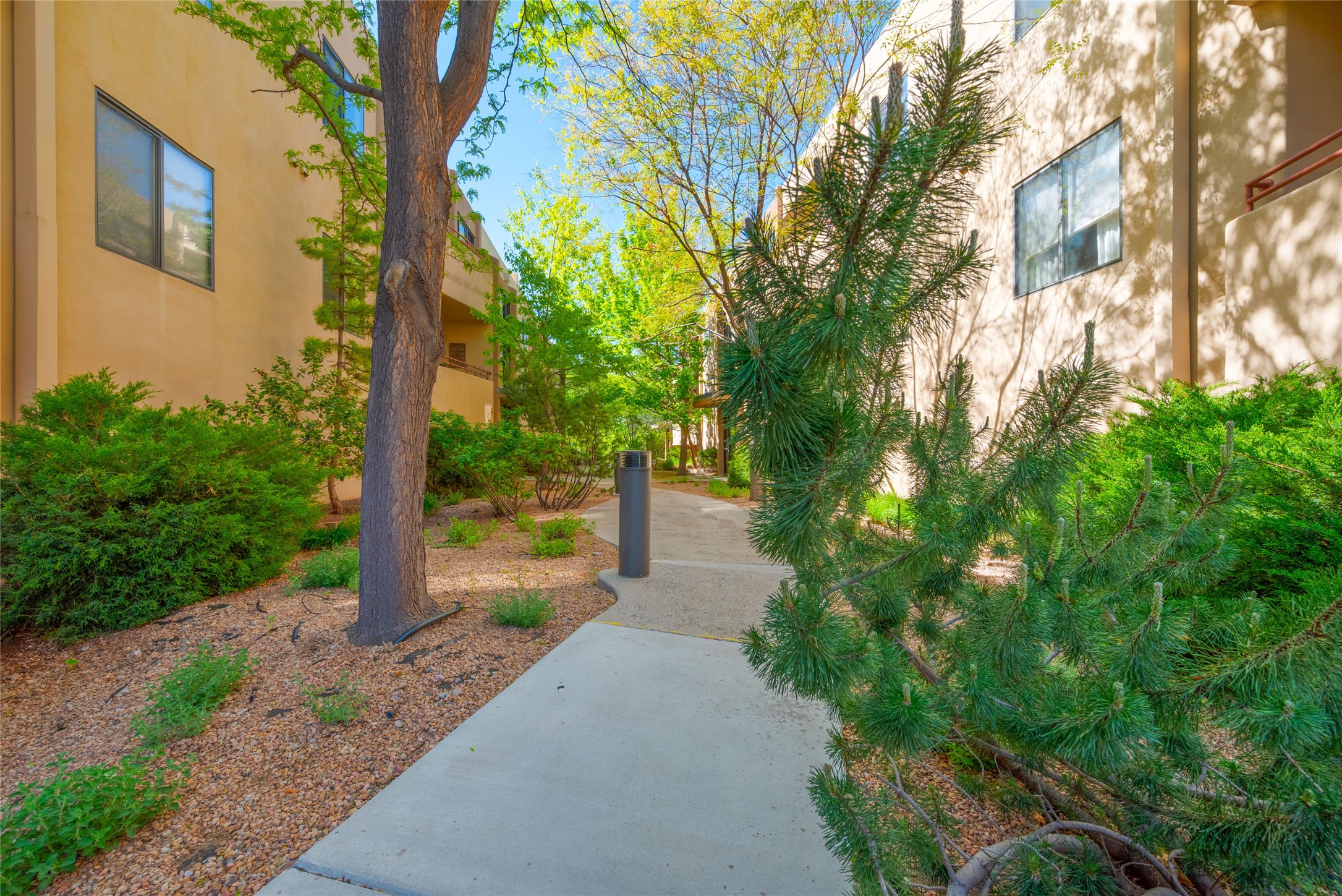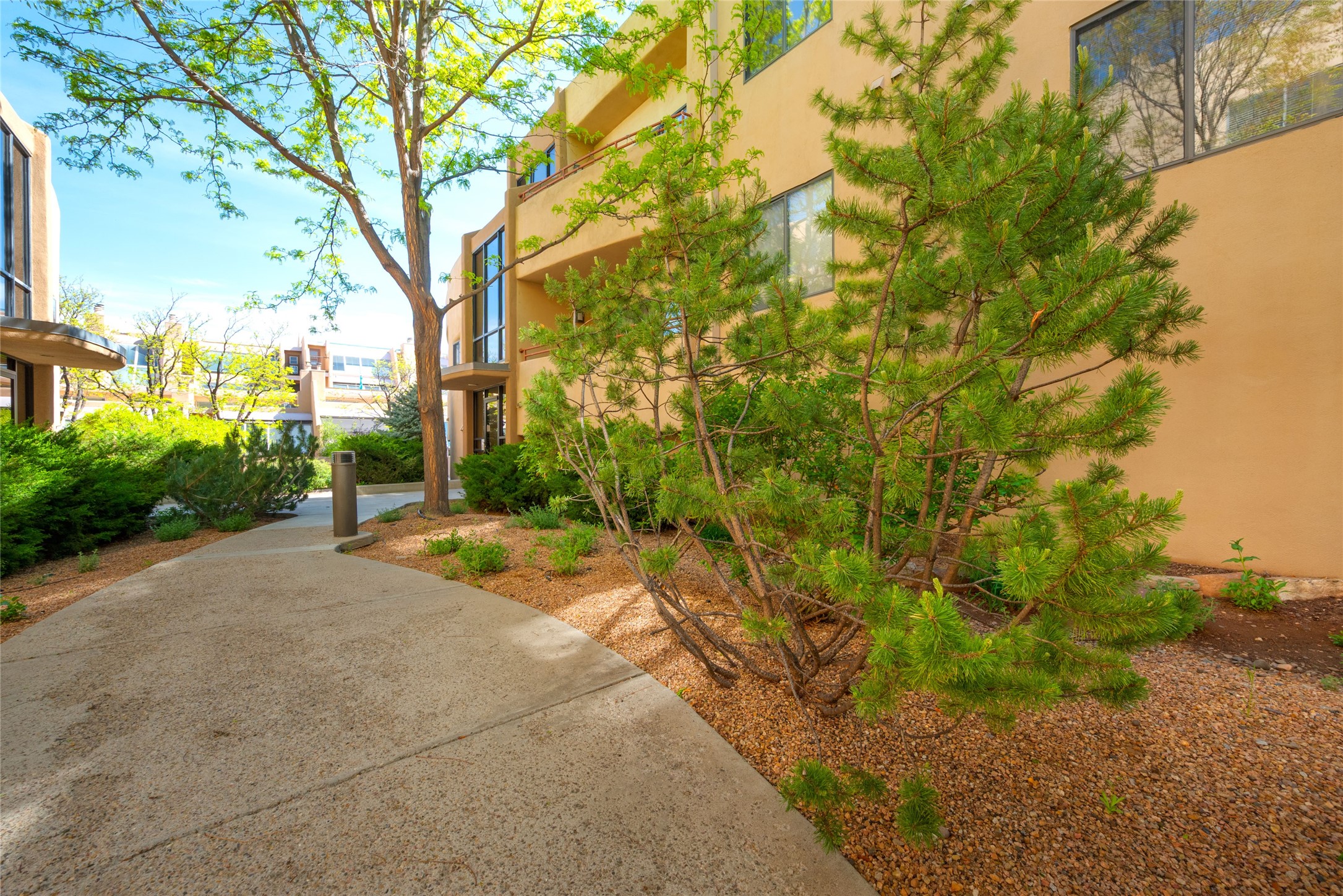 311 La Remuda is a sophisticated, contemporary home close to everything you love about Santa Fe. Two balconies, one for sunrise and one for sunset views, provide beautiful light throughout the day. The open plan kitchen and living area feature maple floors, built-in custom storage, stone countertops, a sleek gas fireplace, and a dramatic accent wall for your favorite piece of art. This second-floor unit is also the penthouse - no one will live above you. A stack washer/dryer in the unit, covered parking, a large storage unit, and a convenient in-town location make 311 La Remuda a wonderful and practical home or vacation get-away.