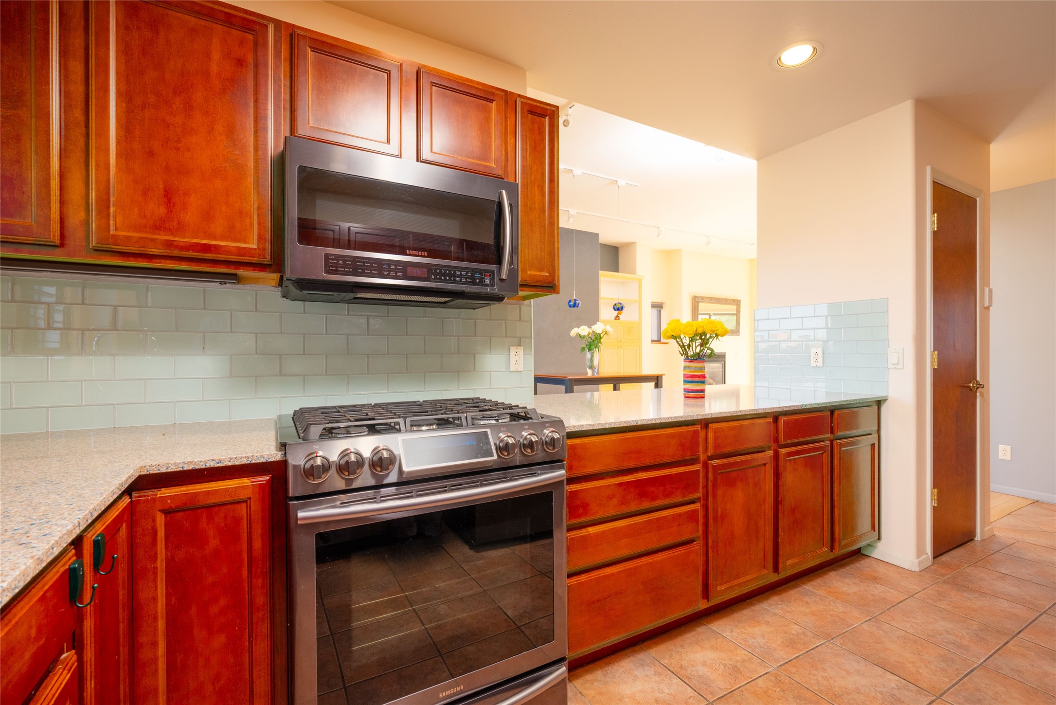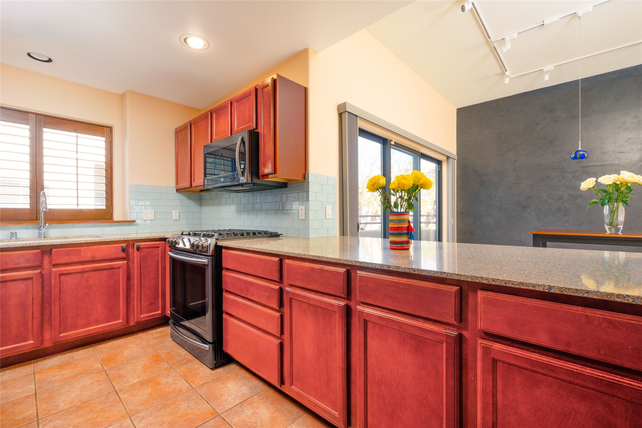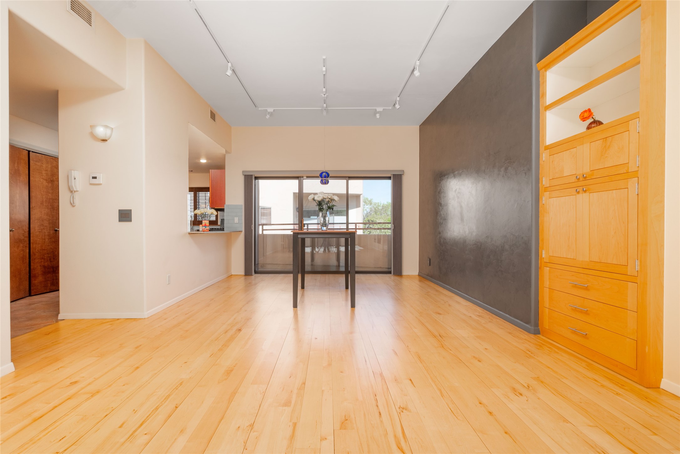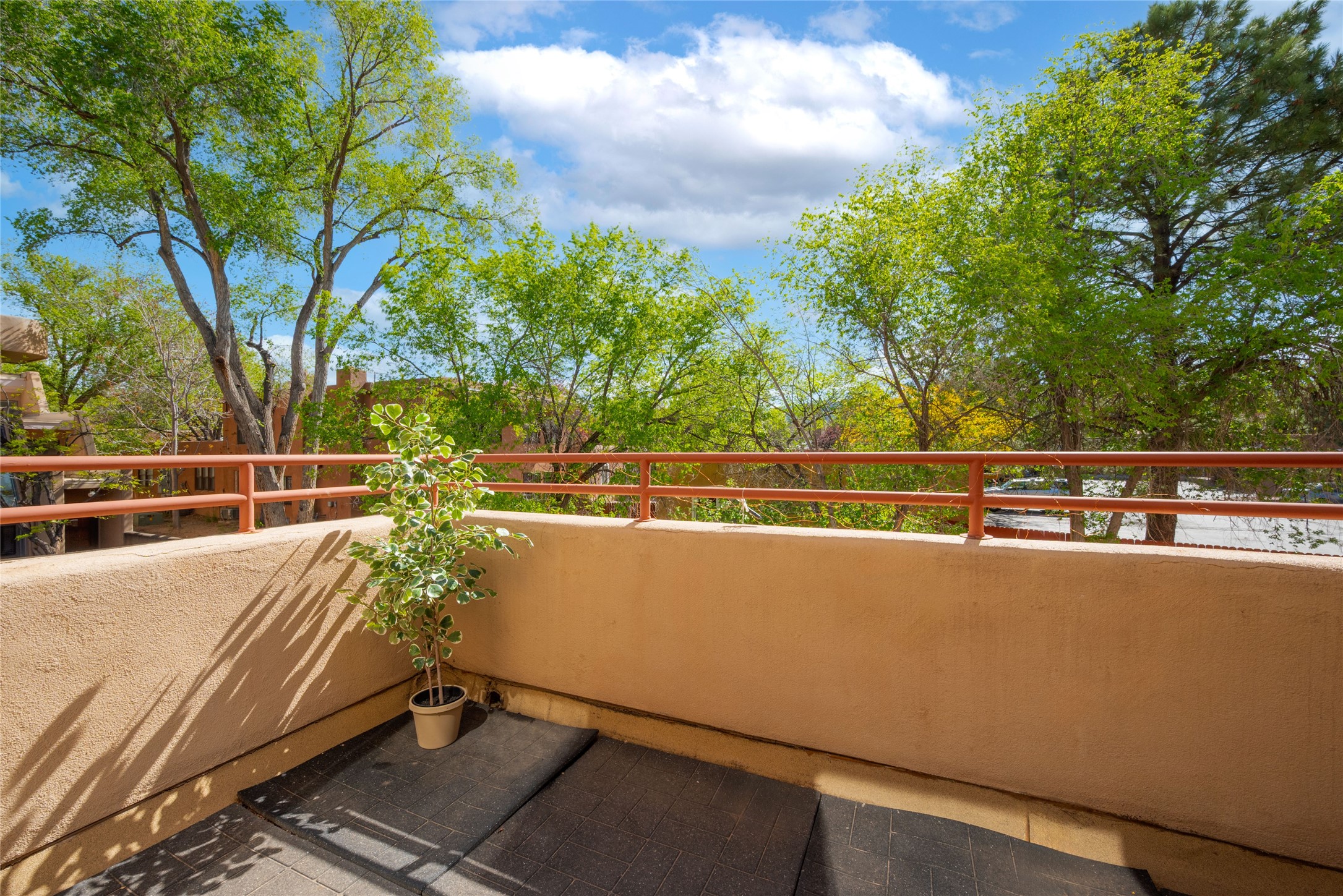 311 La Remuda is a sophisticated, contemporary home close to everything you love about Santa Fe. Two balconies, one for sunrise and one for sunset views, provide beautiful light throughout the day. The open plan kitchen and living area feature maple floors, built-in custom storage, stone countertops, a sleek gas fireplace, and a dramatic accent wall for your favorite piece of art. This second-floor unit is also the penthouse - no one will live above you. A stack washer/dryer in the unit, covered parking, a large storage unit, and a convenient in-town location make 311 La Remuda a wonderful and practical home or vacation get-away.