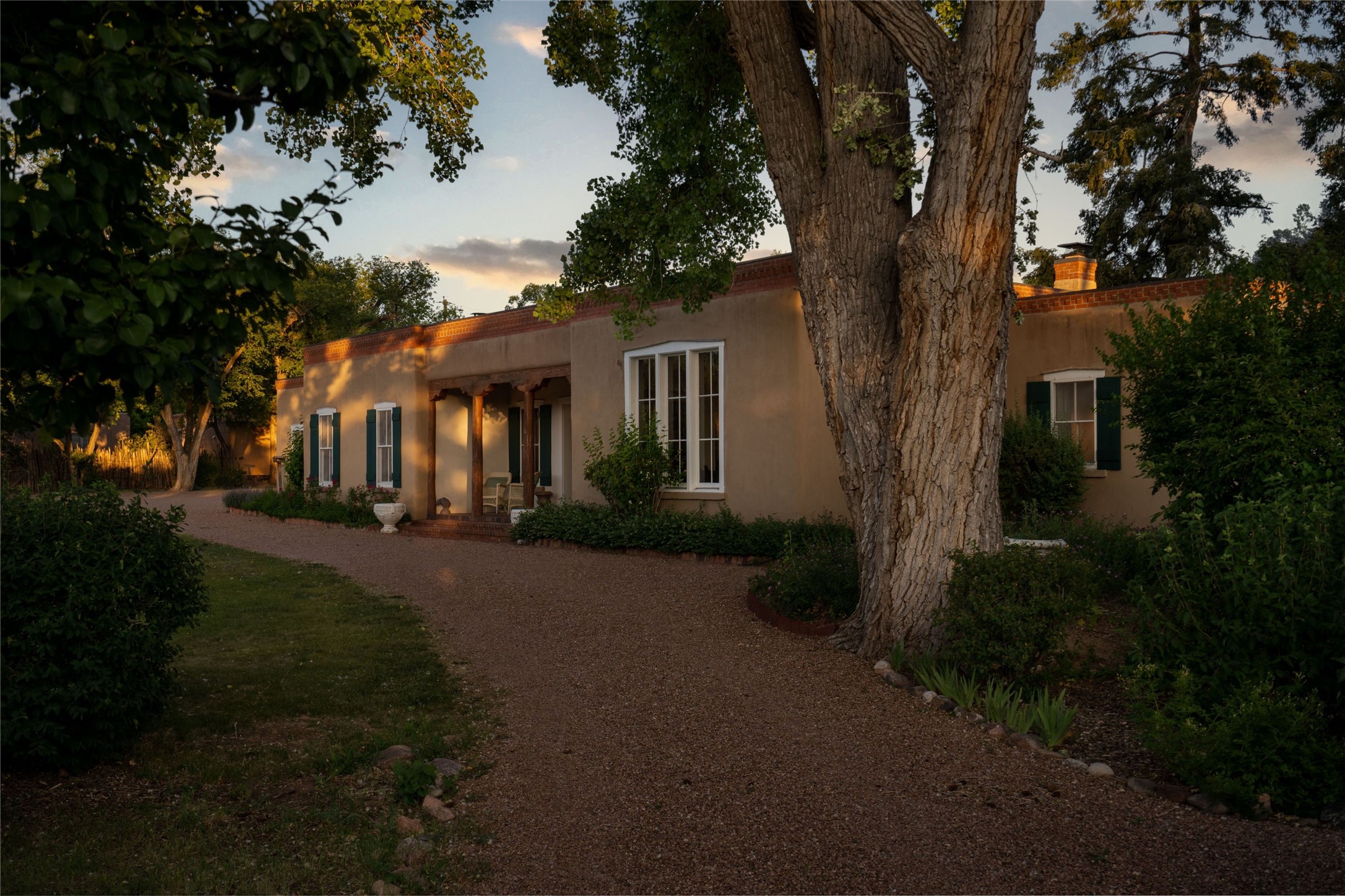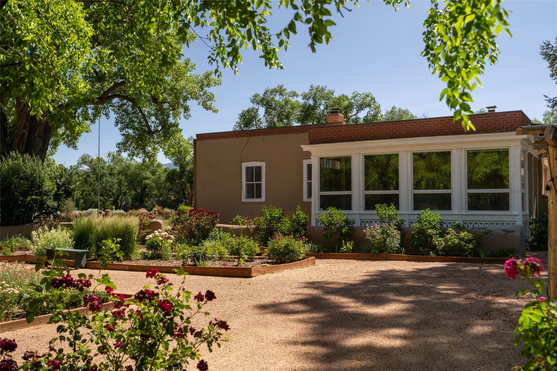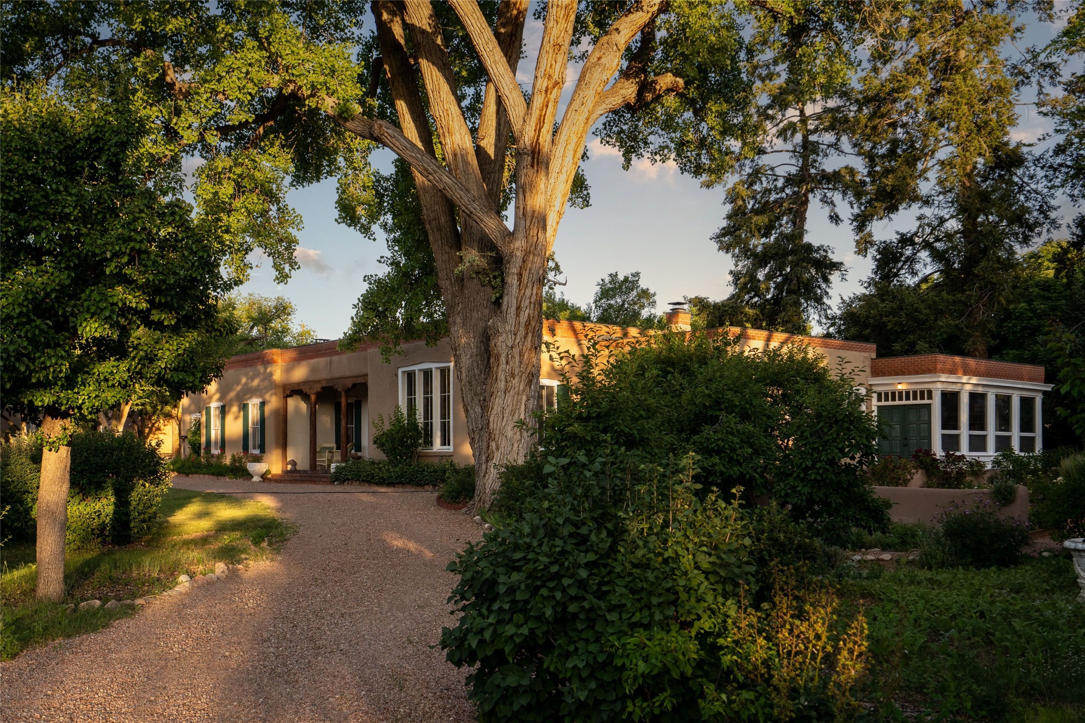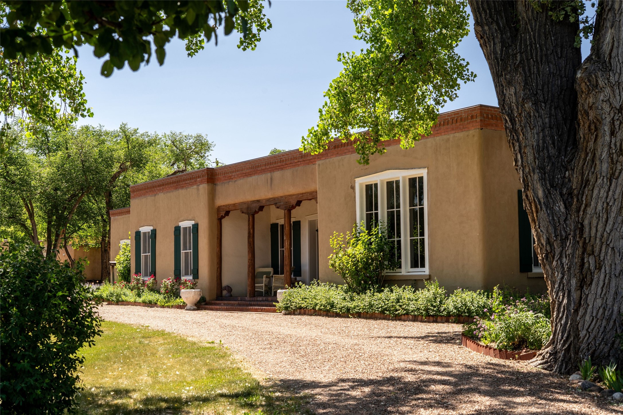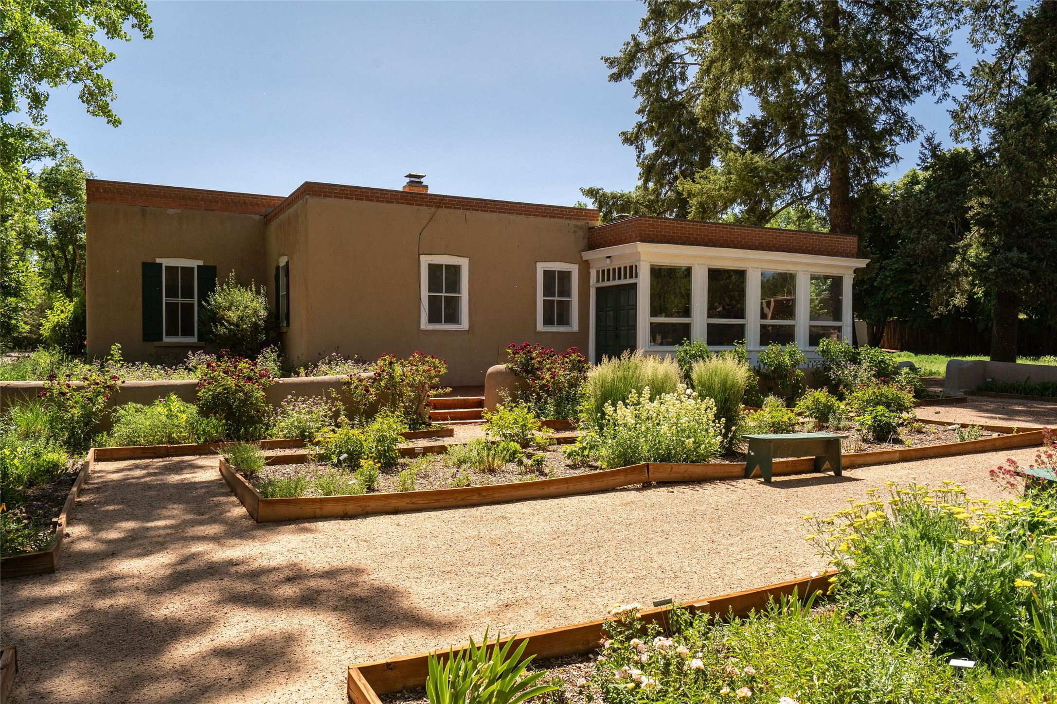 Acquire a treasured piece of Santa Fe history with The Acequia Madre House, a cornerstone and time capsule of Santa Fe's rich cultural and artistic legacy. This truly remarkable estate, built in 1926 by the influential women Eva Scott Fnyes, her daughter Leonora S. M. Curtin, and granddaughter Leonora F. Curtin, is a living museum of fine handcrafted woodwork, sculpted kiva fireplaces, and traditional artistic details. These trailblazing women played a significant role in the "cultural crafting" of Santa Fe, and their legacy is beautifully reflected in the exquisite workmanship of this extraordinary property. Set on just over 3 acres within the esteemed Camino del Monte Sol Historic District, The Acequia Madre House features a spacious 5,450 sq ft main house alongside a 2,313 sq ft carriage house. Recognized by both federal and state historic preservation authorities, the main house embodies the rich heritage of the region. Designed in classic Old Santa Fe Style, the single-story structure showcases territorial elements that capture the essence of Southwestern architecture. Inside, the main house offers an array of inviting spaces, from cozy to grand, including a spacious living room that serves as the perfect gathering place, an elegant dining room, and a study that provides a quiet retreat for work or reflection. Two luminous sunrooms create serene spots to enjoy the beautiful natural surroundings. The estate includes a one-car garage as well as parking for up to 13 vehicles. The property is adorned with mature trees and features a large lawn. Conveniently located just moments away from iconic Canyon Road and the historic downtown plaza, this architectural and historical showpiece is unequaled in its entertaining and artistic potential. Being offered below appraisal.