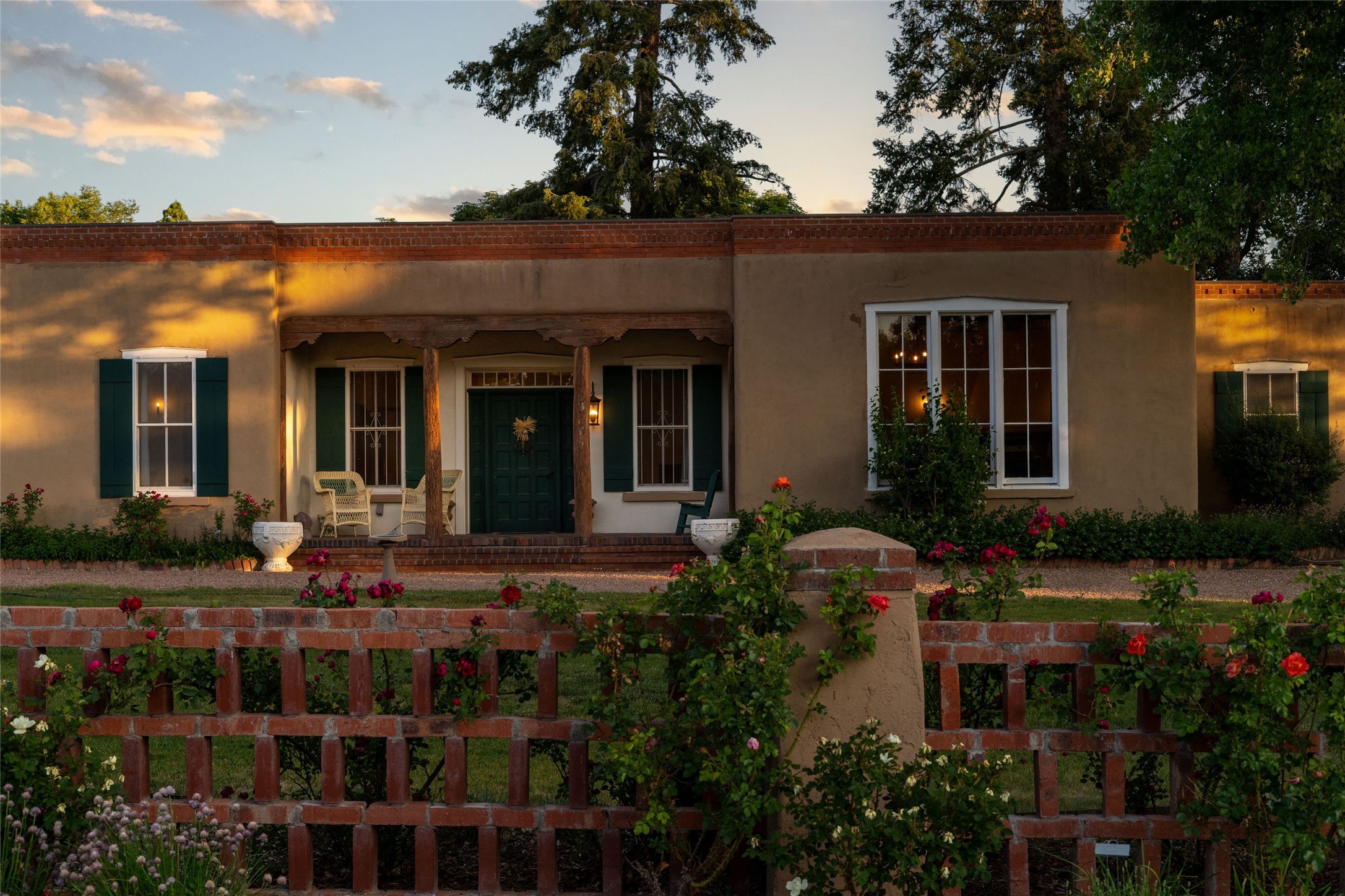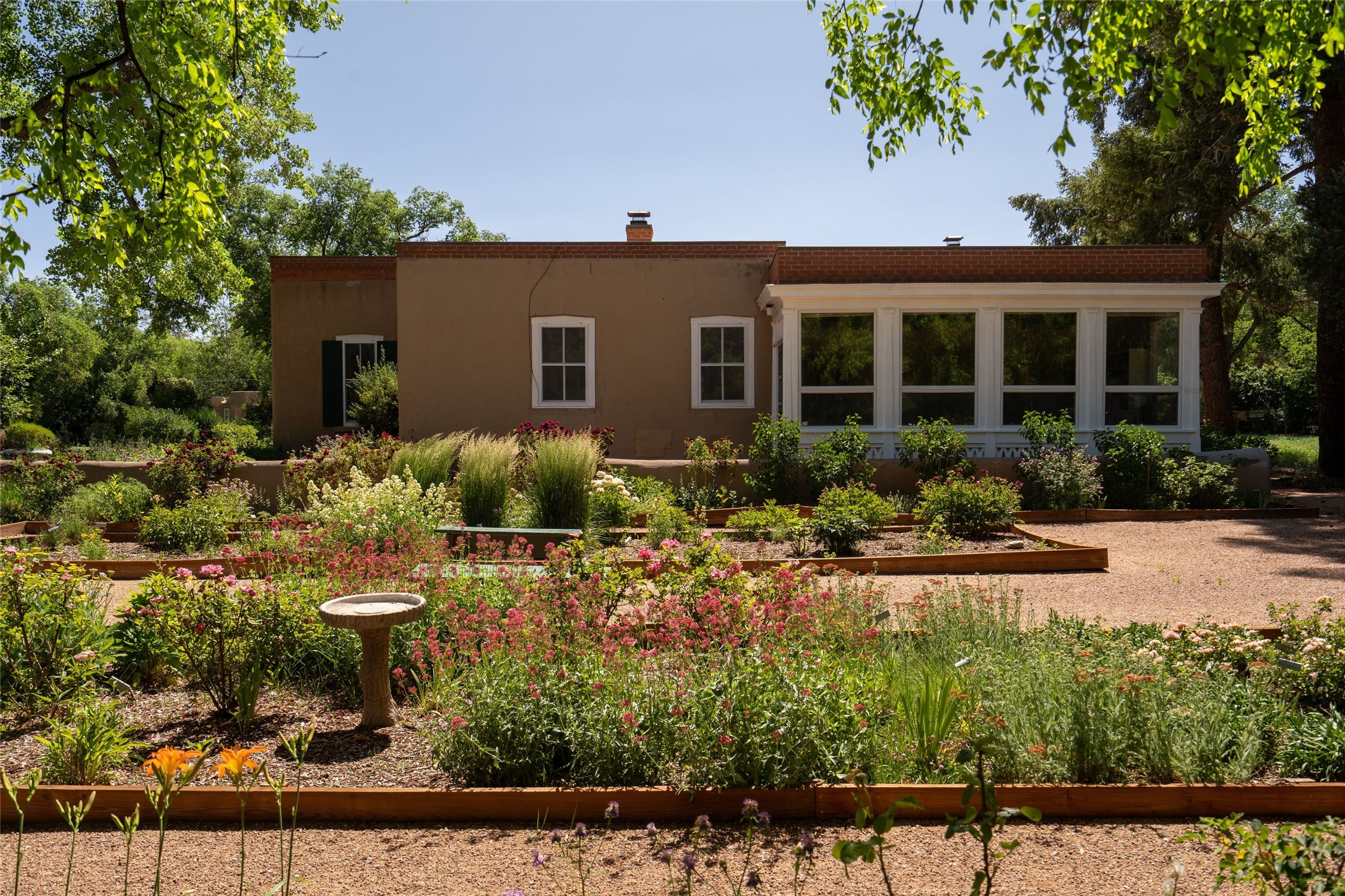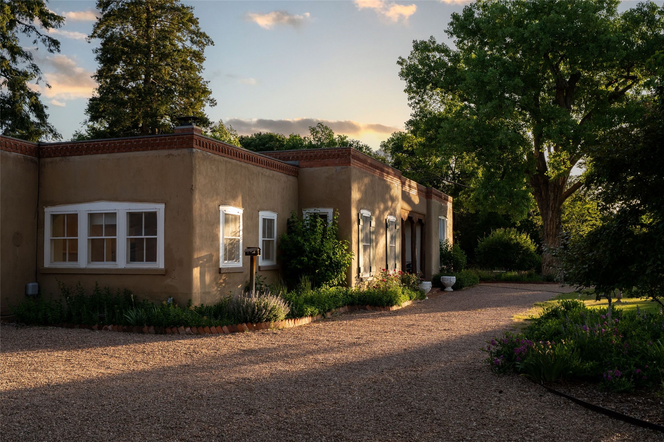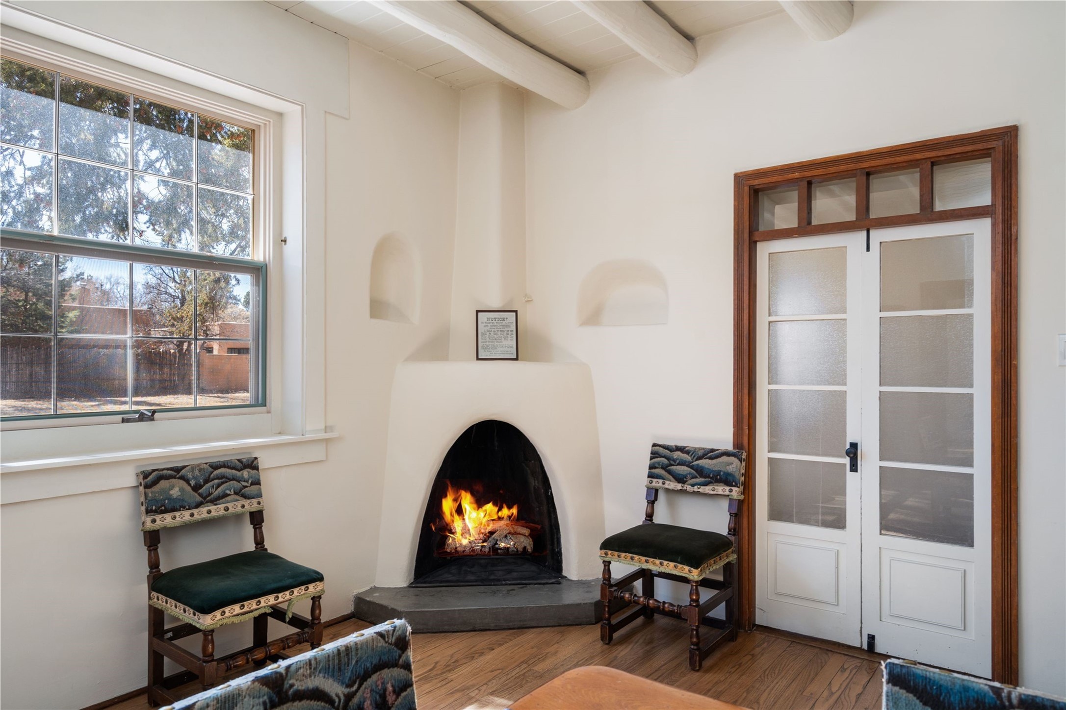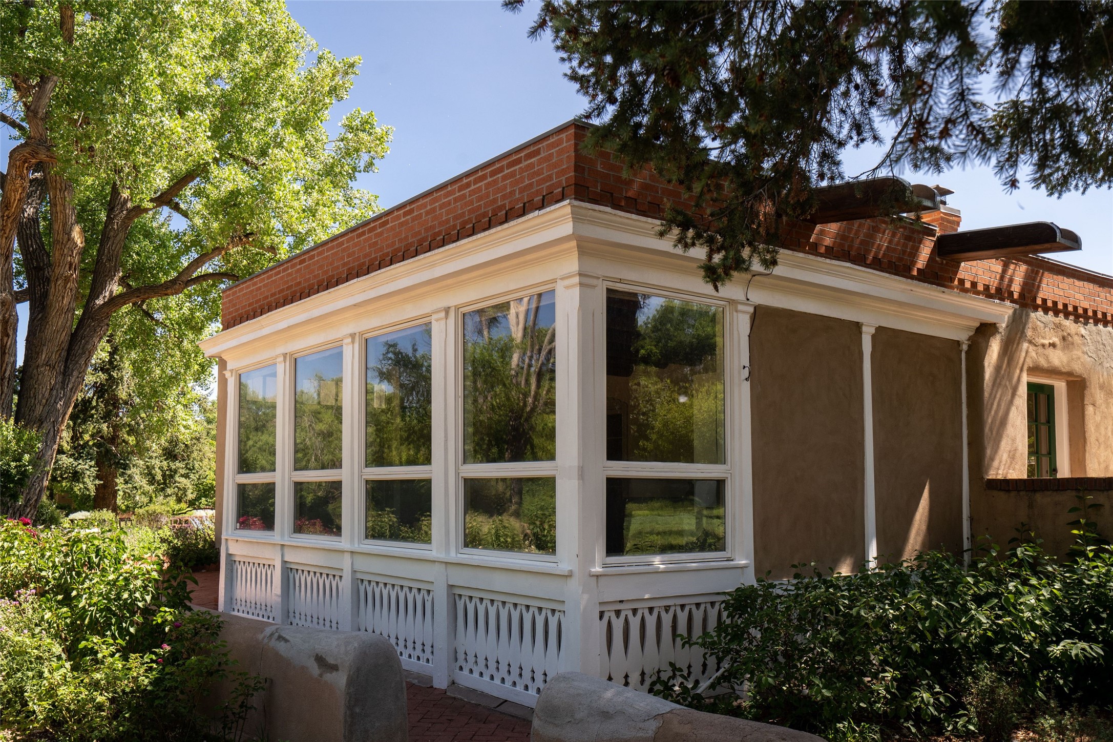 Acquire a treasured piece of Santa Fe history with The Acequia Madre House, a cornerstone and time capsule of Santa Fe's rich cultural and artistic legacy. This truly remarkable estate, built in 1926 by the influential women Eva Scott Fnyes, her daughter Leonora S. M. Curtin, and granddaughter Leonora F. Curtin, is a living museum of fine handcrafted woodwork, sculpted kiva fireplaces, and traditional artistic details. These trailblazing women played a significant role in the "cultural crafting" of Santa Fe, and their legacy is beautifully reflected in the exquisite workmanship of this extraordinary property. Set on just over 3 acres within the esteemed Camino del Monte Sol Historic District, The Acequia Madre House features a spacious 5,450 sq ft main house alongside a 2,313 sq ft carriage house. Recognized by both federal and state historic preservation authorities, the main house embodies the rich heritage of the region. Designed in classic Old Santa Fe Style, the single-story structure showcases territorial elements that capture the essence of Southwestern architecture. Inside, the main house offers an array of inviting spaces, from cozy to grand, including a spacious living room that serves as the perfect gathering place, an elegant dining room, and a study that provides a quiet retreat for work or reflection. Two luminous sunrooms create serene spots to enjoy the beautiful natural surroundings. The estate includes a one-car garage as well as parking for up to 13 vehicles. The property is adorned with mature trees and features a large lawn. Conveniently located just moments away from iconic Canyon Road and the historic downtown plaza, this architectural and historical showpiece is unequaled in its entertaining and artistic potential. Being offered below appraisal.