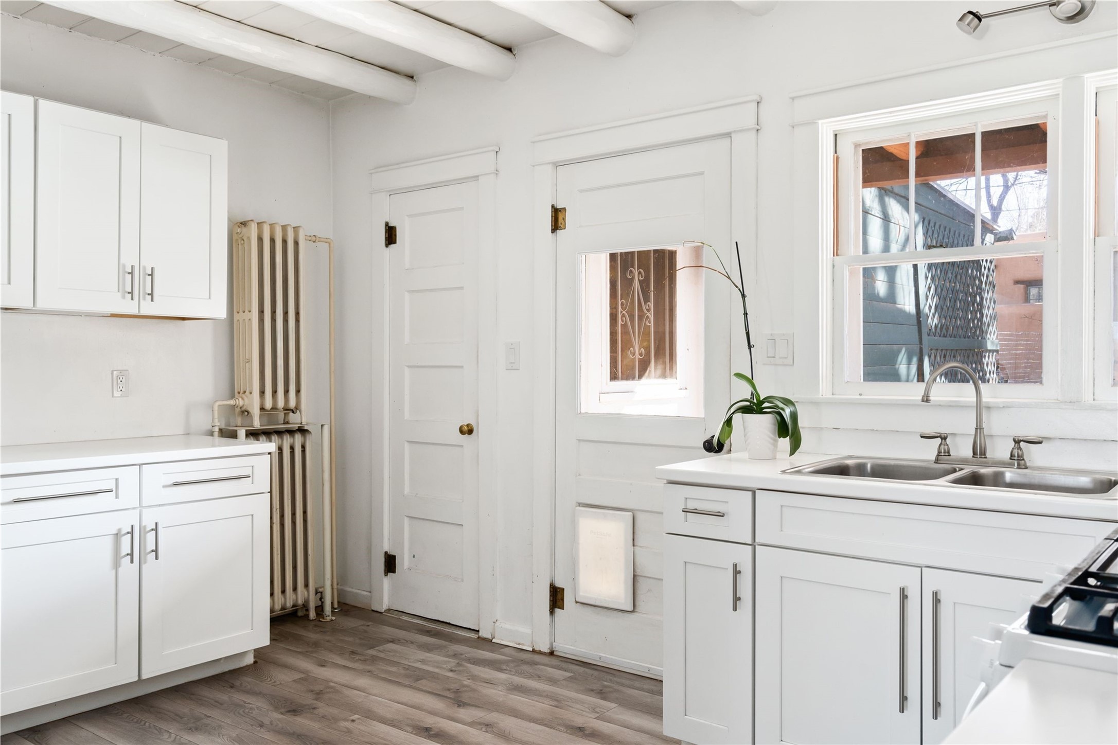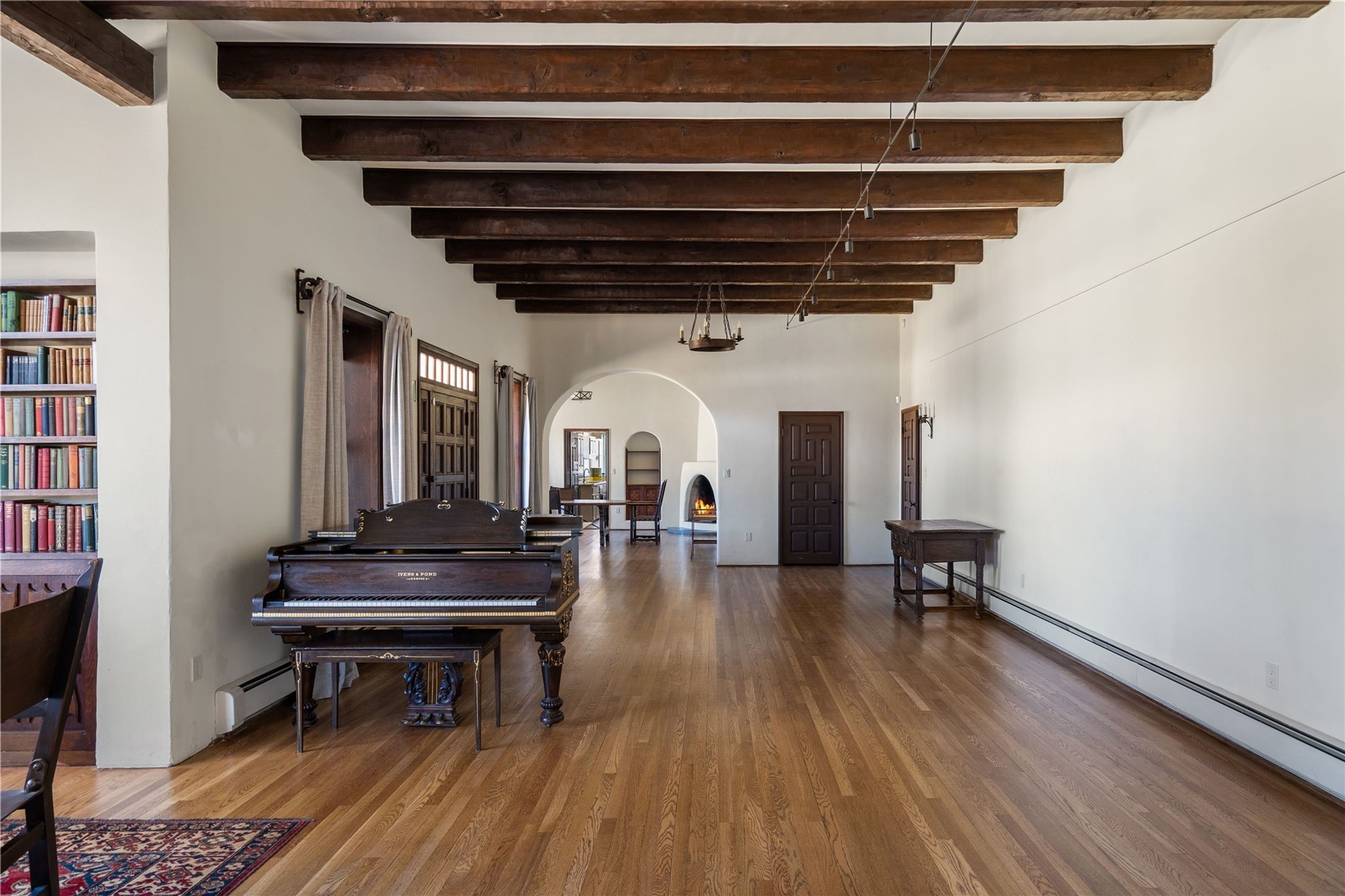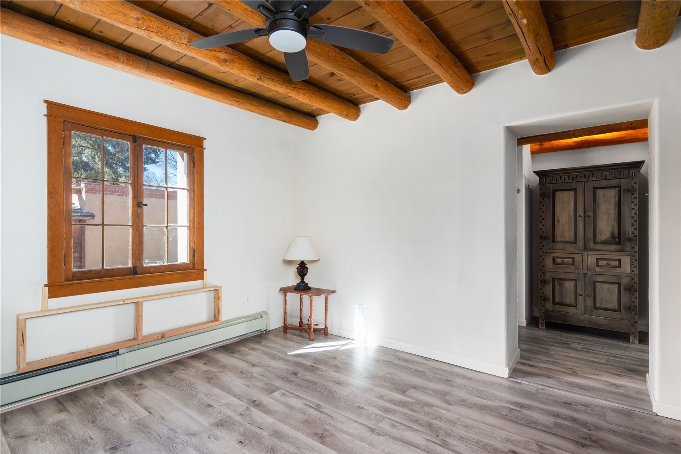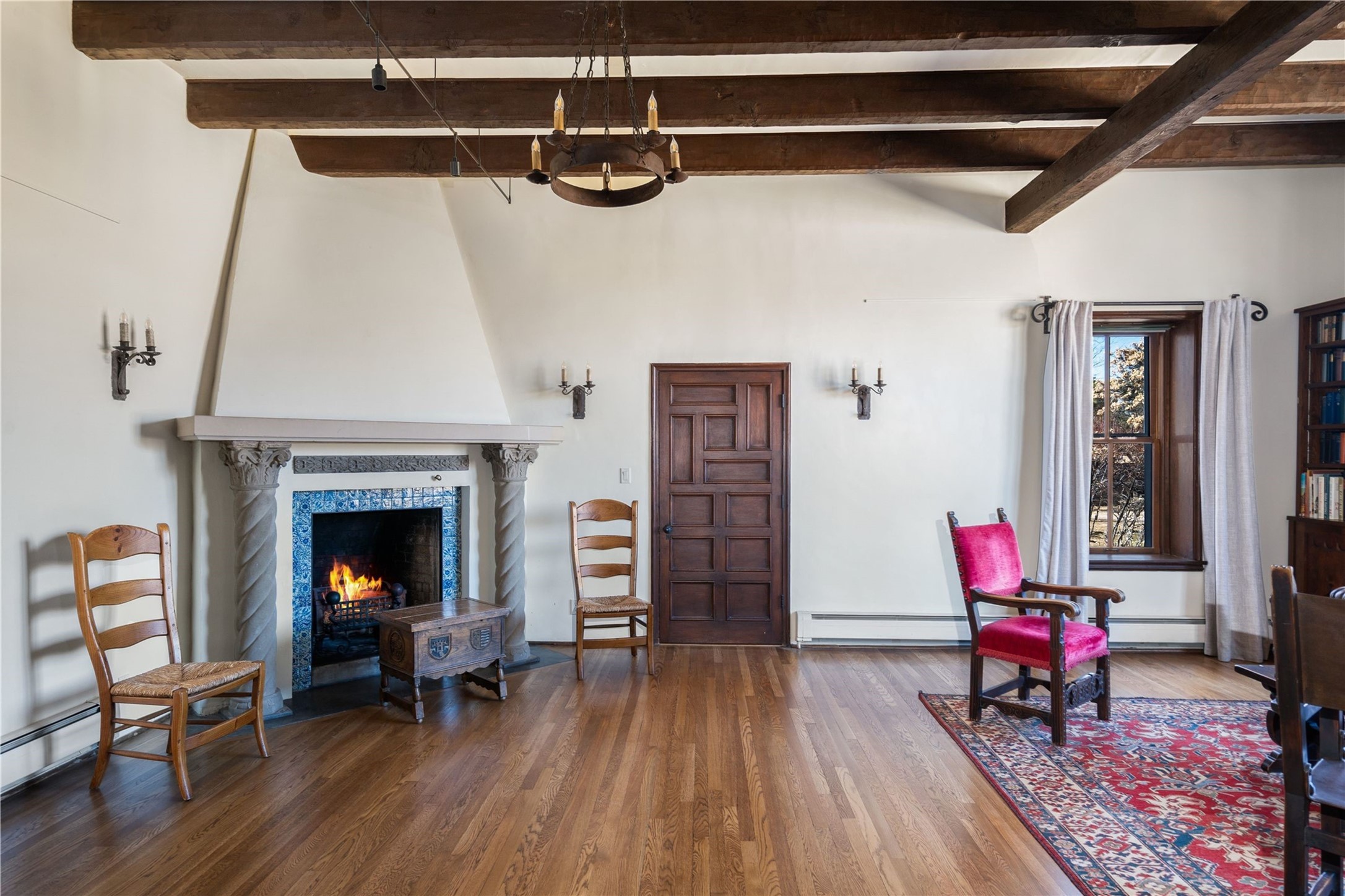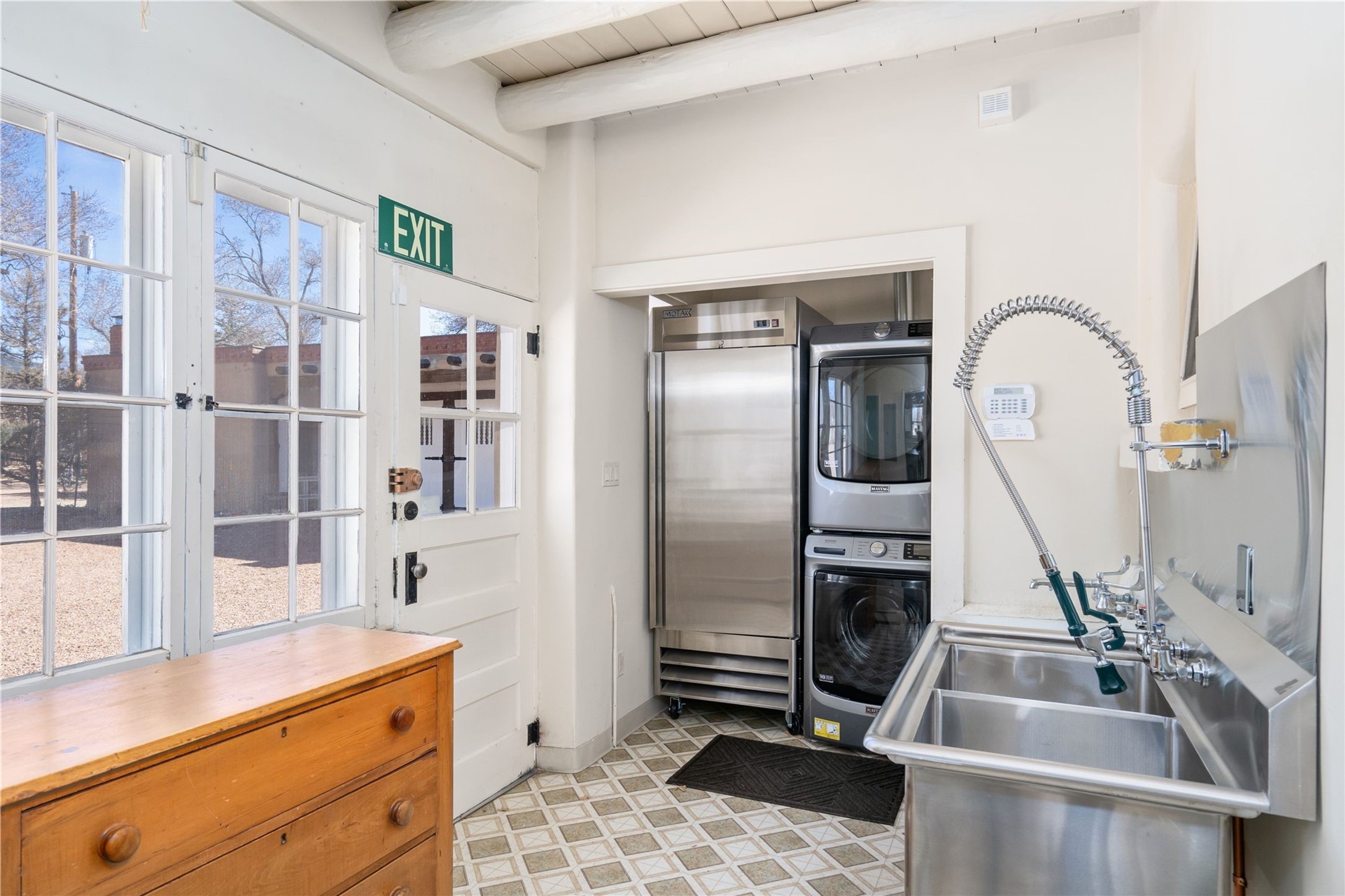 Acquire a treasured piece of Santa Fe history with The Acequia Madre House, a cornerstone and time capsule of Santa Fe's rich cultural and artistic legacy. This truly remarkable estate, built in 1926 by the influential women Eva Scott Fnyes, her daughter Leonora S. M. Curtin, and granddaughter Leonora F. Curtin, is a living museum of fine handcrafted woodwork, sculpted kiva fireplaces, and traditional artistic details. These trailblazing women played a significant role in the "cultural crafting" of Santa Fe, and their legacy is beautifully reflected in the exquisite workmanship of this extraordinary property. Set on just over 3 acres within the esteemed Camino del Monte Sol Historic District, The Acequia Madre House features a spacious 5,450 sq ft main house alongside a 2,313 sq ft carriage house. Recognized by both federal and state historic preservation authorities, the main house embodies the rich heritage of the region. Designed in classic Old Santa Fe Style, the single-story structure showcases territorial elements that capture the essence of Southwestern architecture. Inside, the main house offers an array of inviting spaces, from cozy to grand, including a spacious living room that serves as the perfect gathering place, an elegant dining room, and a study that provides a quiet retreat for work or reflection. Two luminous sunrooms create serene spots to enjoy the beautiful natural surroundings. The estate includes a one-car garage as well as parking for up to 13 vehicles. The property is adorned with mature trees and features a large lawn. Conveniently located just moments away from iconic Canyon Road and the historic downtown plaza, this architectural and historical showpiece is unequaled in its entertaining and artistic potential. Being offered below appraisal.