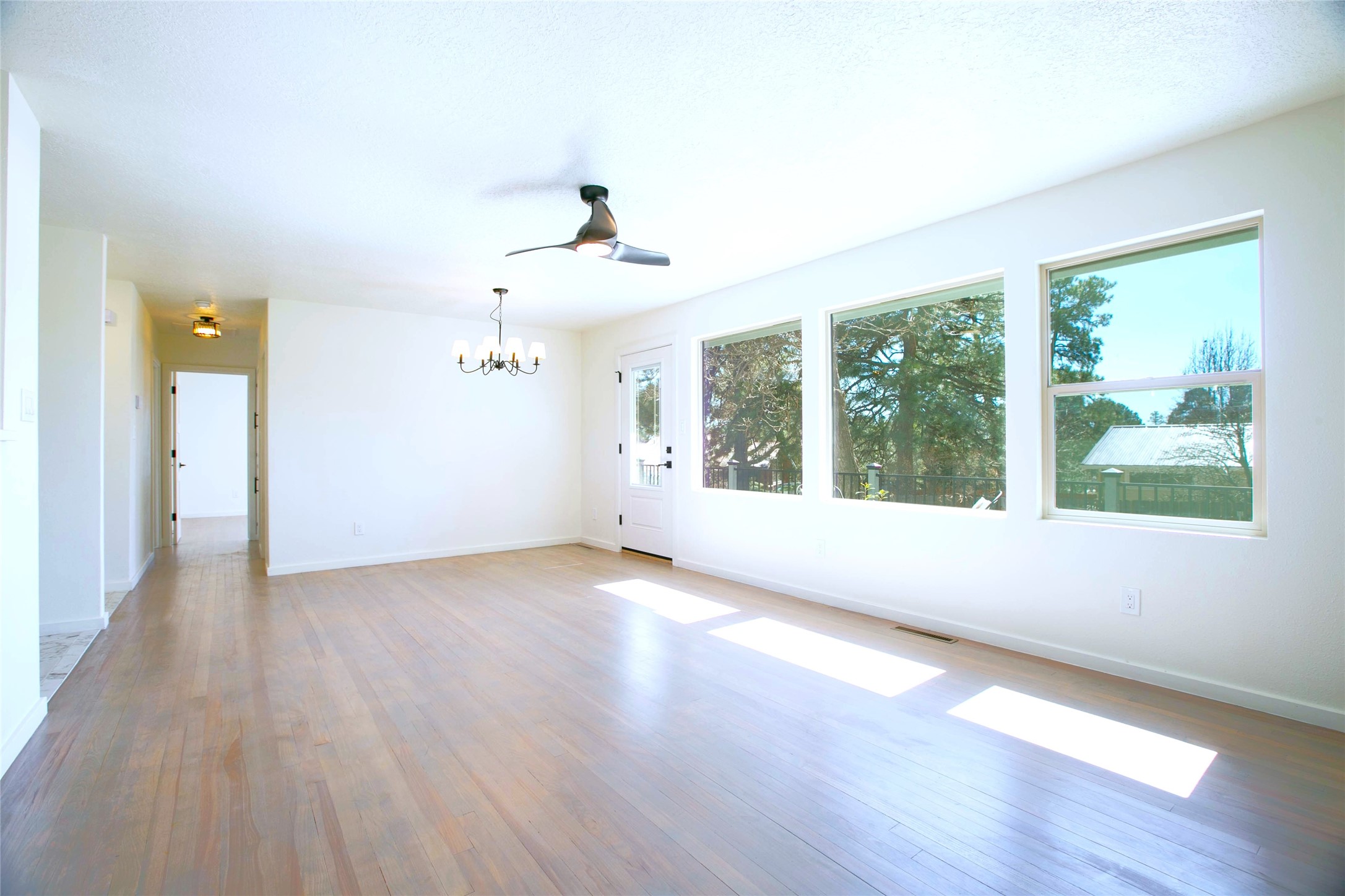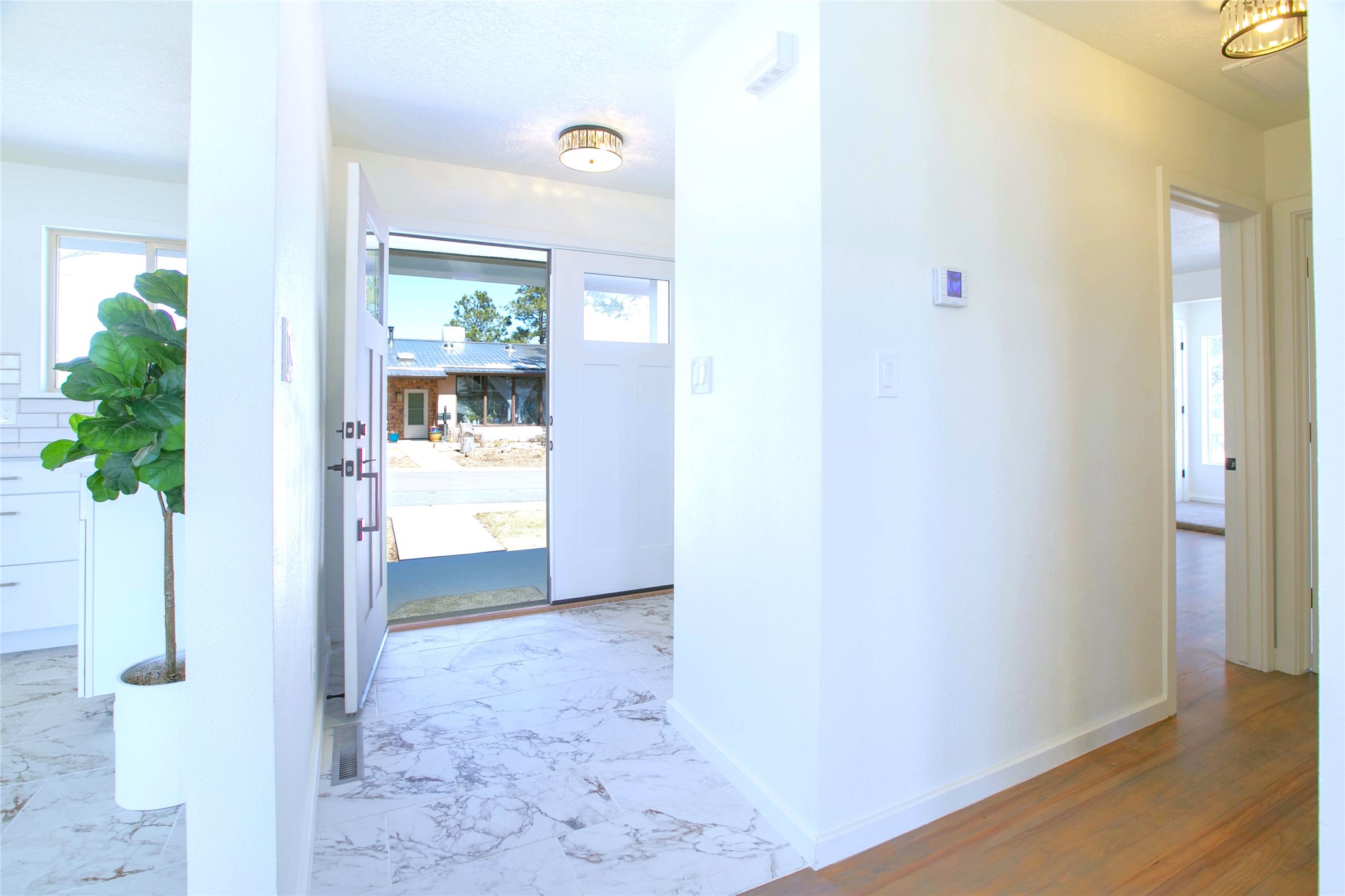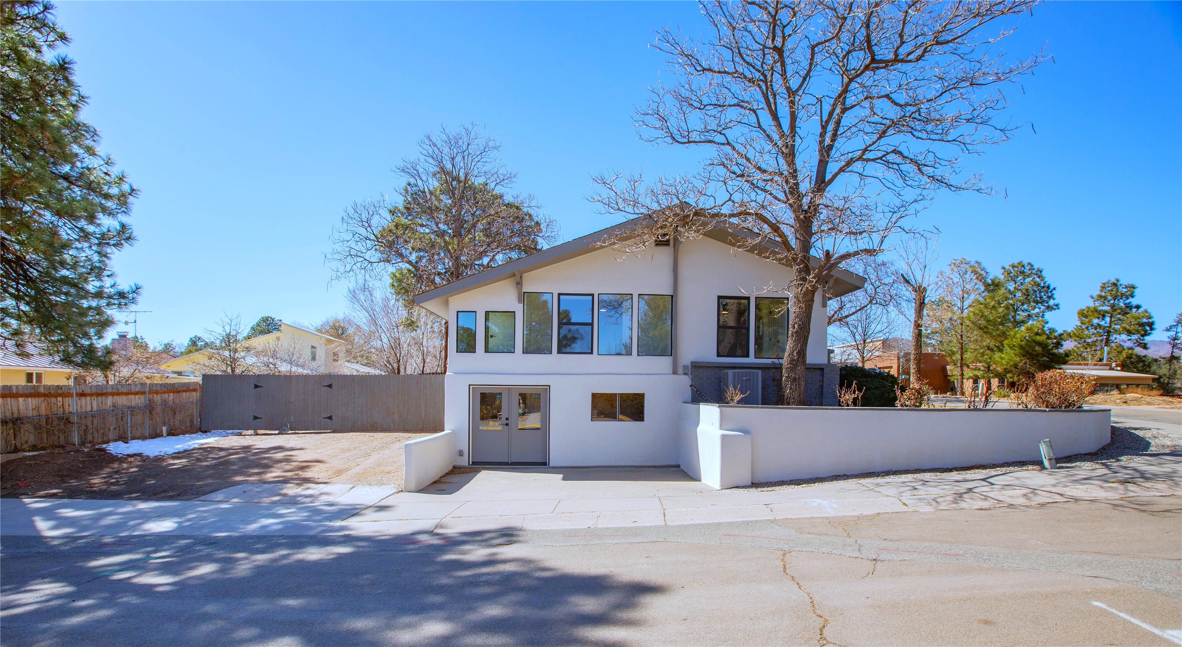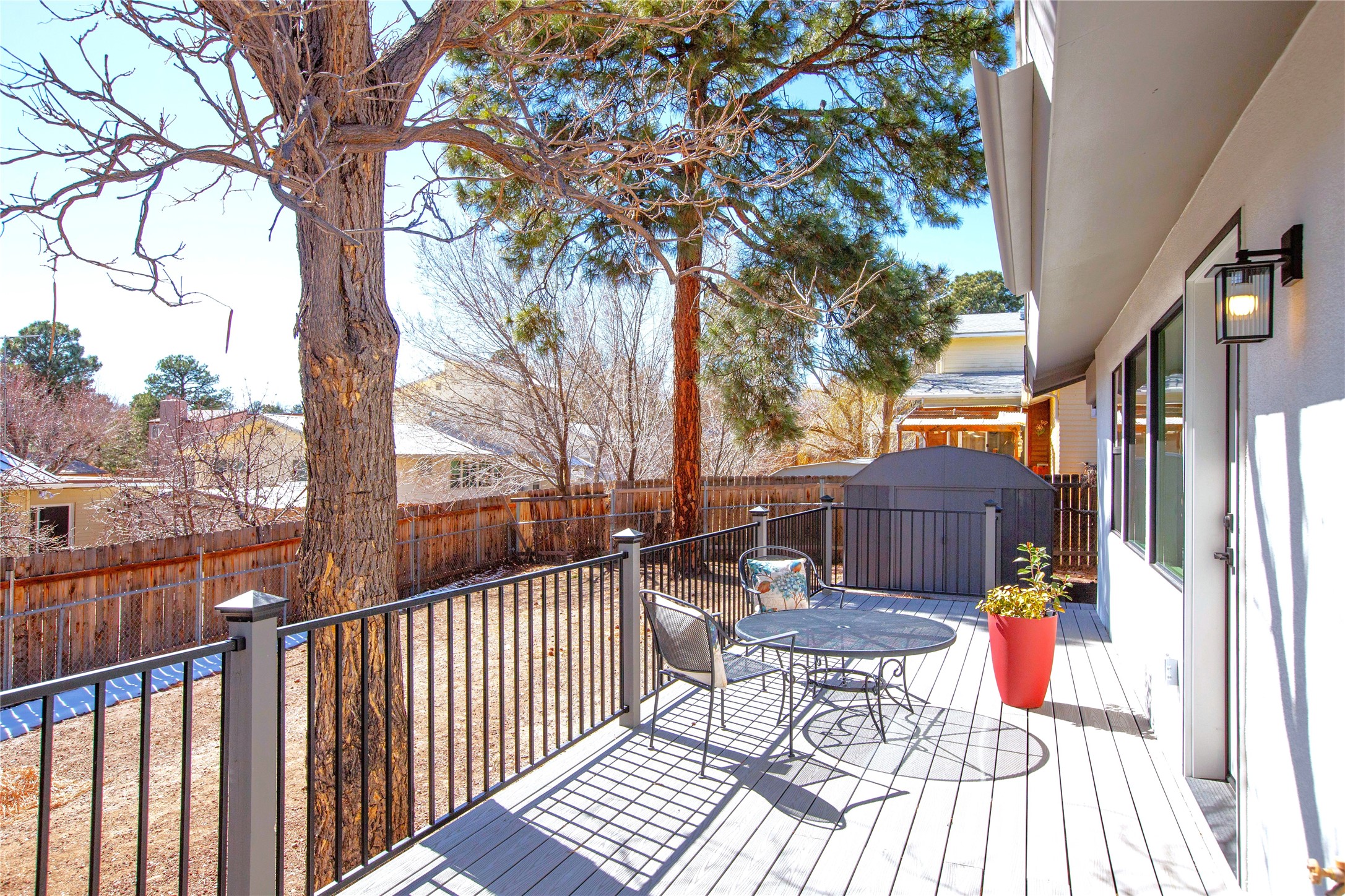 This Immaculate home sits on a tranquil corner lot in the heart of Los Alamos! Convenience and amenities are just outside your doorstep with Trinity Dr and countless restaurants, shops, breweries, & activity centers only a few short minutes' drive from the property. This recently renovated home features finished hardwood floors (living area, bedrooms & hallway), waterproof luxury vinyl plank (primary bedroom), and porcelain tile flooring (kitchen, entry & bathrooms). Enjoy the Gourmet Kitchen with brand new state of the art stainless steel appliances including Jenn Air electric down-draft range w/ air fry/oven combo. Whirlpool dishwasher & large Kohler undermount sink. Brand-new plumbing, electrical, furnace & refrigerated air unit makes this home a luxury commodity you dont want to miss! Kohler fixtures & cultured marble vanities accentuate both bathrooms in the home. The primary bedroom offers its own entrance & exit to the deck - ideal as a studio or an attached retreat. The two guest bedrooms overlook a charming rose garden accentuated by the well-manicured front grass lawn. The basement brings versatility with its own entrance & driveway. This space could be used as a creative studio, a theater room, a home office or extra storage.