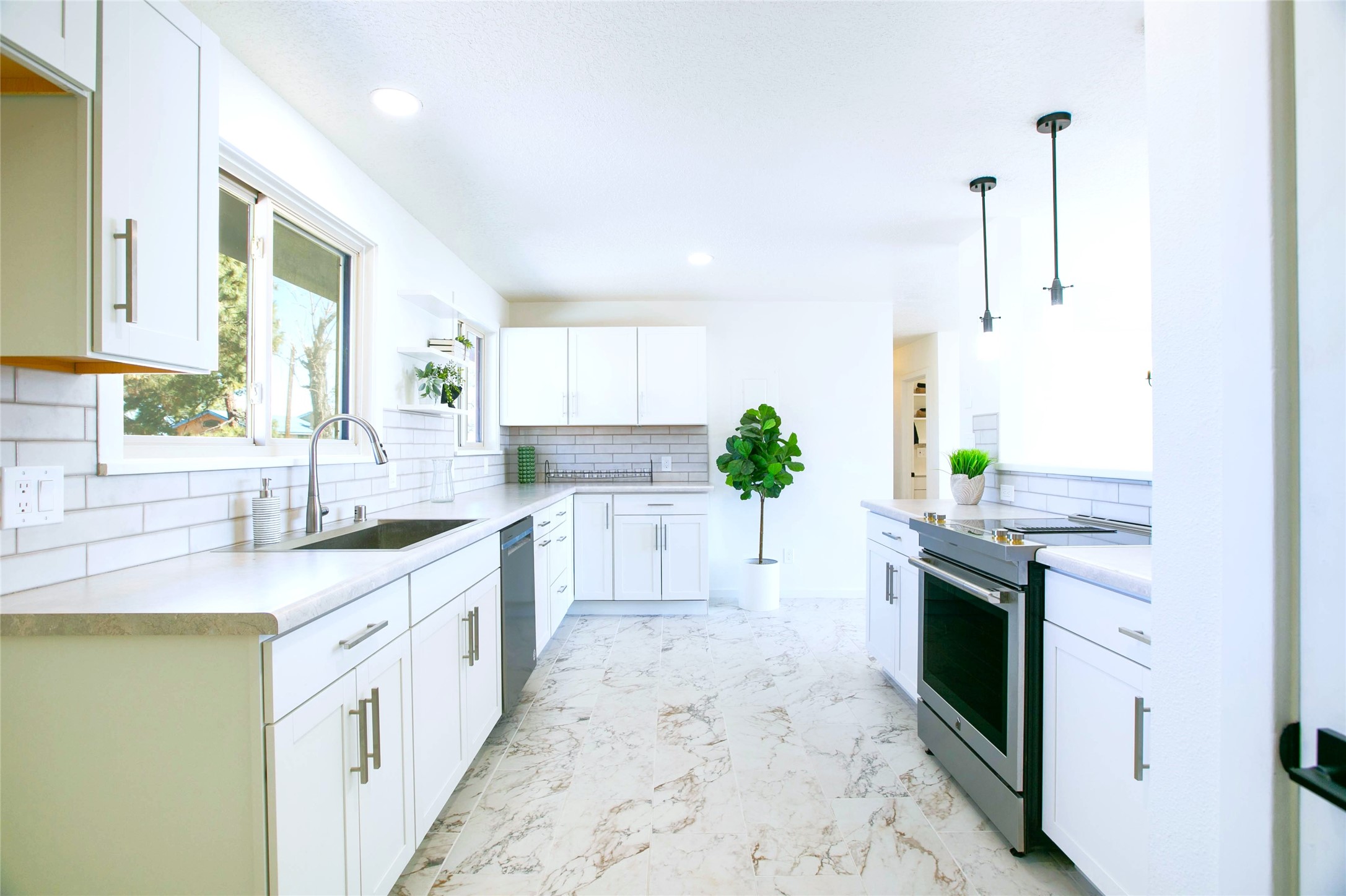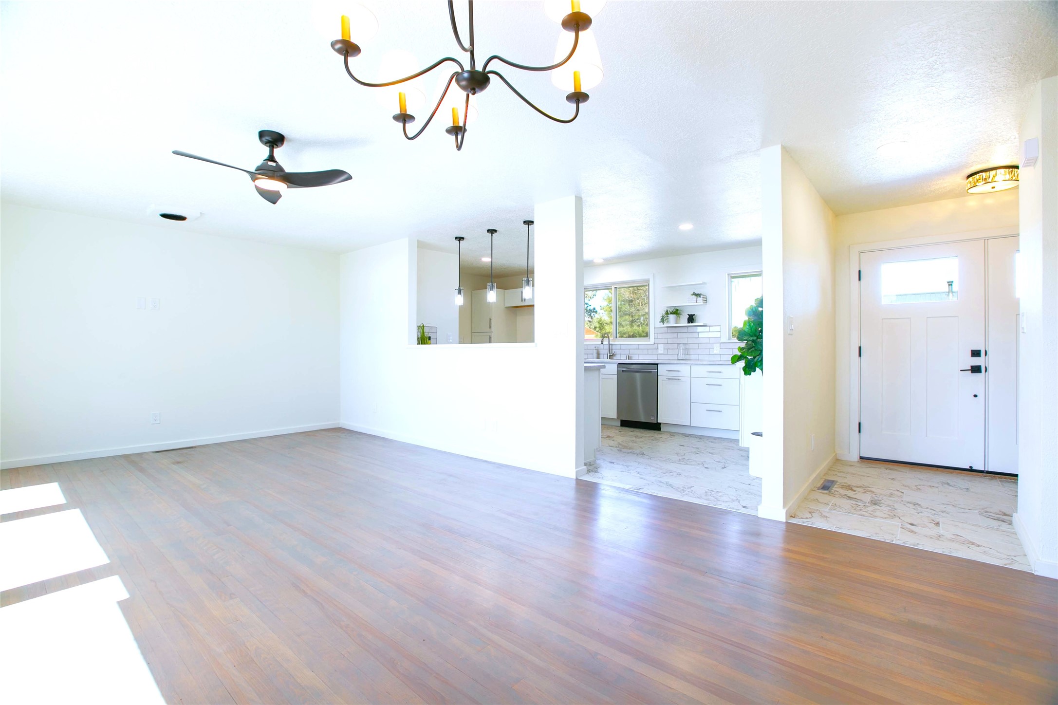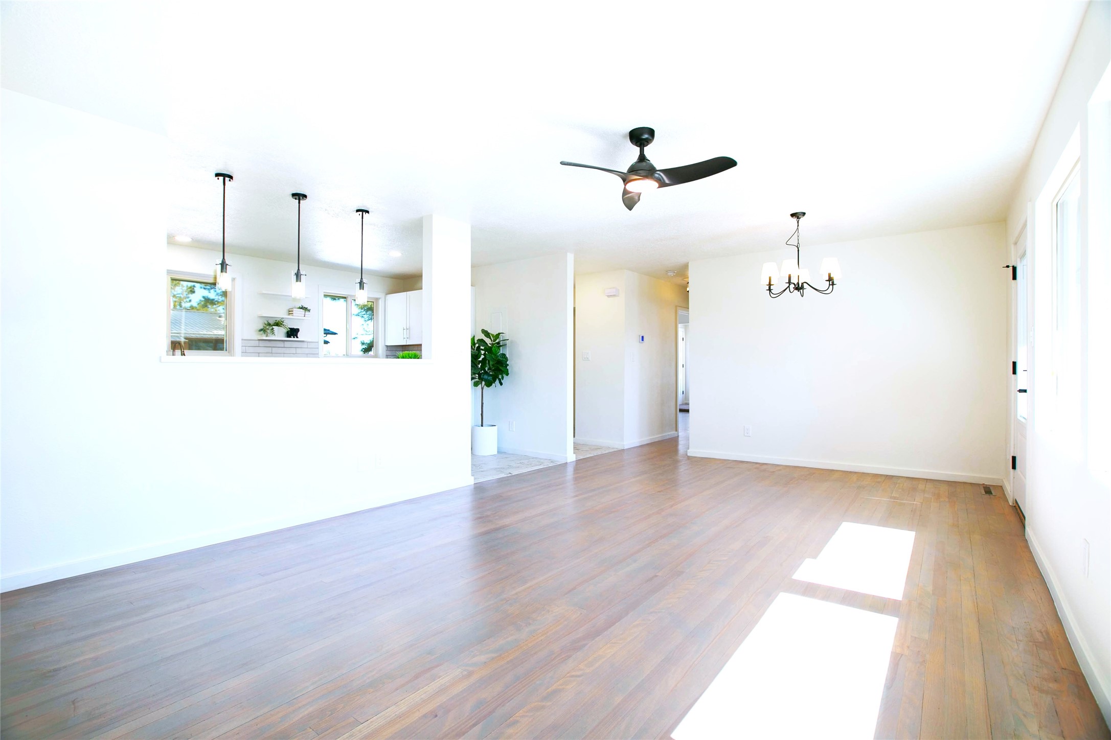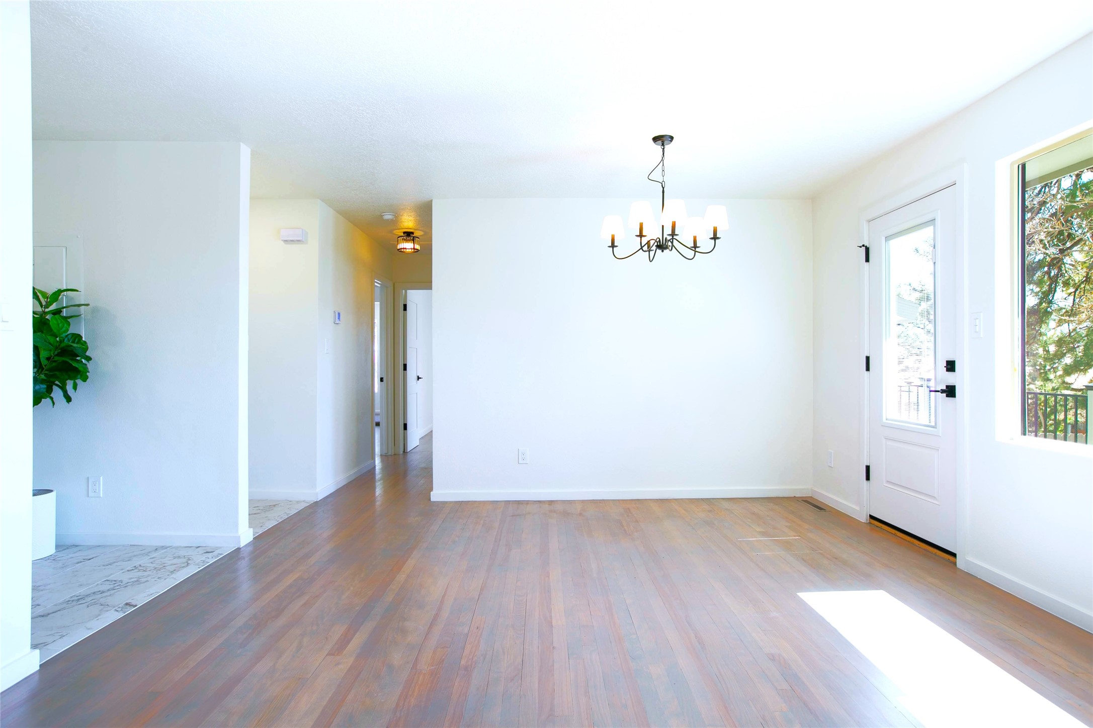 This Immaculate home sits on a tranquil corner lot in the heart of Los Alamos! Convenience and amenities are just outside your doorstep with Trinity Dr and countless restaurants, shops, breweries, & activity centers only a few short minutes' drive from the property. This recently renovated home features finished hardwood floors (living area, bedrooms & hallway), waterproof luxury vinyl plank (primary bedroom), and porcelain tile flooring (kitchen, entry & bathrooms). Enjoy the Gourmet Kitchen with brand new state of the art stainless steel appliances including Jenn Air electric down-draft range w/ air fry/oven combo. Whirlpool dishwasher & large Kohler undermount sink. Brand-new plumbing, electrical, furnace & refrigerated air unit makes this home a luxury commodity you dont want to miss! Kohler fixtures & cultured marble vanities accentuate both bathrooms in the home. The primary bedroom offers its own entrance & exit to the deck - ideal as a studio or an attached retreat. The two guest bedrooms overlook a charming rose garden accentuated by the well-manicured front grass lawn. The basement brings versatility with its own entrance & driveway. This space could be used as a creative studio, a theater room, a home office or extra storage.