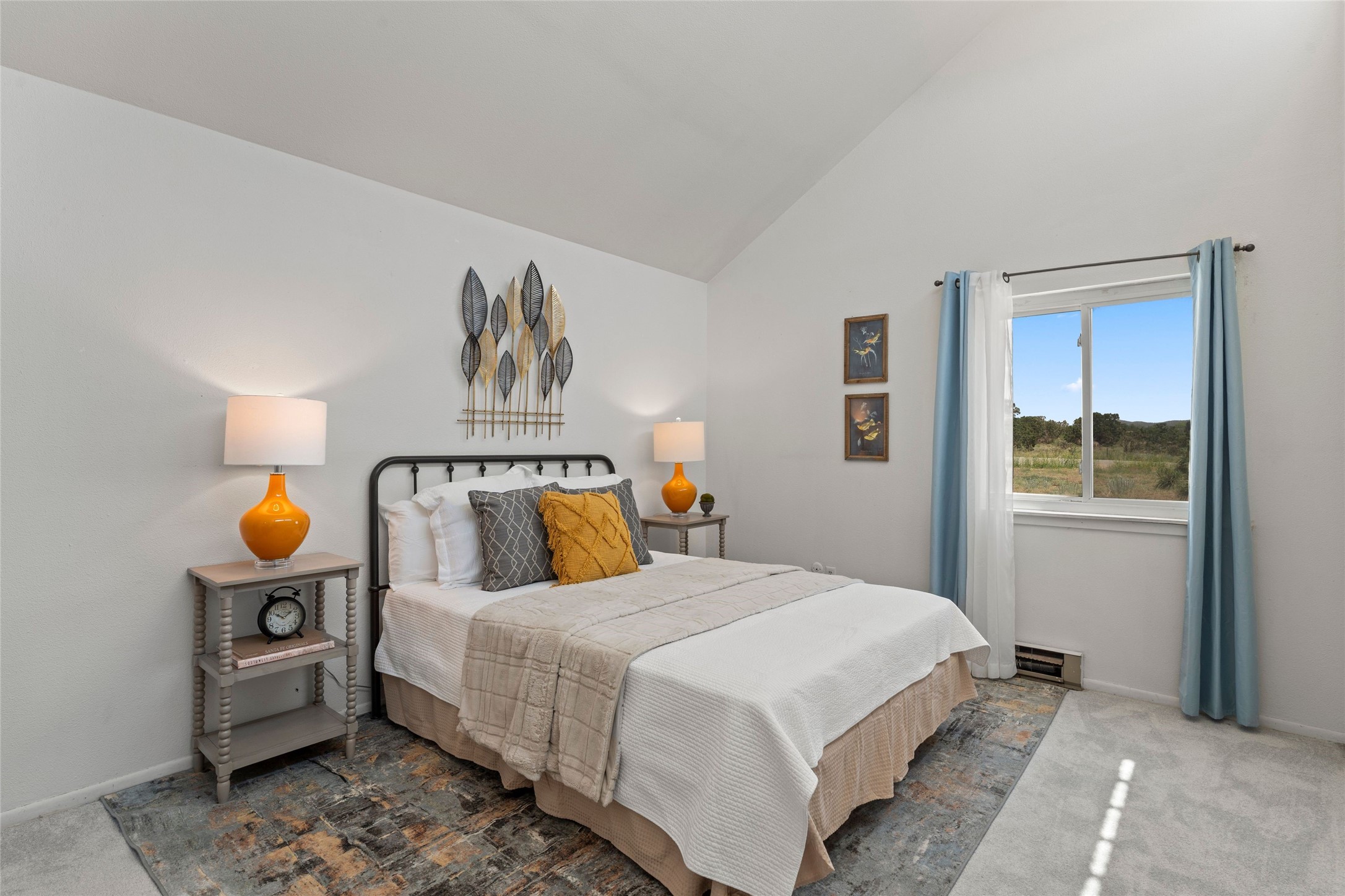 Set on 1.66 acres with peaceful rural surroundings, this classic Santa Fe home blends Southwestern charm with versatile living space just 17 minutes from the historic Plaza. Featuring 2 bedrooms and 2 bathrooms across 1,626 square feet, the home showcases signature regional details including brick floors, wood-beamed ceilings, and an open-concept layout that invites natural light and easy flow between living, dining, and kitchen areas. The kitchen offers warm wood cabinetry, granite countertops, and a breakfast bar that opens to the main living space -- ideal for everyday living or entertaining. French doors from a flexible bonus room lead outside, creating a perfect spot for a home office, art studio, or reading nook. Outdoor living is equally inviting with natural landscaping, mature trees, and room to expand gardens or create patios to suit your lifestyle. A detached one-car garage provides additional storage or workshop potential. Residents enjoy a shared well, a new septic tank installed in 2023, and high-speed internet access. Located just 3.8 miles from Eldorado's shopping and dining conveniences, this property combines the quiet of a country setting with proximity to Santa Fe amenities. Annual HOA dues of $610 cover road maintenance and community upkeep. This property offers a rare opportunity to enjoy Santa Fe's distinctive character and natural beauty in a serene, spacious setting -- ready to make your own.