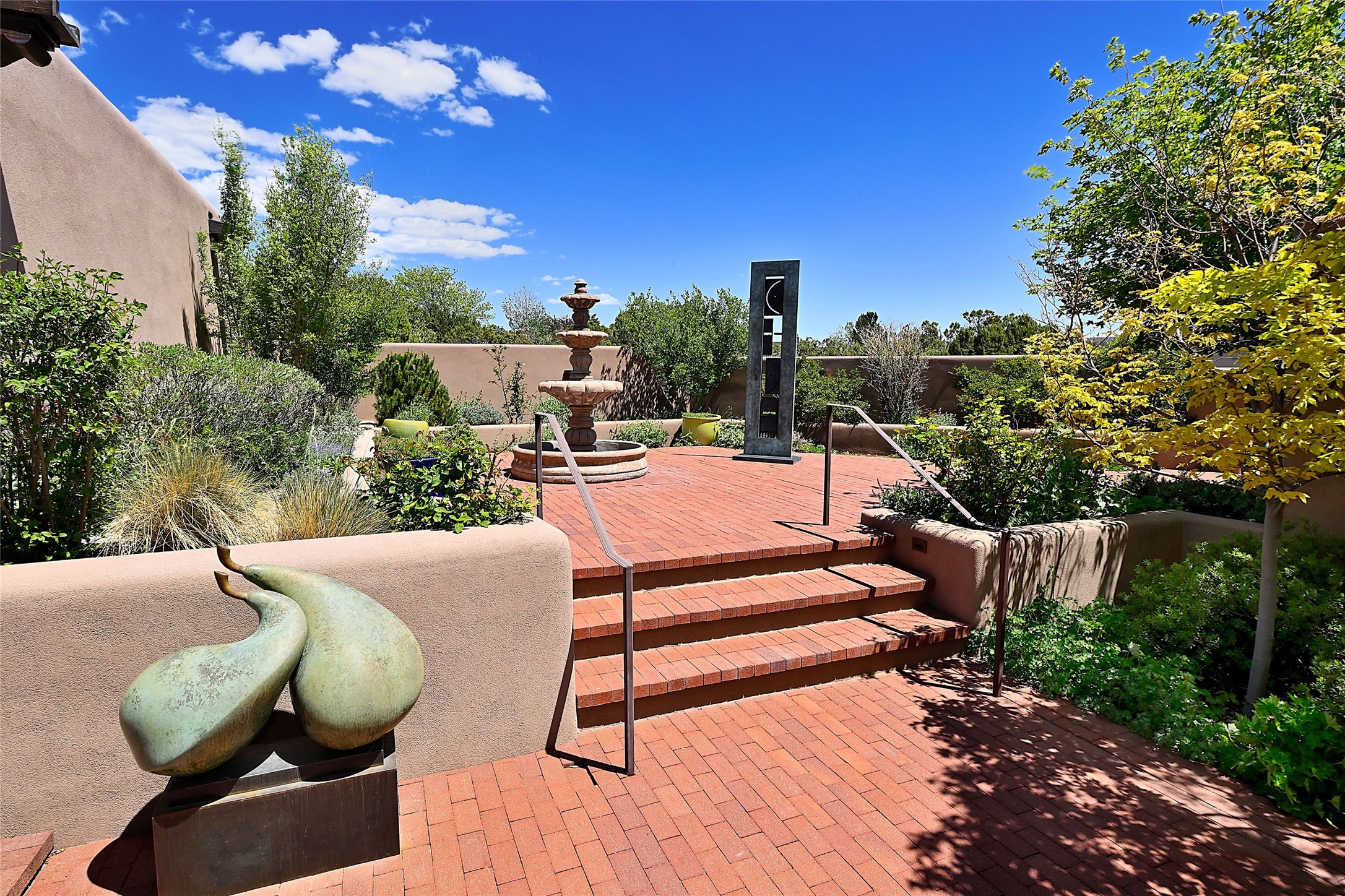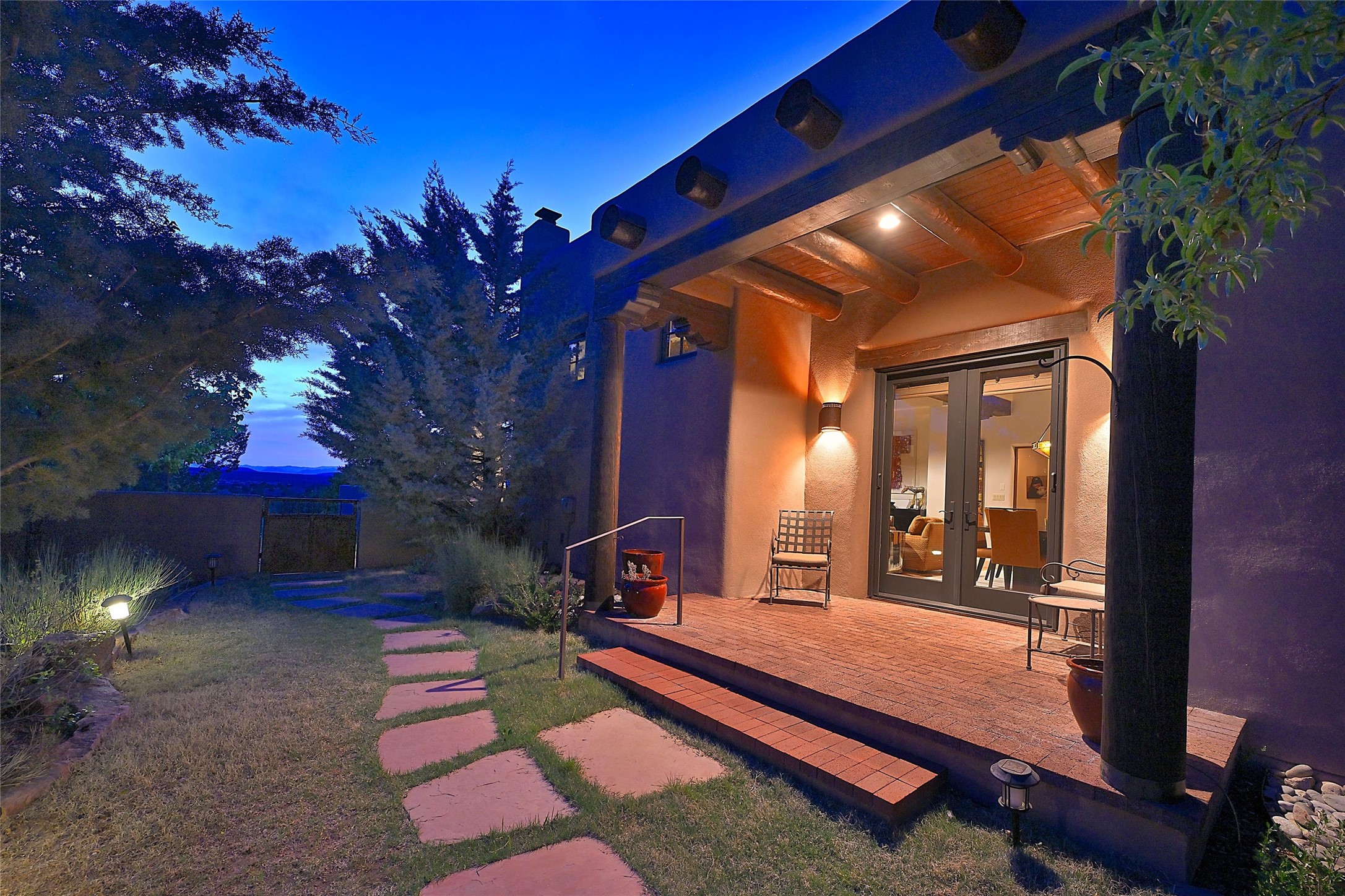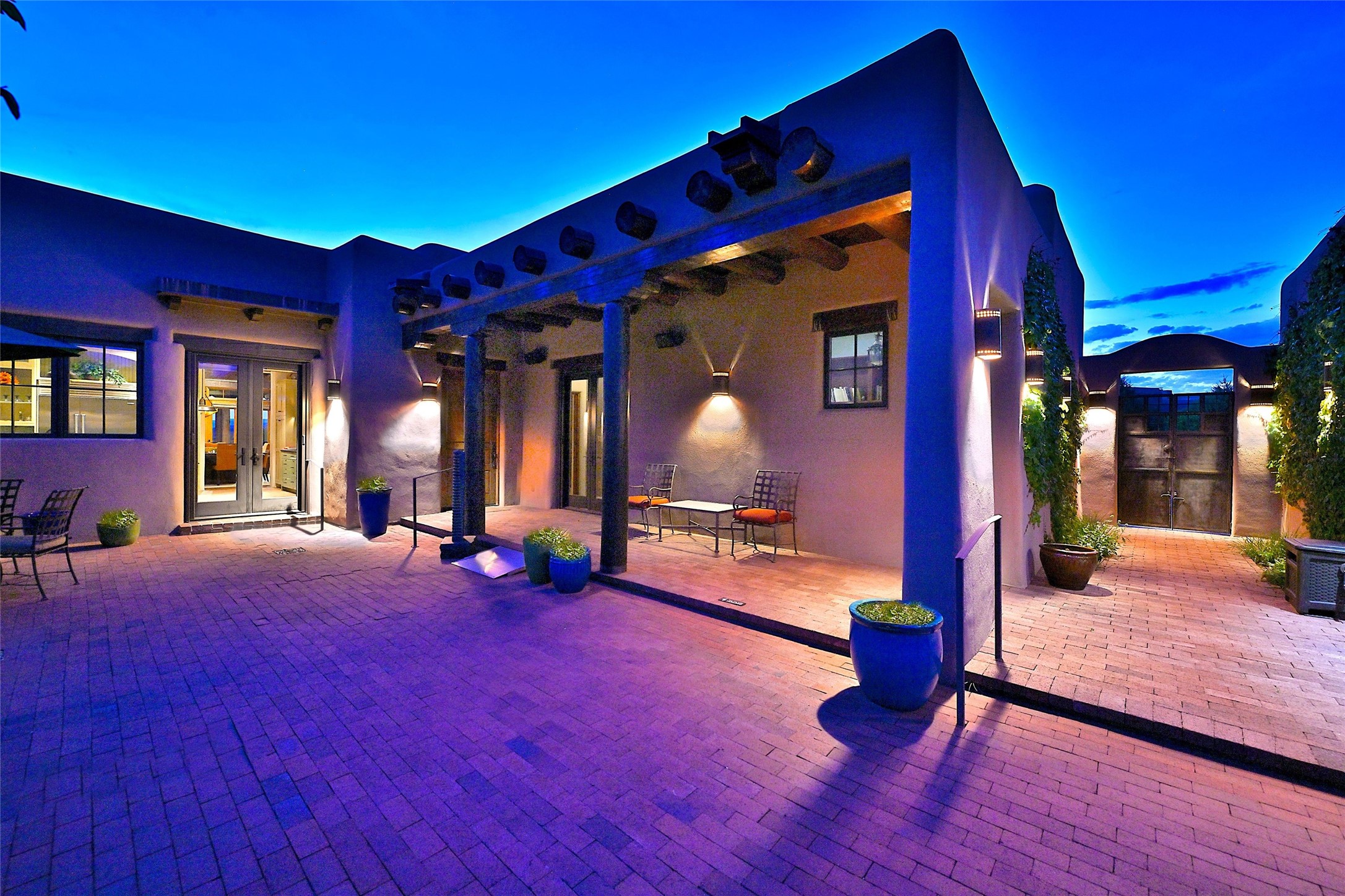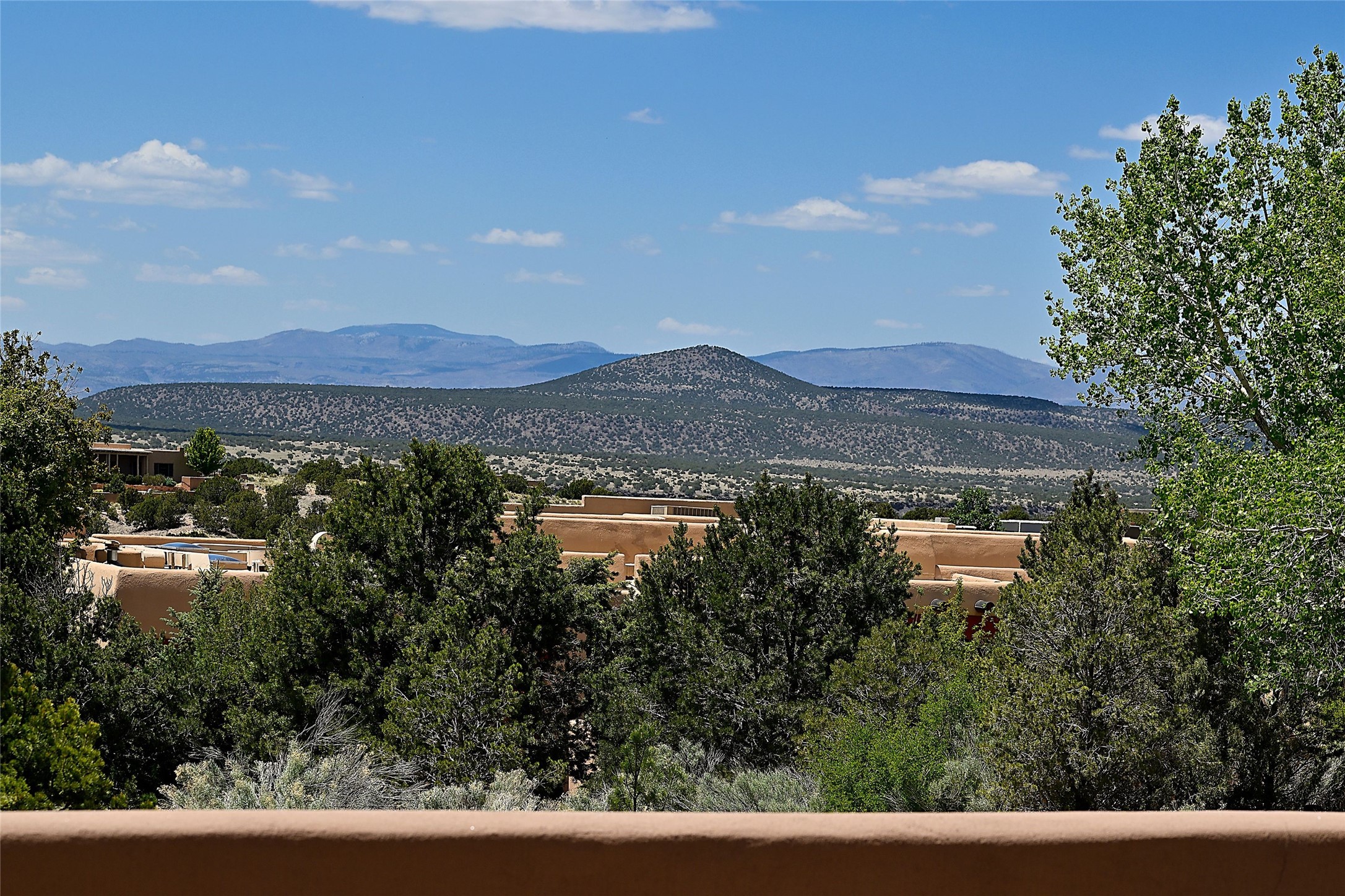 Sited on a scenic hill, this charming New Mexico residence offers breathtaking views and the perfect blend of privacy, comfort, and timeless Southwestern appeal. Surrounded by stunning, low-maintenance gardens and multiple outdoor spaces, this property invites you to relax and soak in the incredible weather and spectacular sunsets. Portals and patios wrap the home, creating a seamless flow between indoor and outdoor living. Whether you're enjoying a quiet morning coffee or entertaining guests under the vast, clear blue skies, every corner is thoughtfully designed for comfort and connection with the outdoors. Inside, the expansive primary suite is a true retreat, featuring two generous walk-in closets and a luxurious bath. A well-appointed guest suite offers ample closet space and a cozy office nook, ideal for working or unwinding. The kitchen is up to the minute in fittings and function while retaining authentic New Mexico charm. It opens to a vast patio and garden area, creating an ideal space for alfresco dining and gatherings. Adding to the property's appeal is a separate casita, complete with a mini kitchen and bath--perfect for guests, extended family, or creative studio use. This exceptional hilltop home offers beauty, serenity, and true New Mexican character at every turn.