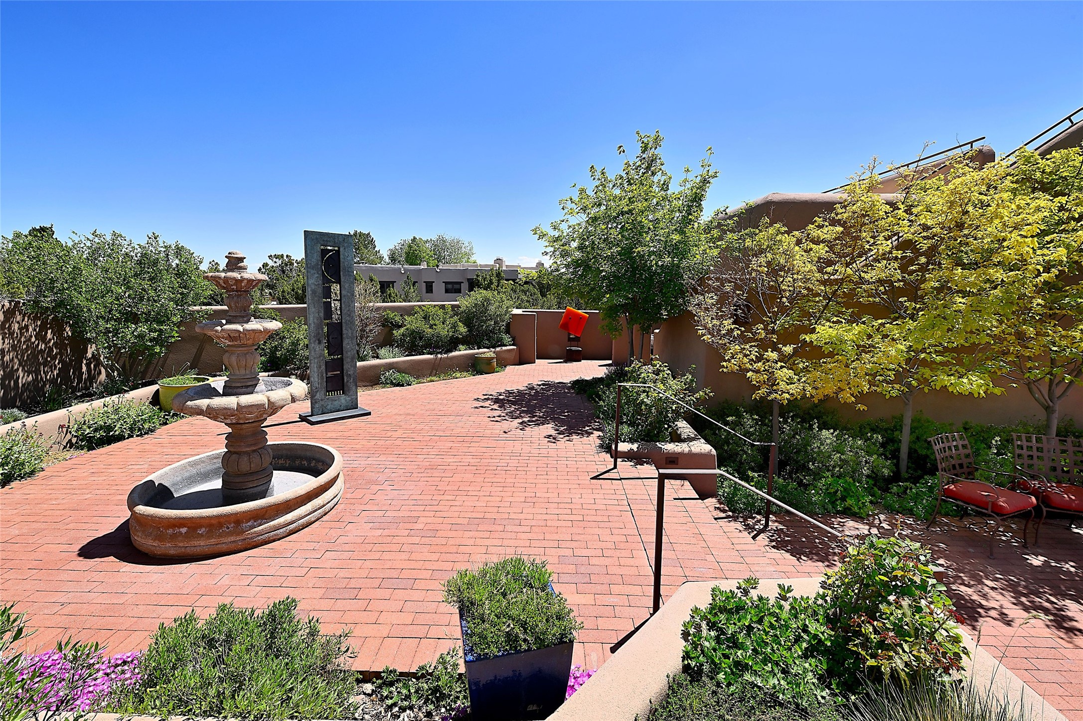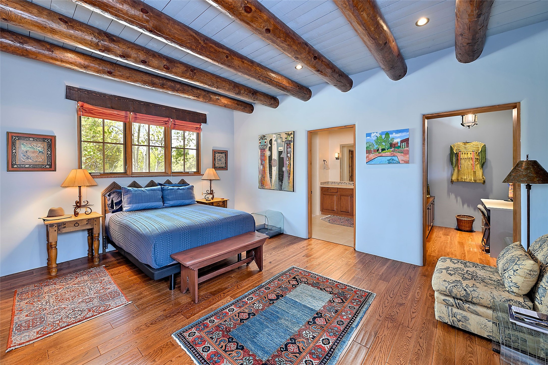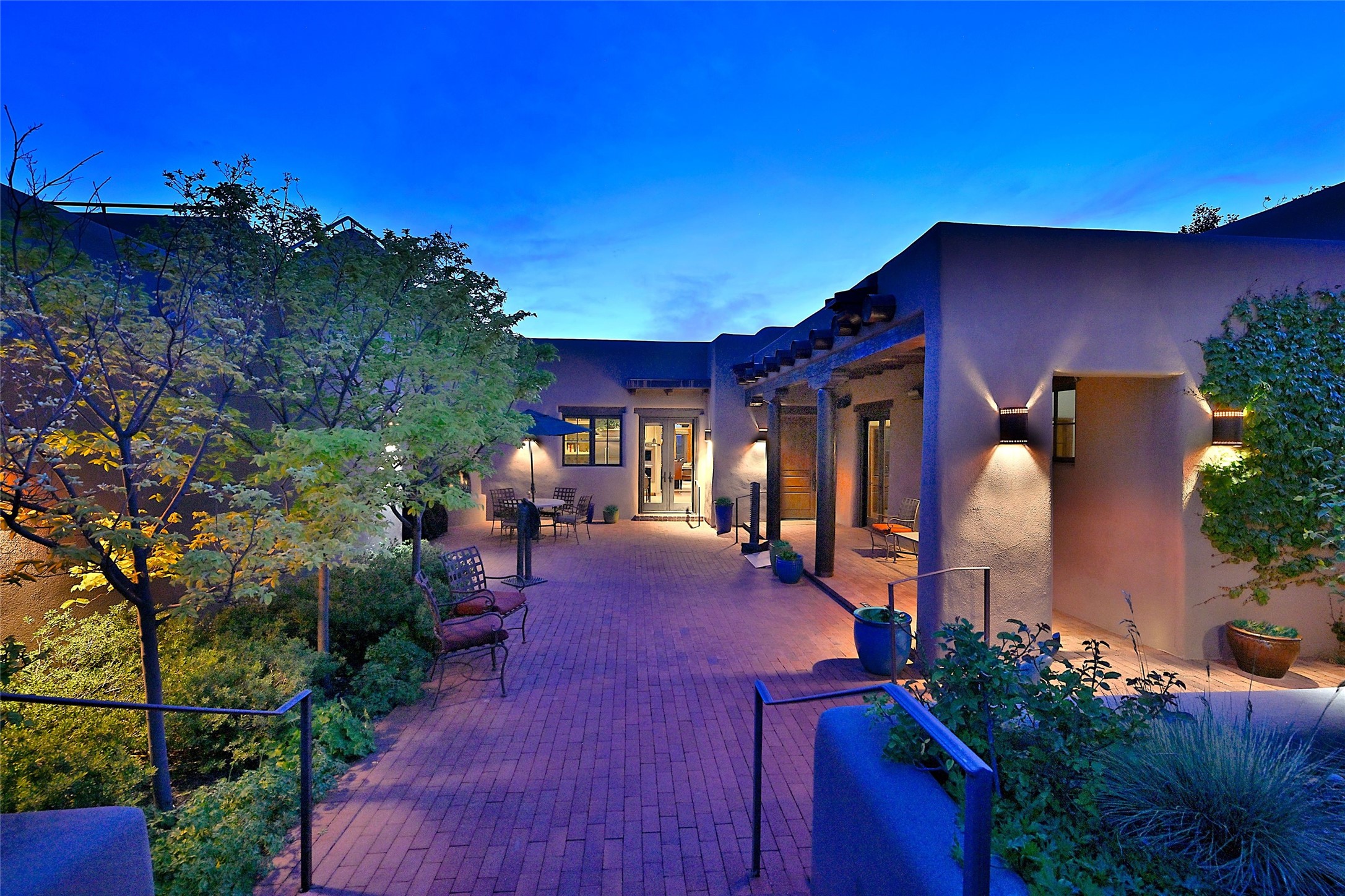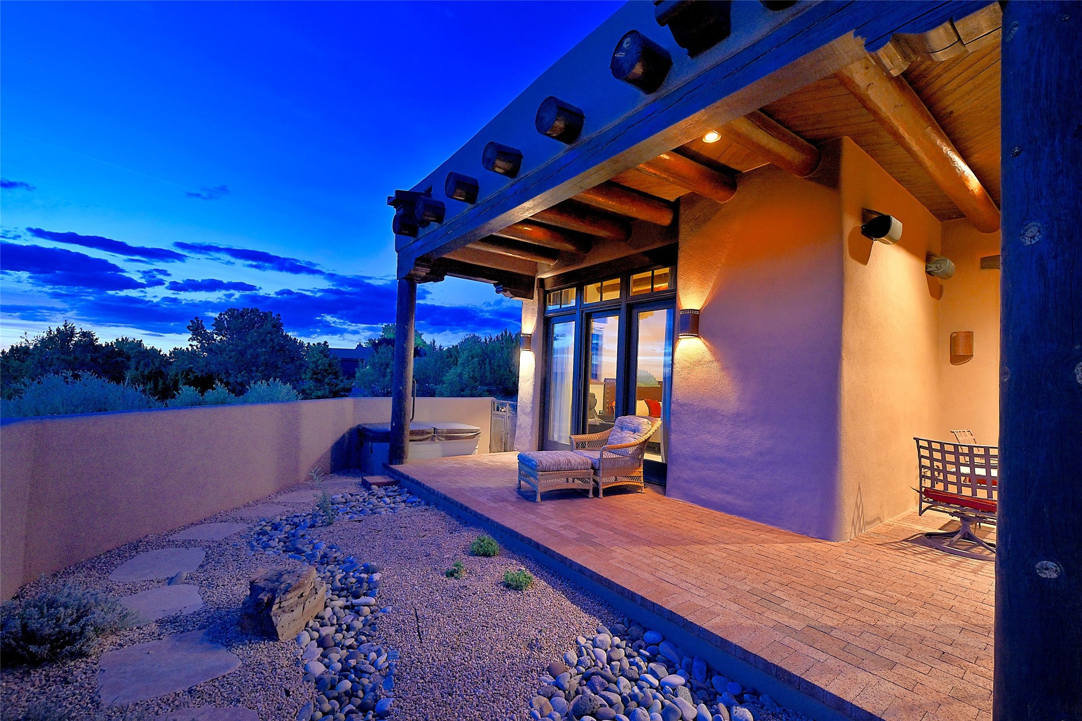 Sited on a scenic hill, this charming New Mexico residence offers breathtaking views and the perfect blend of privacy, comfort, and timeless Southwestern appeal. Surrounded by stunning, low-maintenance gardens and multiple outdoor spaces, this property invites you to relax and soak in the incredible weather and spectacular sunsets. Portals and patios wrap the home, creating a seamless flow between indoor and outdoor living. Whether you're enjoying a quiet morning coffee or entertaining guests under the vast, clear blue skies, every corner is thoughtfully designed for comfort and connection with the outdoors. Inside, the expansive primary suite is a true retreat, featuring two generous walk-in closets and a luxurious bath. A well-appointed guest suite offers ample closet space and a cozy office nook, ideal for working or unwinding. The kitchen is up to the minute in fittings and function while retaining authentic New Mexico charm. It opens to a vast patio and garden area, creating an ideal space for alfresco dining and gatherings. Adding to the property's appeal is a separate casita, complete with a mini kitchen and bath--perfect for guests, extended family, or creative studio use. This exceptional hilltop home offers beauty, serenity, and true New Mexican character at every turn.