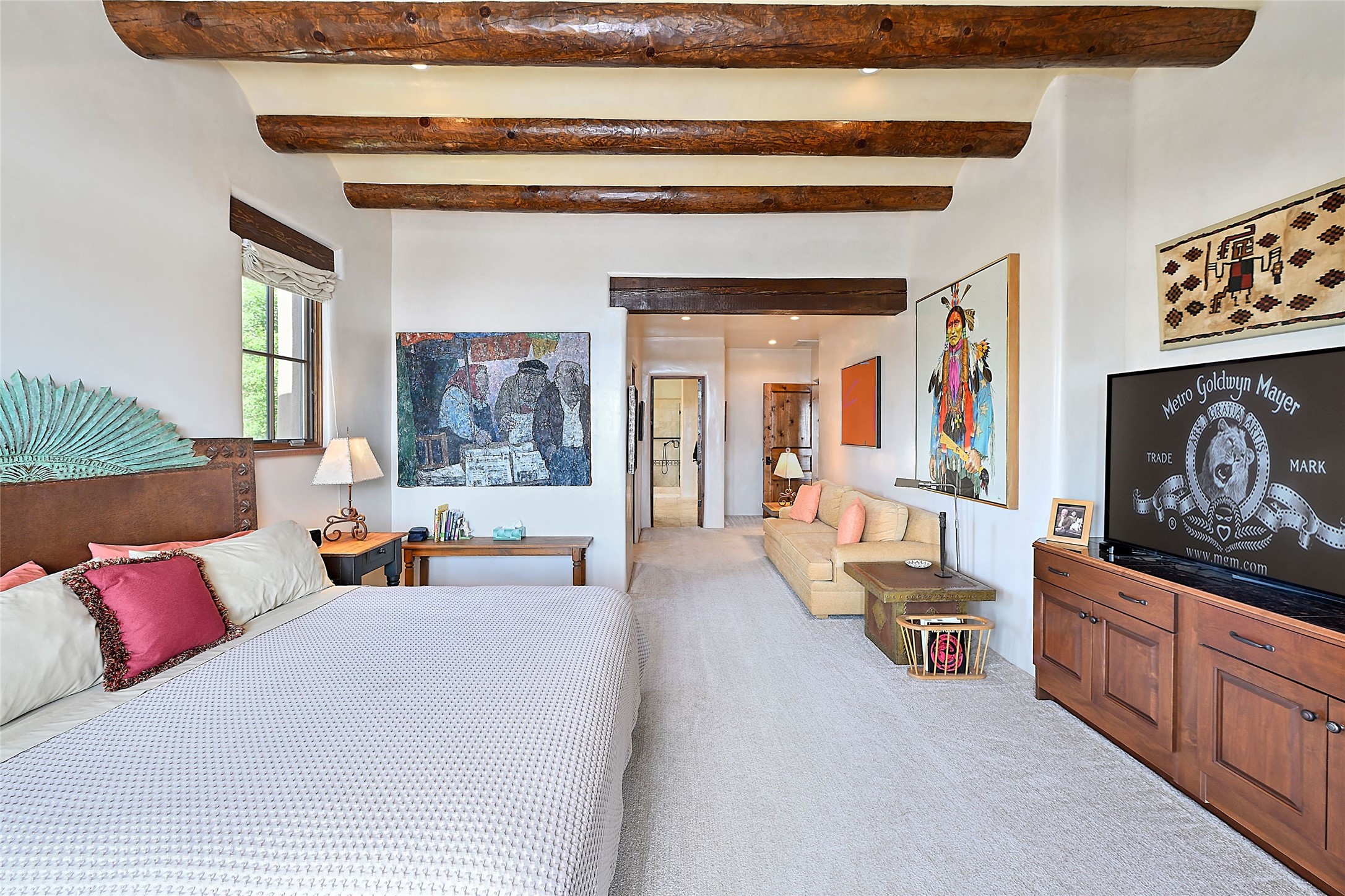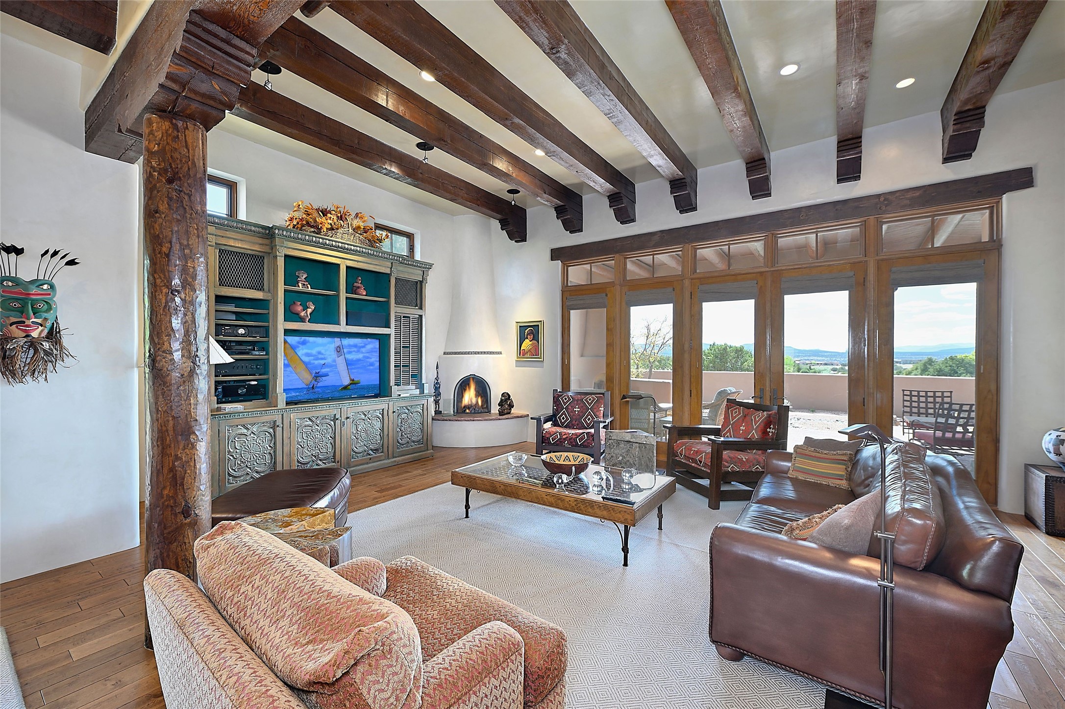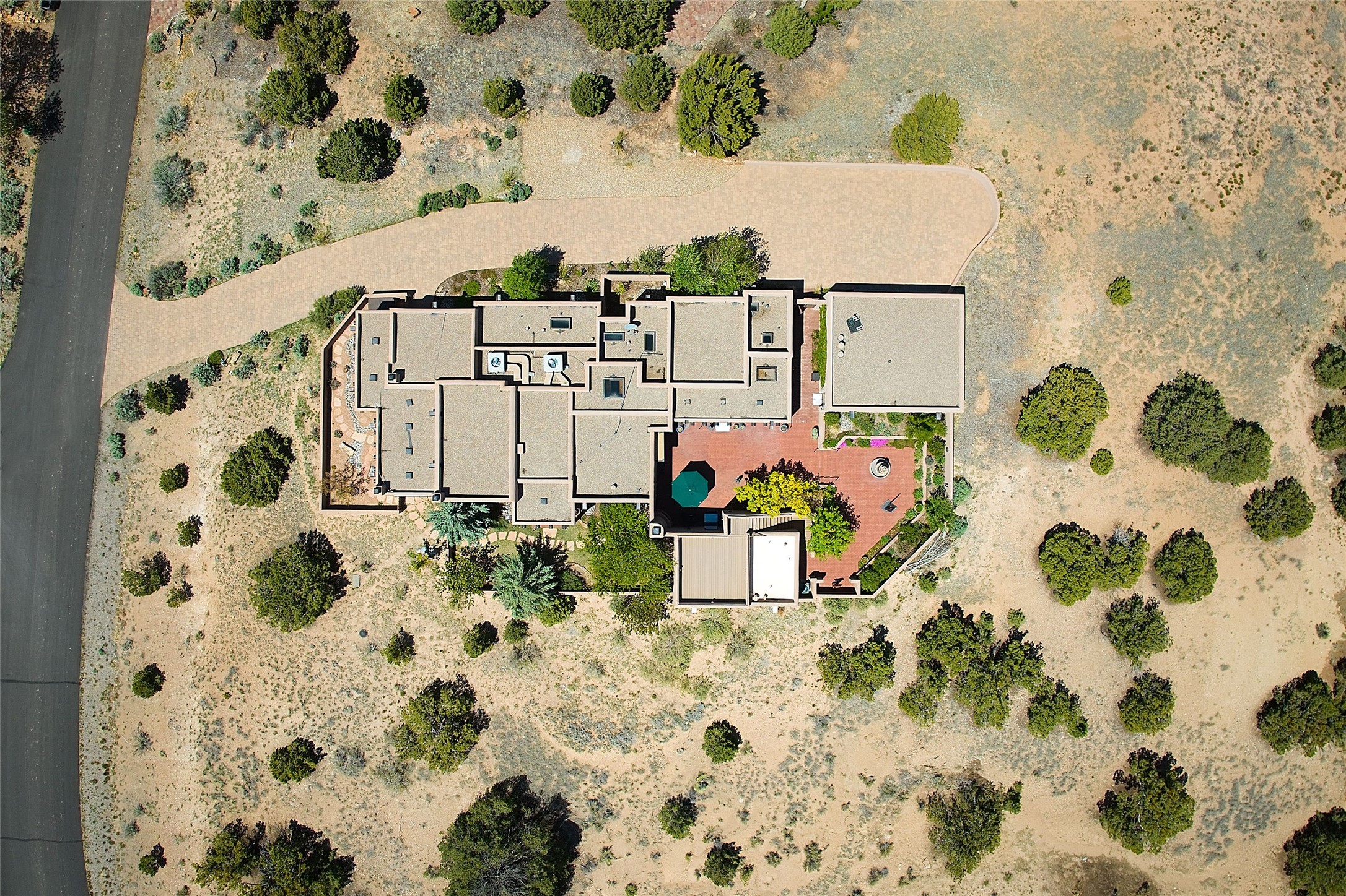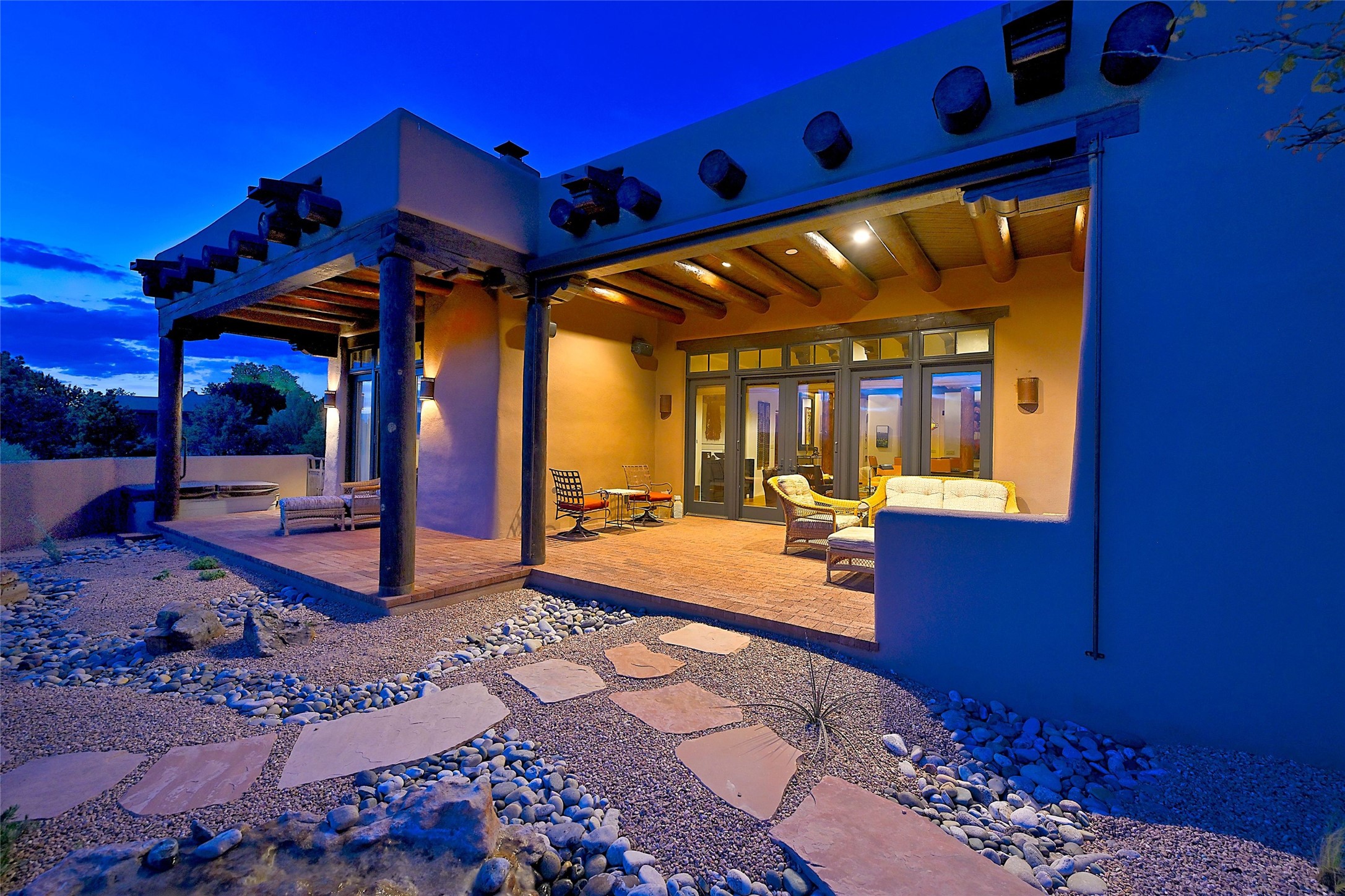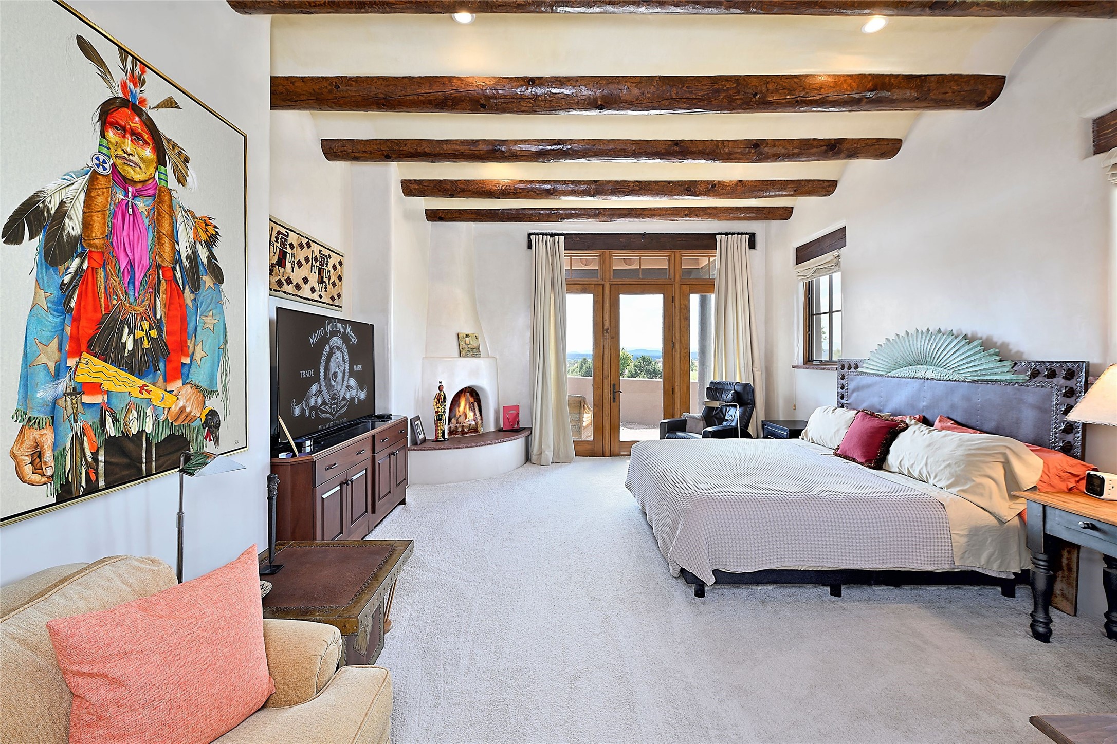 Sited on a scenic hill, this charming New Mexico residence offers breathtaking views and the perfect blend of privacy, comfort, and timeless Southwestern appeal. Surrounded by stunning, low-maintenance gardens and multiple outdoor spaces, this property invites you to relax and soak in the incredible weather and spectacular sunsets. Portals and patios wrap the home, creating a seamless flow between indoor and outdoor living. Whether you're enjoying a quiet morning coffee or entertaining guests under the vast, clear blue skies, every corner is thoughtfully designed for comfort and connection with the outdoors. Inside, the expansive primary suite is a true retreat, featuring two generous walk-in closets and a luxurious bath. A well-appointed guest suite offers ample closet space and a cozy office nook, ideal for working or unwinding. The kitchen is up to the minute in fittings and function while retaining authentic New Mexico charm. It opens to a vast patio and garden area, creating an ideal space for alfresco dining and gatherings. Adding to the property's appeal is a separate casita, complete with a mini kitchen and bath--perfect for guests, extended family, or creative studio use. This exceptional hilltop home offers beauty, serenity, and true New Mexican character at every turn.