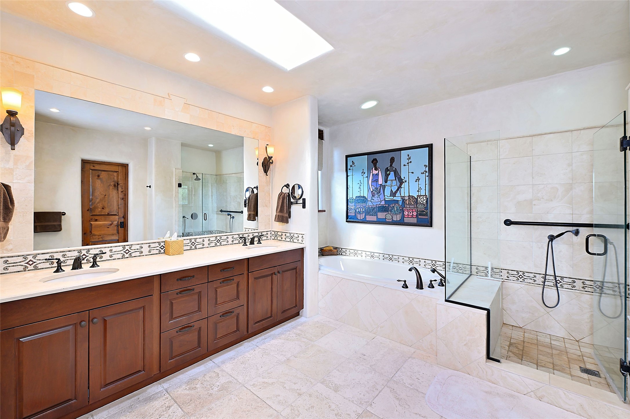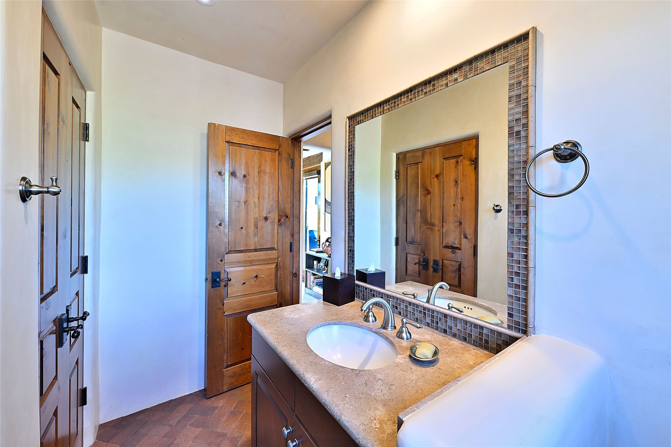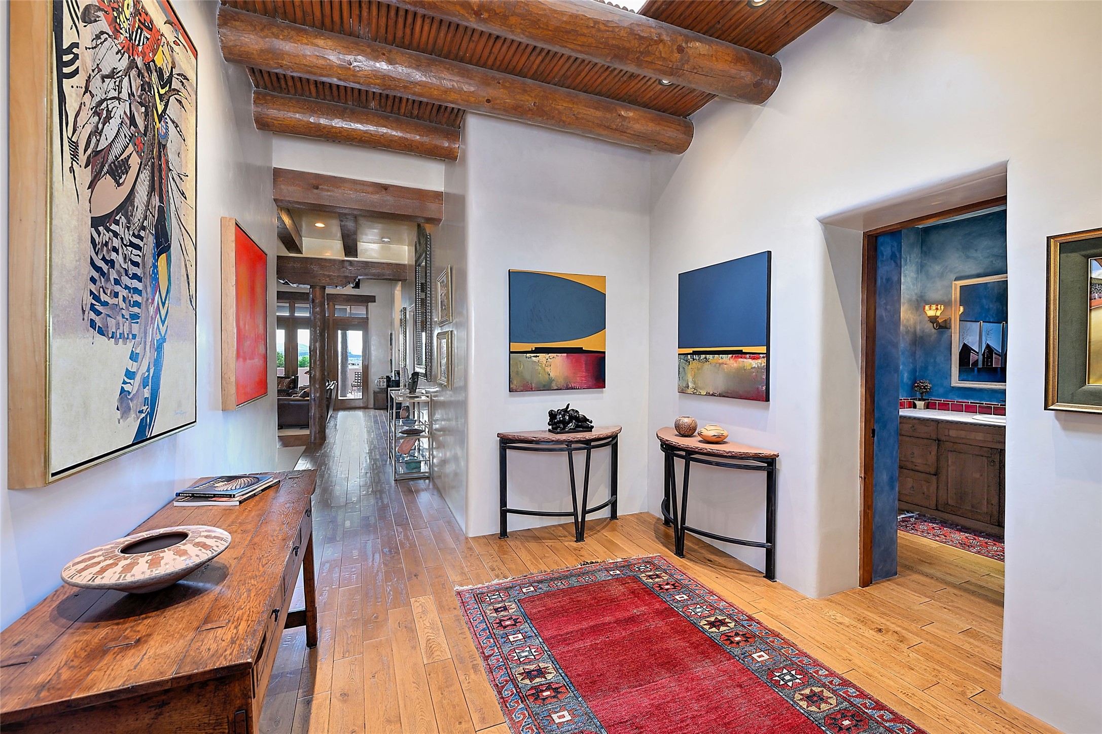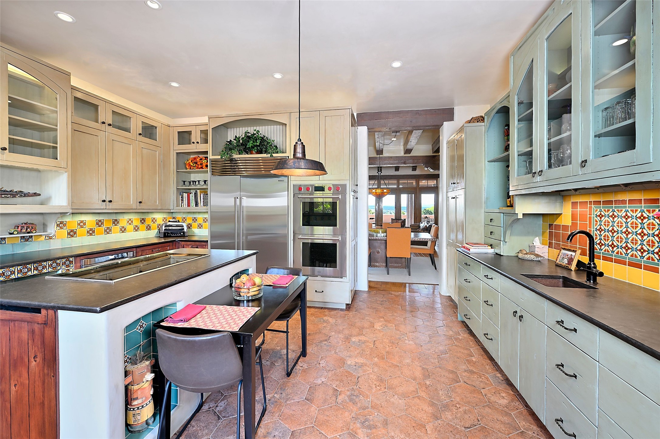 Sited on a scenic hill, this charming New Mexico residence offers breathtaking views and the perfect blend of privacy, comfort, and timeless Southwestern appeal. Surrounded by stunning, low-maintenance gardens and multiple outdoor spaces, this property invites you to relax and soak in the incredible weather and spectacular sunsets. Portals and patios wrap the home, creating a seamless flow between indoor and outdoor living. Whether you're enjoying a quiet morning coffee or entertaining guests under the vast, clear blue skies, every corner is thoughtfully designed for comfort and connection with the outdoors. Inside, the expansive primary suite is a true retreat, featuring two generous walk-in closets and a luxurious bath. A well-appointed guest suite offers ample closet space and a cozy office nook, ideal for working or unwinding. The kitchen is up to the minute in fittings and function while retaining authentic New Mexico charm. It opens to a vast patio and garden area, creating an ideal space for alfresco dining and gatherings. Adding to the property's appeal is a separate casita, complete with a mini kitchen and bath--perfect for guests, extended family, or creative studio use. This exceptional hilltop home offers beauty, serenity, and true New Mexican character at every turn.