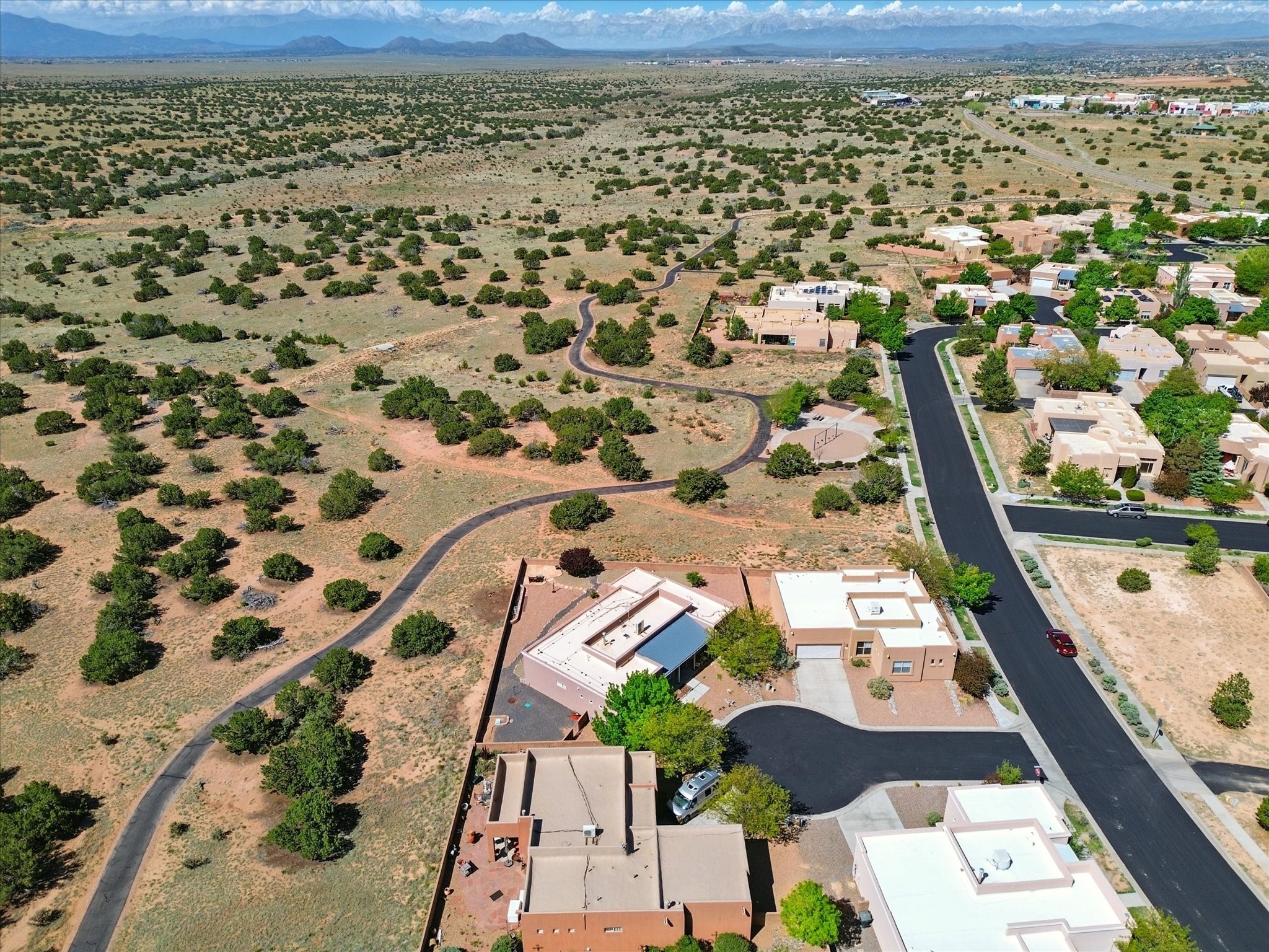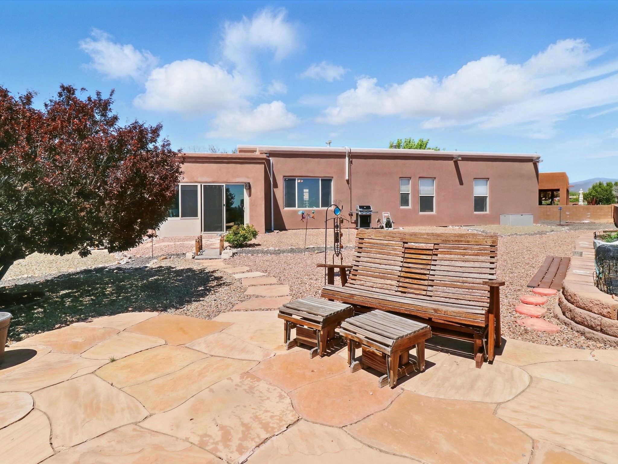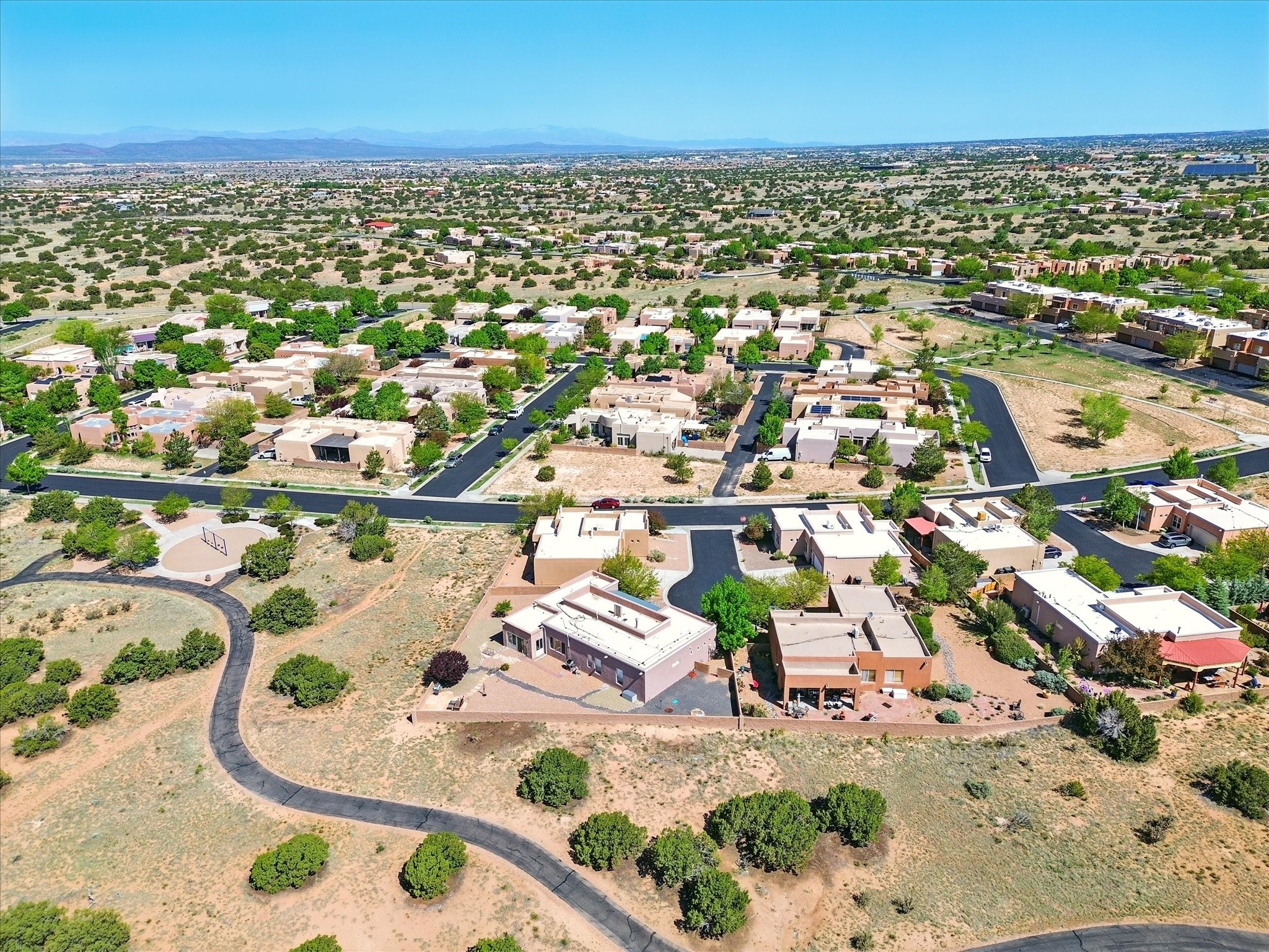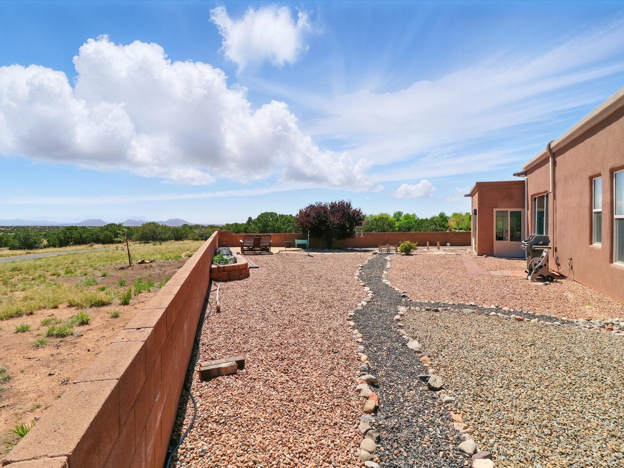 Welcome to one of the rare gems in the sought-after Rancho Viejo community--4 SierraGrande, where spectacular views and peaceful living come together. Nestled in a quiet4-home cul-de-sac, this beautifully maintained 3-bedroom, 2-bath home offerspanoramic vistas of the Sandia, Ortiz, and Jemez Mountains, with miles of open spaceto the south--protected HOA land that will never be developed. One of the standoutfeatures is the three-year-old sunroom, offering a sweeping, unobstructed view to thesouth--the perfect spot to enjoy vibrant sunsets and tranquil mornings year-round. This2,090 sqft Wild Iris model is filled with natural light and features a bright open-conceptlayout that seamlessly connects the kitchen, dining, and living areas. The primary suiteis tucked away for privacy and includes a spacious walk-in closet, double-sink vanity,and enclosed shower. Two additional guest bedrooms and a full bath are located on theopposite side of the home. Enjoy peace of mind with recent upgrades including a twoyear old boiler, instant water heater, mini-split systems, whole-house tile flooring, a fullyrenovated kitchen with updated cabinets, quartz countertops, updated appliances andlights, fresh interior paint, and new front-facing blinds--all completed within the lastthree years. Step outside to a spacious fenced backyard with a patio, ideal forgardening or relaxing while taking in the expansive, southwesterly views. With radiantheating, ductless air conditioning , and no steps throughout, this energy-efficient homeoffers year-round comfort and ease of living. Homes with this level of care, comfort, anduninterrupted natural beauty are a rare find--don't miss your chance to call this onehome.