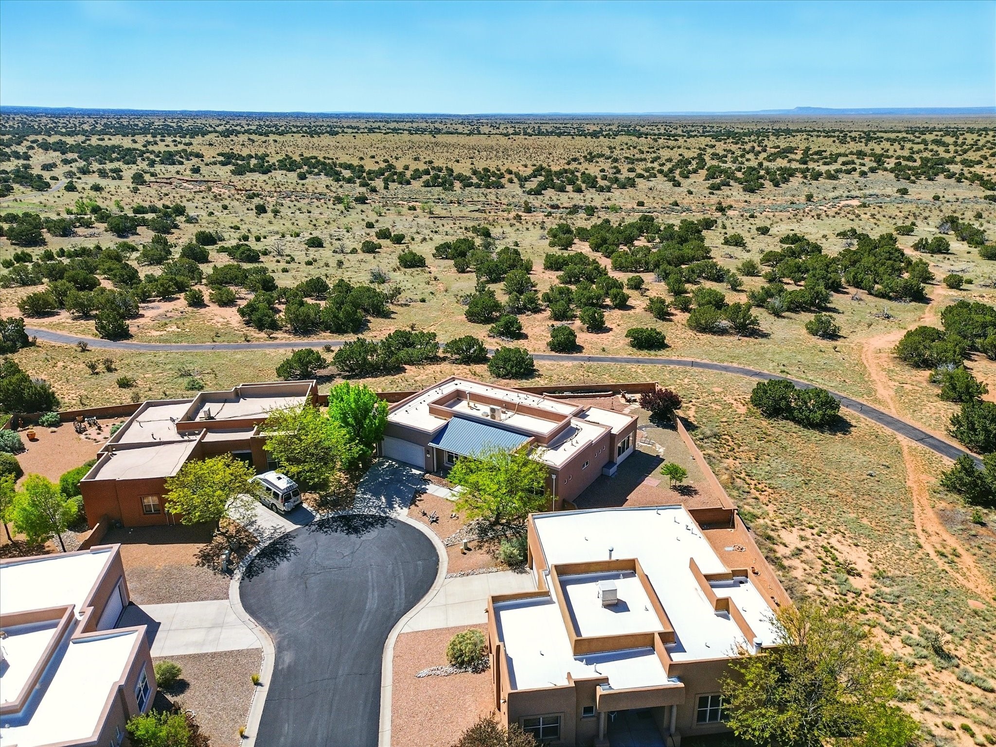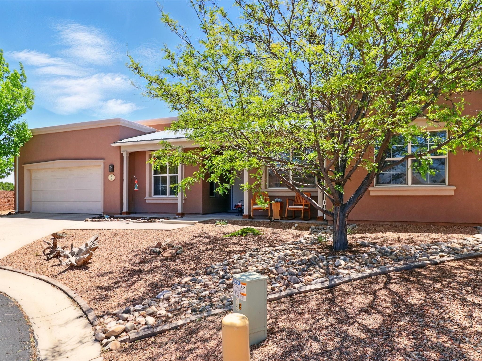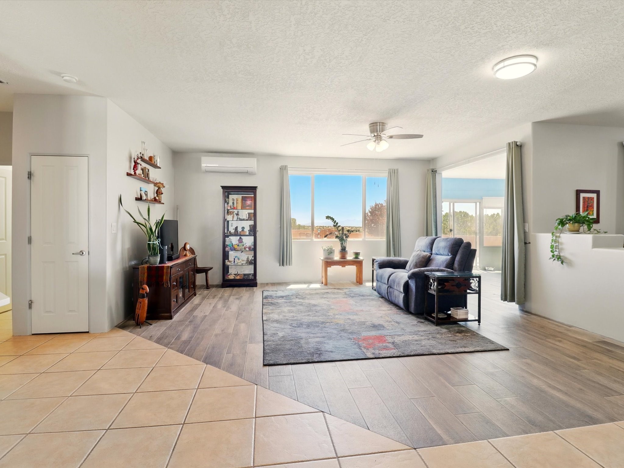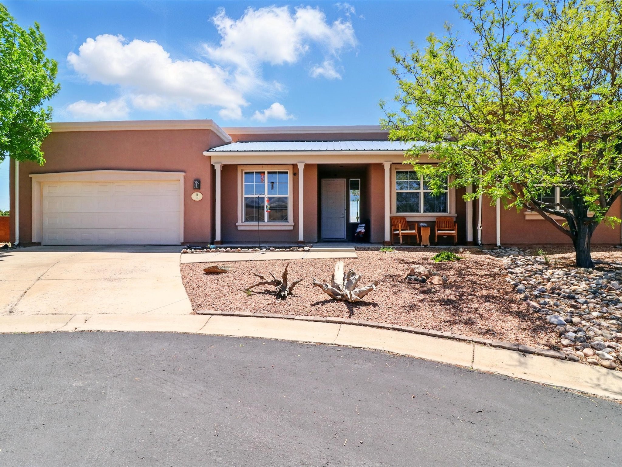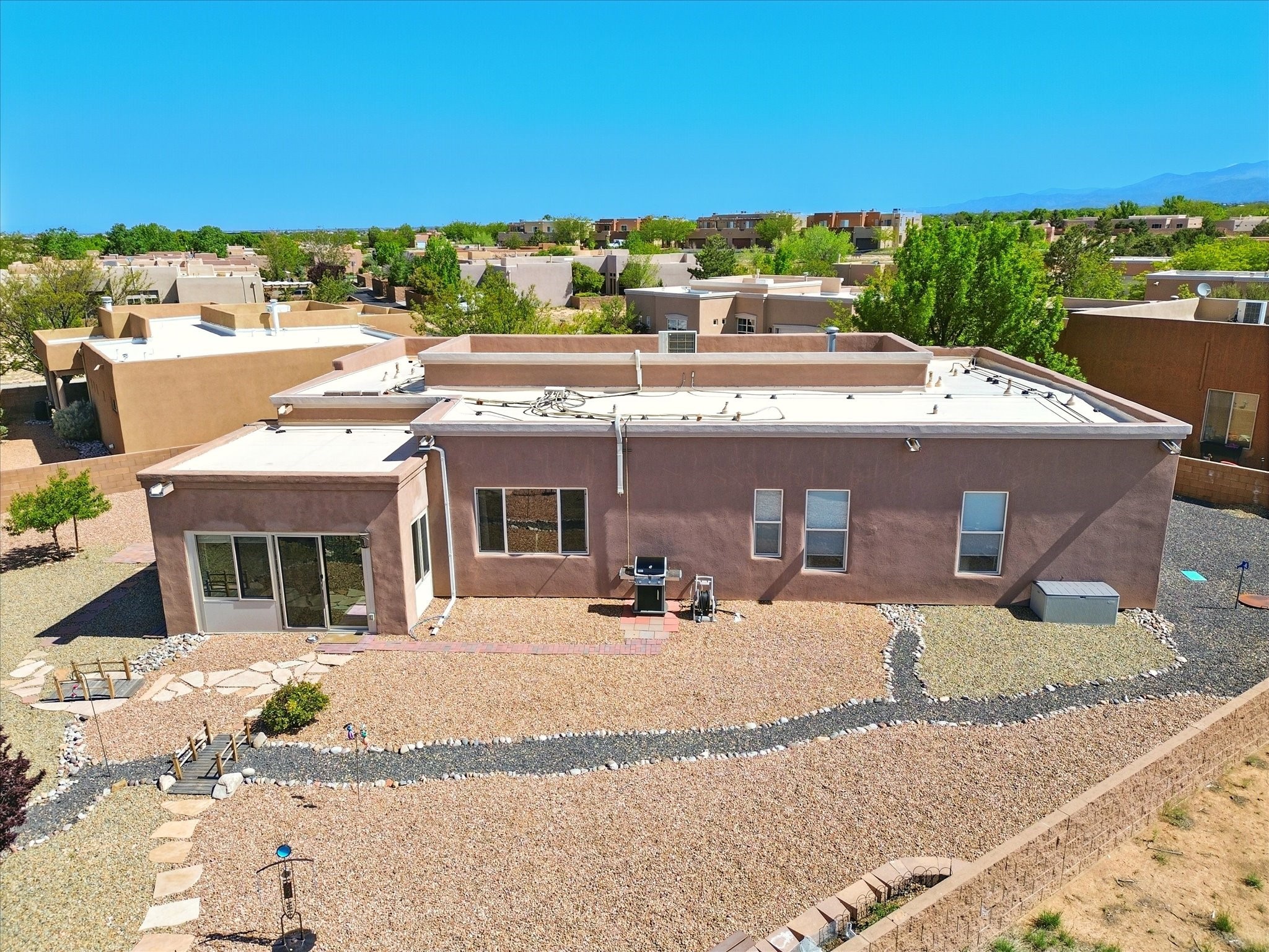 Welcome to one of the rare gems in the sought-after Rancho Viejo community--4 SierraGrande, where spectacular views and peaceful living come together. Nestled in a quiet4-home cul-de-sac, this beautifully maintained 3-bedroom, 2-bath home offerspanoramic vistas of the Sandia, Ortiz, and Jemez Mountains, with miles of open spaceto the south--protected HOA land that will never be developed. One of the standoutfeatures is the three-year-old sunroom, offering a sweeping, unobstructed view to thesouth--the perfect spot to enjoy vibrant sunsets and tranquil mornings year-round. This2,090 sqft Wild Iris model is filled with natural light and features a bright open-conceptlayout that seamlessly connects the kitchen, dining, and living areas. The primary suiteis tucked away for privacy and includes a spacious walk-in closet, double-sink vanity,and enclosed shower. Two additional guest bedrooms and a full bath are located on theopposite side of the home. Enjoy peace of mind with recent upgrades including a twoyear old boiler, instant water heater, mini-split systems, whole-house tile flooring, a fullyrenovated kitchen with updated cabinets, quartz countertops, updated appliances andlights, fresh interior paint, and new front-facing blinds--all completed within the lastthree years. Step outside to a spacious fenced backyard with a patio, ideal forgardening or relaxing while taking in the expansive, southwesterly views. With radiantheating, ductless air conditioning , and no steps throughout, this energy-efficient homeoffers year-round comfort and ease of living. Homes with this level of care, comfort, anduninterrupted natural beauty are a rare find--don't miss your chance to call this onehome.