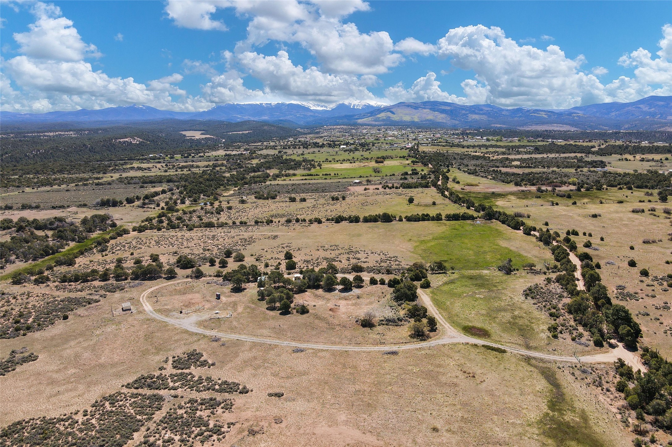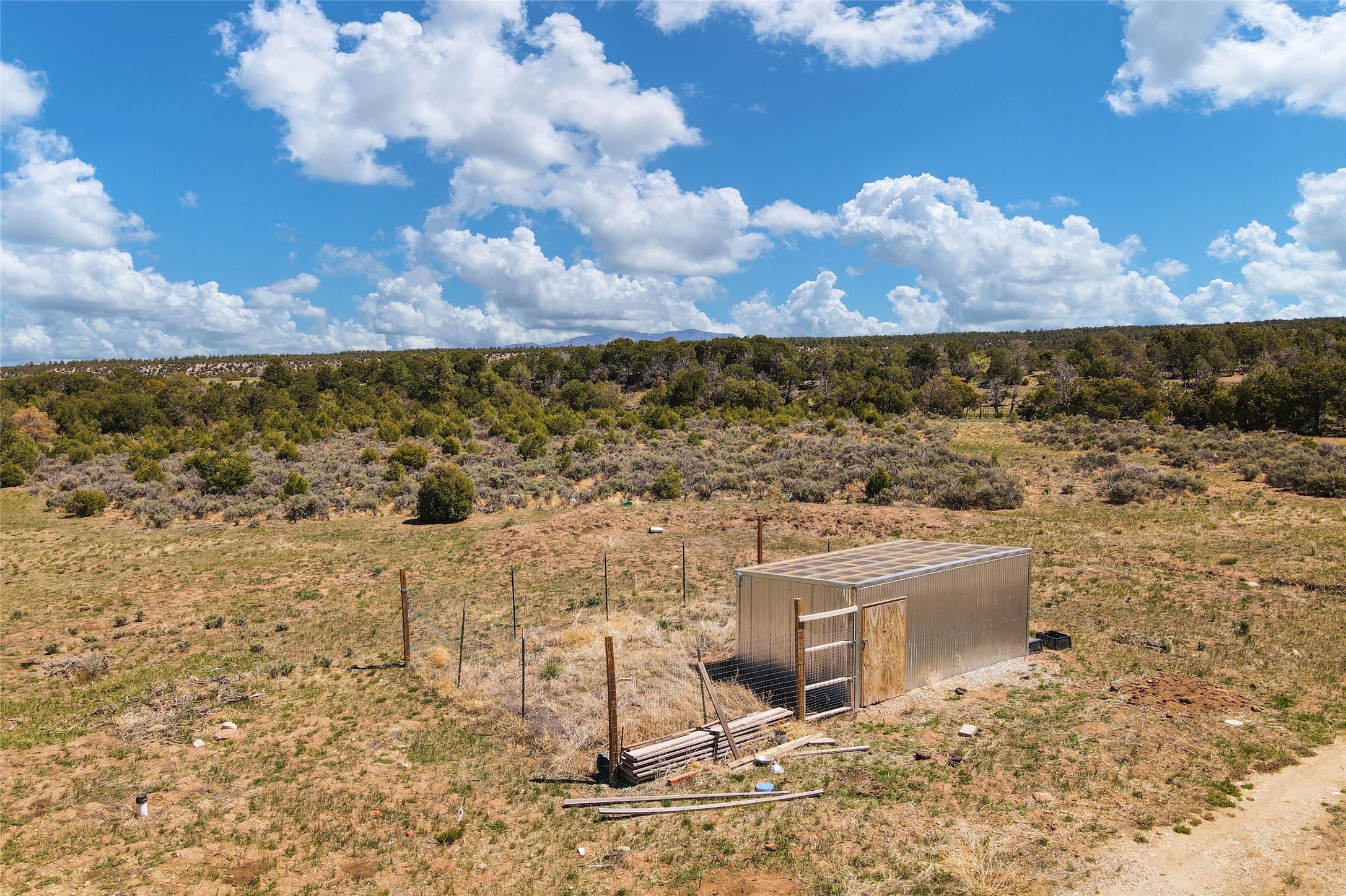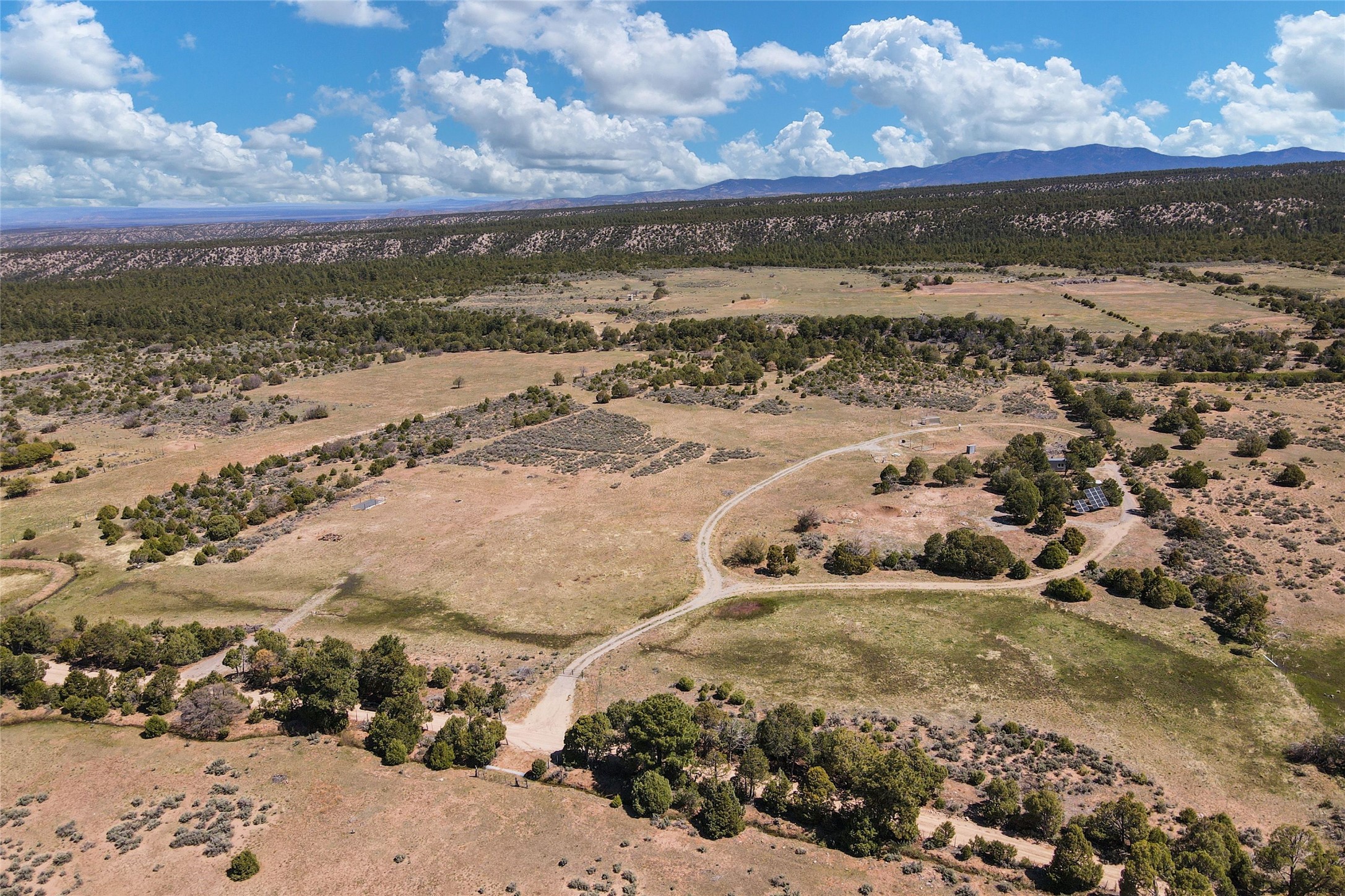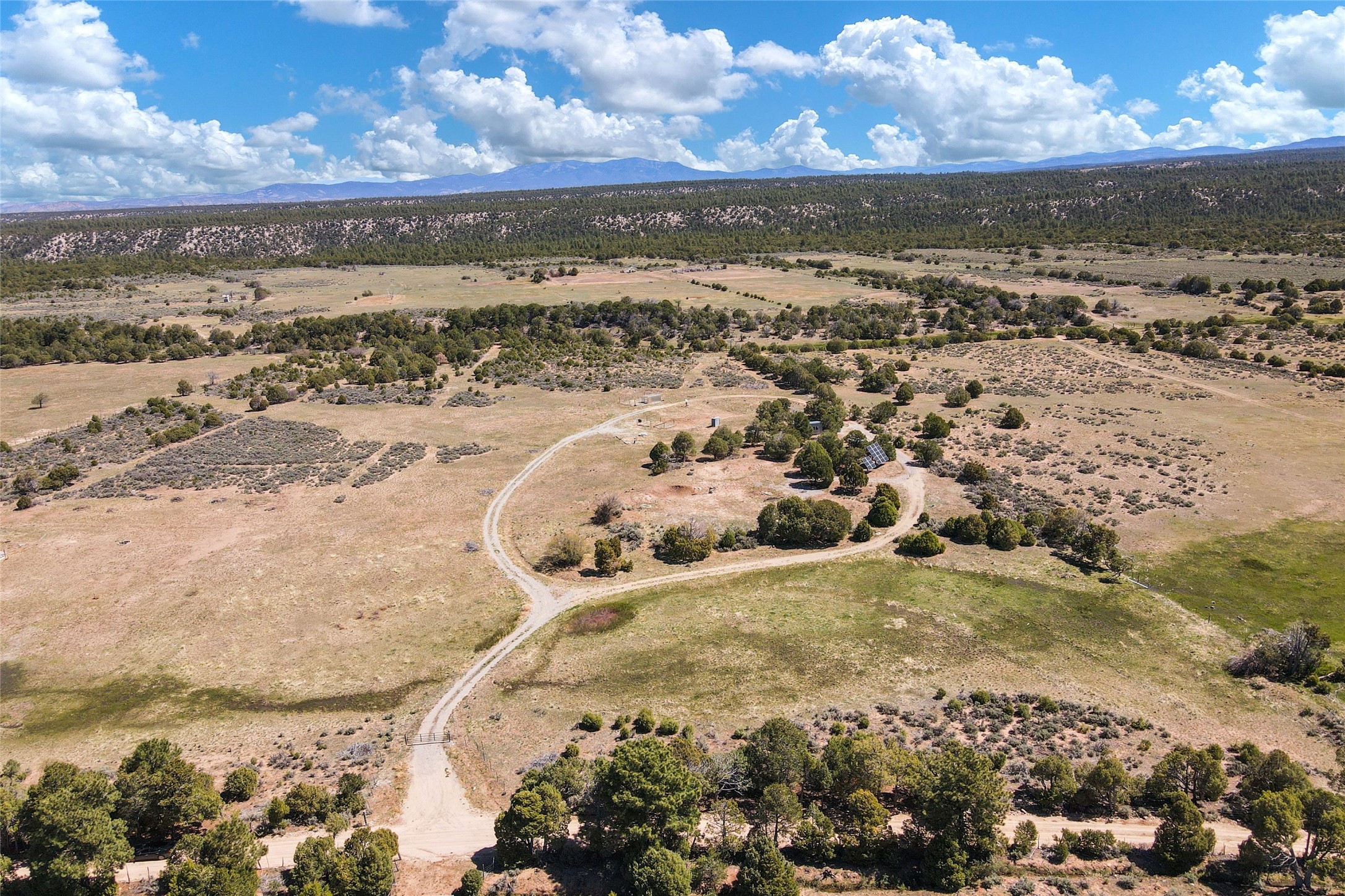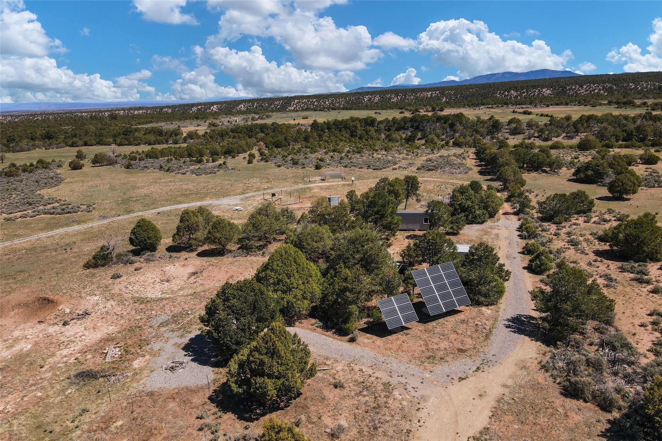 Beautiful and private hideaway in Truchas. 10.24 acres on County Road 77 (maintained by the county) and located northwest of the Truchas village, is situated on four separately surveyed parcels. Magnificent views of the Truchas Peaks to the east and the Jemez mountain range to the west. There are no covenants or restrictions on this property. The property includes Surface Water Rights and a private domestic well with a high end, off grid 1800 watt solar setup specifically for the well and includes 4 hydrants at various locations. An additional high end, off grid 4500 watt solar setup for electricity to a home. Electrical infrastructure in place to the RV pad (possible home site or cabin) and three additional locations. A new septic system sized to accommodate a 3 bedroom home. Drainage installed with culverts to prevent flooding/pooling and mud. The 240 sf cabin is sized to be a great workshop while you are building your home. There is a separate shed which houses all of the solar batteries and infrastructure for the solar system. The property is gated and fenced on three sides with 5 strand barb wire, heavy duty metal posts and T posts and on the fourth side with a two strand older hot wire fence setup. Access to the Carson National Forest and BLM public lands is a short hike. Fantastic opportunity to own a mountain retreat at 8000 feet elevation and experience the cooler summer days and nights. Close proximity to Sipapu, Pajarito, Santa Fe and Taos ski resorts for your winter time activity. Great property for the animal lover and outdoor enthusiast. Fantastic place to call home and raise your family.