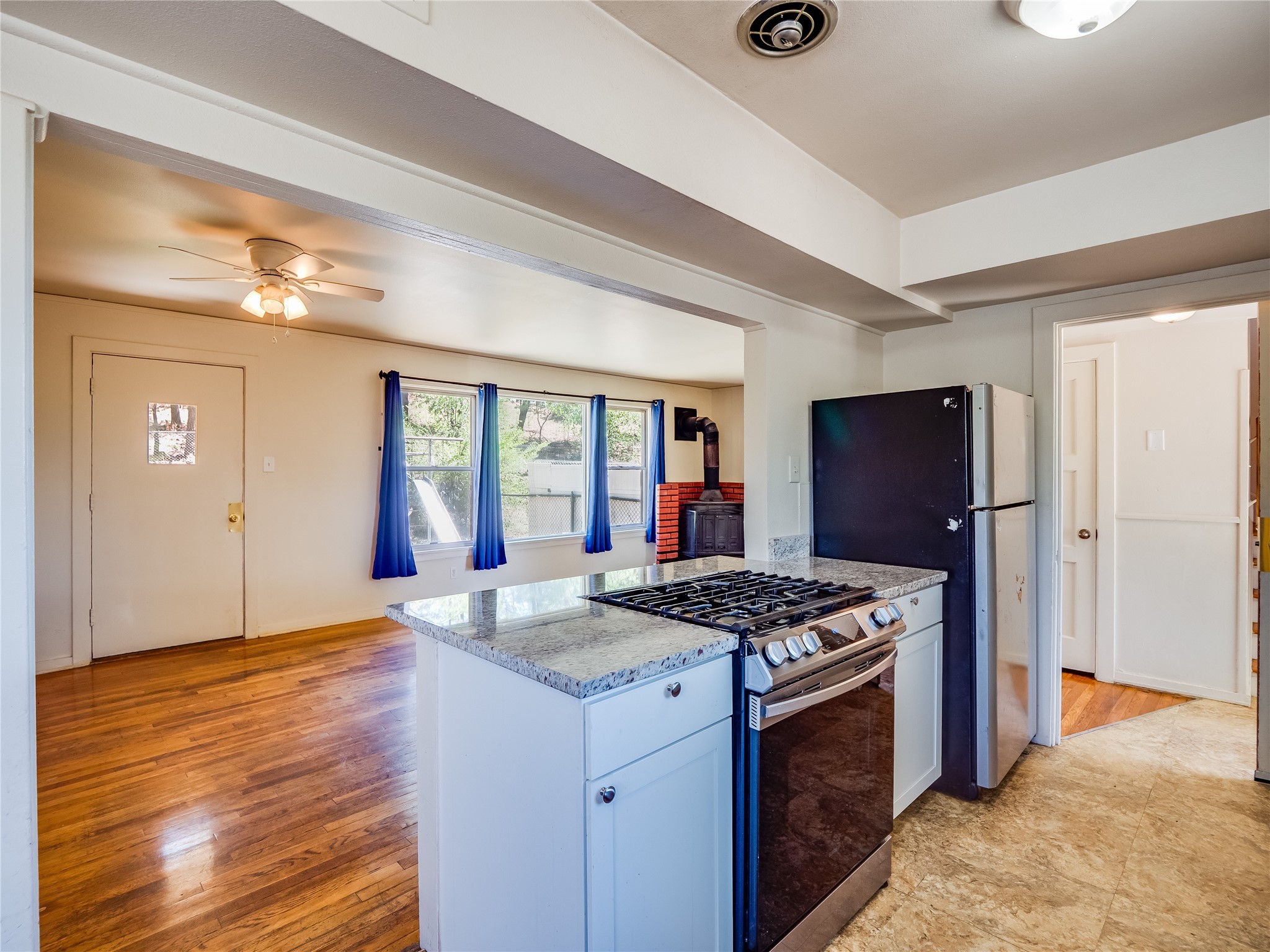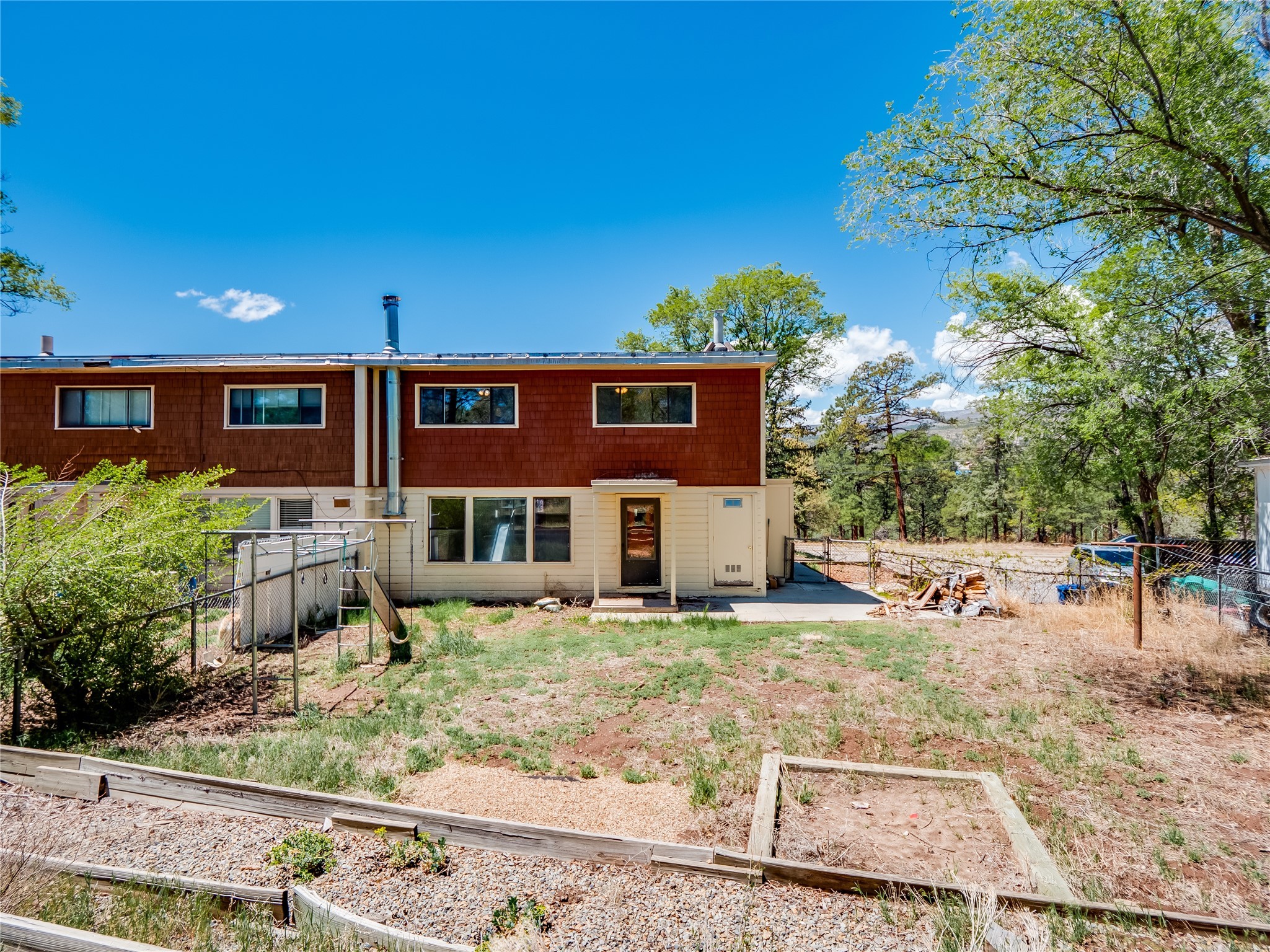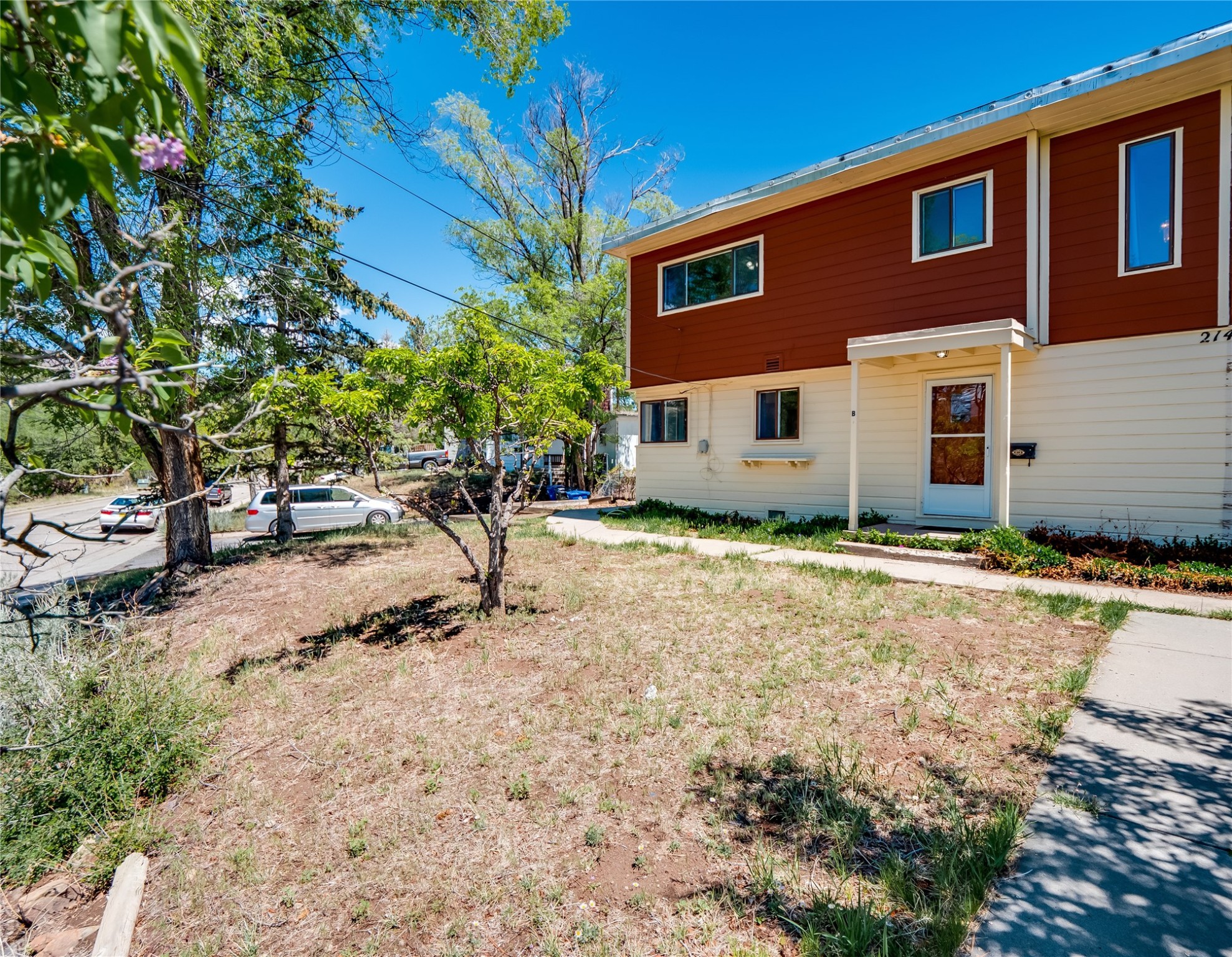 Nestled in the desirable North Community neighborhood, this charming two-story townhouse offers an ideal blend of comfort, privacy, and convenience--just moments from Aspen Elementary School, scenic trailheads, and the golf course. Elevated from the street, the home enjoys a sense of seclusion with a large grassy front yard shaded by mature trees and a designated parking spot for easy access. Step inside to a welcoming entryway with a large coat and storage closet. Straight ahead, the open-concept living and dining area features rich wood floors that continues into the second floor and an oversized window that fills the space with natural light and frames views of the backyard. A door provides direct access to the private outdoor area, perfect for indoor-outdoor living. Adjacent is a beautifully updated galley-style kitchen complete with crisp white cabinetry, granite countertops, and stainless steel appliances--including a gas range set in the peninsula island, which doubles as a breakfast bar. Just off the kitchen is a cozy nook with a built-in wet bar, perfect for a small table and chairs or a coffee station. Just off the kitchen, the mudroom and laundry area offer additional storage and functionality, with convenient access to the side yard. Upstairs, you'll find three generously sized bedrooms, two of which feature dual closets for ample storage. The shared full bathroom is bright and stylish, featuring a single sink vanity and a newly installed modern tile in the shower/tub combination. Outside, the spacious backyard is a hidden gem with tiered retaining walls ideal for a flower or vegetable garden, a concrete patio for lounging or entertaining, and a private gate that opens directly to Aspen School--just beyond the treeline. With its unbeatable location, thoughtful layout, and inviting outdoor spaces, this North Community townhouse is a rare find. Don't miss your chance--schedule your tour today!