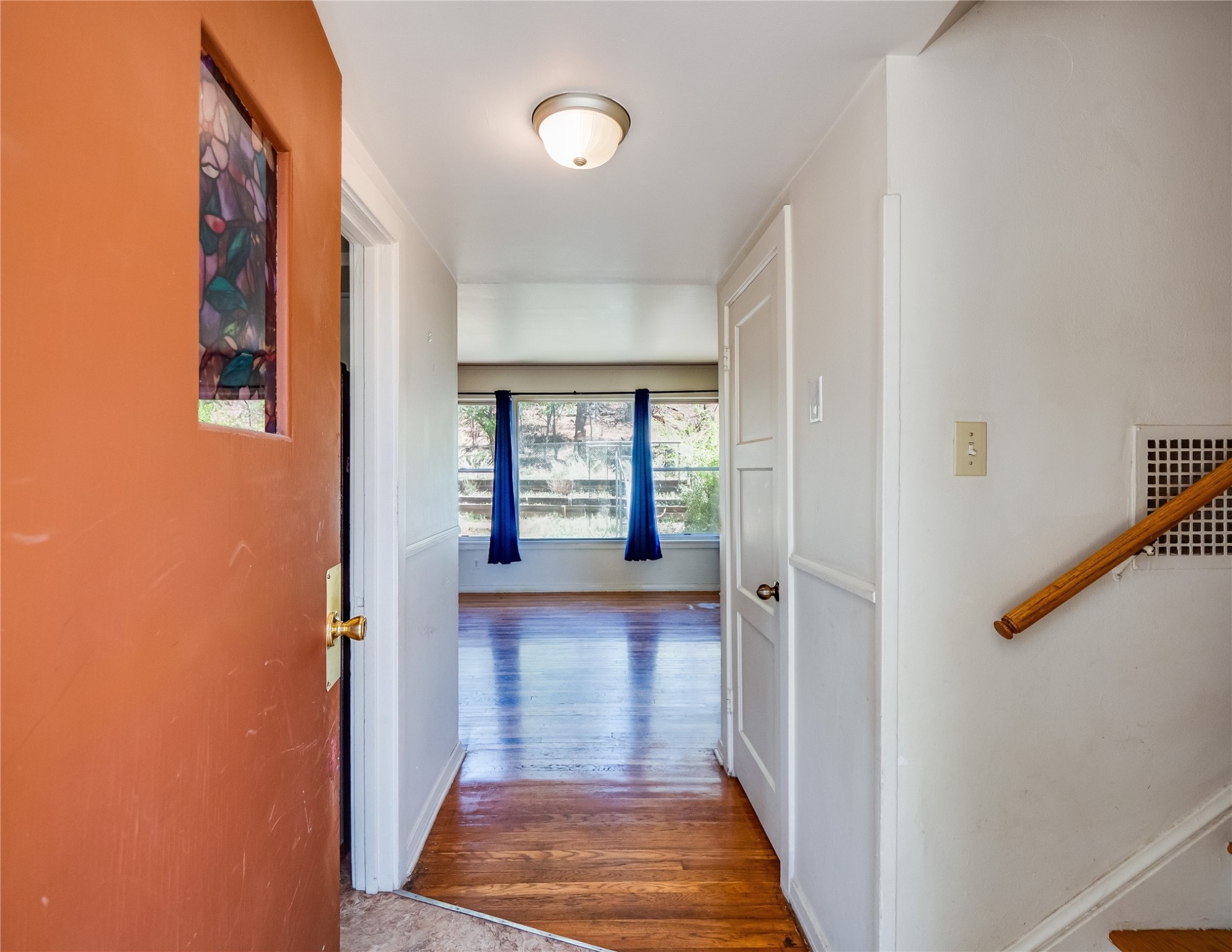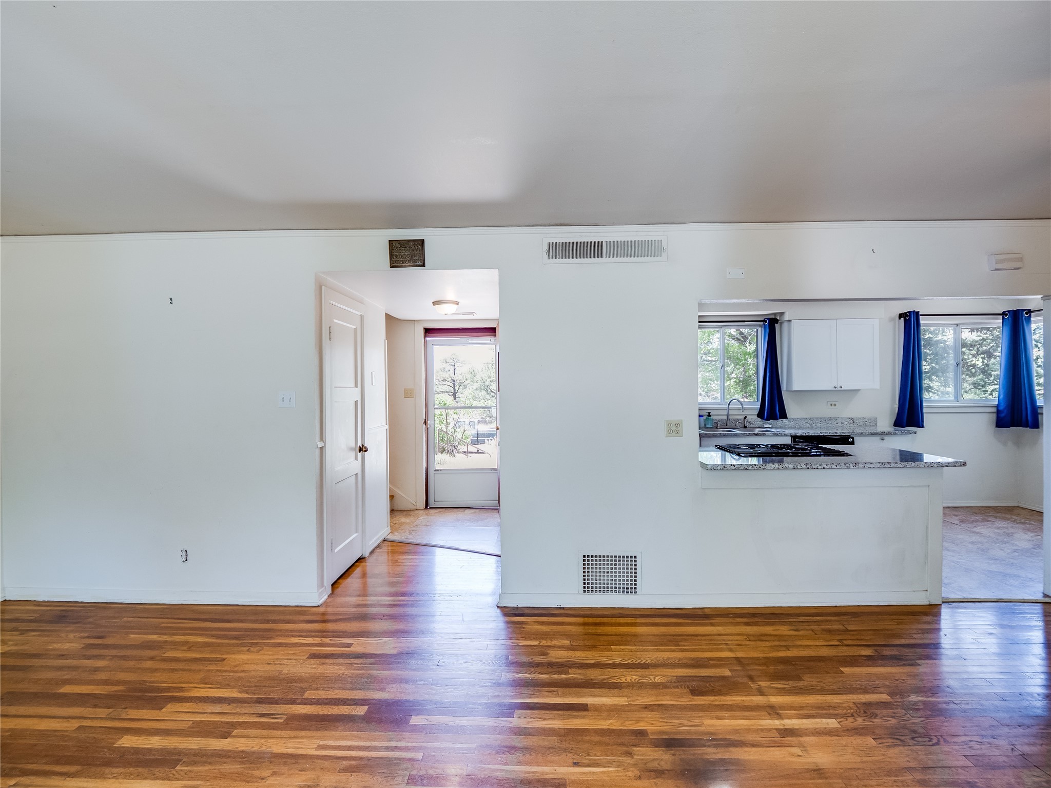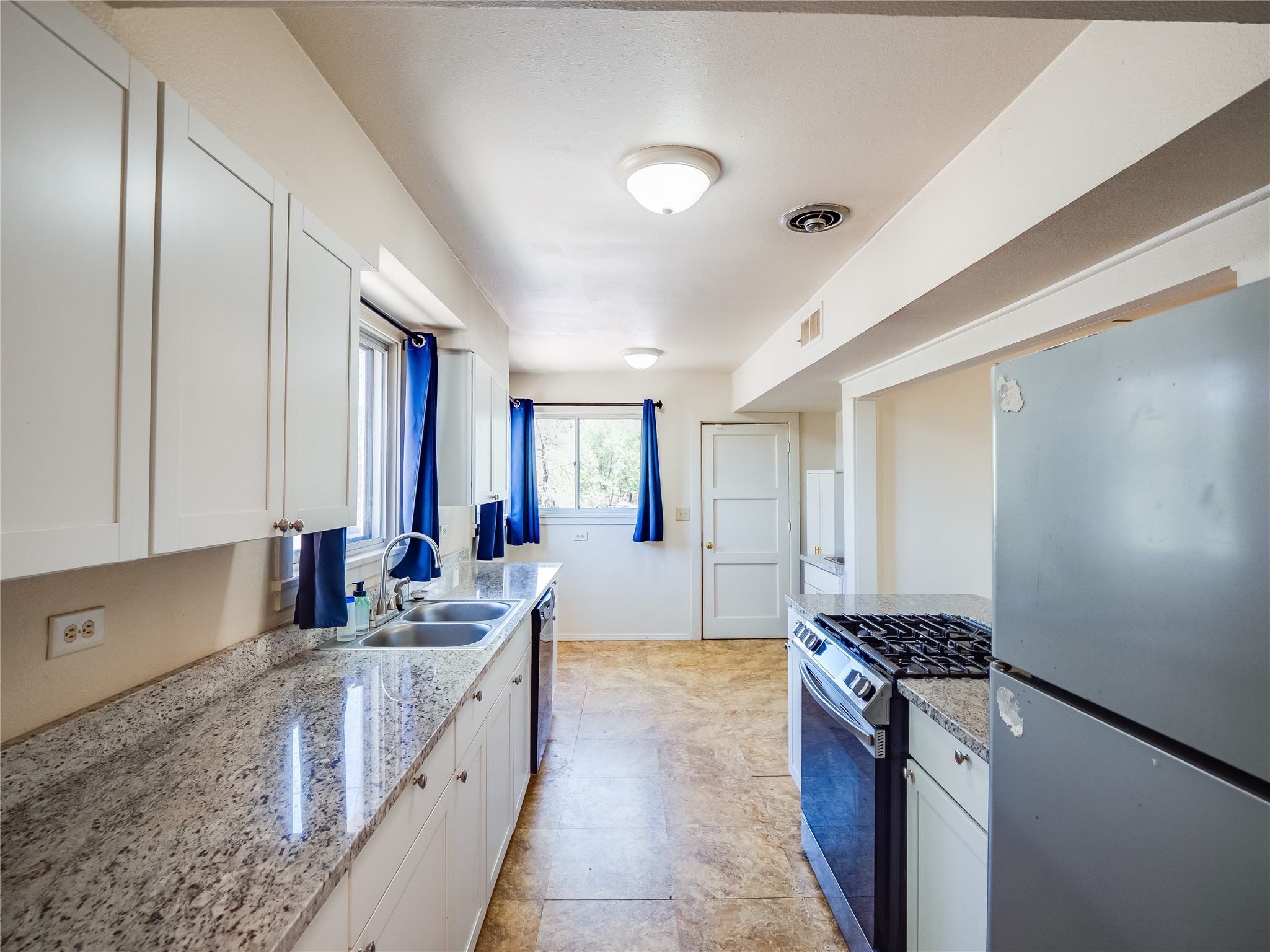 Nestled in the desirable North Community neighborhood, this charming two-story townhouse offers an ideal blend of comfort, privacy, and convenience--just moments from Aspen Elementary School, scenic trailheads, and the golf course. Elevated from the street, the home enjoys a sense of seclusion with a large grassy front yard shaded by mature trees and a designated parking spot for easy access. Step inside to a welcoming entryway with a large coat and storage closet. Straight ahead, the open-concept living and dining area features rich wood floors that continues into the second floor and an oversized window that fills the space with natural light and frames views of the backyard. A door provides direct access to the private outdoor area, perfect for indoor-outdoor living. Adjacent is a beautifully updated galley-style kitchen complete with crisp white cabinetry, granite countertops, and stainless steel appliances--including a gas range set in the peninsula island, which doubles as a breakfast bar. Just off the kitchen is a cozy nook with a built-in wet bar, perfect for a small table and chairs or a coffee station. Just off the kitchen, the mudroom and laundry area offer additional storage and functionality, with convenient access to the side yard. Upstairs, you'll find three generously sized bedrooms, two of which feature dual closets for ample storage. The shared full bathroom is bright and stylish, featuring a single sink vanity and a newly installed modern tile in the shower/tub combination. Outside, the spacious backyard is a hidden gem with tiered retaining walls ideal for a flower or vegetable garden, a concrete patio for lounging or entertaining, and a private gate that opens directly to Aspen School--just beyond the treeline. With its unbeatable location, thoughtful layout, and inviting outdoor spaces, this North Community townhouse is a rare find. Don't miss your chance--schedule your tour today!
