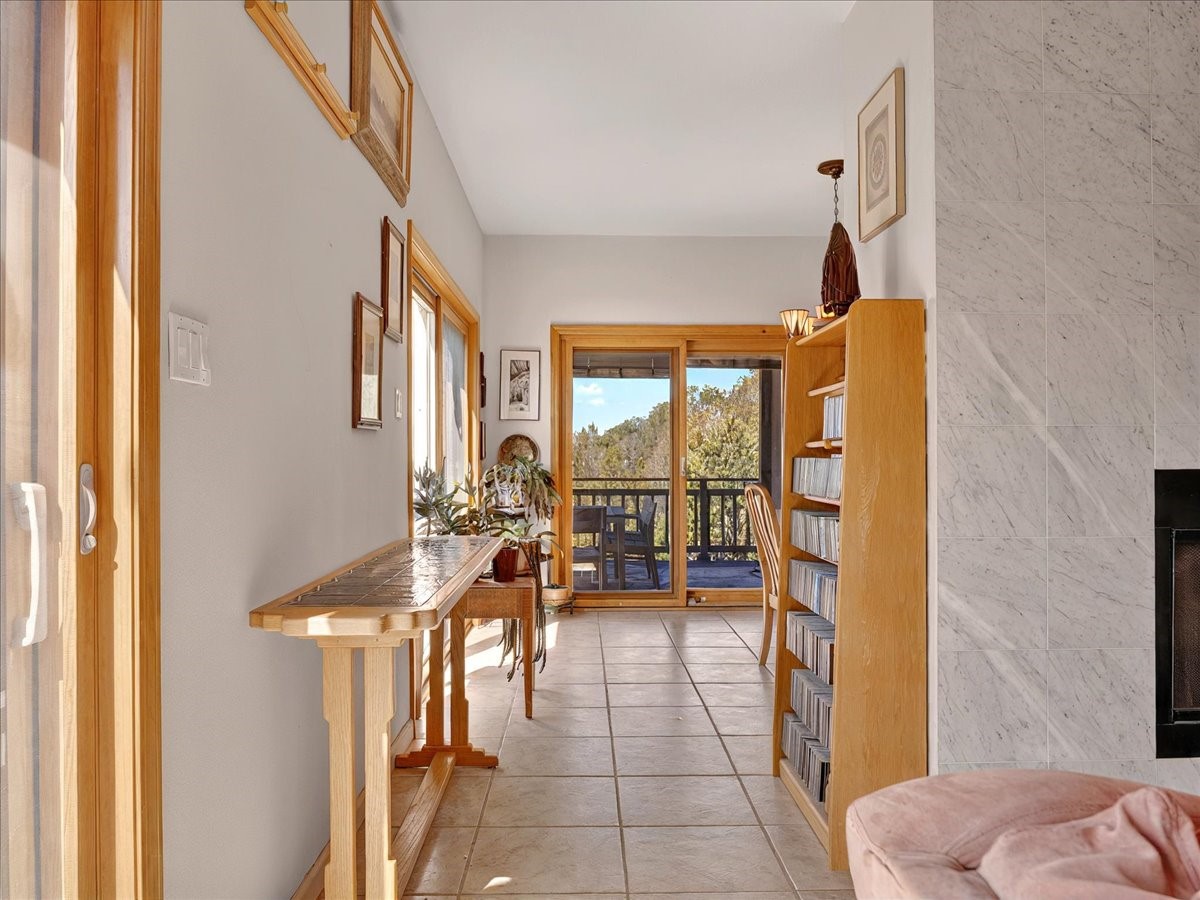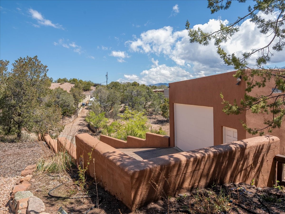 This lovely home is perched on a ridge overlooking Downtown Santa Fe. The viewing deck faces south bringing abundant light into the living space. With 3 Bedrooms/ 2 Baths on half an acre, the 1946 sf feels very open. The large 2 car garage is separate with paved access. Broker present for all showings