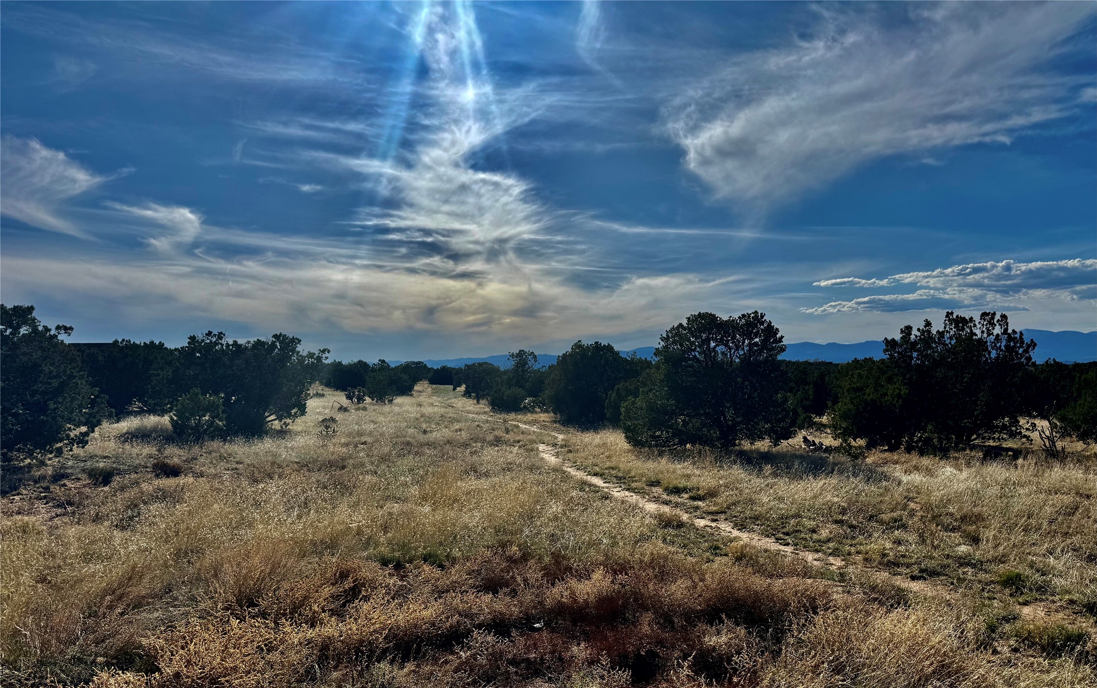 Live where the land meets the sky. This exceptional 5-acre homesite offers panoramic, unobstructed views of both the Sangre De Cristo and Jemez Mountains. Experience awe-inspiring sunsets that bathe the landscape in golden light, creating a daily spectacle of natural beauty. A setting a rare serenity, this property evokes a sense of peace and timelessness. Perfect rural setting for those who love being out in nature, hiking trails, biking trails and life in the wide open spaces is here for your enjoyment. A truly one-of-a-kind opportunity that must be seen to be believed.
