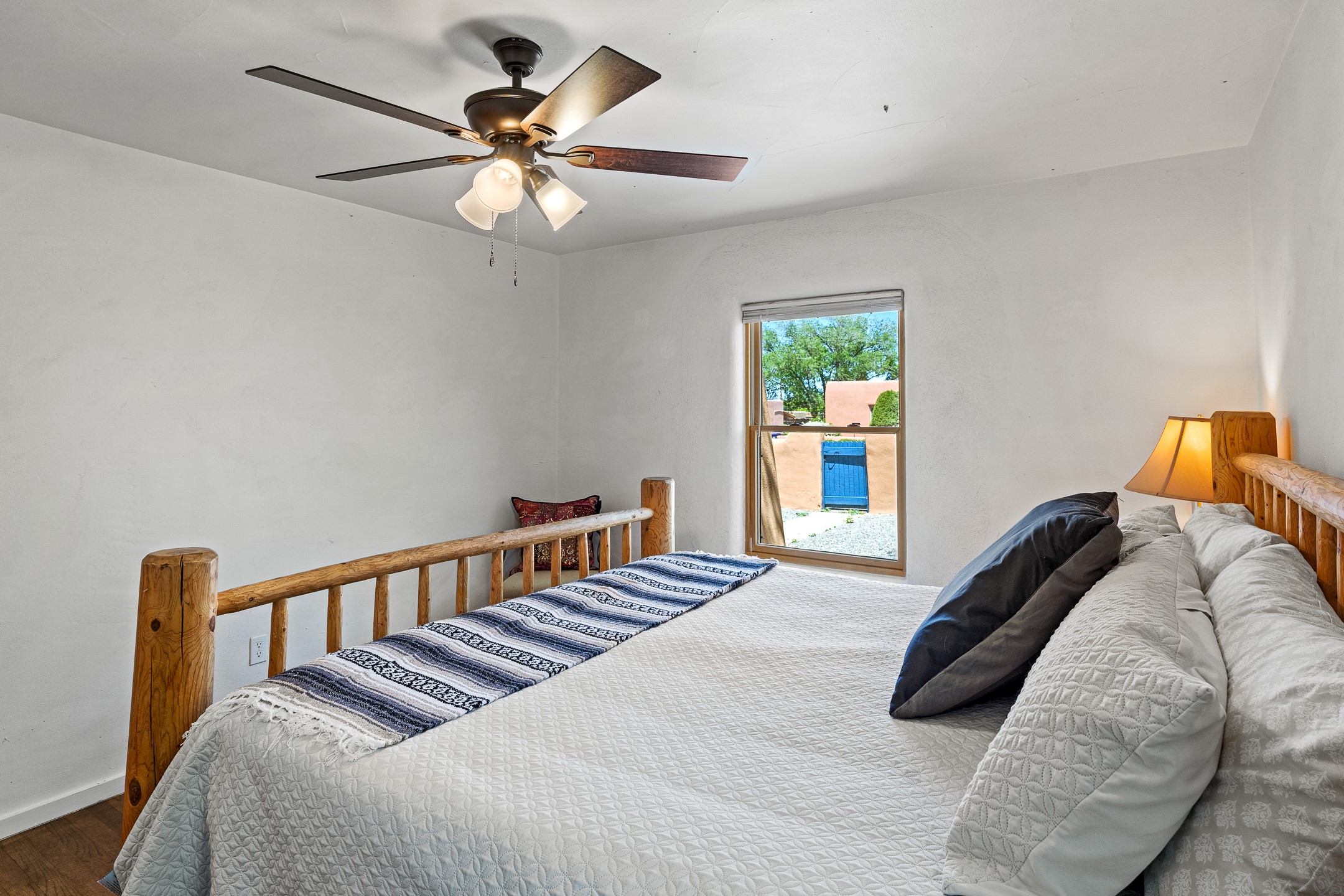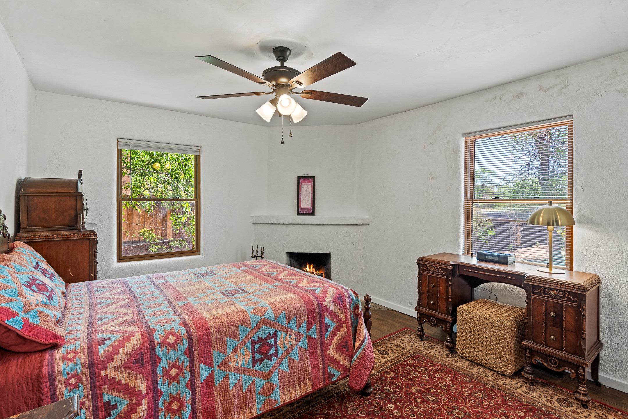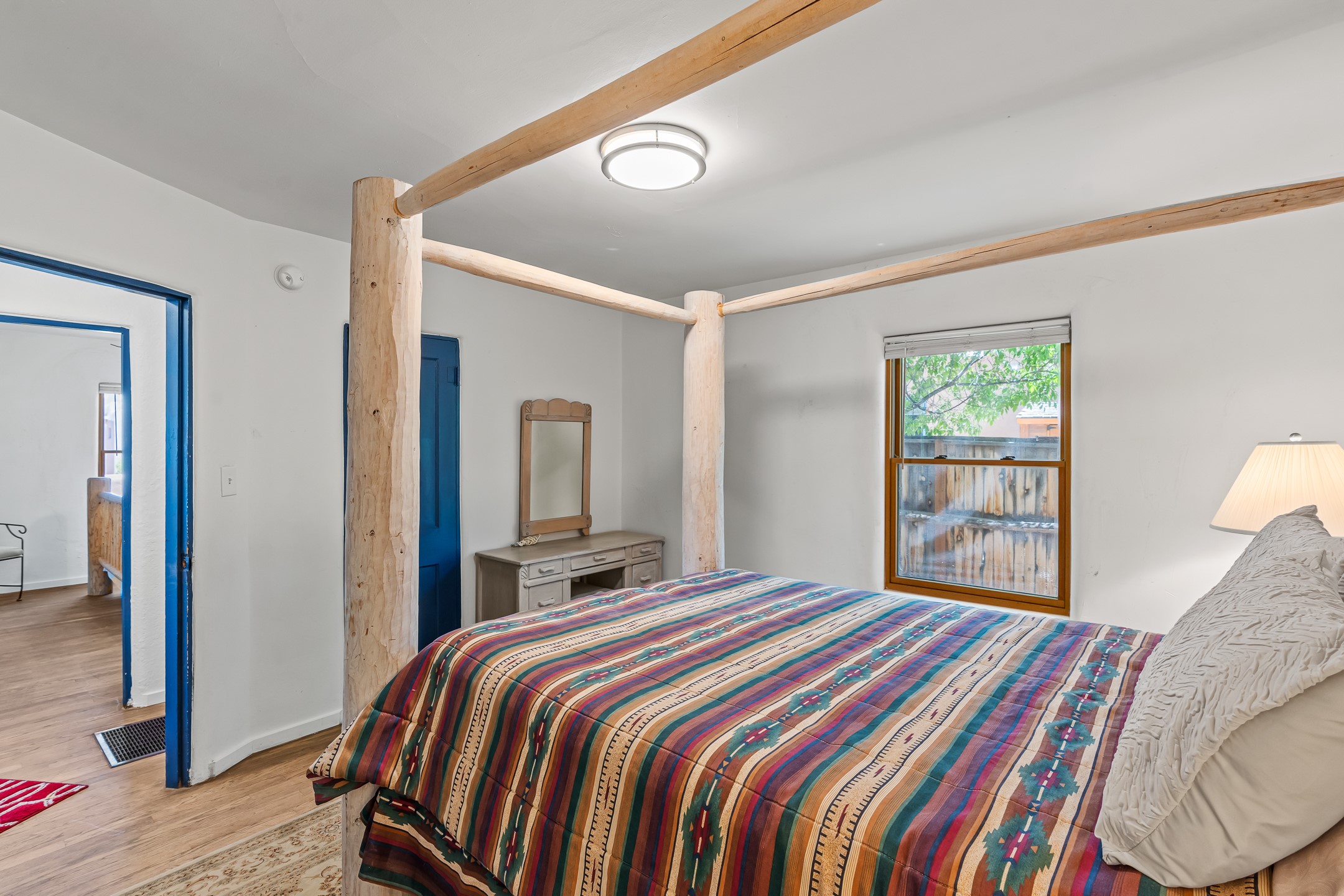 Situated on a spacious, fully fenced lot, this classic Northern New Mexico adobe offers charm, flexibility, and strong income potential. The character-rich main house features wood floors, artisan details, and a cozy fireplace, while a separate guest house--eligible for short-term rental--provides immediate income opportunity. Recent updates include refreshed bathrooms, lighting, appliances, and interior paint. With no historic restrictions, favorable zoning, and ample off-street parking, this is a rare investment or live/work opportunity in a sought-after Santa Fe location.