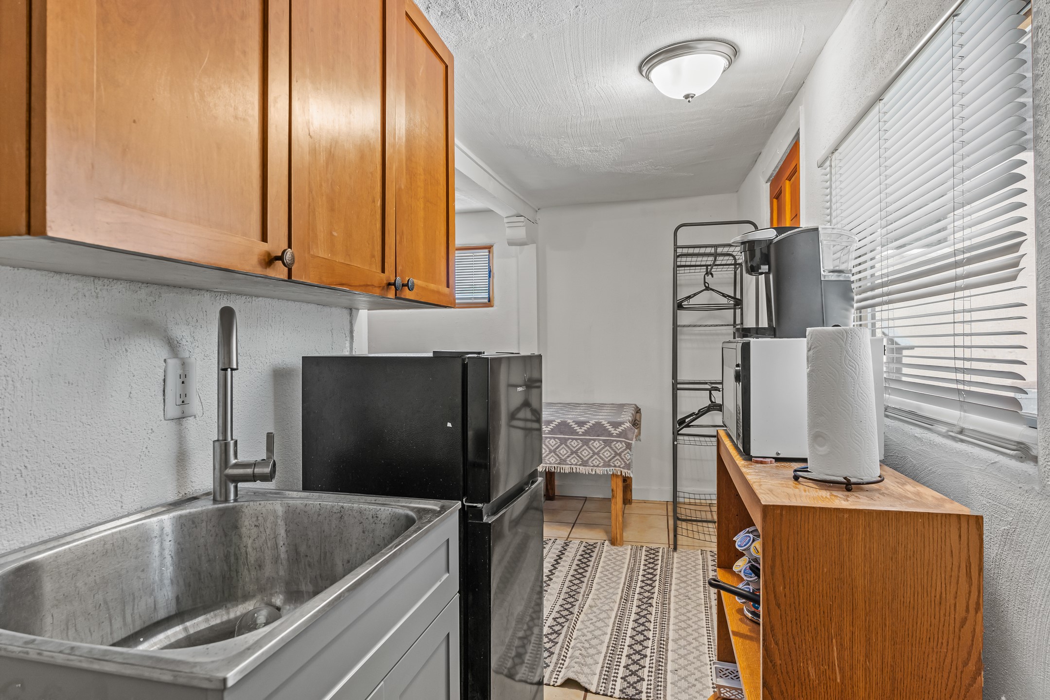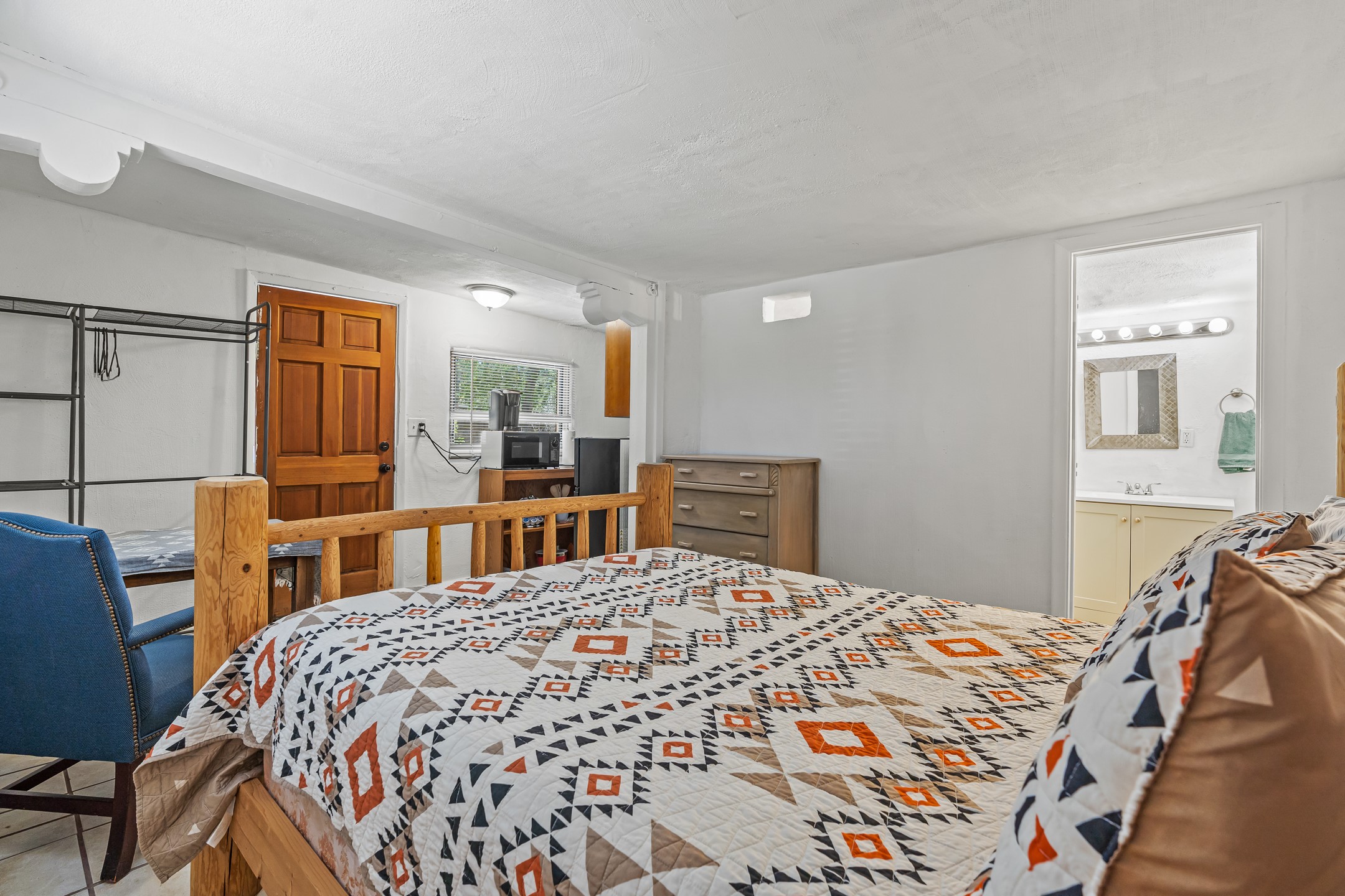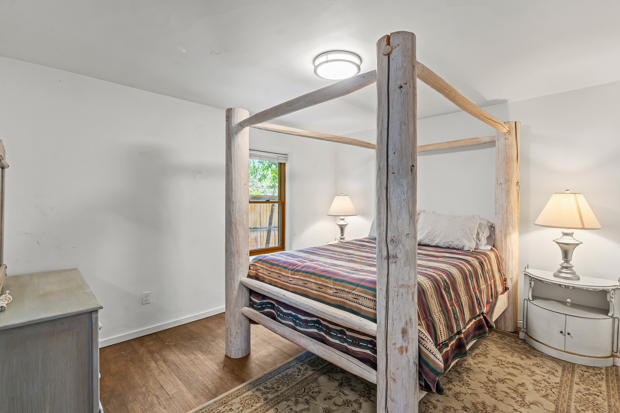 Situated on a spacious, fully fenced lot, this classic Northern New Mexico adobe offers charm, flexibility, and strong income potential. The character-rich main house features wood floors, artisan details, and a cozy fireplace, while a separate guest house--eligible for short-term rental--provides immediate income opportunity. Recent updates include refreshed bathrooms, lighting, appliances, and interior paint. With no historic restrictions, favorable zoning, and ample off-street parking, this is a rare investment or live/work opportunity in a sought-after Santa Fe location.