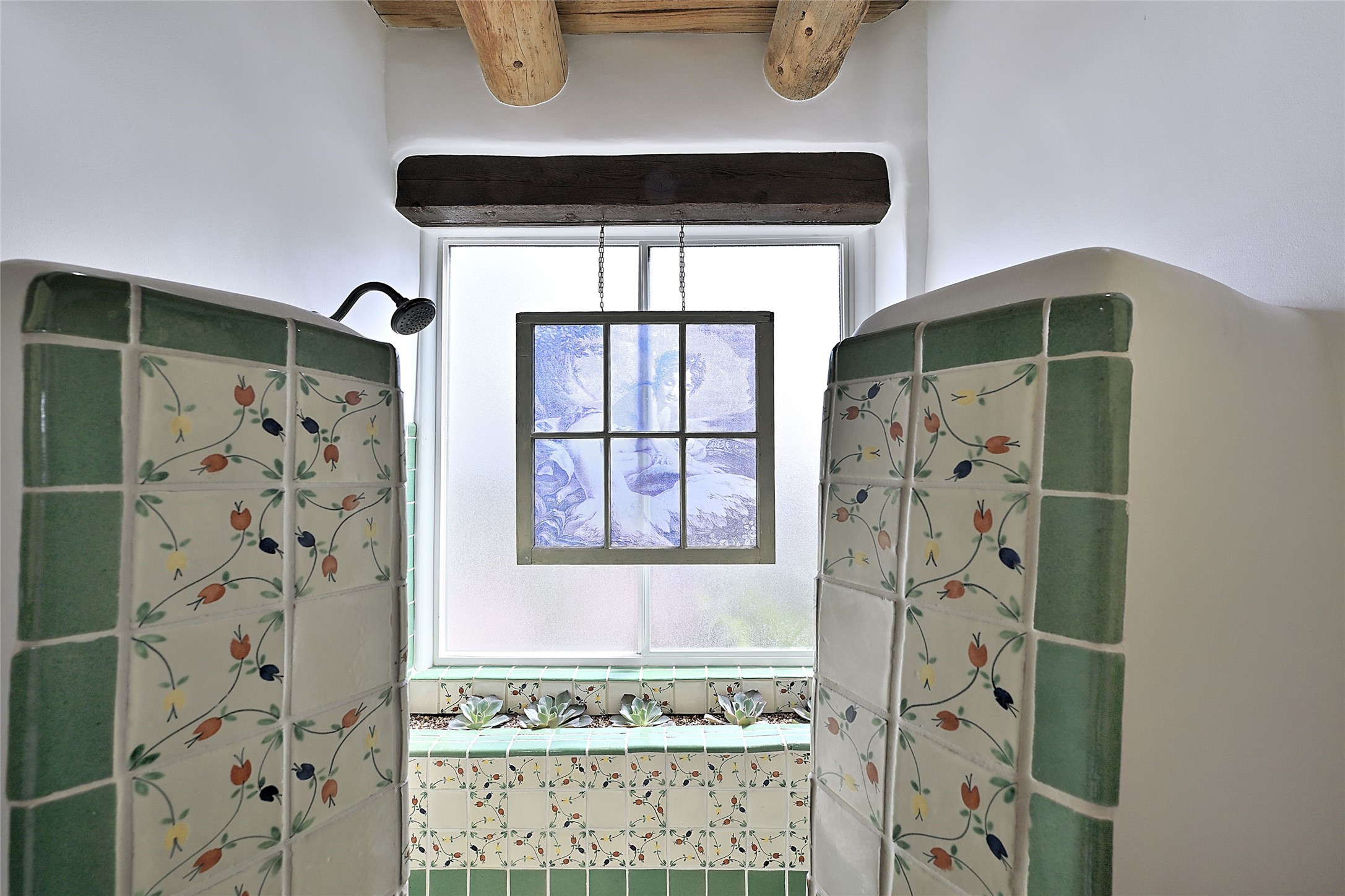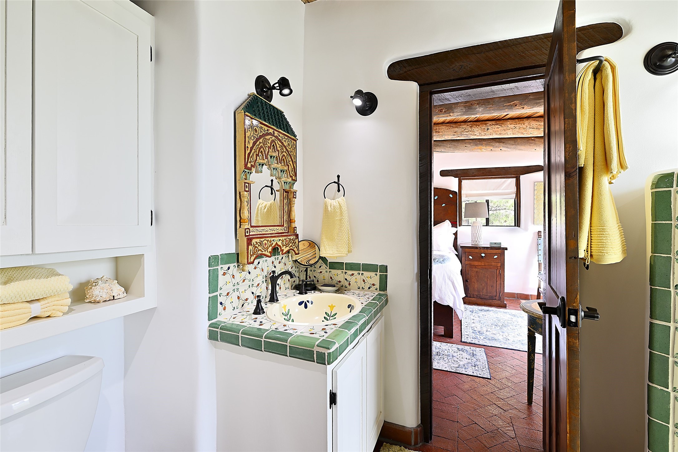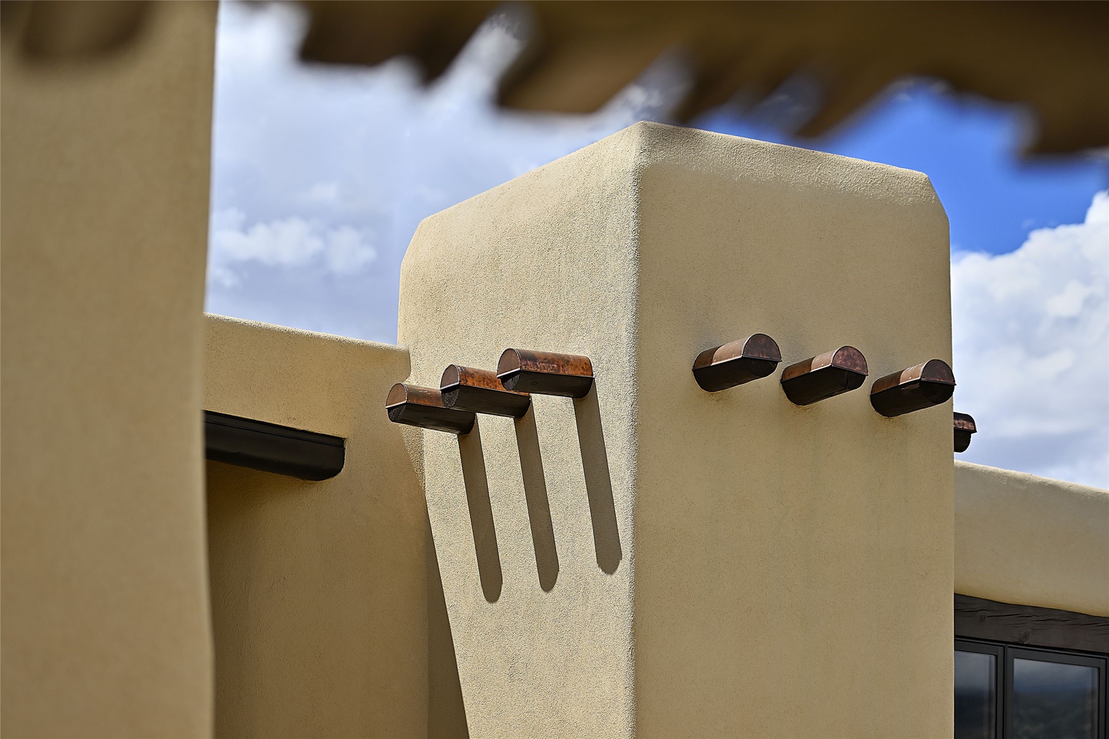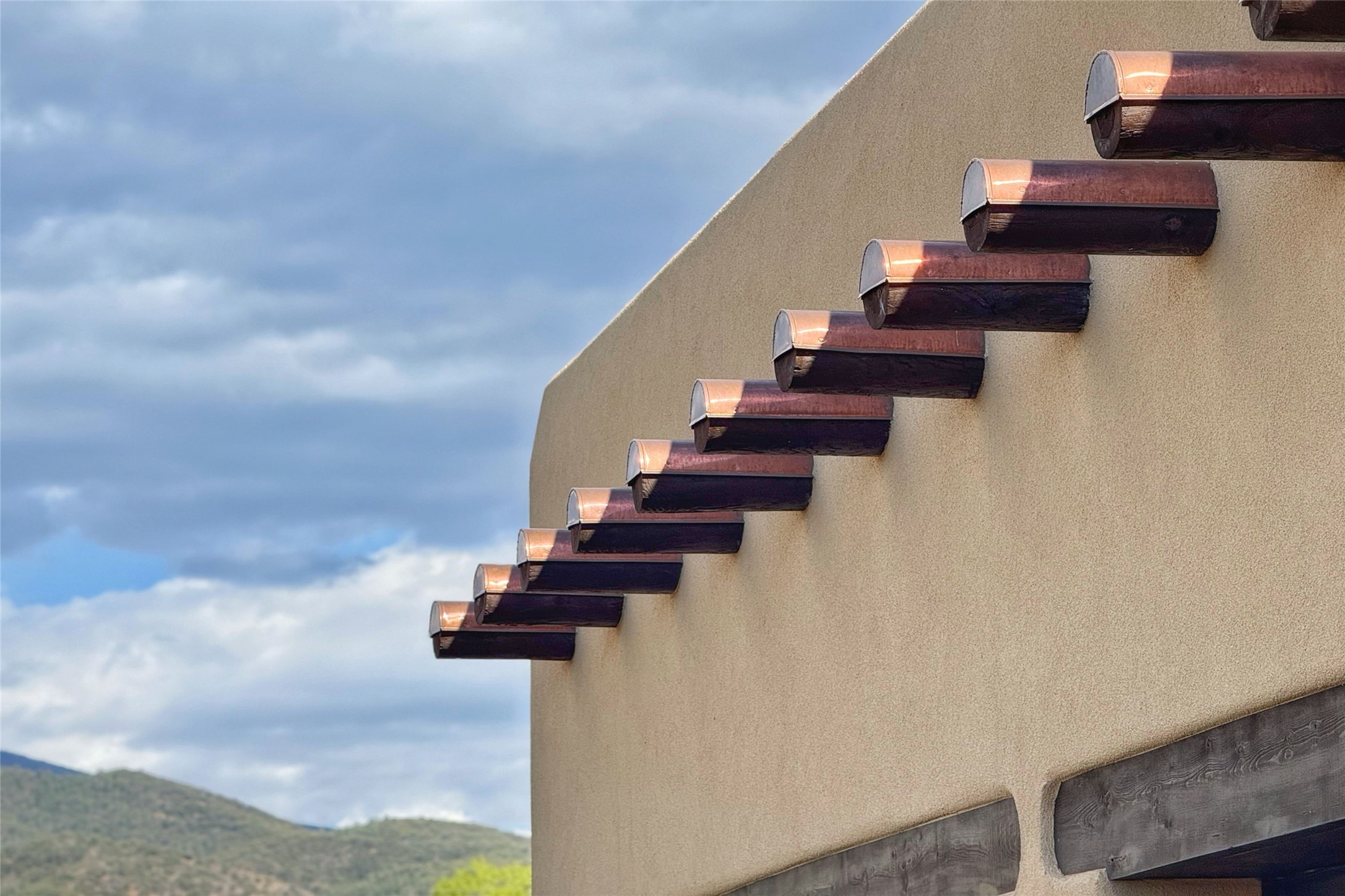 Welcome to this breathtaking 10-acre estate in the prestigious Tesuque community, where luxury meets unparalleled natural beauty. Quite possibly the best views in Tesuque, perched majestically on a private mountaintop, lovingly nicknamed "Top of Tesuque," offering 360-degree panoramic views that make you feel as though you're sitting atop the world. Spanning approximately 6,614 sq ft, this 4-bedroom home is a masterpiece of design and function, featuring many new upgrades for a modern lifestyle. This fully restored and expanded adobe home seamlessly blends classic Santa Fe design with modern upgrades, preserving its timeless charm. This property has a new roof, lighting, stucco. Truly turn-key in every way. Inside, the floor plan seamlessly blends indoor and outdoor living, creating an ideal setting for both relaxation and entertaining, including 6 Kiva Fireplaces as well as 1 wood-burning stove. The brand-new kitchen features handcrafted solid wood cabinetry and top-of-the-line luxury appliances, perfect for any culinary enthusiast, while the adjacent dining and living areas boast spectacular views. The primary bedroom suite includes a separate sitting room, offering a private retreat within the home. Enjoy the convenience of a dedicated office space and den, a media room, as well as a game room complete with a wet bar, perfect for hosting guests. Step outside to the covered portal with outdoor kitchen & TV, complete with matching granite countertops, where you can entertain in style. The outdoor kitchen has all new (never been used) grill, pizza oven and smoker! Terraced gardens also feature a brand-new (never been used) Sauna and Hot Tub. A newly built garage has an observation deck on top. There are new entrance gates for privacy, a new driveway surface, and new additional parking areas ensure privacy and convenience. The addition of an electric lift from ground level to main level of residence also ensures accessibility and ease for loading and unloading. Mexican Porcelain tile terrace at the front entrance welcomes you. There is an enclosed dog park, as well as fully irrigated garden beds surrounding the house. The property is beautifully illuminated with 40 handmade copper light fixtures, adding a timeless touch to the outdoor spaces. With no HOA restrictions, this home offers the freedom and tranquility you've been searching for in the village of Tesuque.