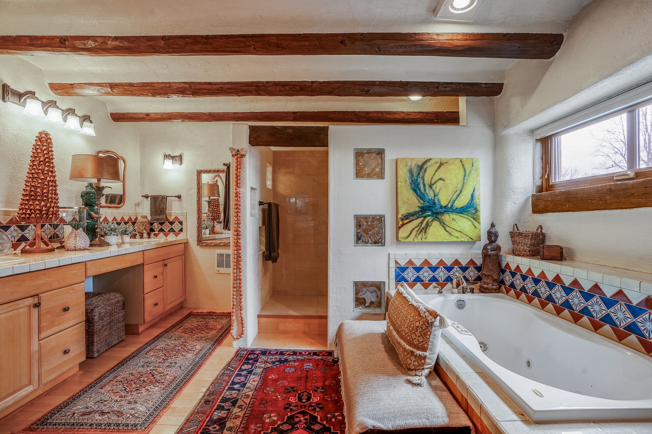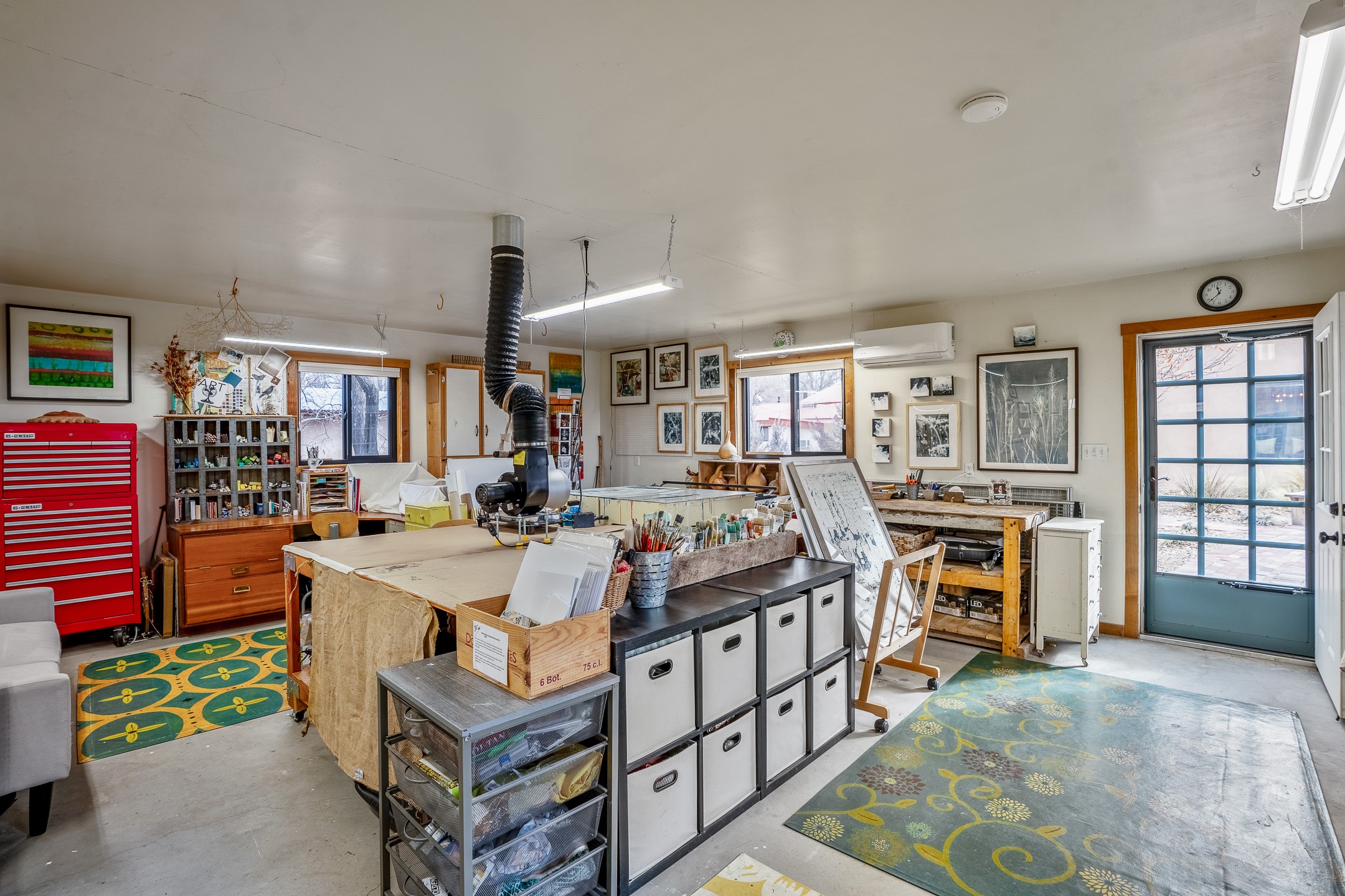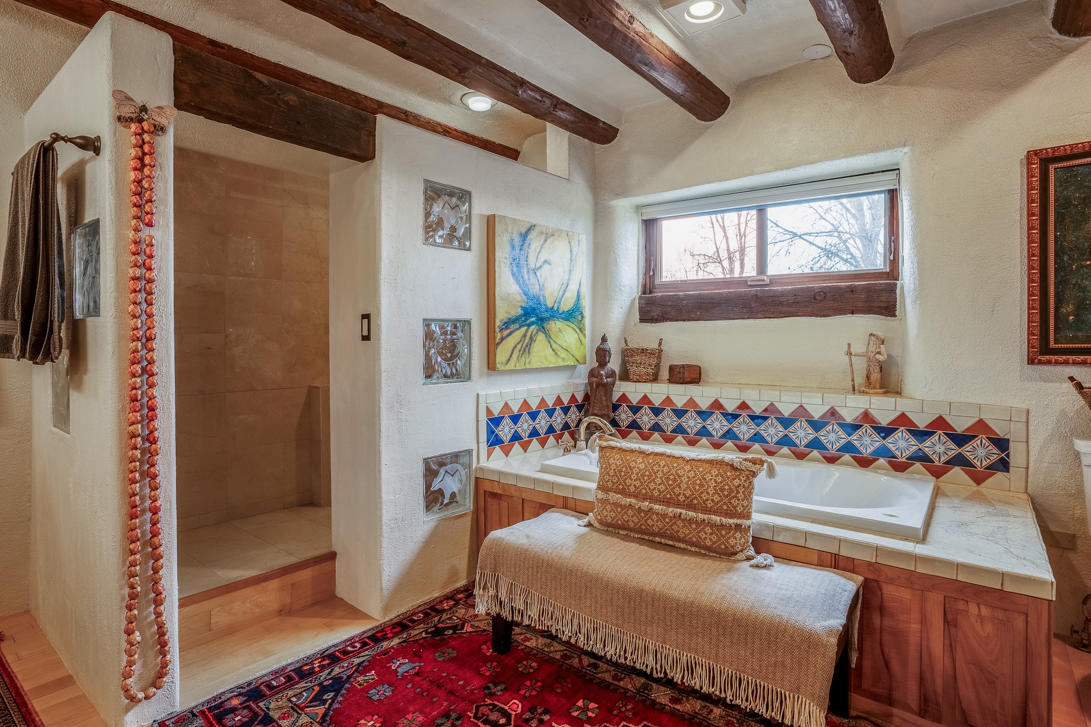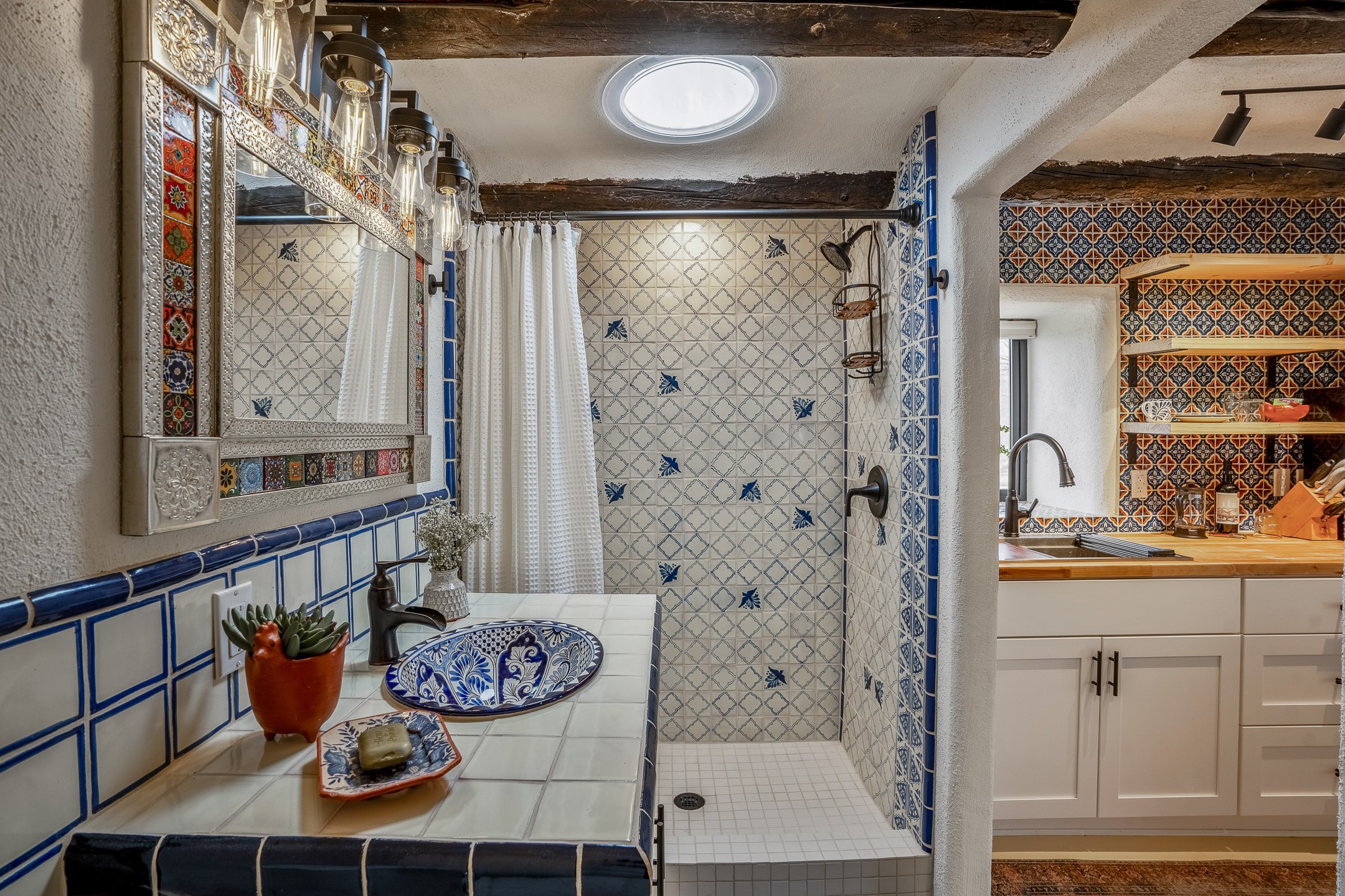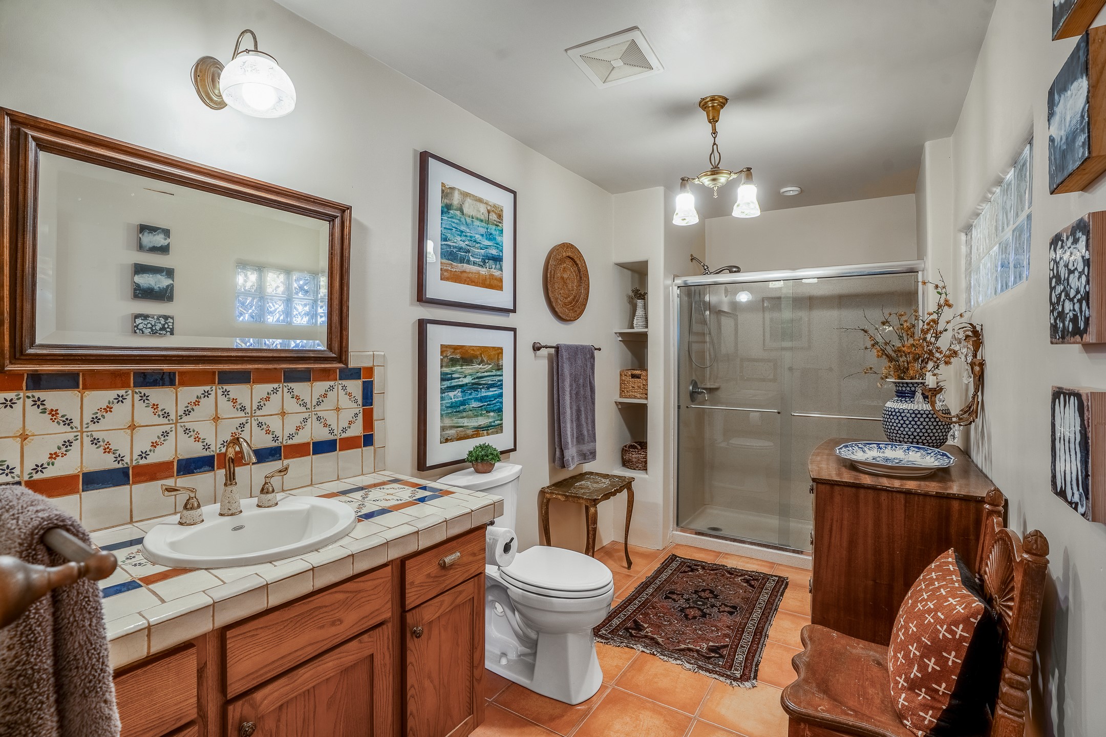 Charming, yet elegant, Alcalde adobe compound just steps from the Rio Grande Bosque. Experience refined farm living in this meticulously restored northern New Mexico property, which includes a main house, detached casita, and artist studio with a 3-car garage on 4.2 acres--2 acres of which are arable farmland. The acreage stretches from the Acequia de Alcalde to the Rio Grande Bosque and offers sweeping 180-degree views of the Jemez Mountains, Black Mesa, and the RG Bosque. The 3-bedroom, 2-bath adobe main house dates back to the early 1900s but has undergone thoughtful renovations and system upgrades in 2004 and again between 2022 and 2025. Finishes include vigas, coved ceilings, tile, brick, and wood floors, plus new high-end appliances in the kitchen and laundry. Equally charming is the 1-BD, 1-BA detached casita--perfect for guests or rental income. The double-adobe casita, the oldest structure on the property, was completely reimagined in 2024 and features custom tile work, a functional kitchenette, a new mini-split for heating and cooling, a screened-in porch, and front-row views of the Bosque. The property also includes a 3-car detached garage with an attached artist studio, making this property truly the complete package. The approximately 500 sq. ft. studio is heated and cooled by a mini-split and serves as an ideal space to create--or would serve as a great workshop. The grounds near the residences are landscaped with native grasses, flowers, a variety of fruit trees, and are watered by an 8-zone automated drip irrigation system. Water fountains grace both the front and back of the main house for added ambiance. Additional features include a private well, net-metered solar panels on the main house, and 3-acre feet of acequia water rights. Whether you're seeking an agricultural dream or a lush, retreat from city life, this property offers tranquility and the splendor of northern New Mexico--just 35 minutes from downtown Santa Fe.