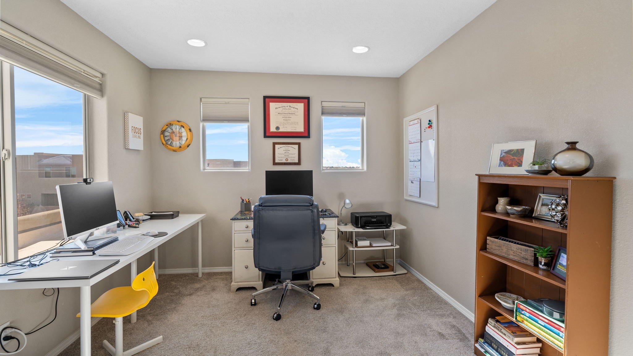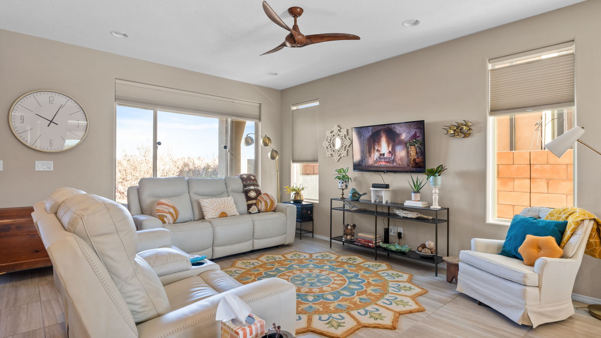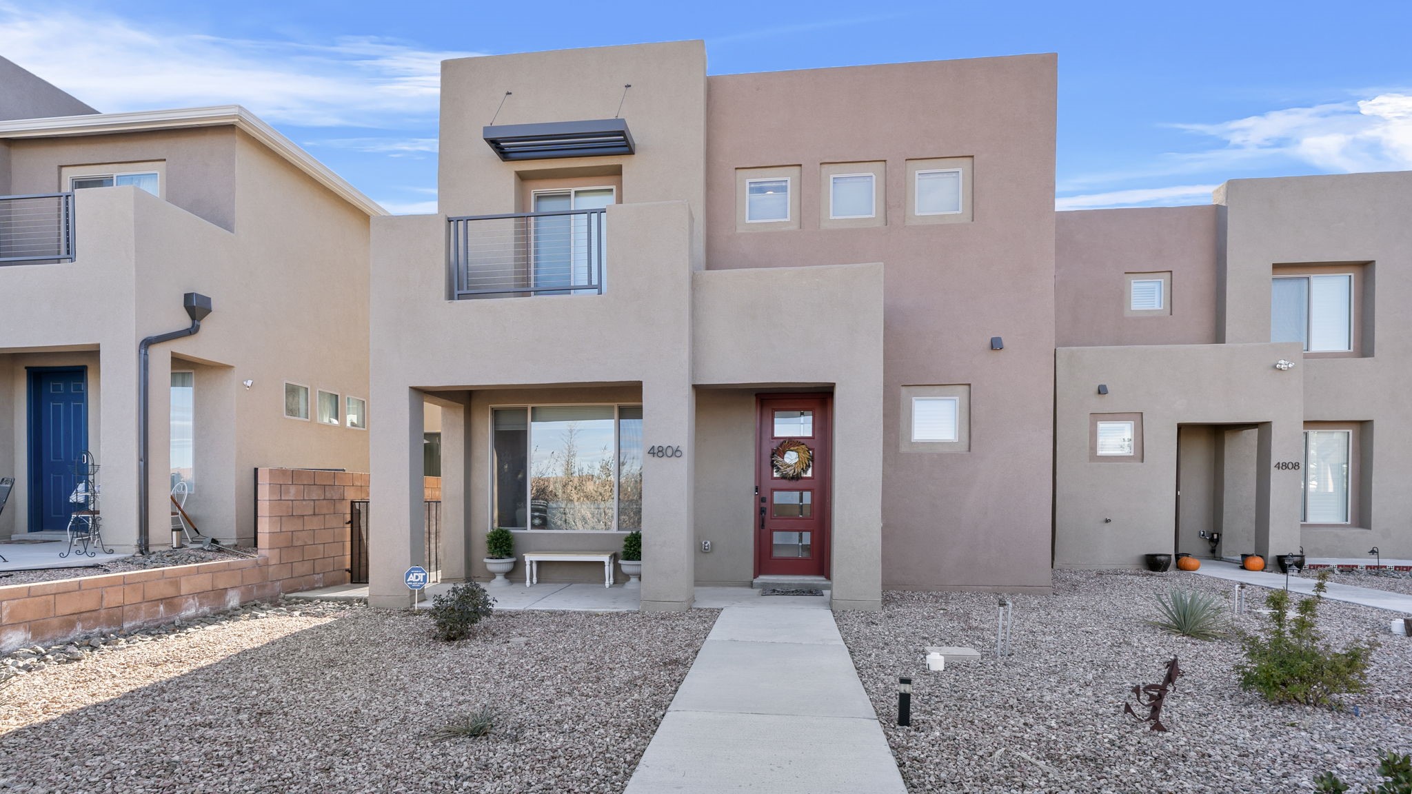 RELISTED AND READY TO BE CALLED HOME! This stunning like-new light and bright modern townhome is just what you've been looking for. The desirable Villas de Las Soleras community offers walking trails, community living, a park and views of the Sangre de Cristo Mountains all within city limits! This beautiful 3 bedroom, 2.5 bath open concept townhouse was built in 2021, provides detailed elegant finishes and energy efficient appliances. The first floor offers an open living space and kitchen that are perfect for entertaining while providing privacy to all bedrooms and baths on the second floor. The owner's retreat includes the main bedroom, on-suite, extra-large bathroom and an upgraded extended flex space. It's the retreat you've been looking for! This space can be used for an office, nursery, exercise area, or the owner's private lounge that is perfect for relaxing with a good book. You'll love the low-maintenance xeriscaping enclosed front yard that provides quick access to the Governor Miles walking trail. Additional finishes include epoxy flooring in the patio and garage that includes extra storage space for all your storage needs. Own this beauty that is conveniently located minutes from I-25 with easy access to Hwy 599 and shopping in Santa Fe!