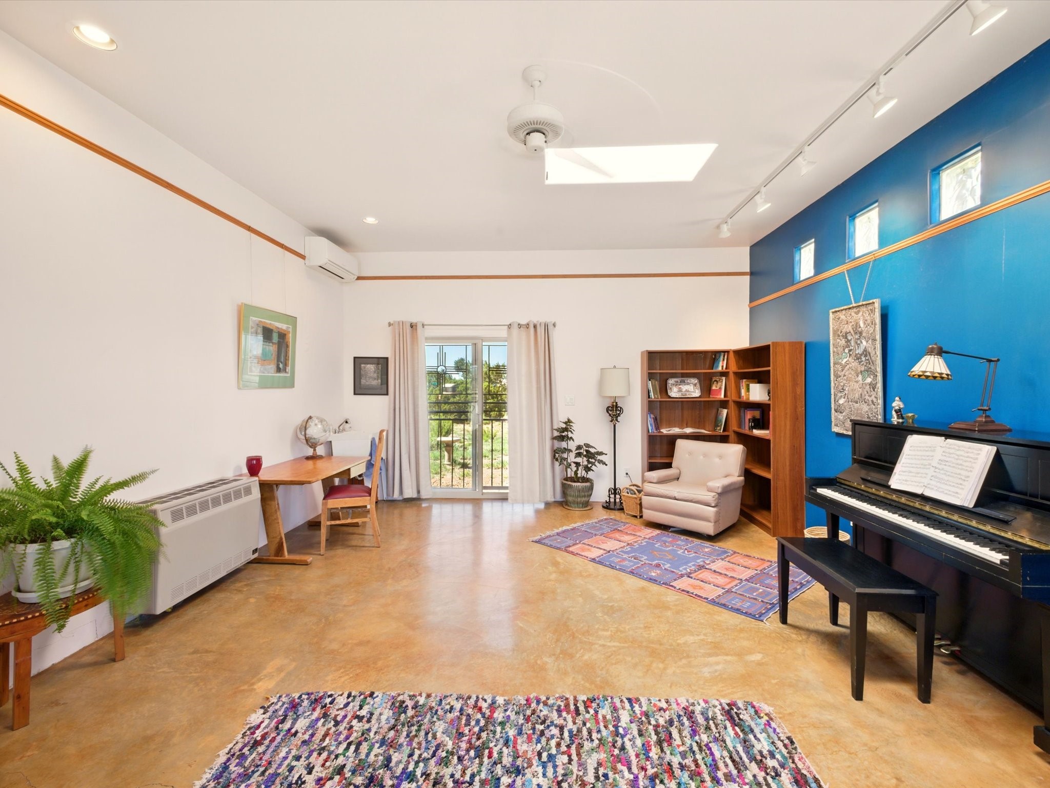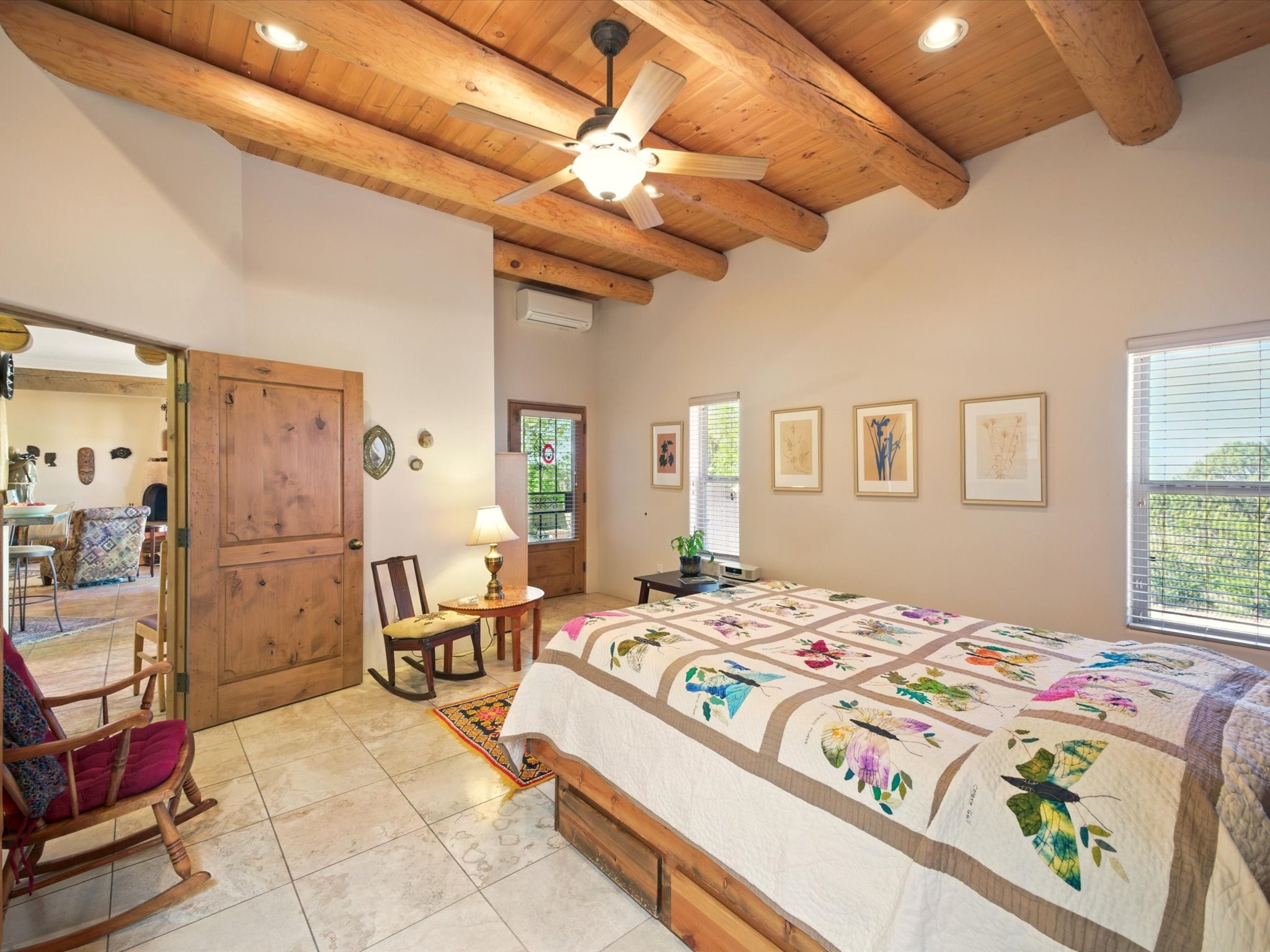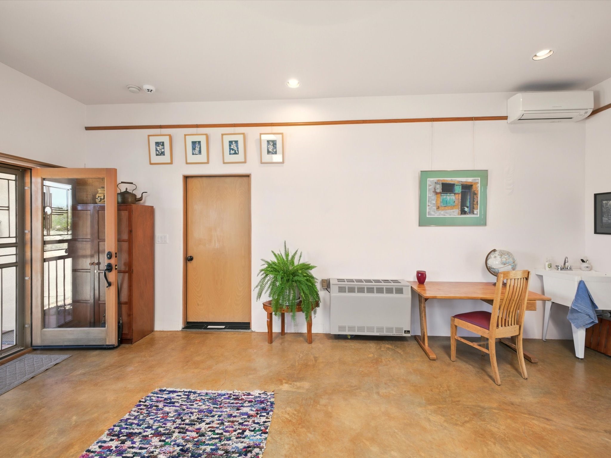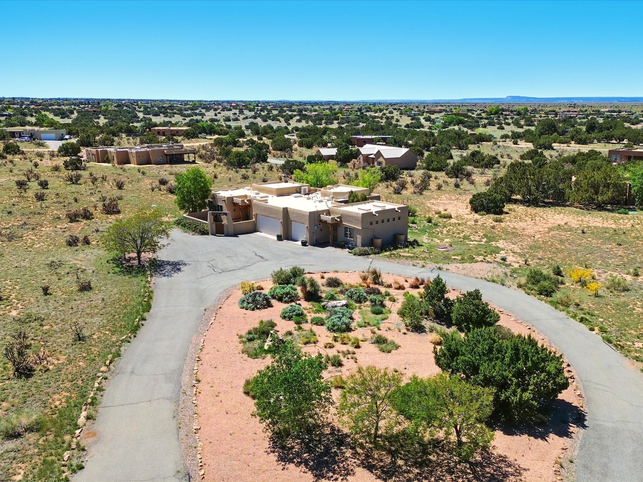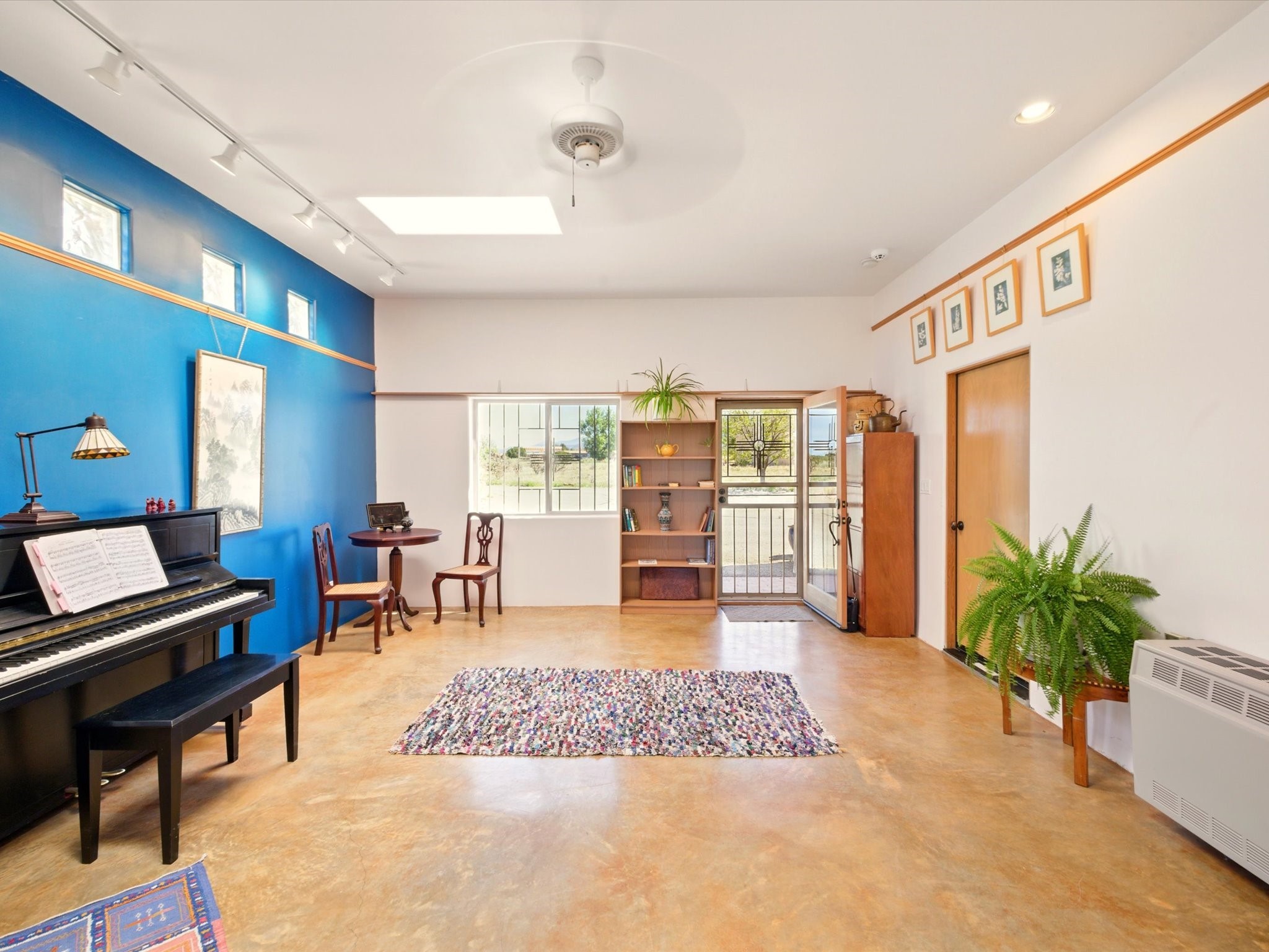 A Serene Santa Fe Artist Retreat set on 1.26 acres in the desirable Eldorado community. This stunning 3-bedroom, 2.5 bath home with a dedicated office for remote work offers the perfect blend of Southwestern charm and modern comfort. Inside, you'll find rich wood interior doors, vigas, beams and a classic kiva fireplace to create an atmosphere of warmth and relaxation. Skylights throughout the home invite an abundance of natural light. The spacious 3-car garage includes a unique 374 sq ft attached heated and air conditioned artist studio with sink-perfect for painting, crafting, mixed media or extra living space. Be a part of the vibrant, art-loving Eldorado community and thriving Eldorado Studio Tour every September. Outside, take in dramatic sunset views of the Jemez Mountains on the back portal. Enjoy the tranquil sounds of the custom water feature along with the sculpture of the late local artist Timothy Roundy and Sangre de Cristo views in the front courtyard, all set against the backdrop of Santa Fe's iconic high desert landscape. Don't miss this opportunity to own a thoughtfully designed home that celebrates the beauty of Northern New Mexico. Recently reduced - offered as-is at this new price point, presenting a great opportunity.