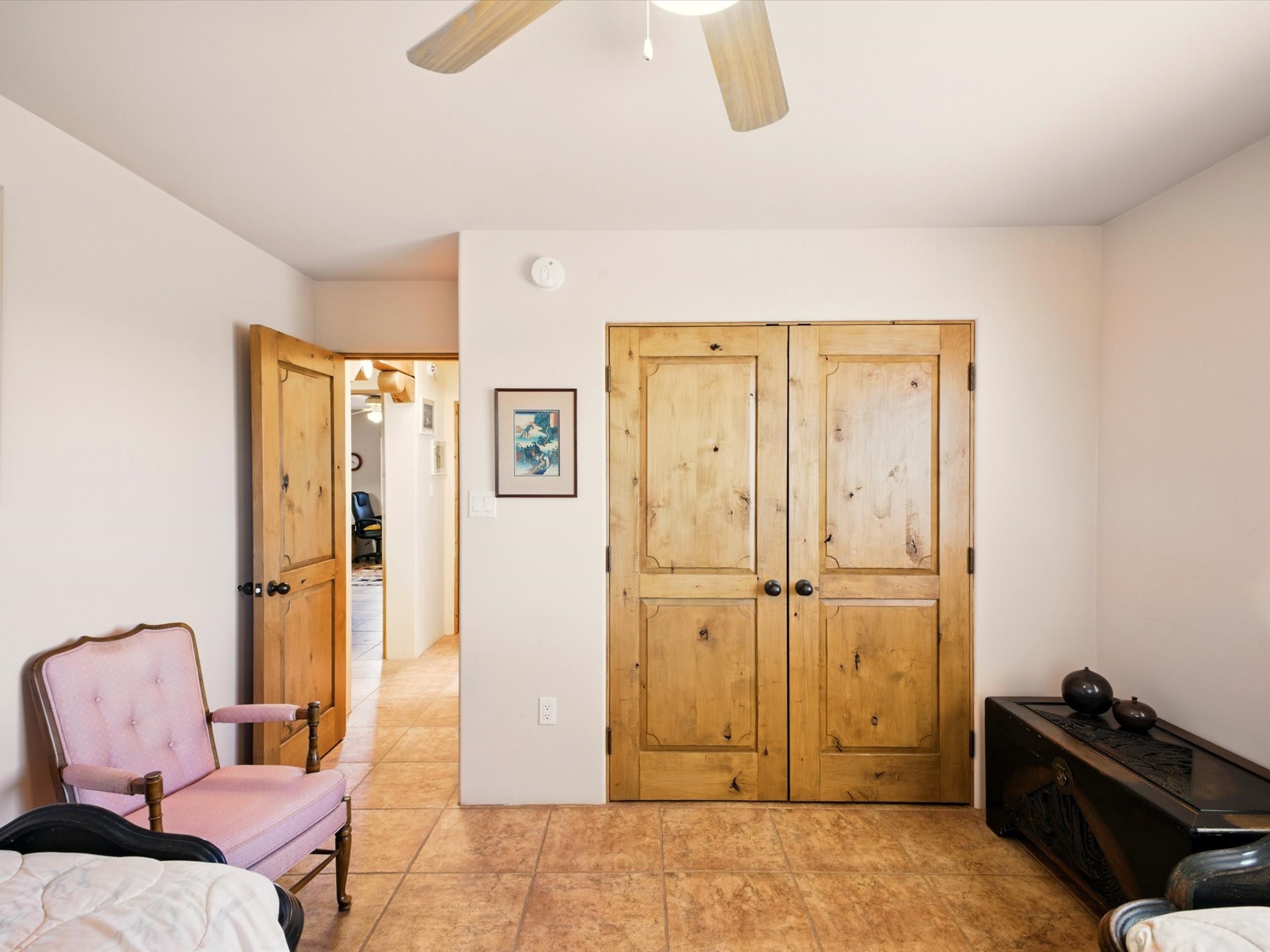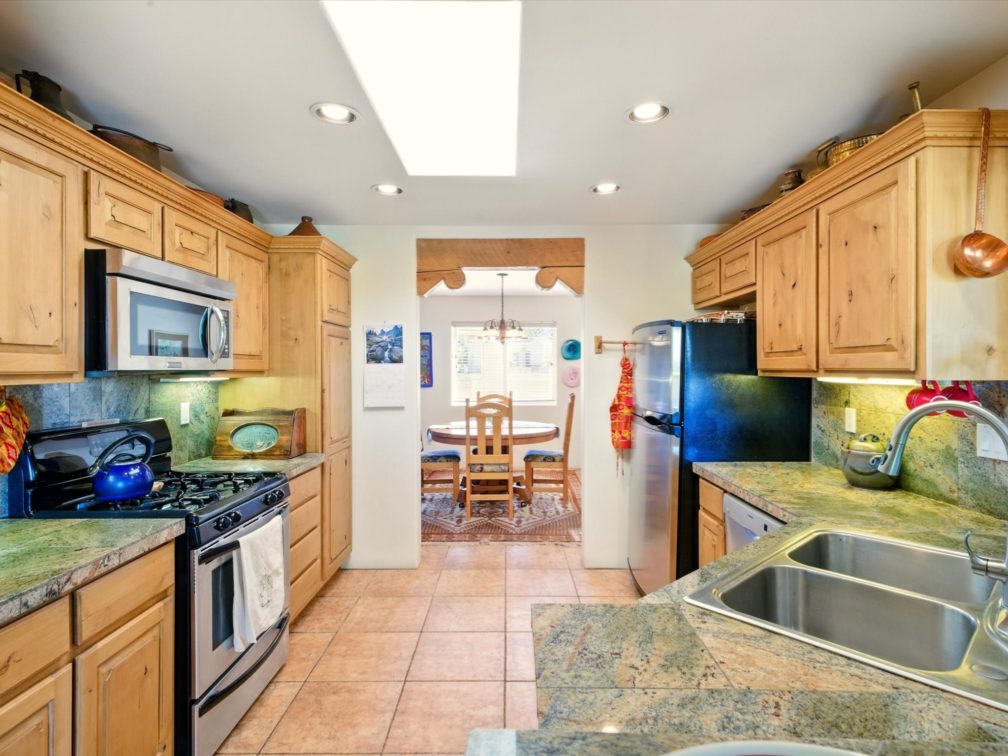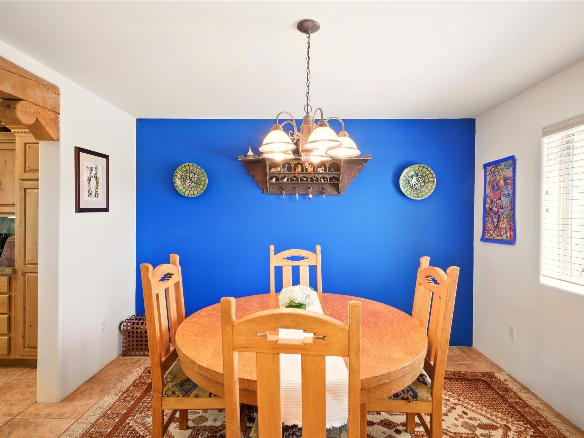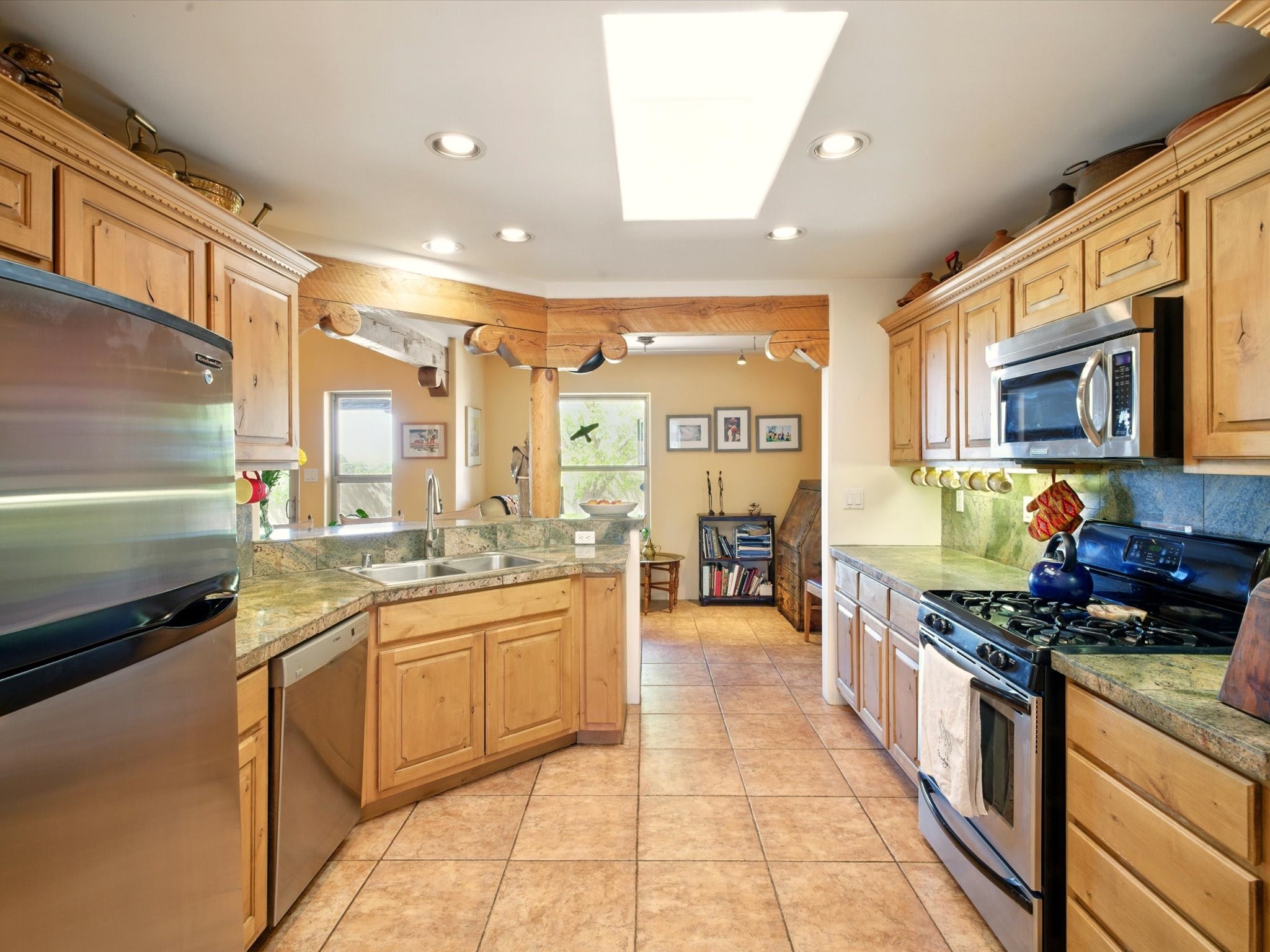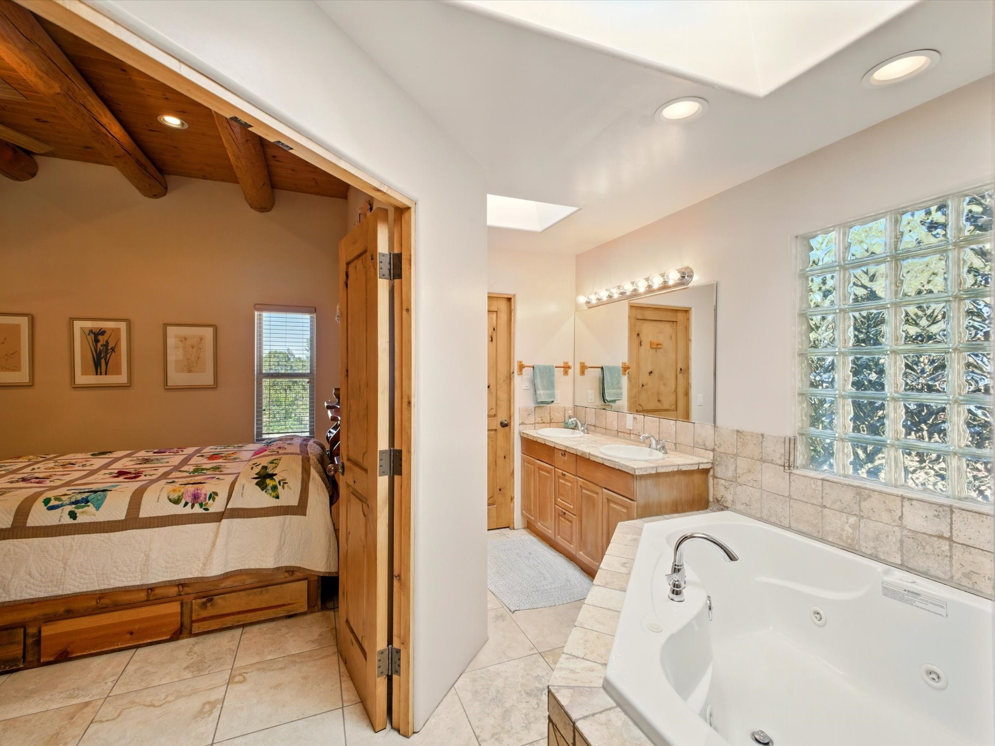 A Serene Santa Fe Artist Retreat set on 1.26 acres in the desirable Eldorado community. This stunning 3-bedroom, 2.5 bath home with a dedicated office for remote work offers the perfect blend of Southwestern charm and modern comfort. Inside, you'll find rich wood interior doors, vigas, beams and a classic kiva fireplace to create an atmosphere of warmth and relaxation. Skylights throughout the home invite an abundance of natural light. The spacious 3-car garage includes a unique 374 sq ft attached heated and air conditioned artist studio with sink-perfect for painting, crafting, mixed media or extra living space. Be a part of the vibrant, art-loving Eldorado community and thriving Eldorado Studio Tour every September. Outside, take in dramatic sunset views of the Jemez Mountains on the back portal. Enjoy the tranquil sounds of the custom water feature along with the sculpture of the late local artist Timothy Roundy and Sangre de Cristo views in the front courtyard, all set against the backdrop of Santa Fe's iconic high desert landscape. Don't miss this opportunity to own a thoughtfully designed home that celebrates the beauty of Northern New Mexico. Recently reduced - offered as-is at this new price point, presenting a great opportunity.