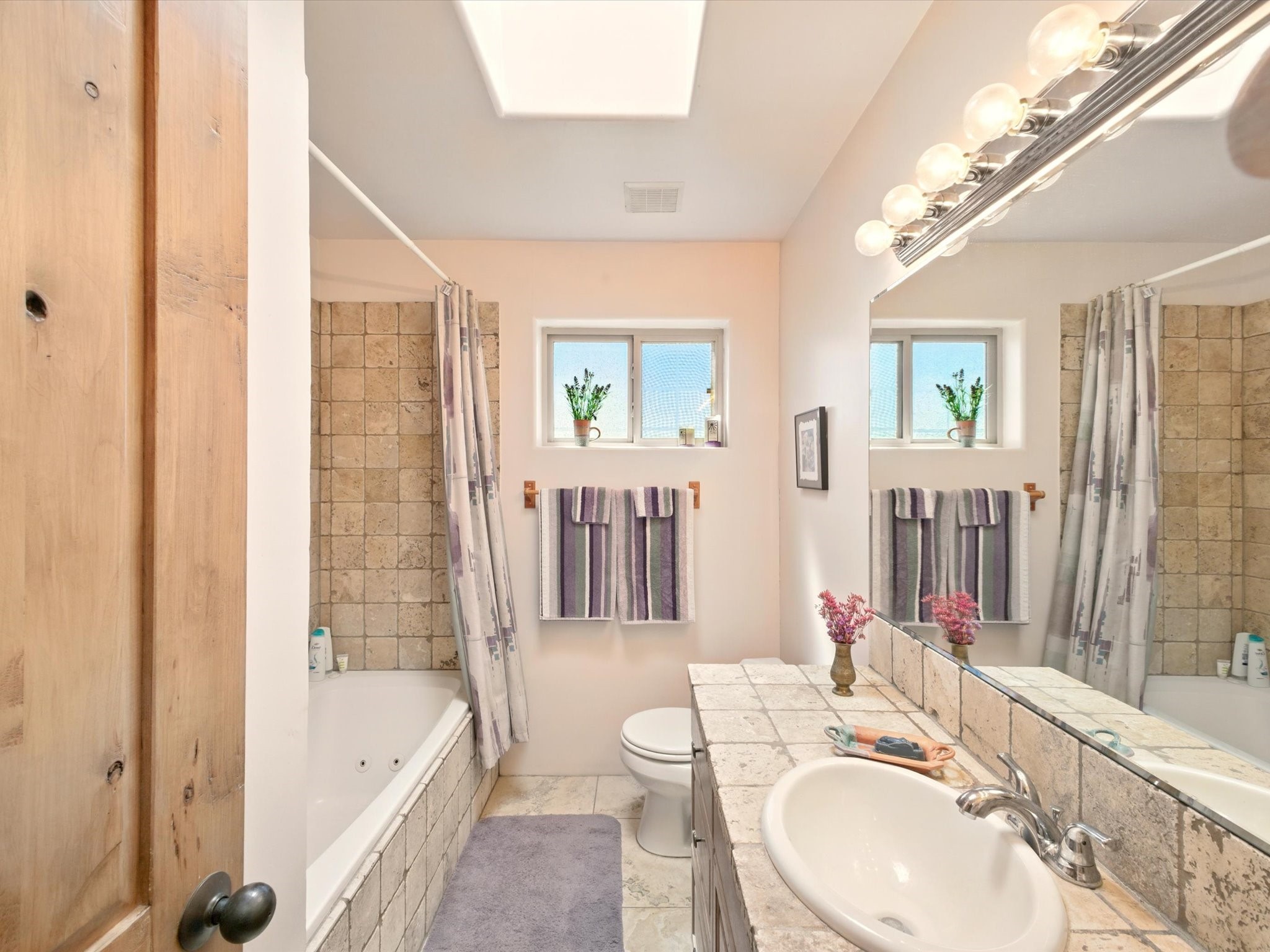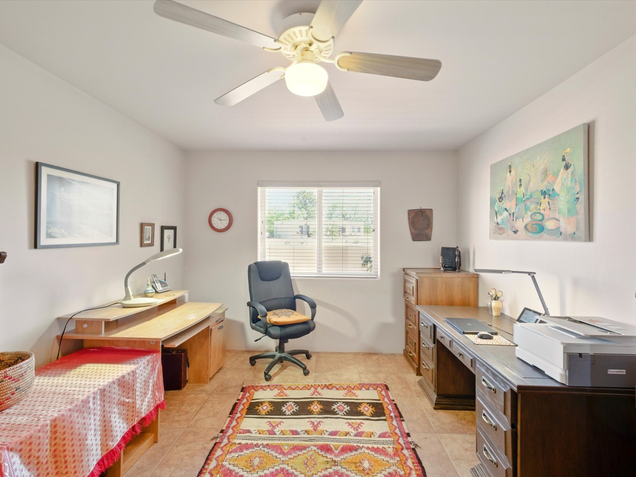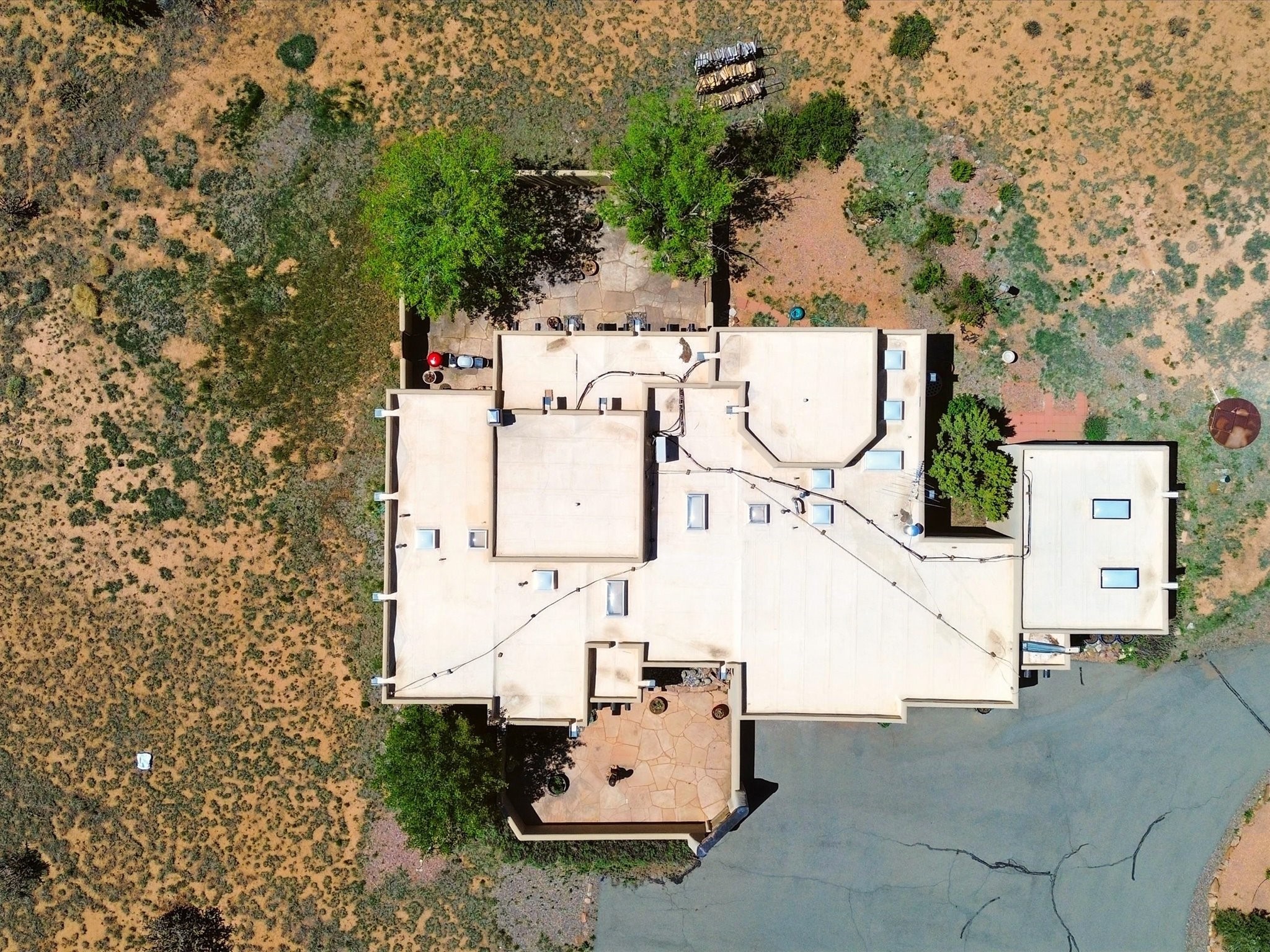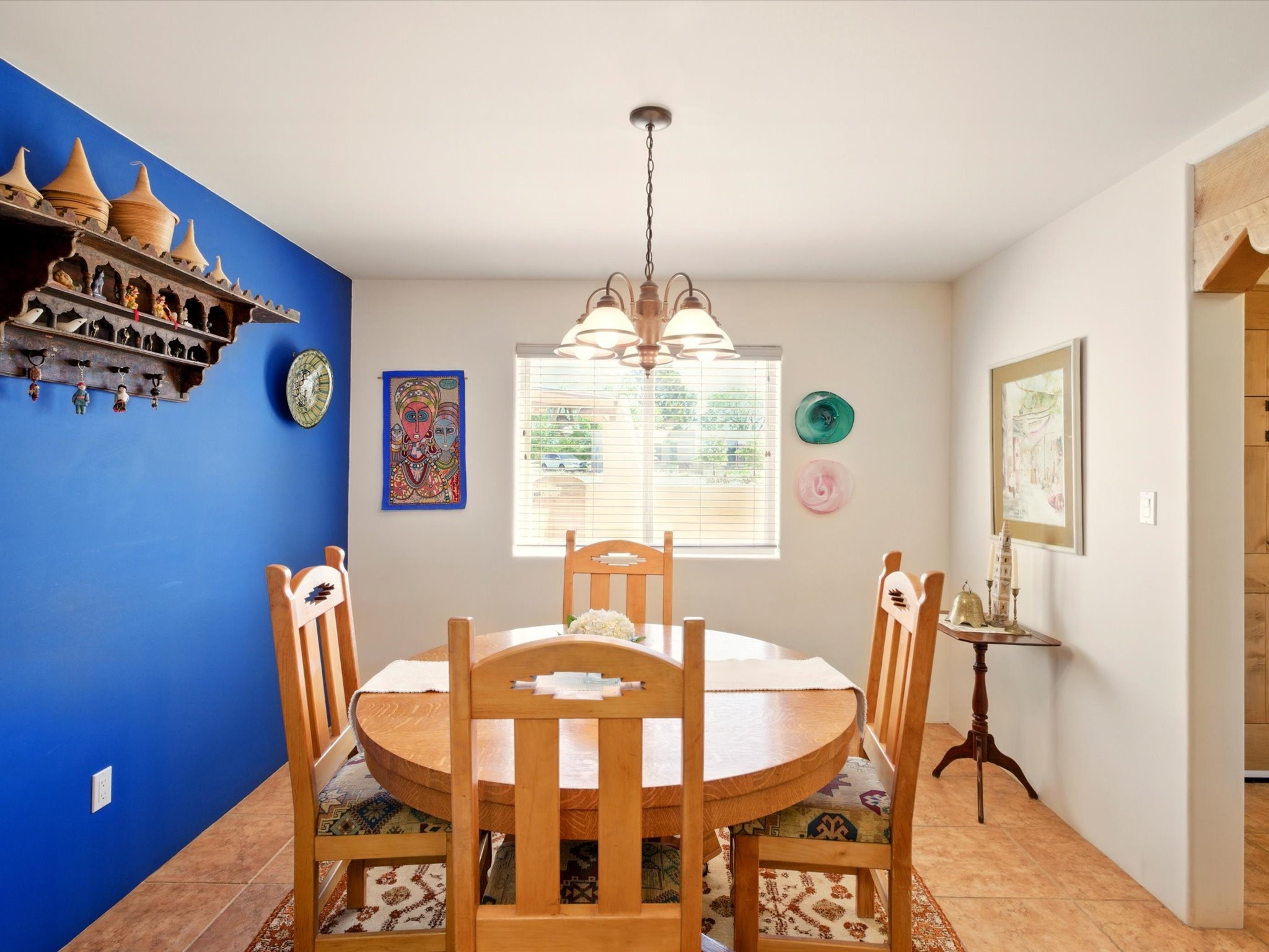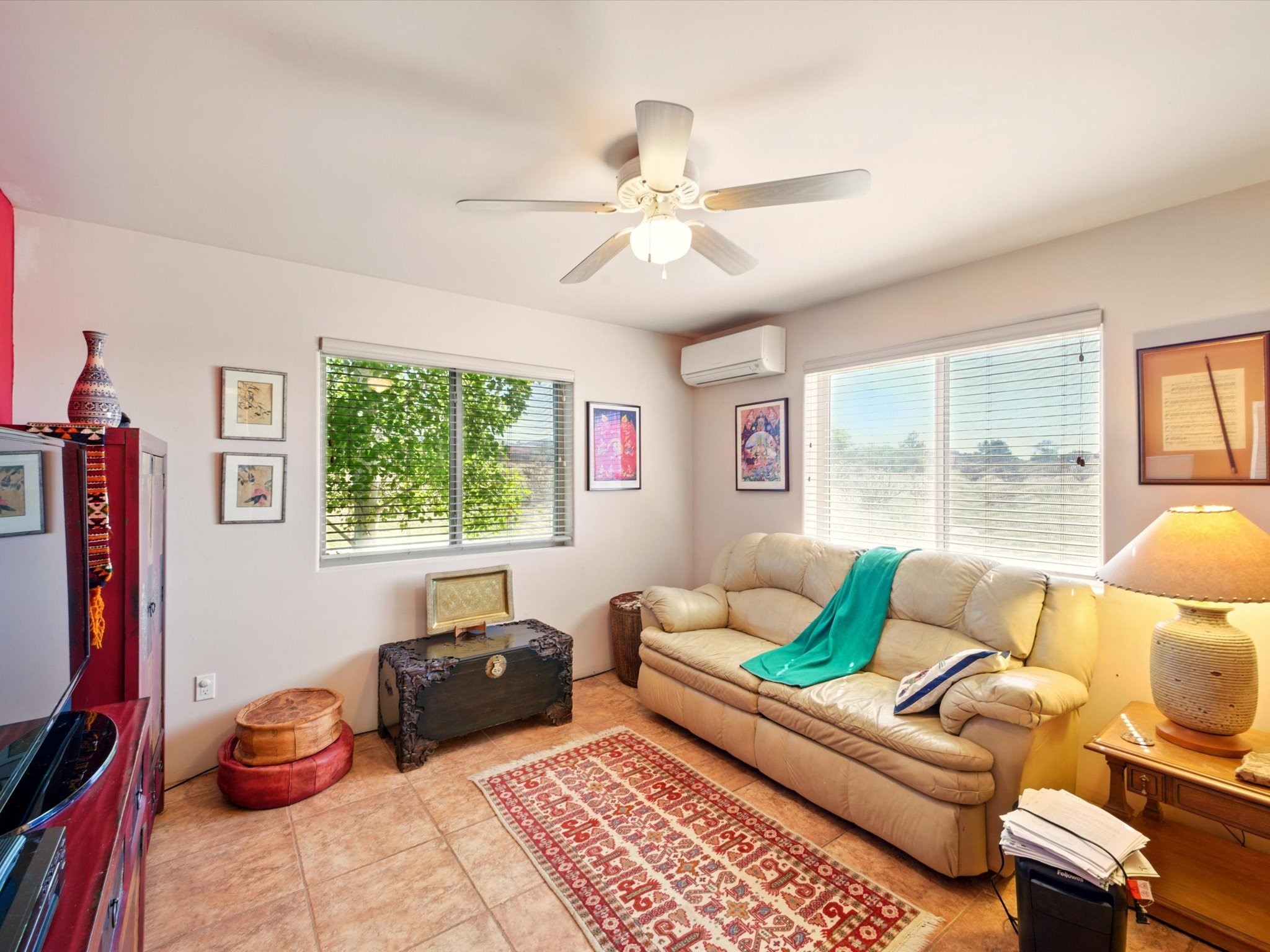 A Serene Santa Fe Artist Retreat set on 1.26 acres in the desirable Eldorado community. This stunning 3-bedroom, 2.5 bath home with a dedicated office for remote work offers the perfect blend of Southwestern charm and modern comfort. Inside, you'll find rich wood interior doors, vigas, beams and a classic kiva fireplace to create an atmosphere of warmth and relaxation. Skylights throughout the home invite an abundance of natural light. The spacious 3-car garage includes a unique 374 sq ft attached heated and air conditioned artist studio with sink-perfect for painting, crafting, mixed media or extra living space. Be a part of the vibrant, art-loving Eldorado community and thriving Eldorado Studio Tour every September. Outside, take in dramatic sunset views of the Jemez Mountains on the back portal. Enjoy the tranquil sounds of the custom water feature along with the sculpture of the late local artist Timothy Roundy and Sangre de Cristo views in the front courtyard, all set against the backdrop of Santa Fe's iconic high desert landscape. Don't miss this opportunity to own a thoughtfully designed home that celebrates the beauty of Northern New Mexico. Recently reduced - offered as-is at this new price point, presenting a great opportunity.